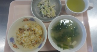 ツナ入りまぜごはん ポテトサラダ みそ汁 ソフトせんべい 牛乳