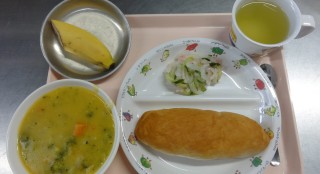 米粉ロール シチュー 大根サラダ ばななクラッカー 飲むヨーグルト