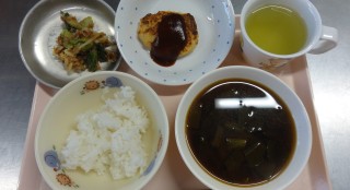 ごはん みそ汁 和風ハンバーグ おかかあえブラウニー 牛乳