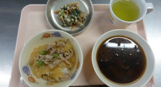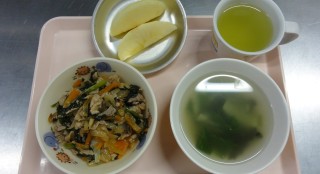 スタミナチャーハン 春雨スープ マカロニサラダ五平餅 牛乳