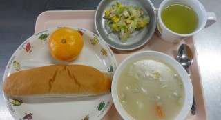 ロールパン 鶏肉と白菜のシチュー フレンチサラダソフトせん 飲むヨーグルト