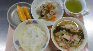ごはん 旨煮 しのだうどん オレンジポテトスナック 牛乳