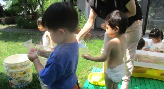 今月は天気が良かったので、水遊びをしました。実は・・・ただの水遊びではなく絵の具で色を付けた色水を使って遊びましたよ。カ...