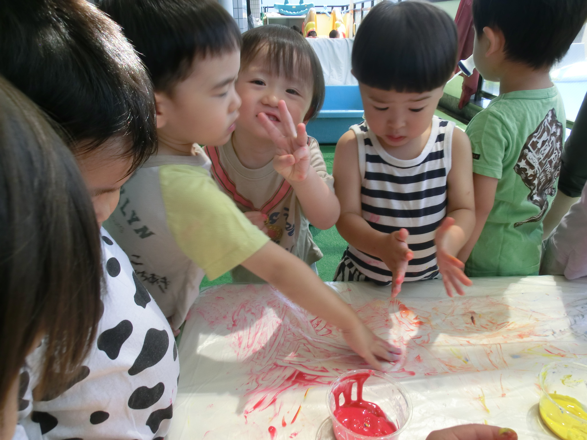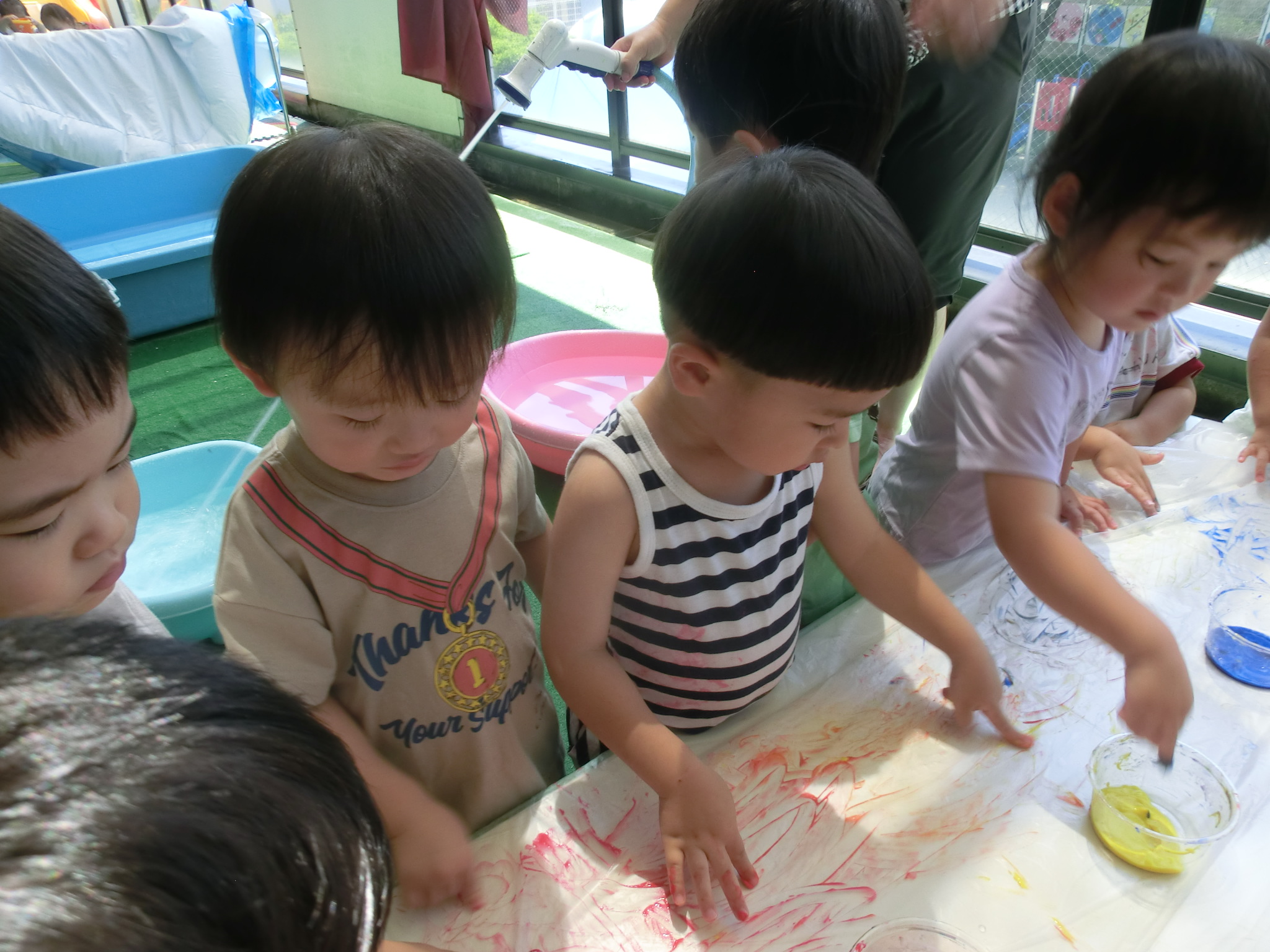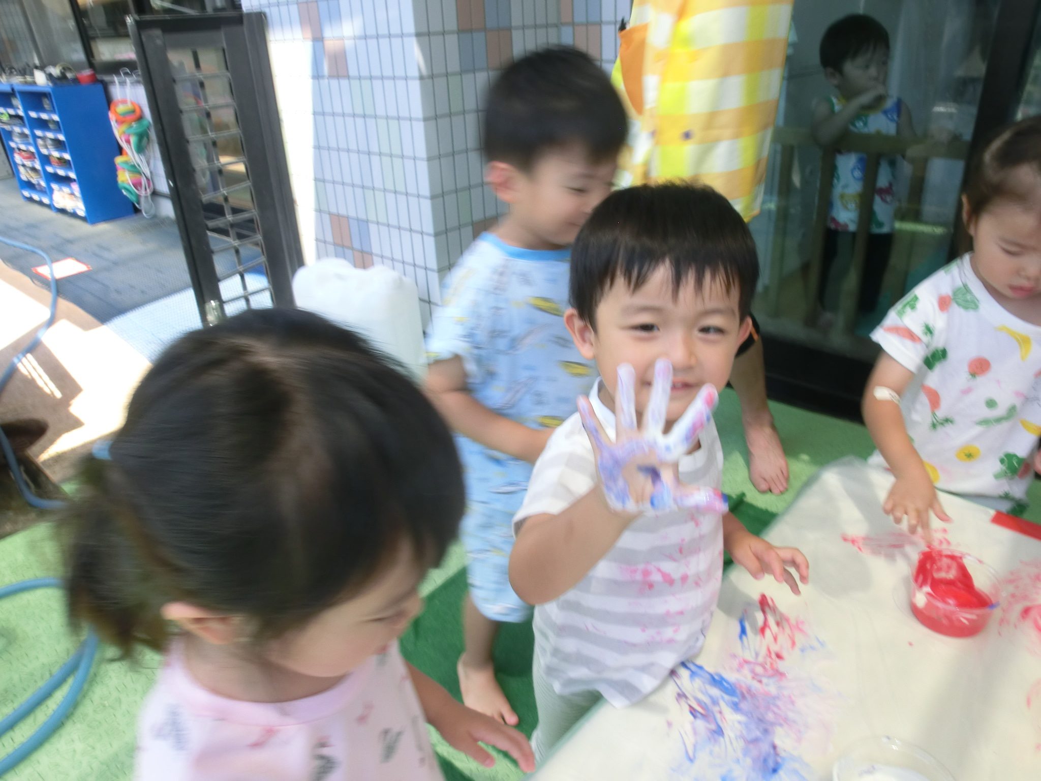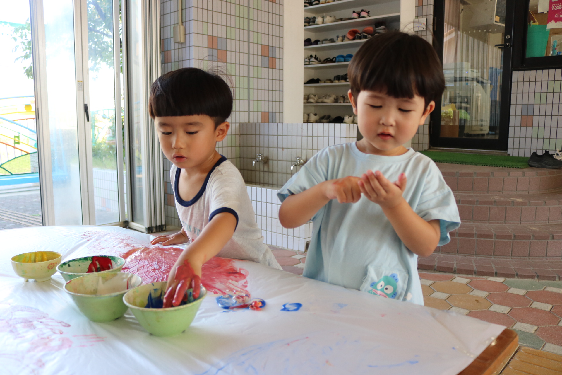7月29日(火)フィンガーペイントをしたよ😊~年少ぐみ~