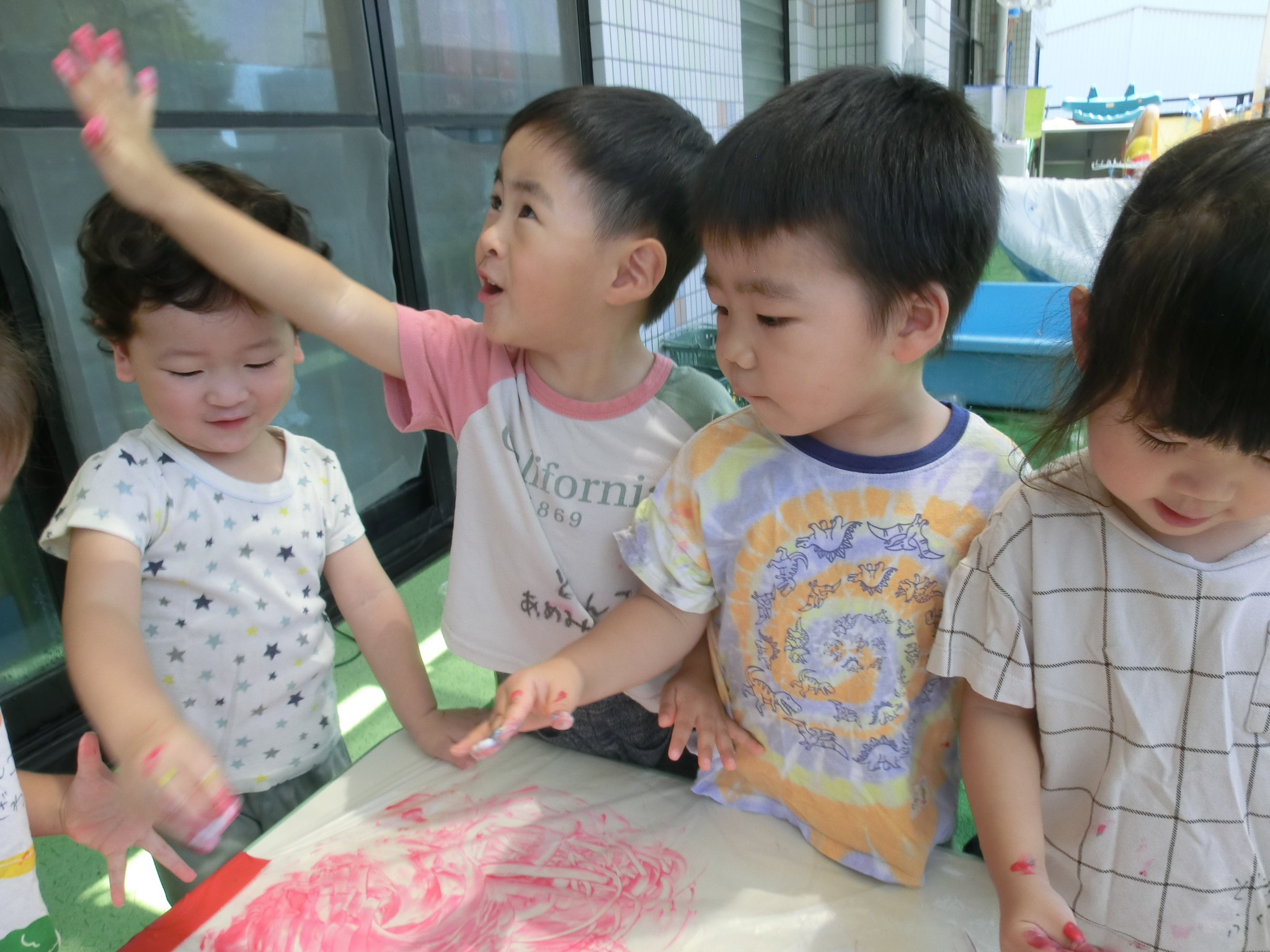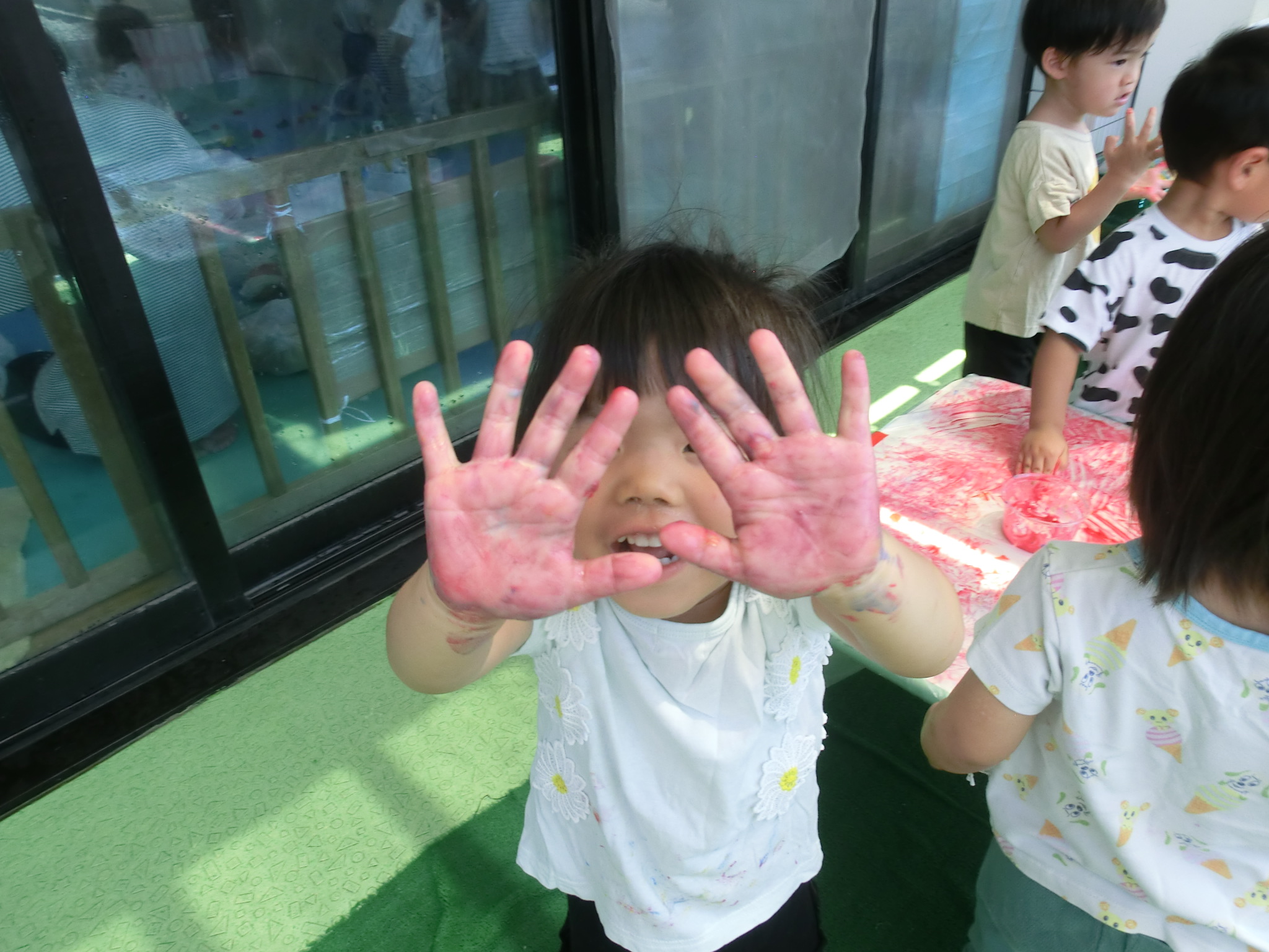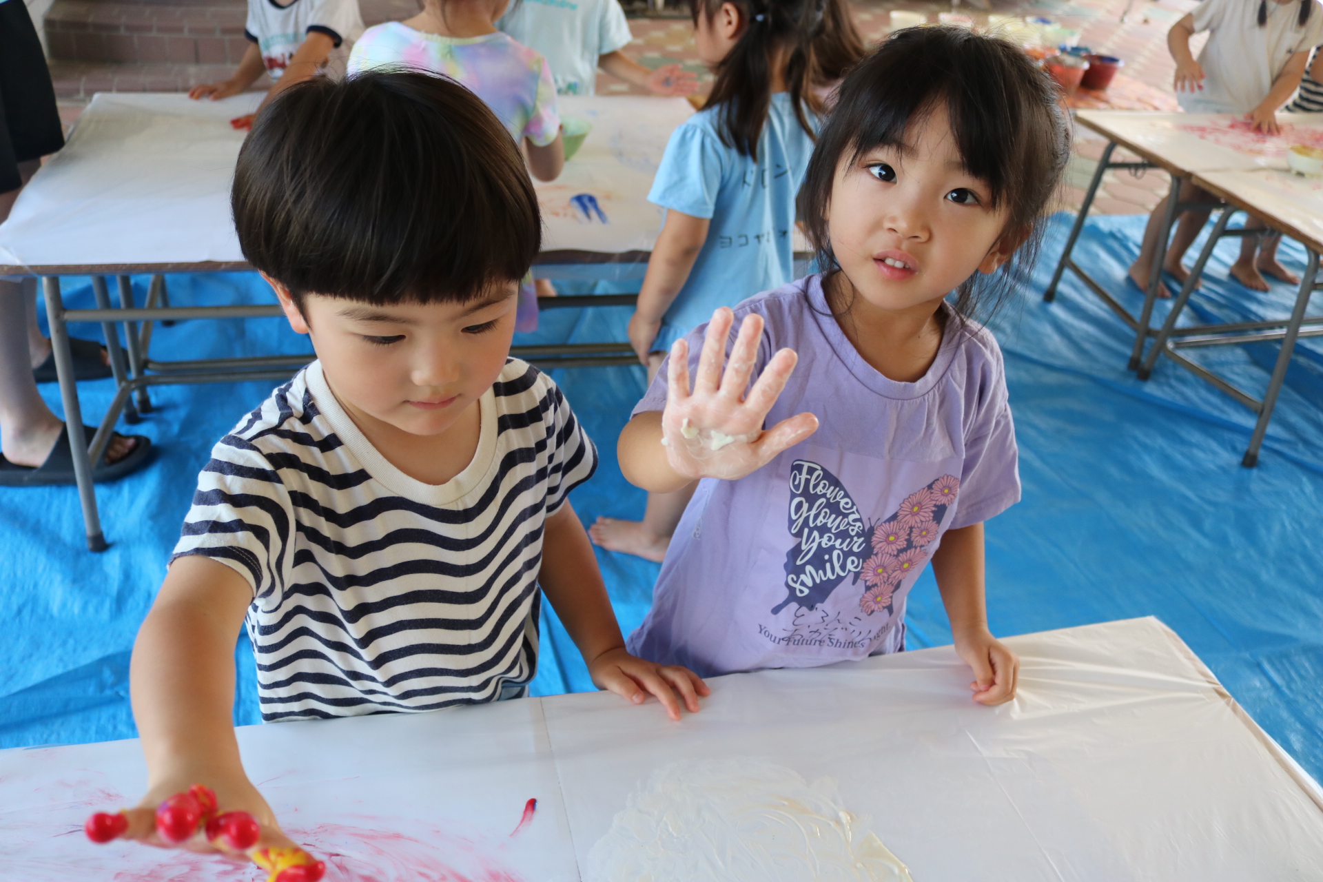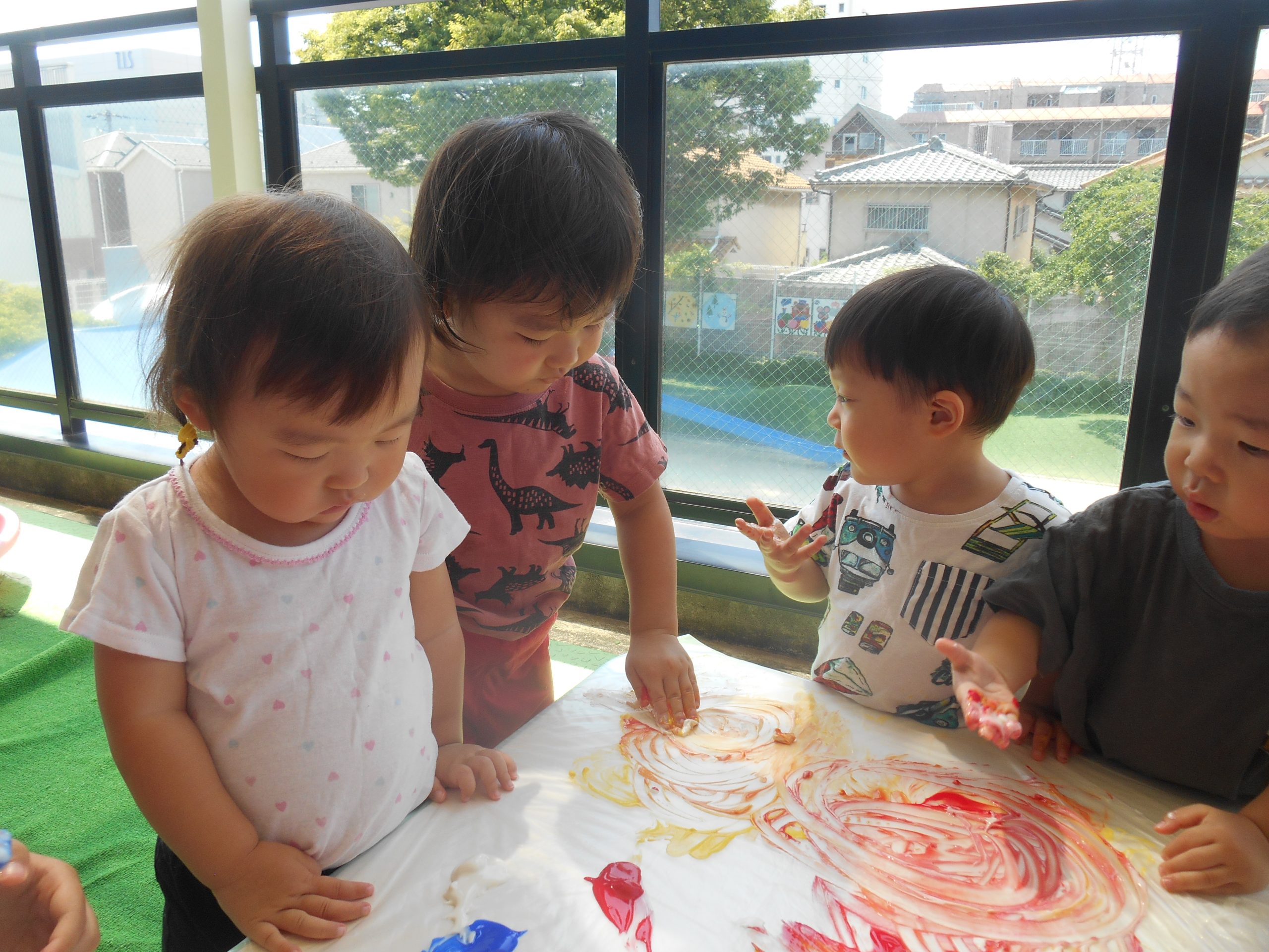 7月29日(火)フィンガーペイントをしたよ😊~年少ぐみ~