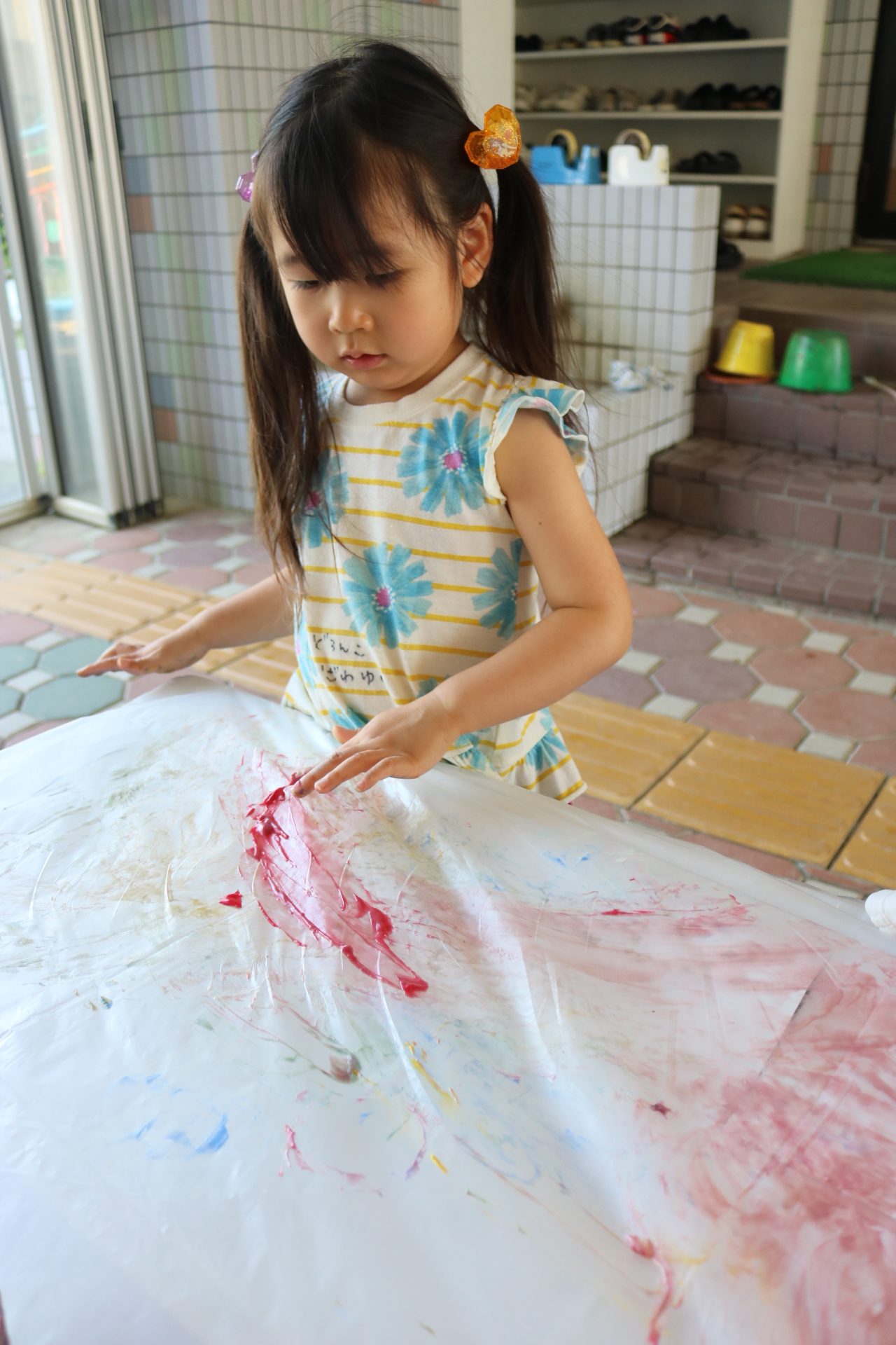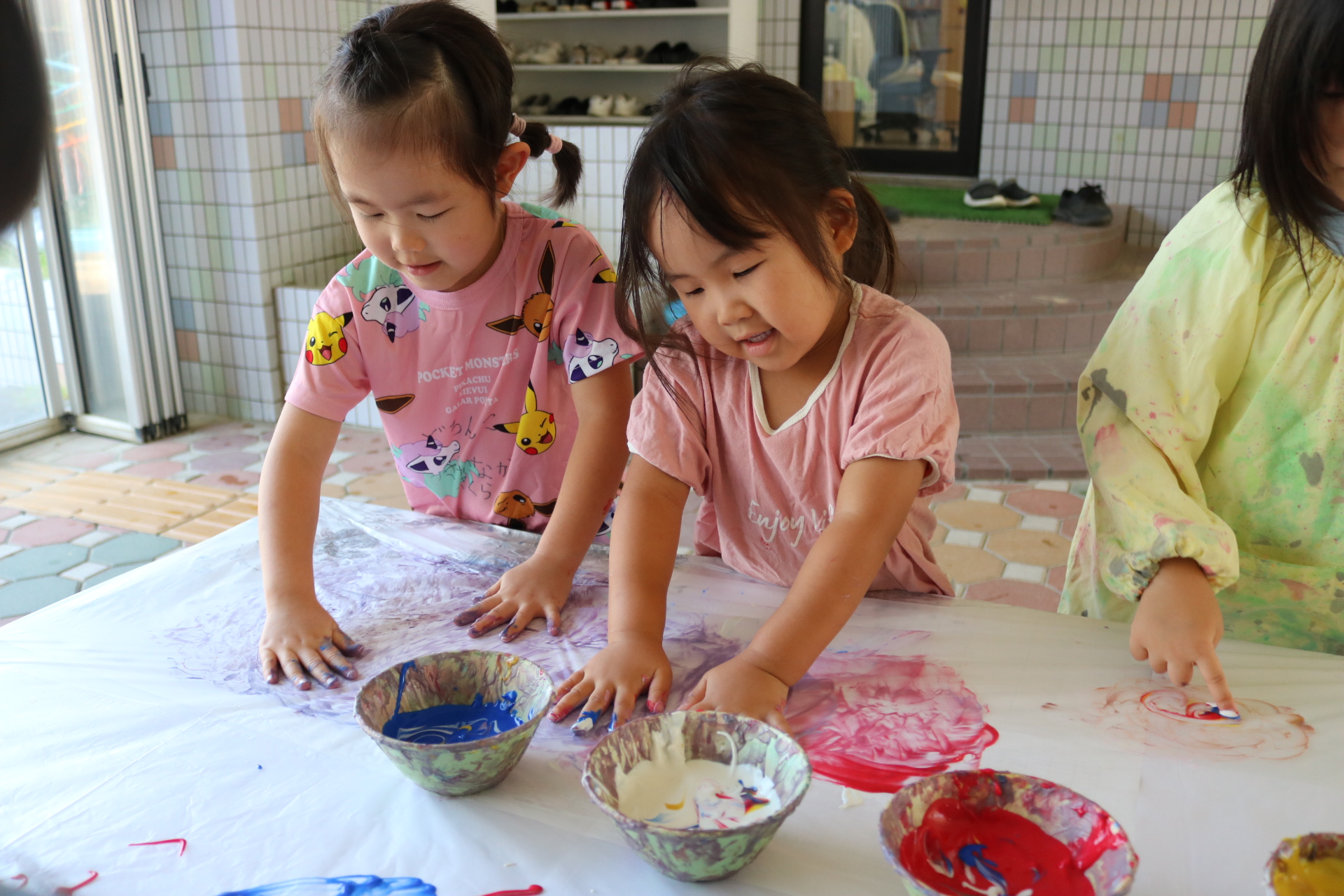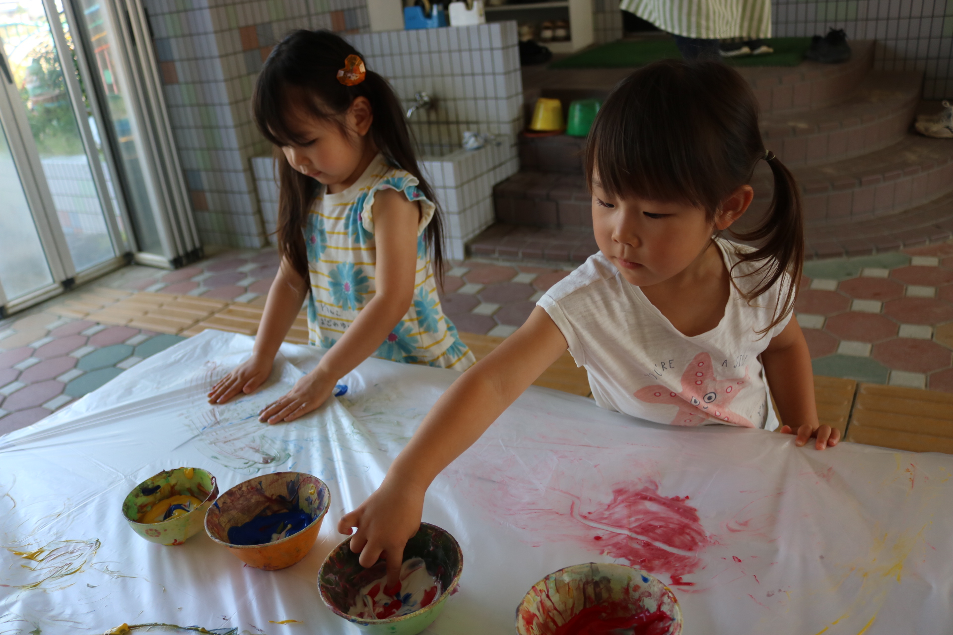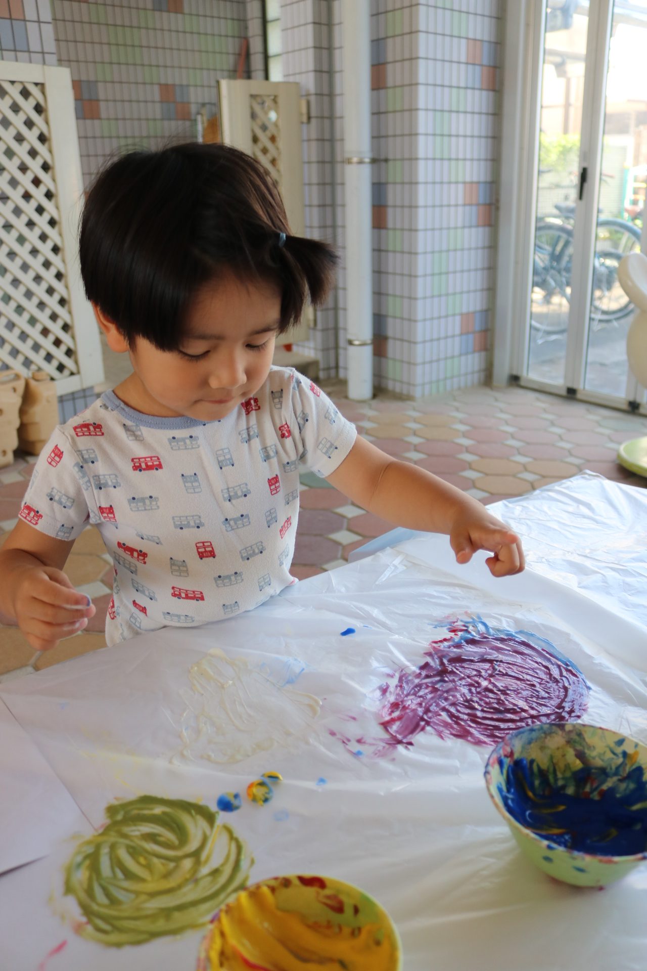 7月29日(火)フィンガーペイントをしたよ😊~年少ぐみ~