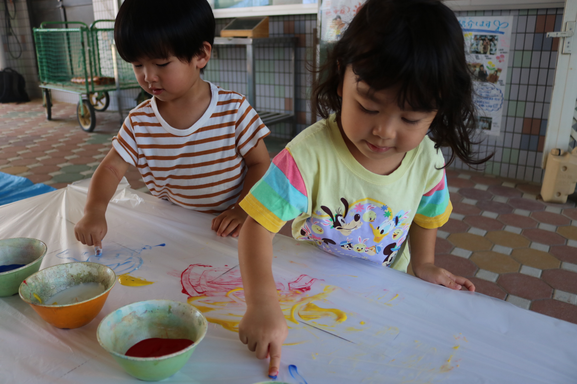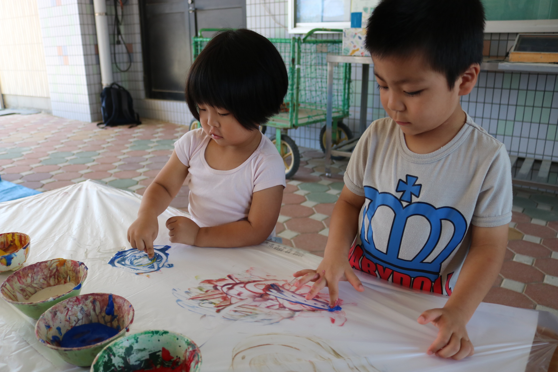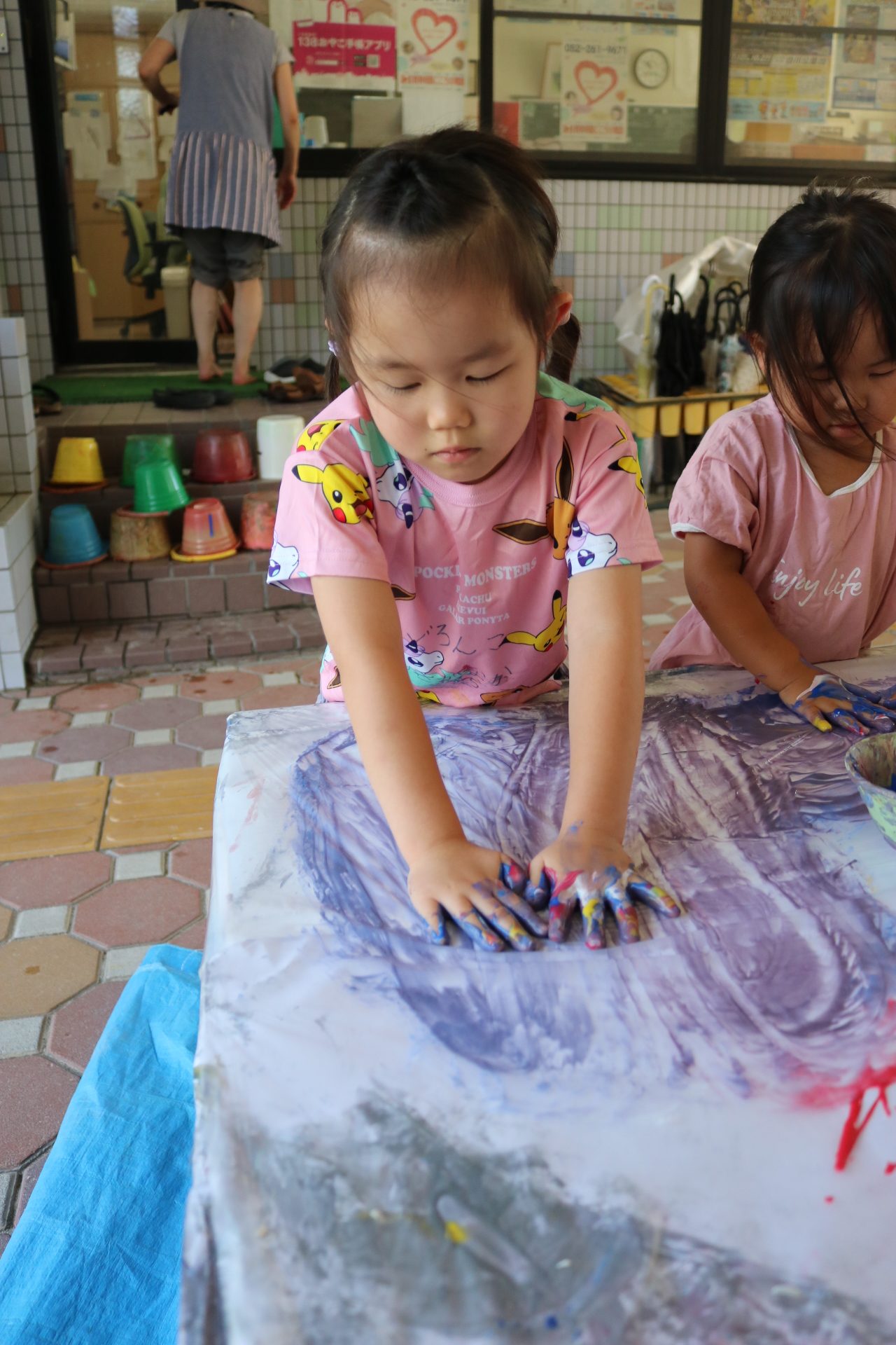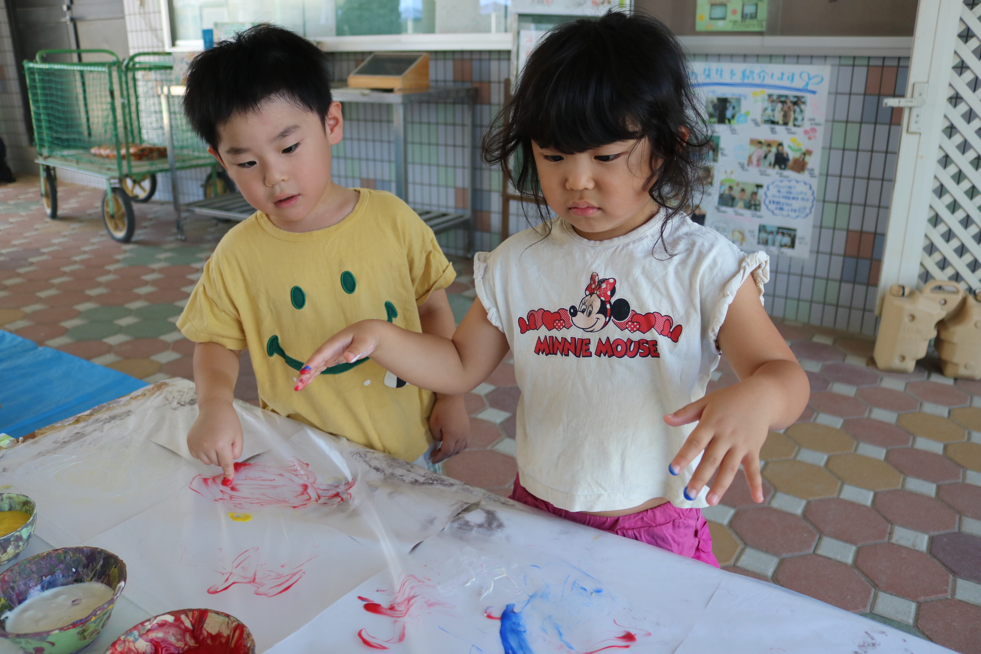 7月29日(火)フィンガーペイントをしたよ😊~年少ぐみ~
