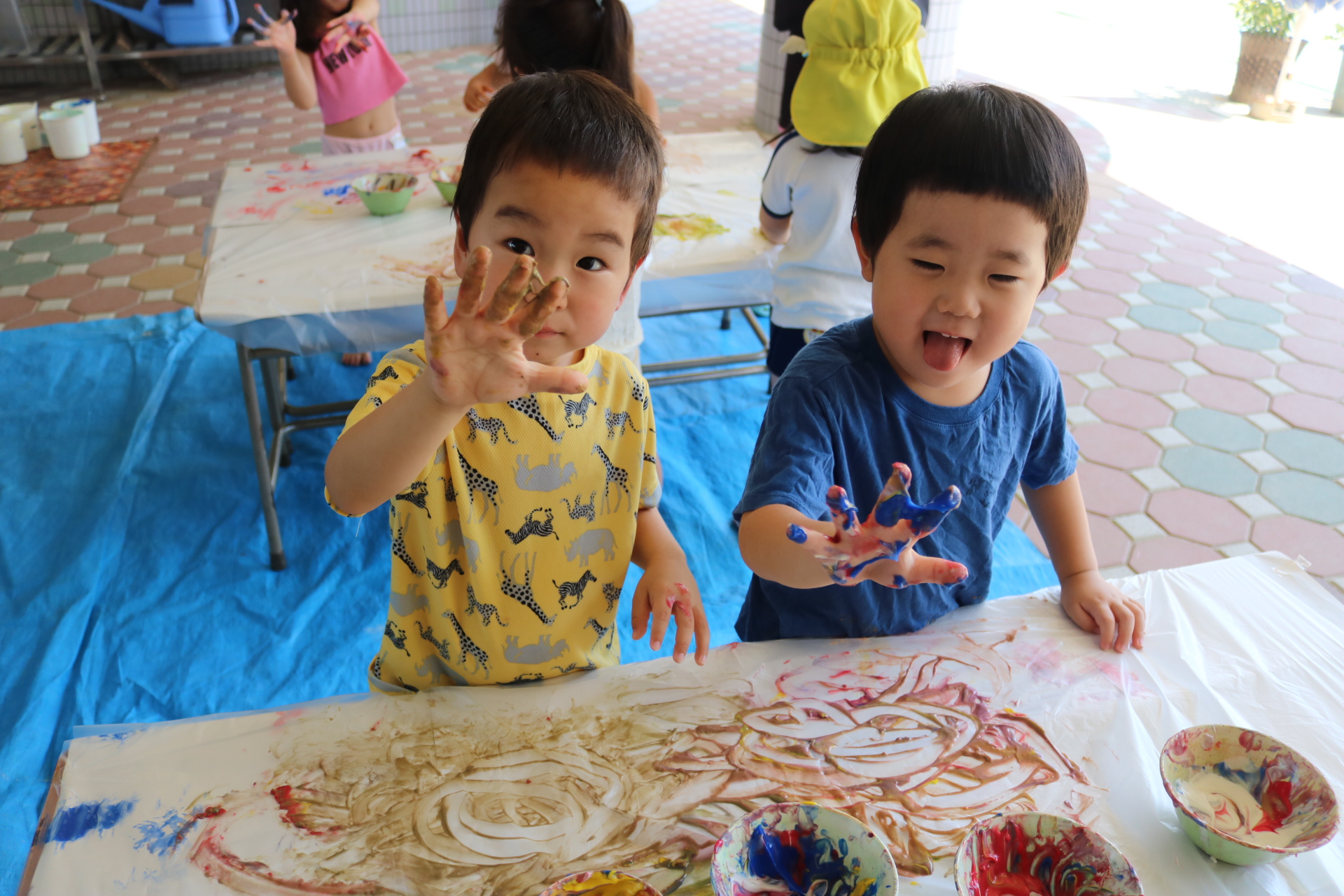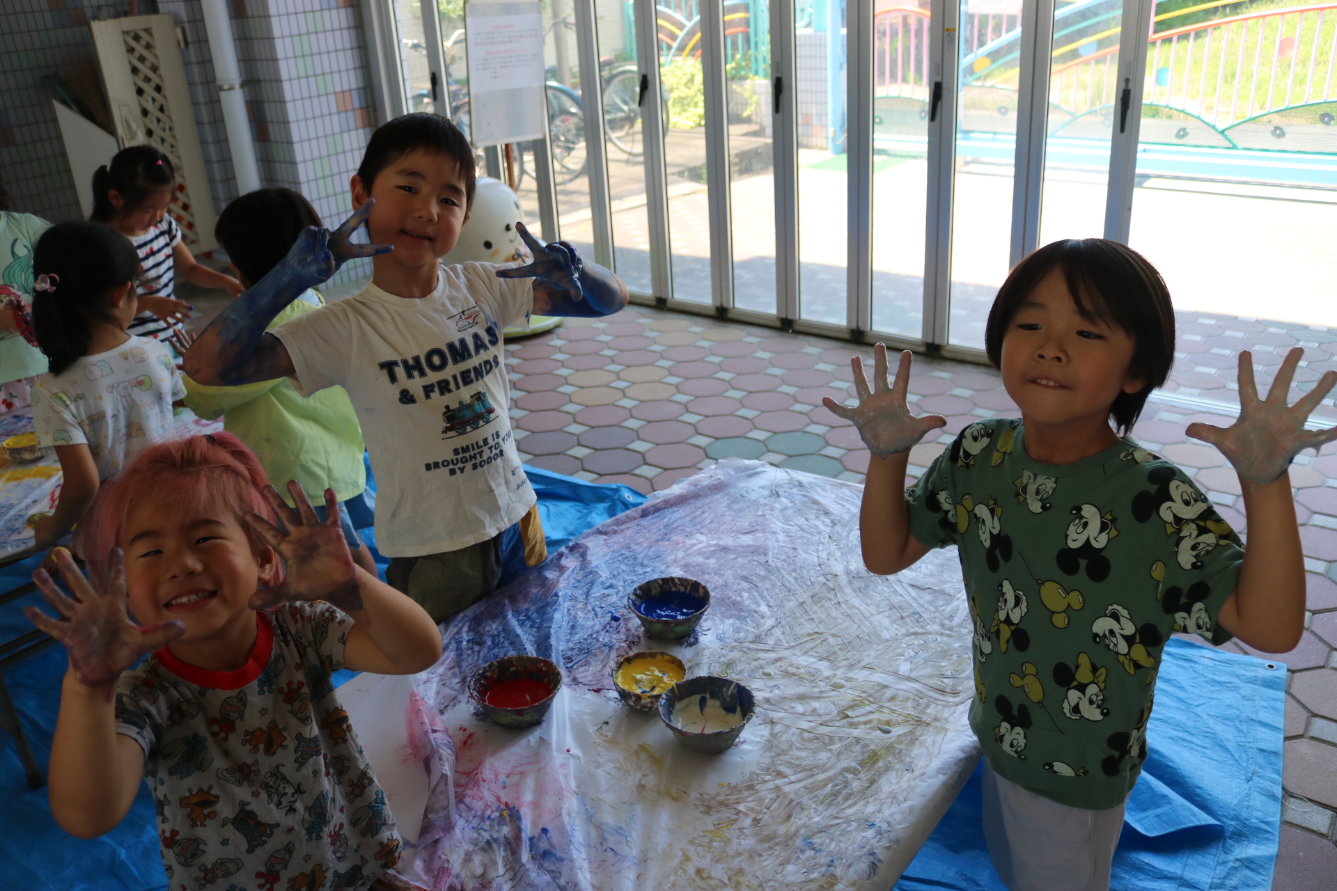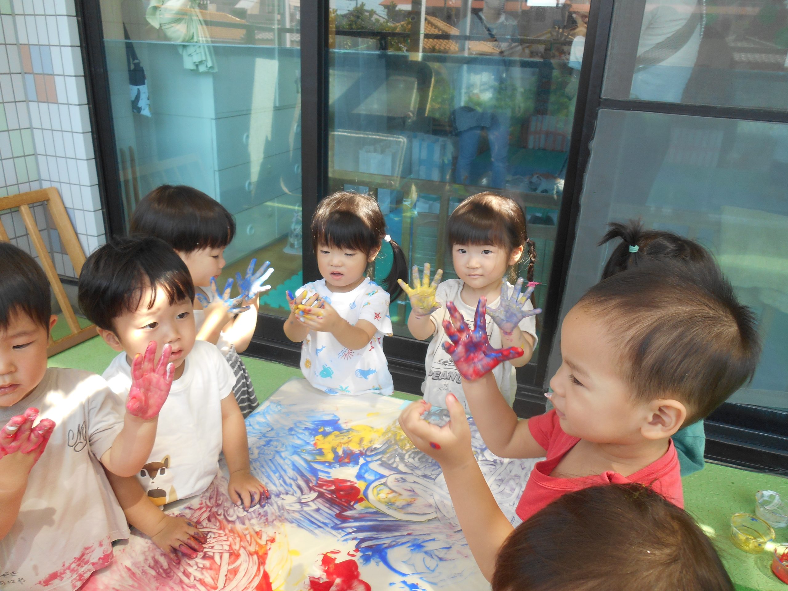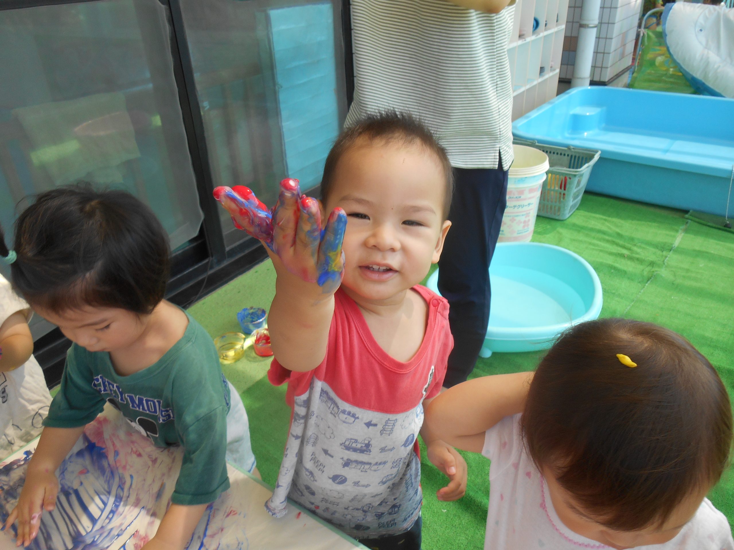 みんな色を混ぜたり、手形をしたりと楽しんでいました😊