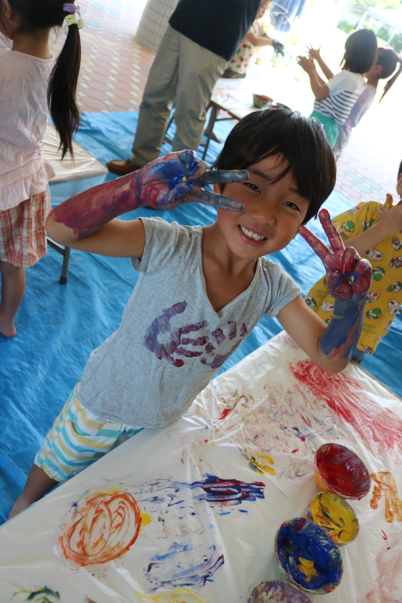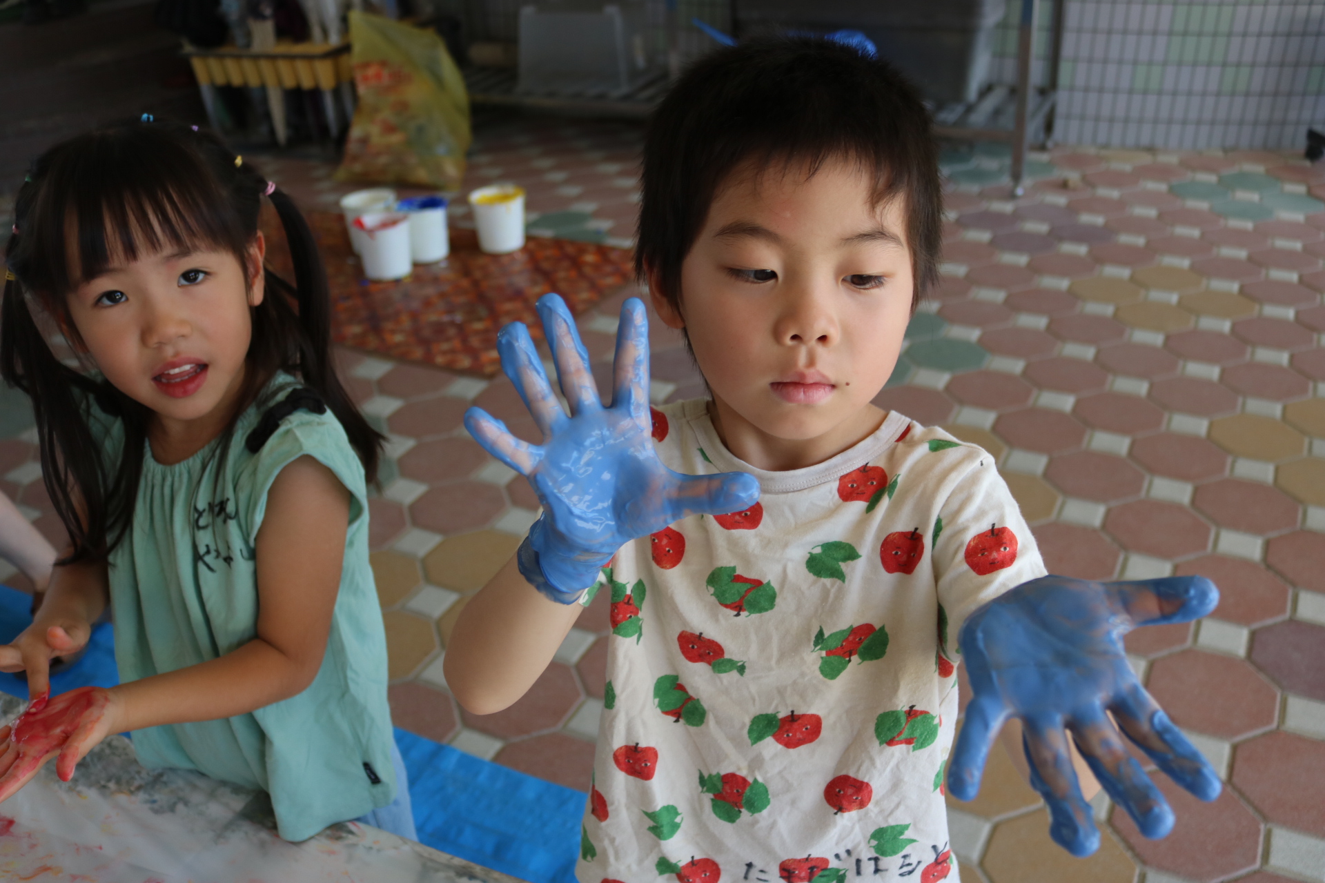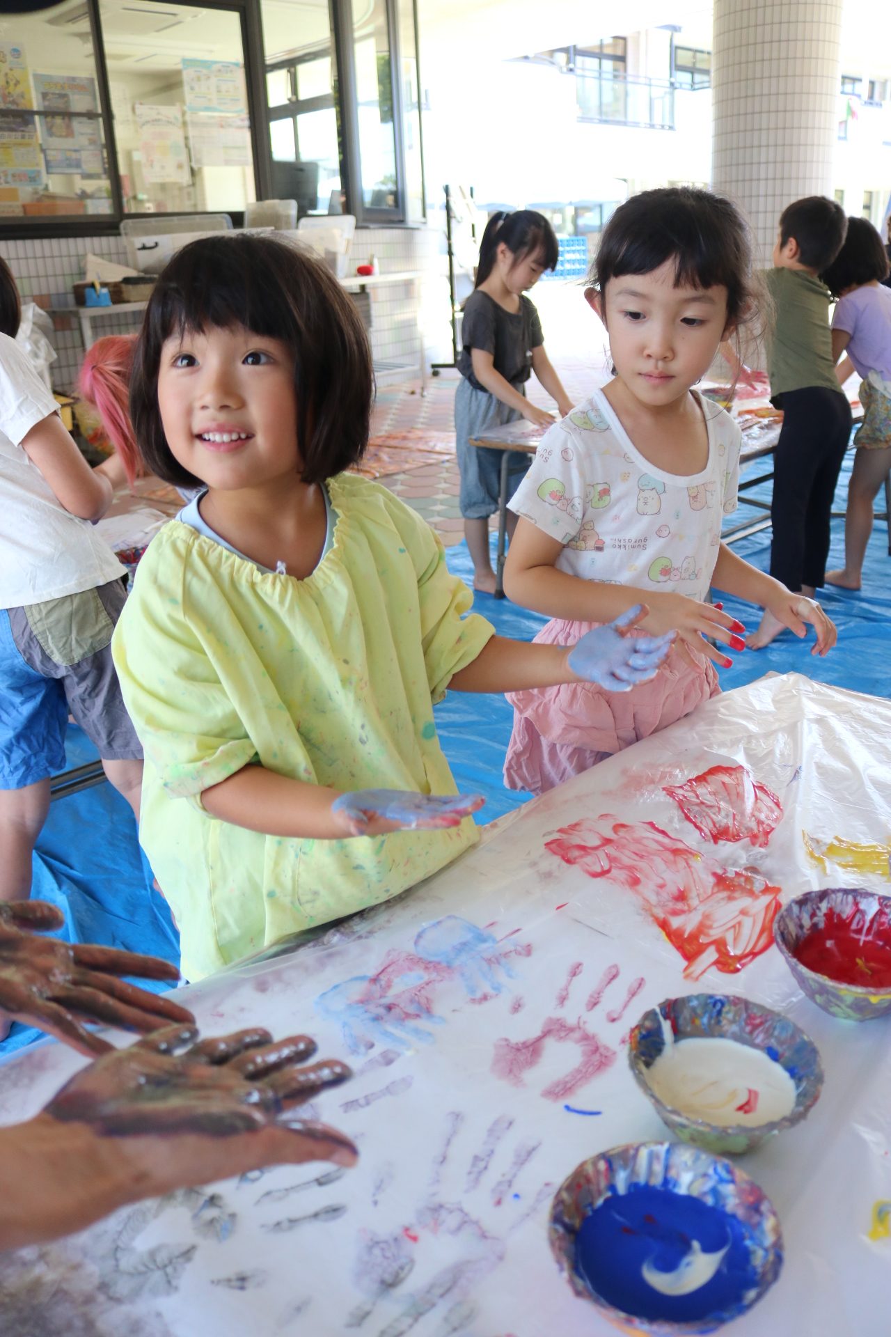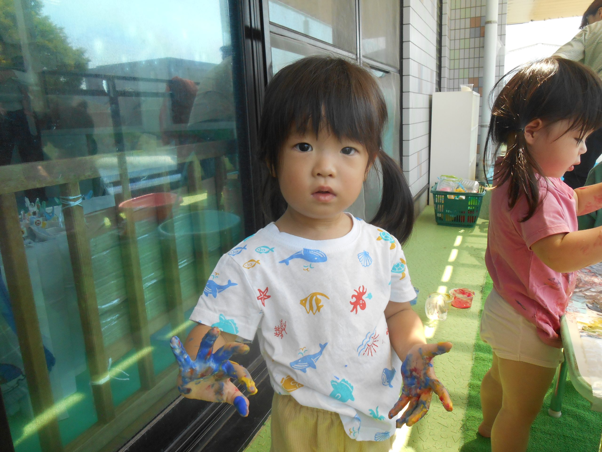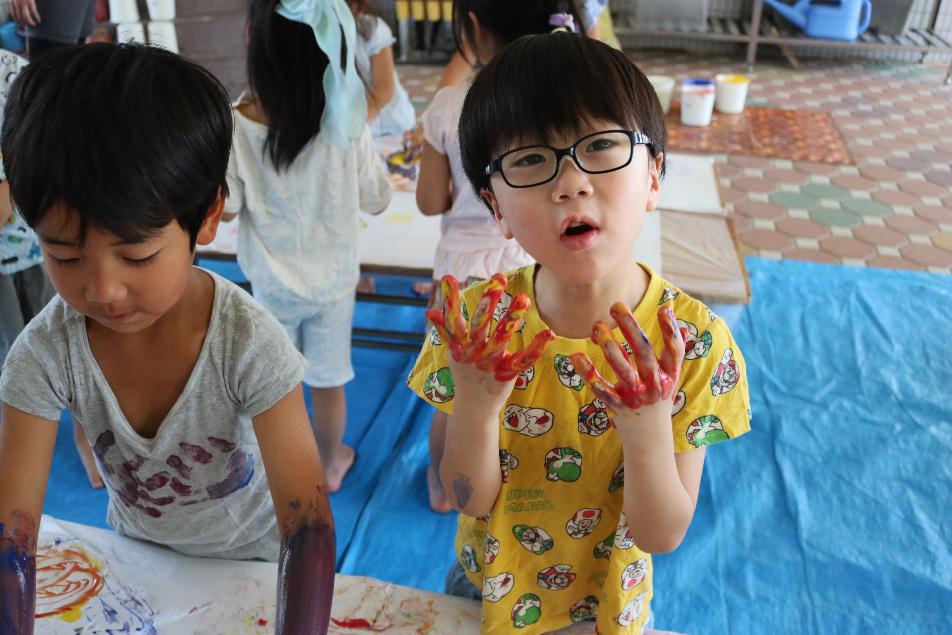 みんな色を混ぜたり、手形をしたりと楽しんでいました😊