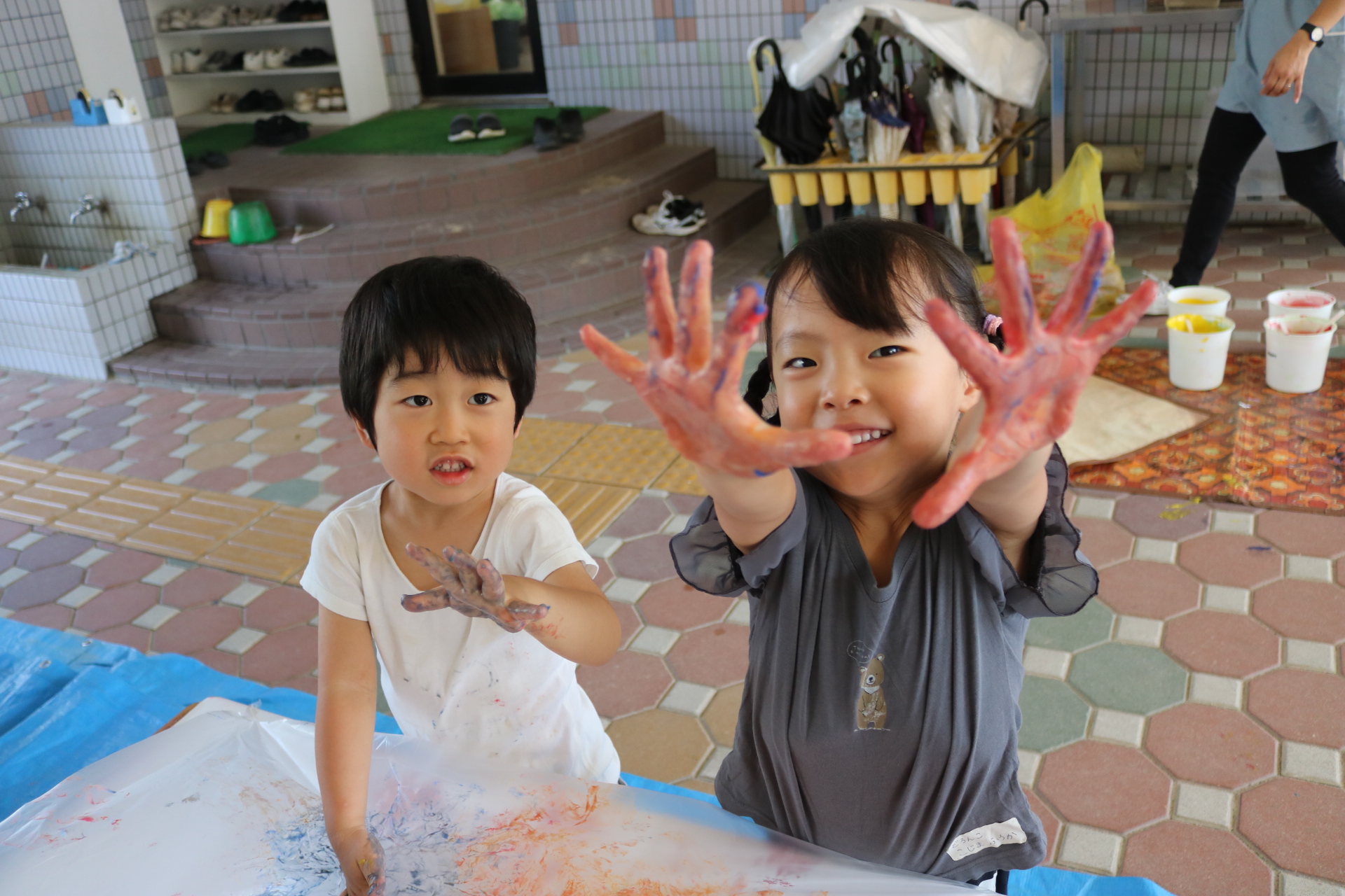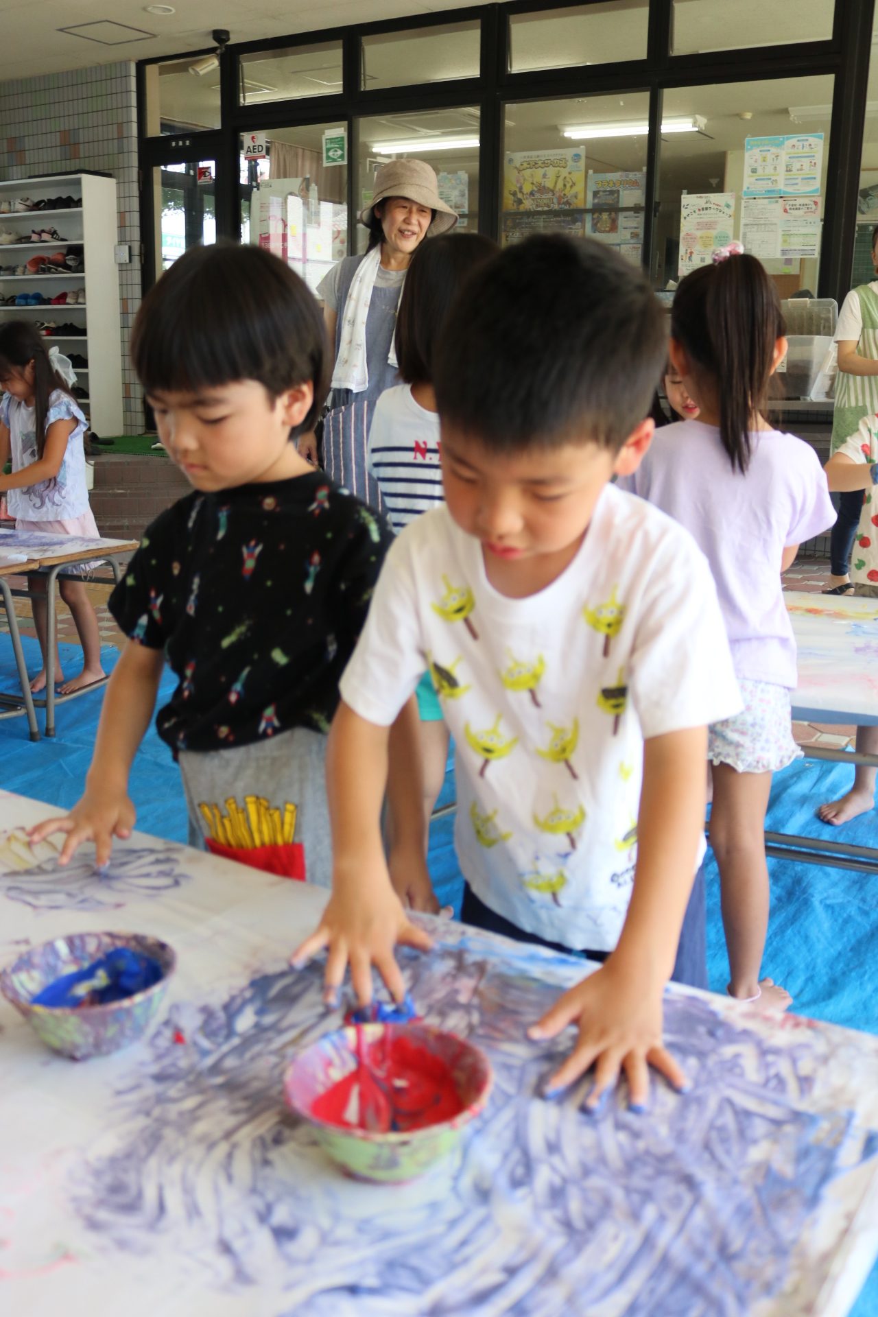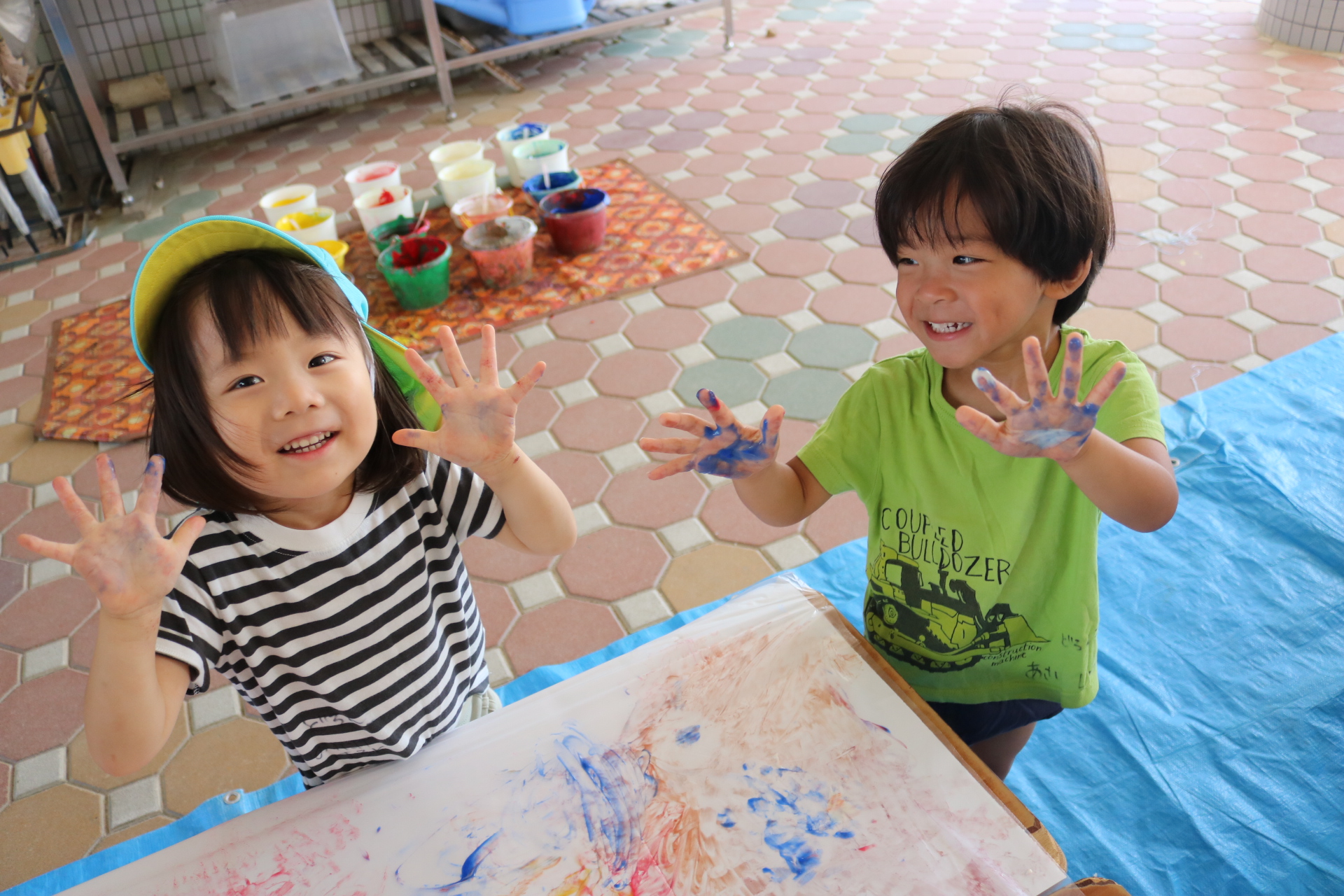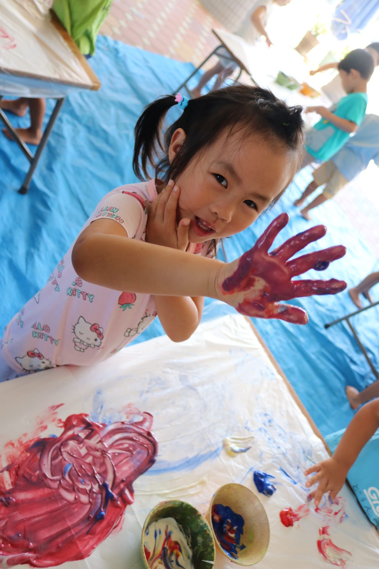 みんな色を混ぜたり、手形をしたりと楽しんでいました😊