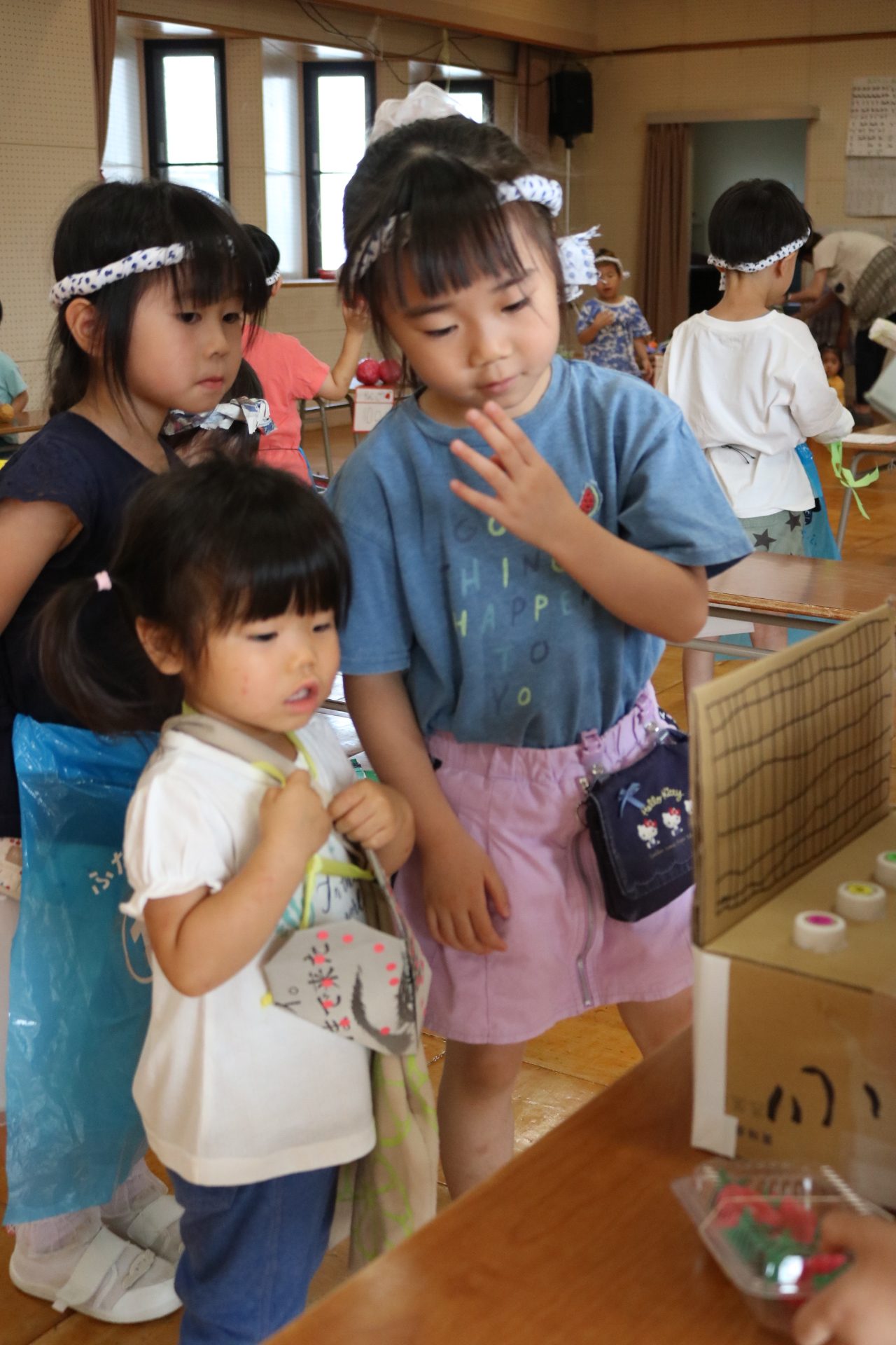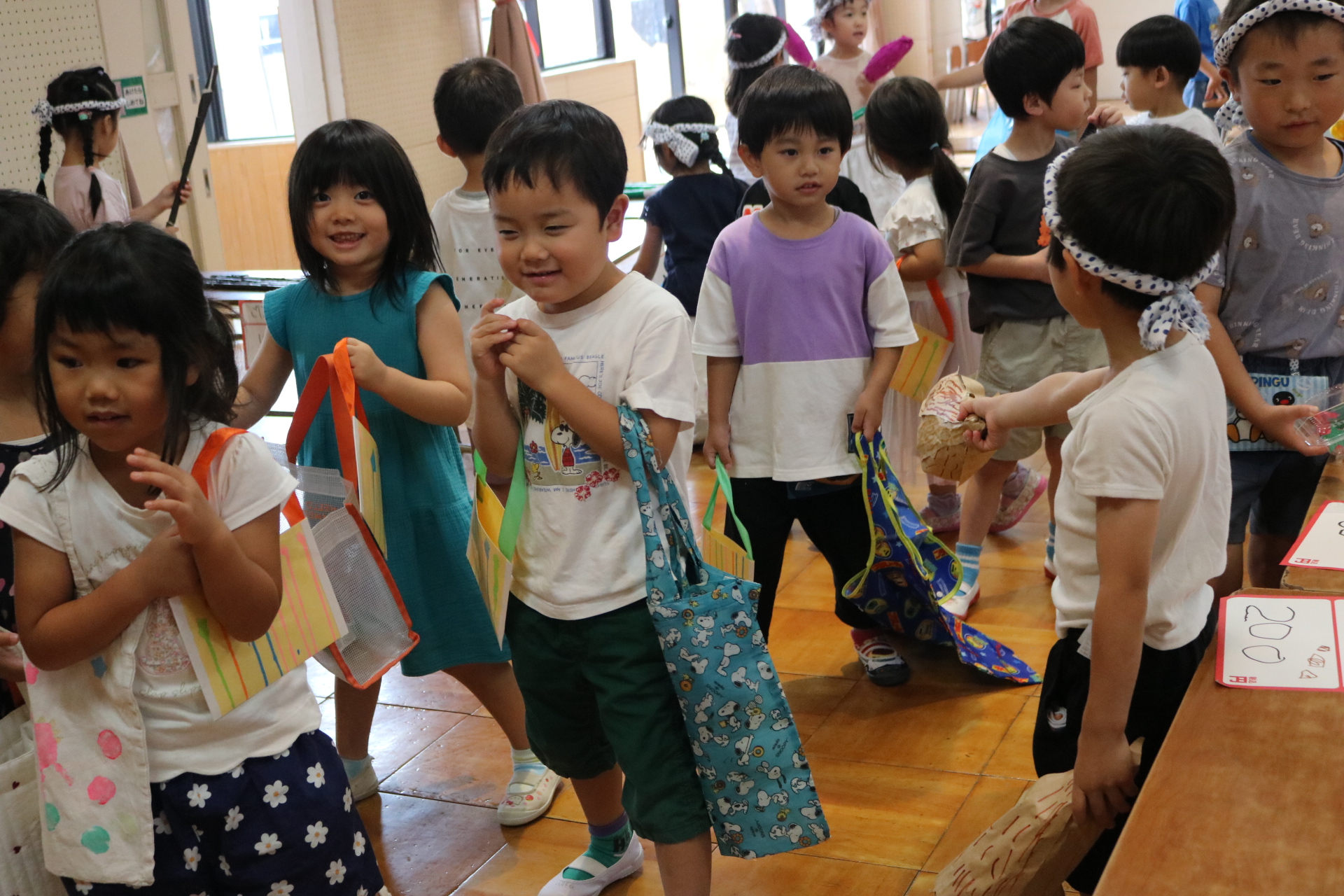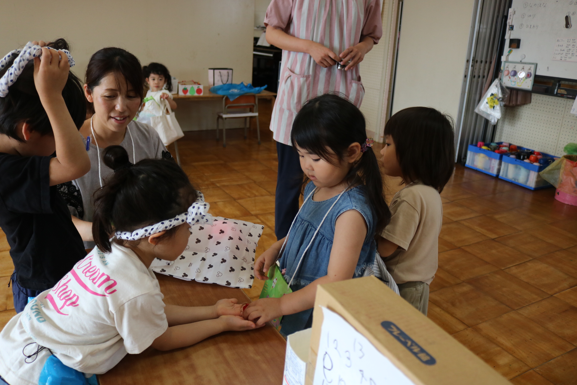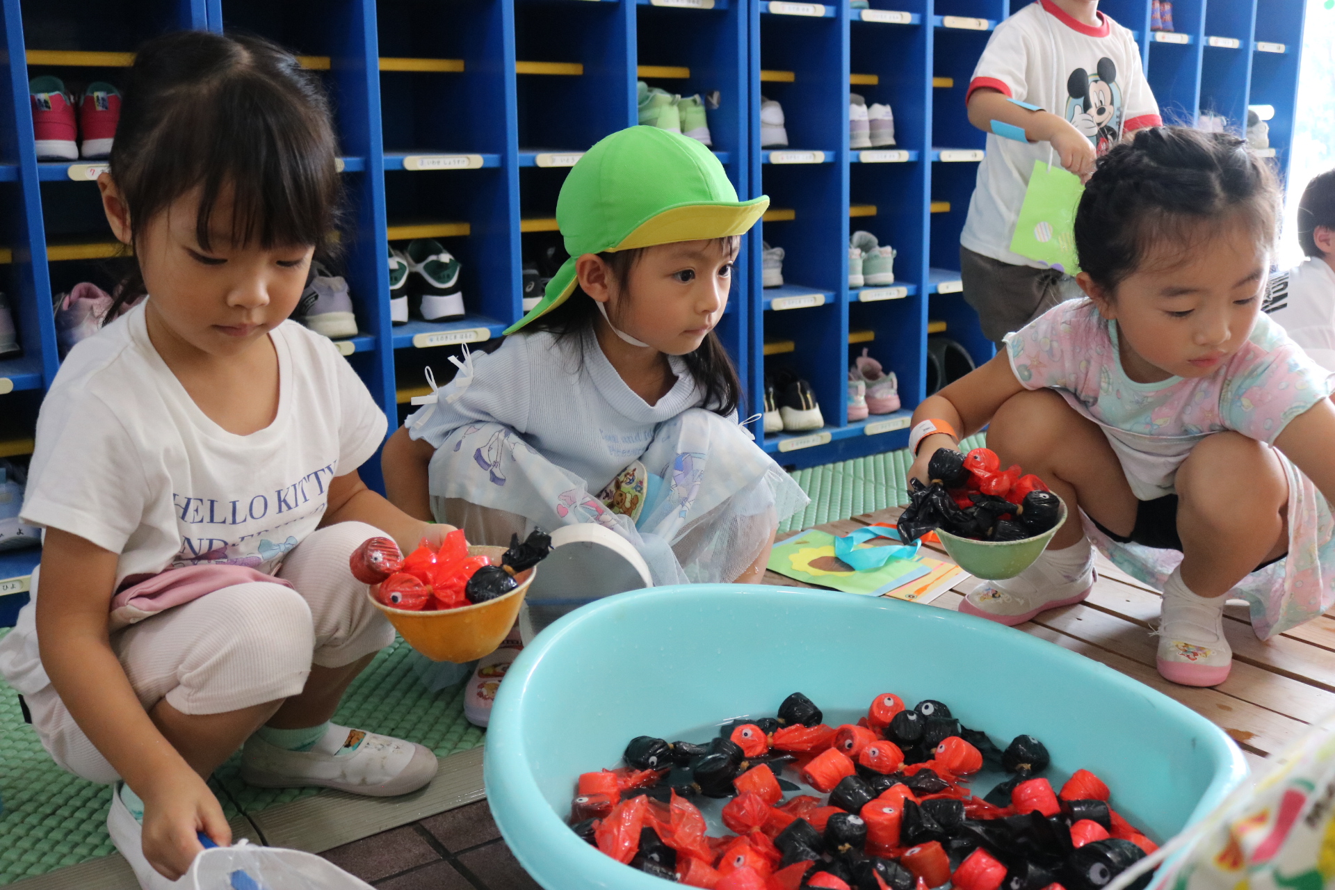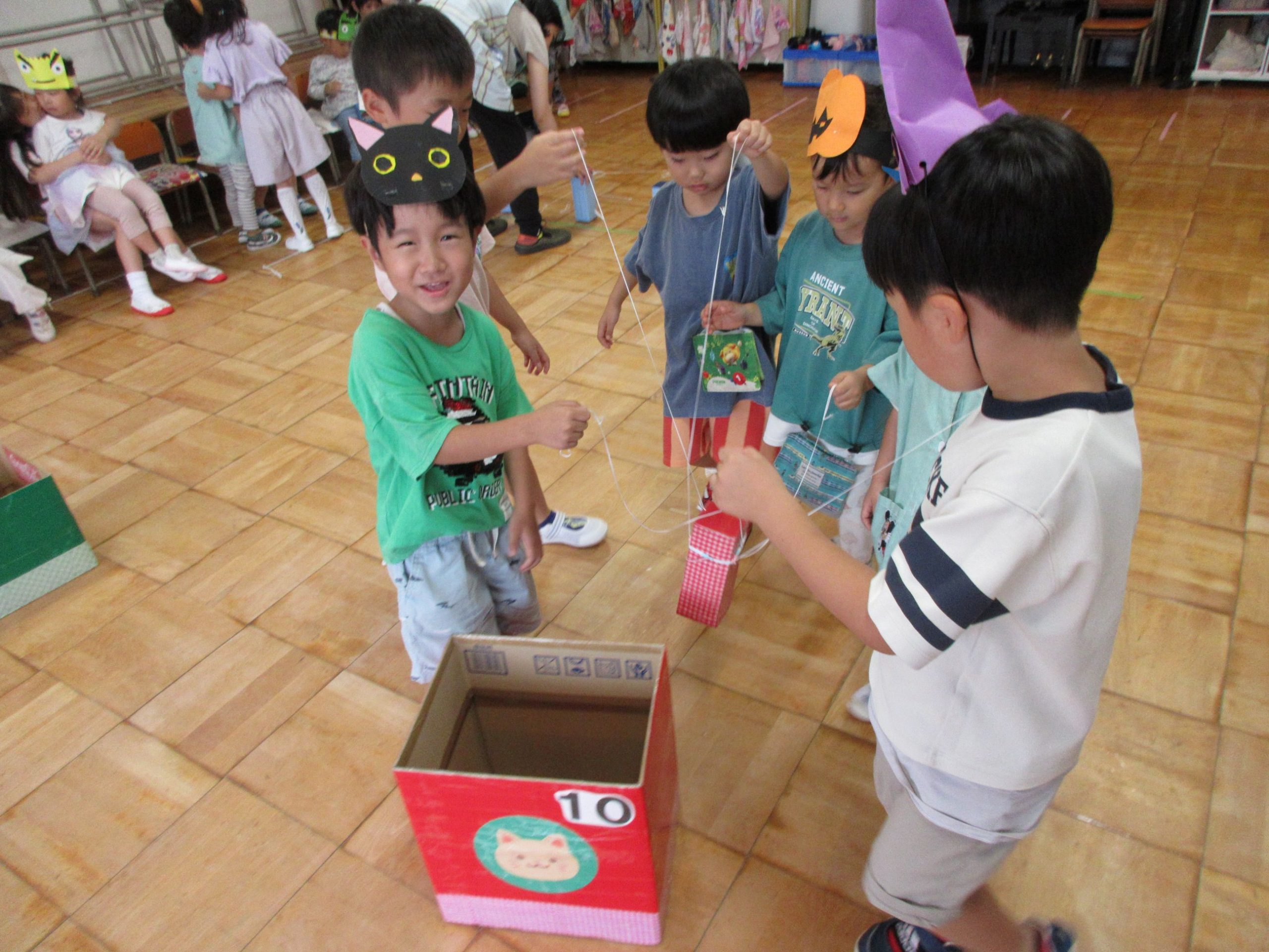 夏祭りに行ったゲームをもう一度みんなで楽しみました😊今回は縦割りで、異年齢児と関わりながら楽しみました!