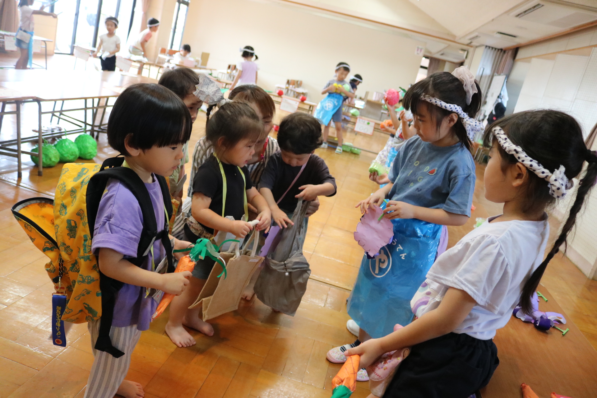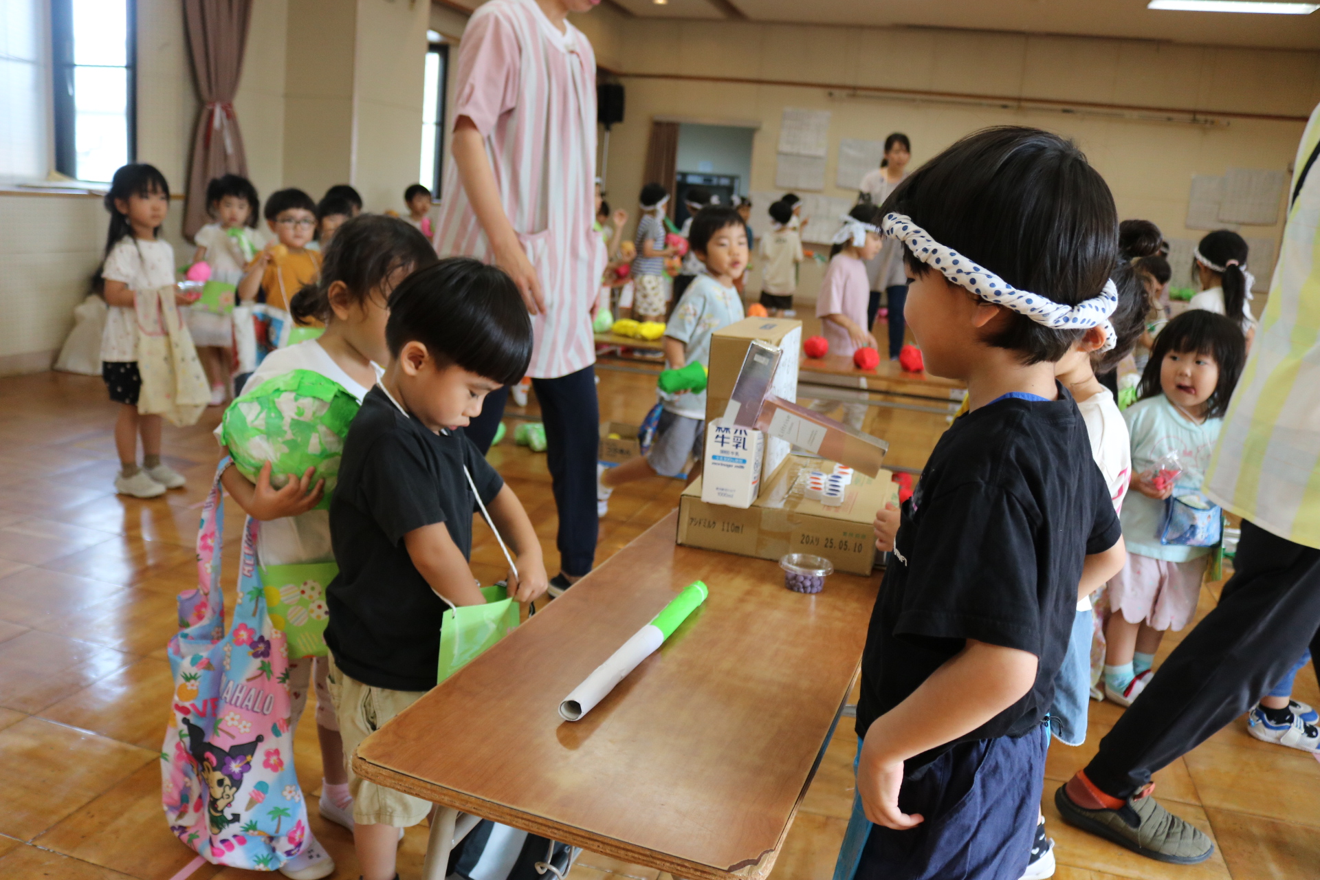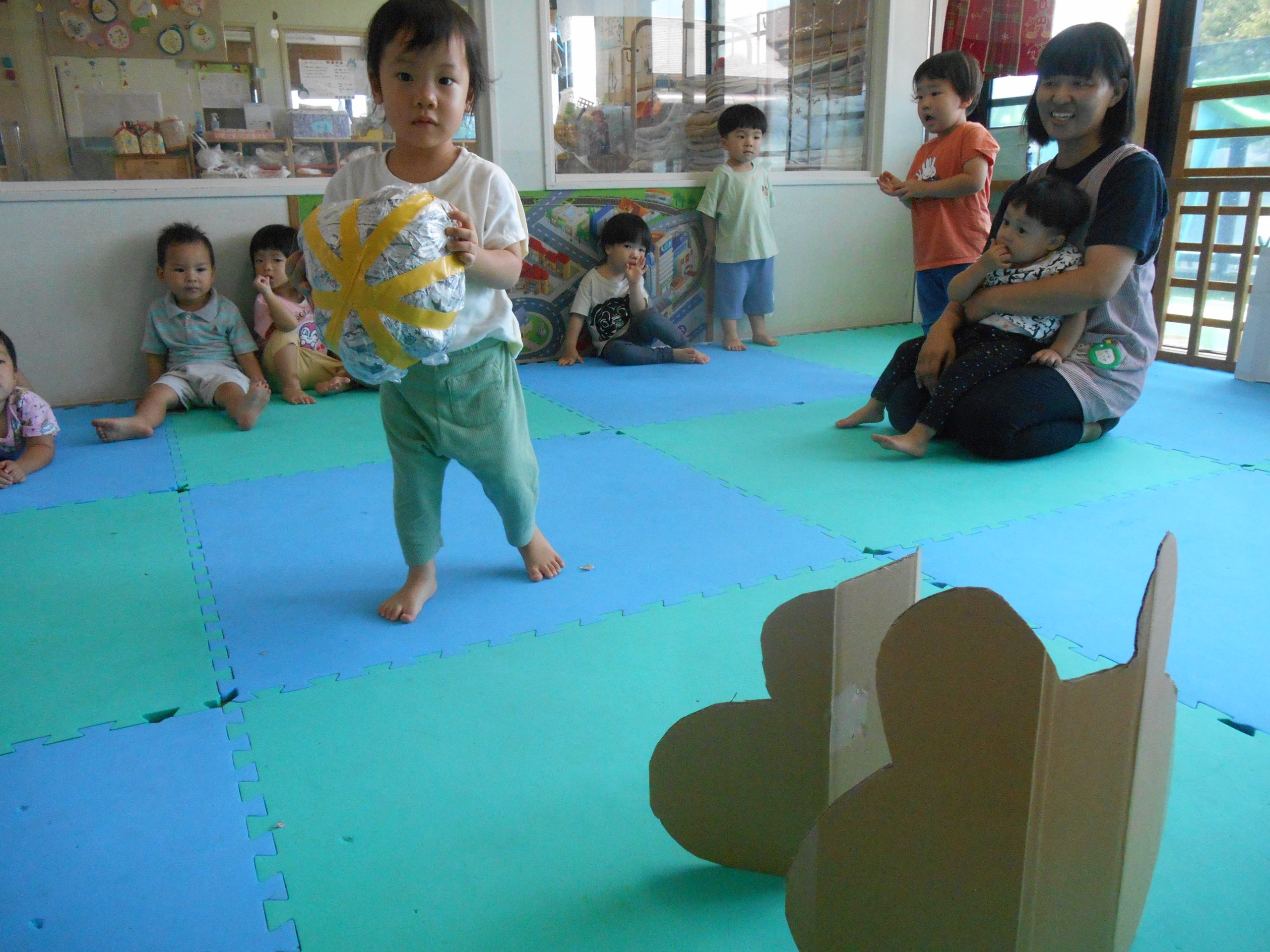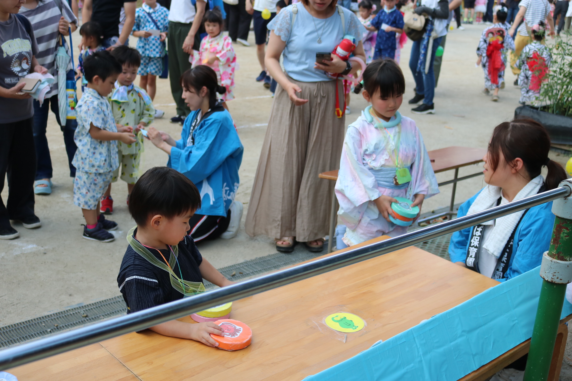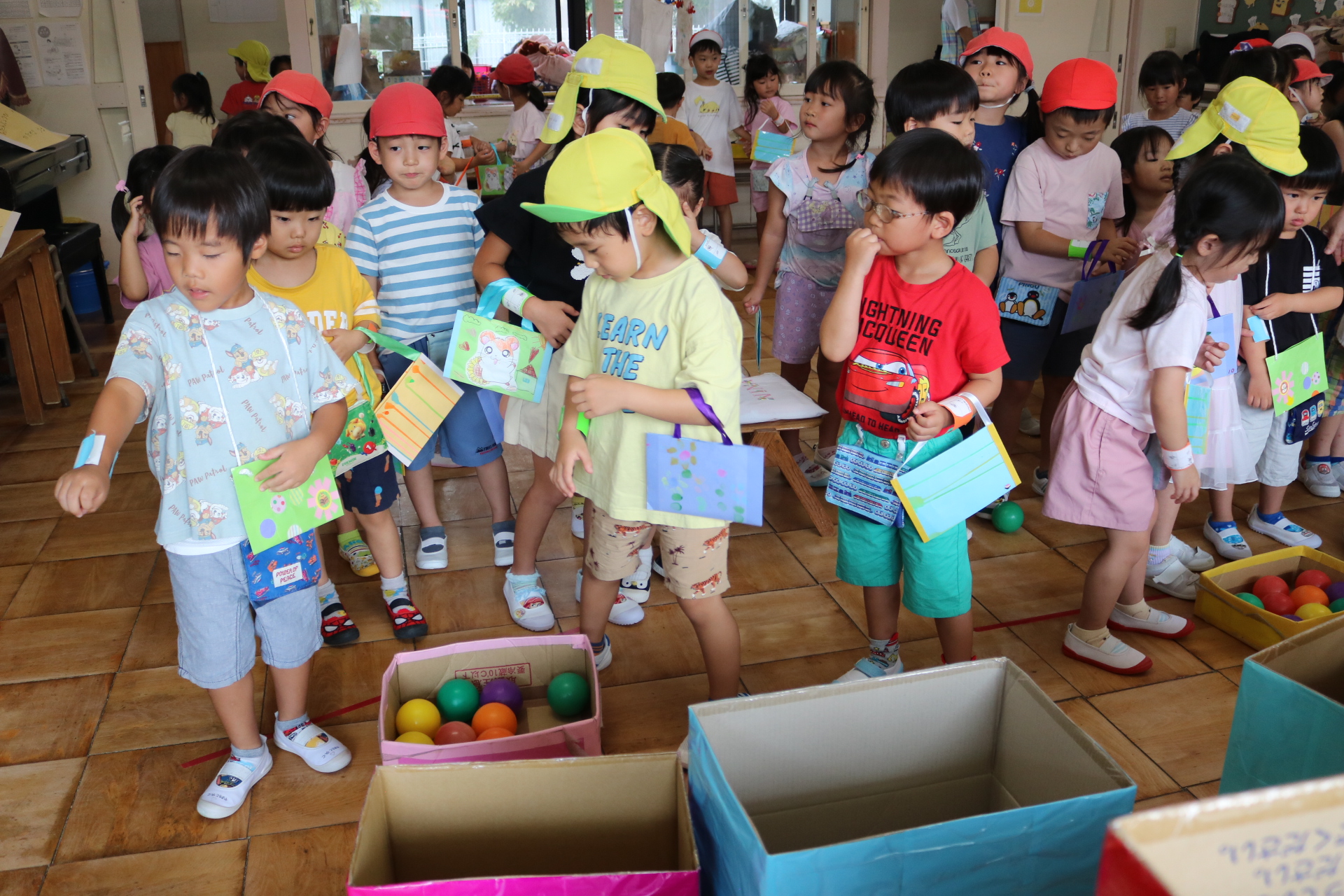 夏祭りに行ったゲームをもう一度みんなで楽しみました😊今回は縦割りで、異年齢児と関わりながら楽しみました!