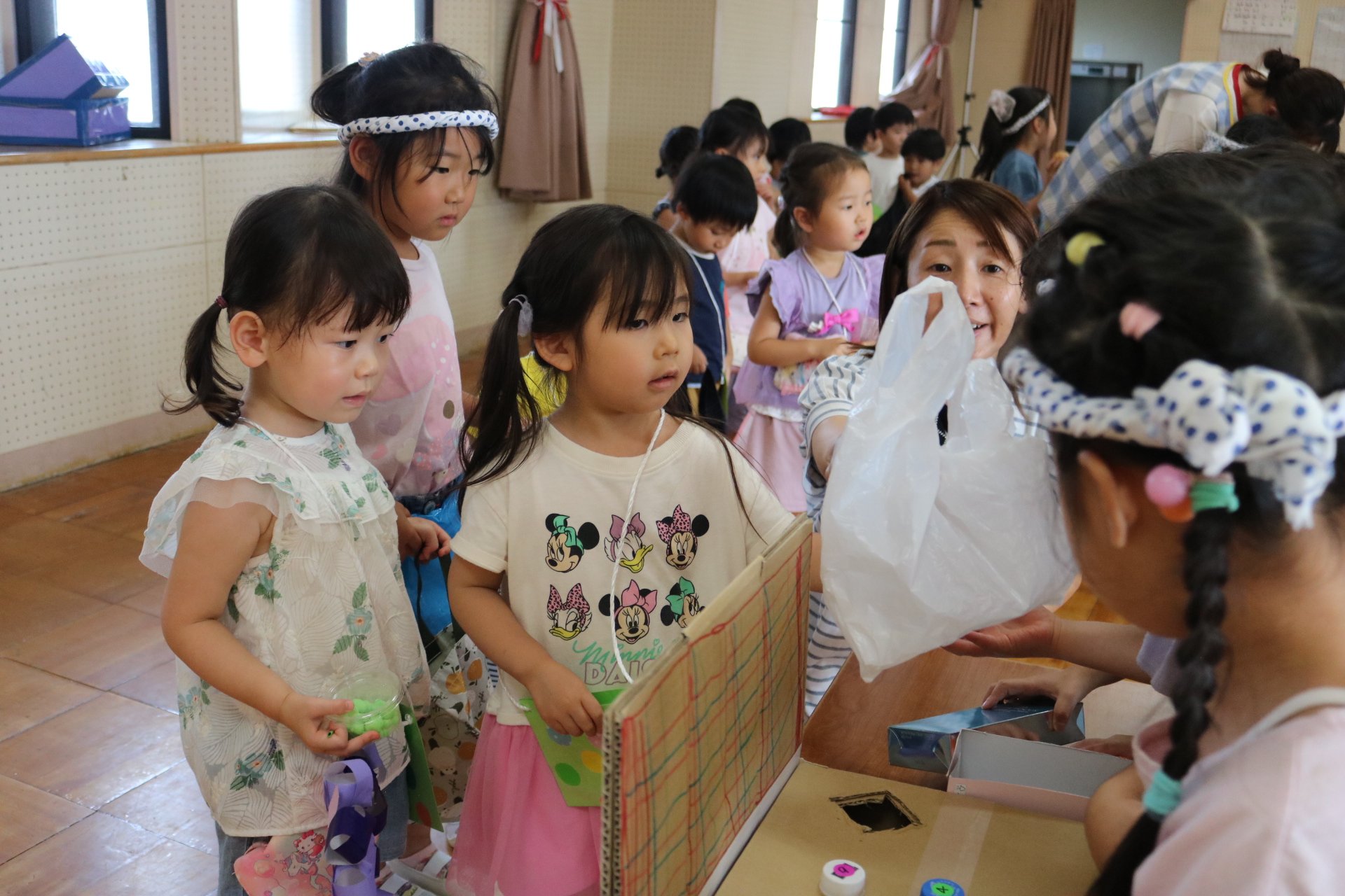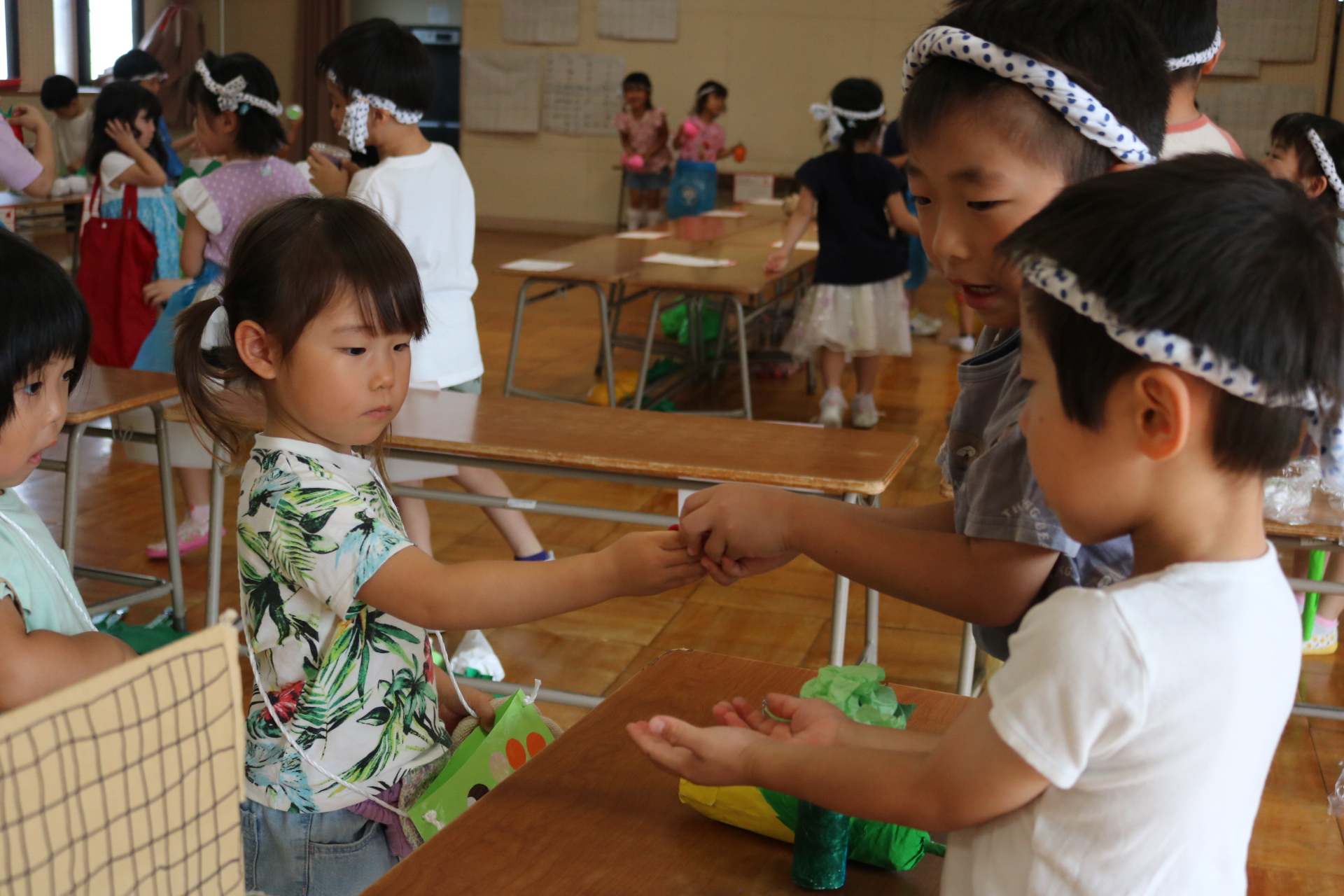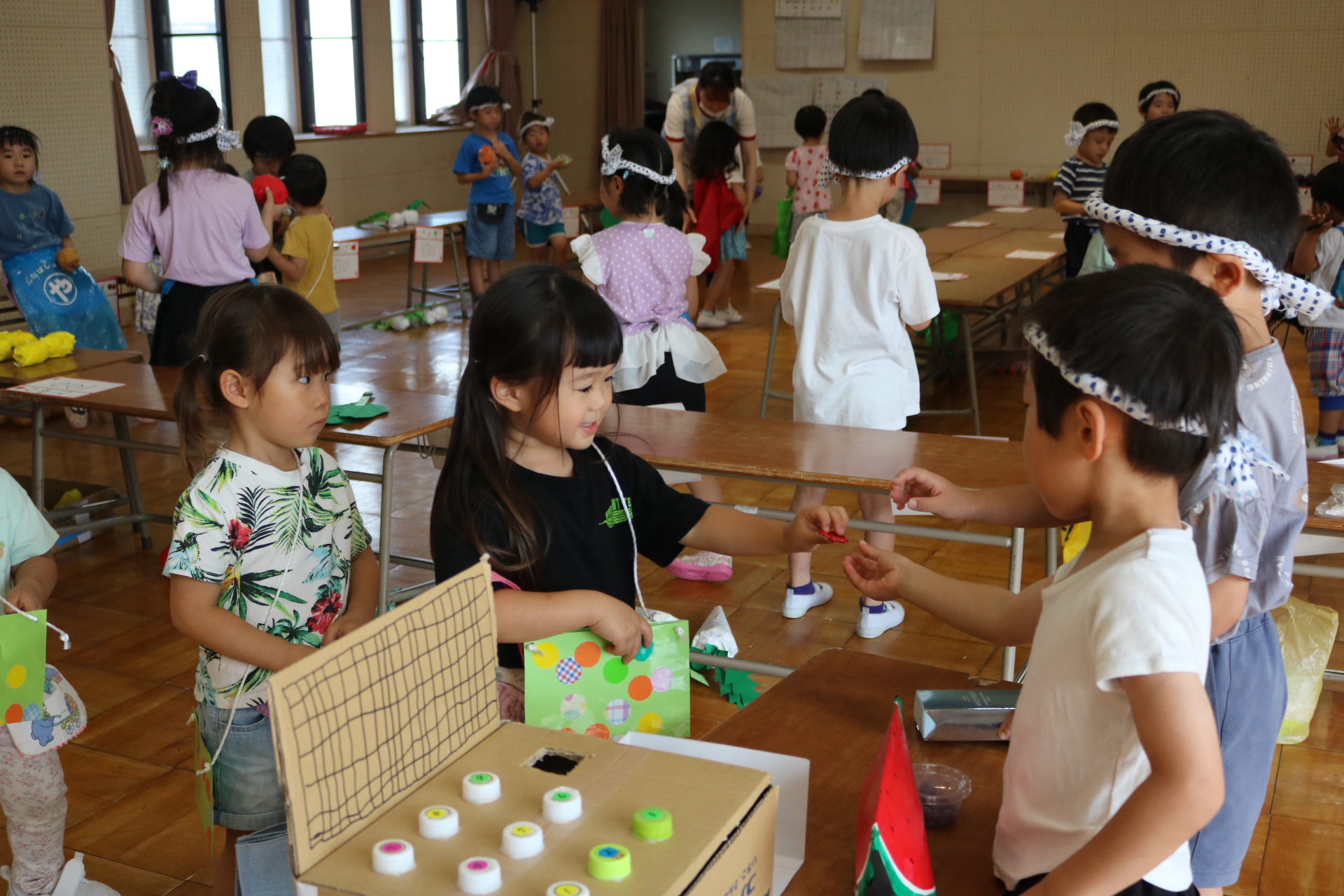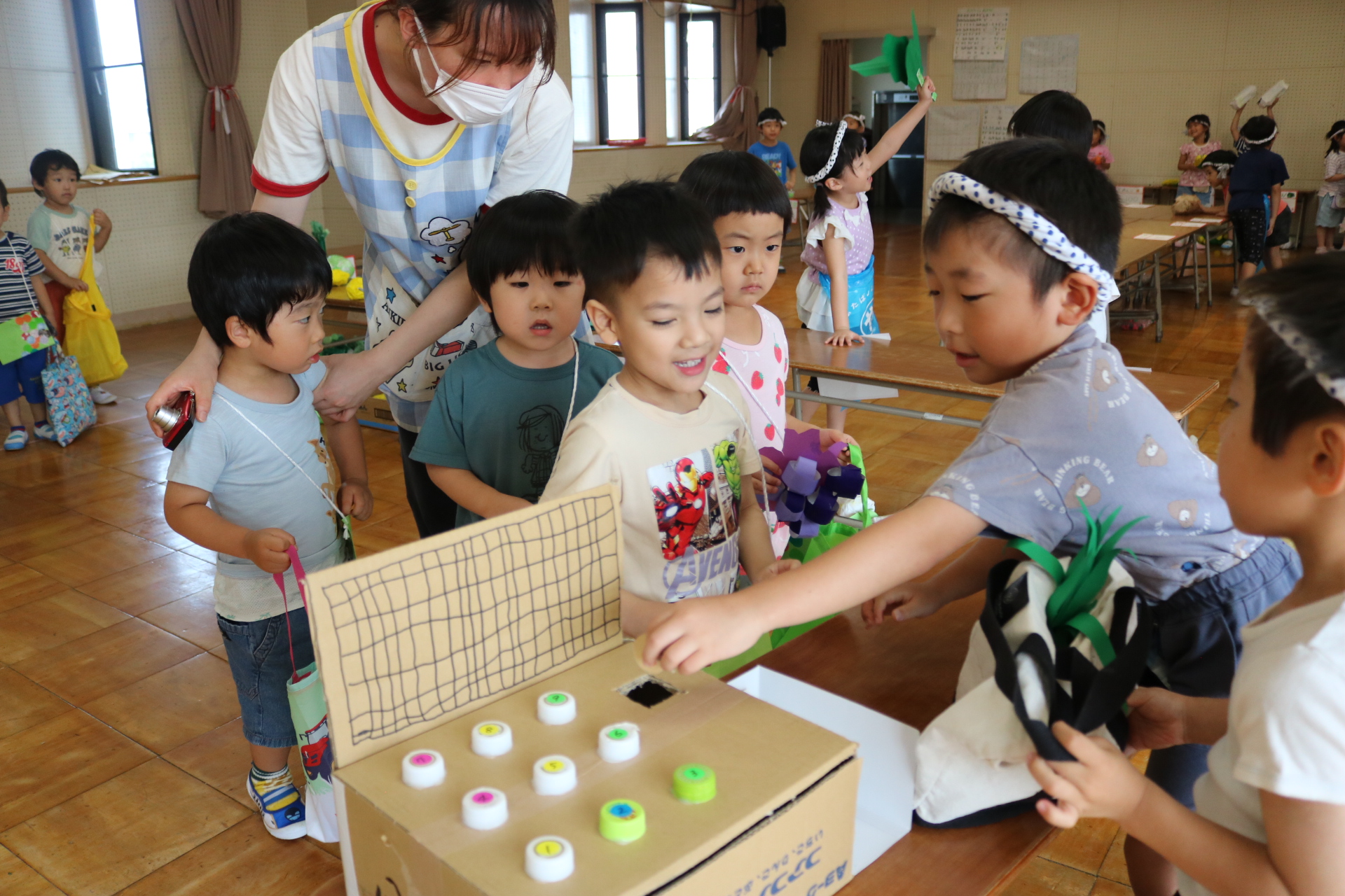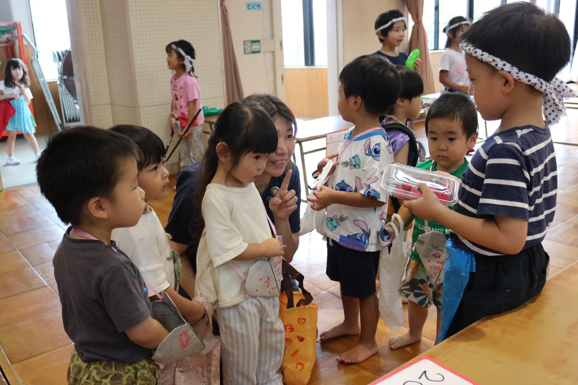 夏祭りに行ったゲームをもう一度みんなで楽しみました😊今回は縦割りで、異年齢児と関わりながら楽しみました!