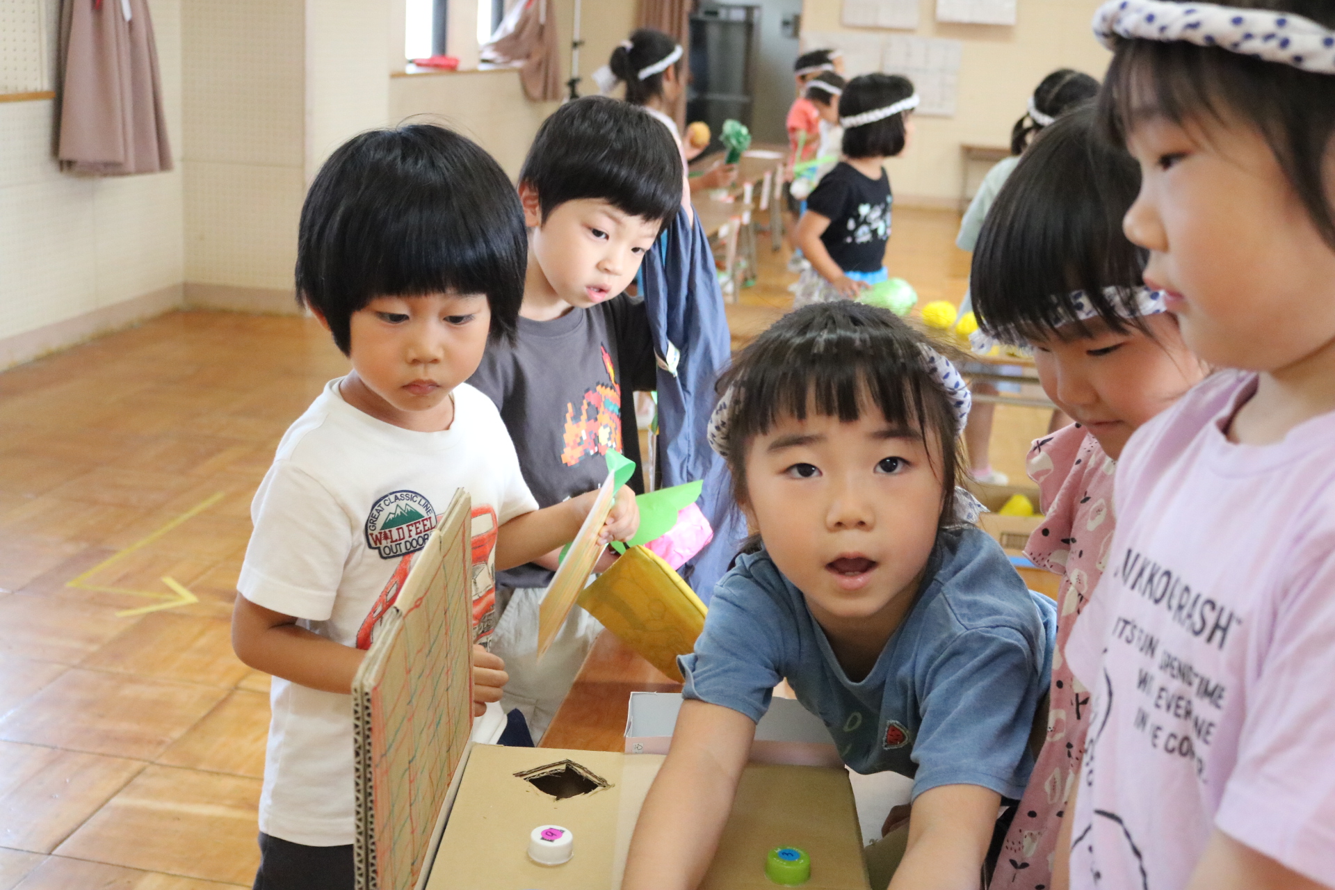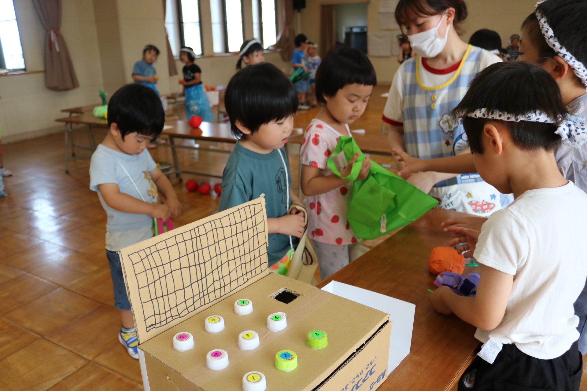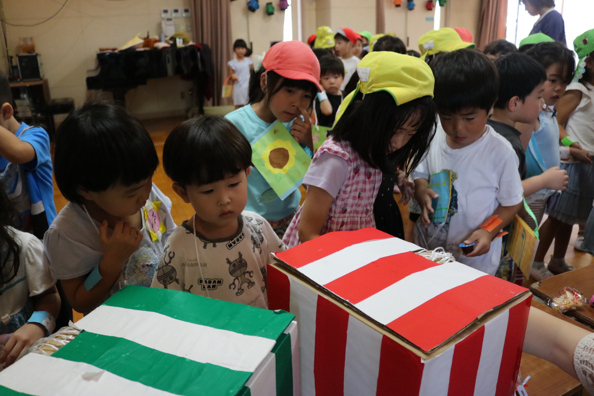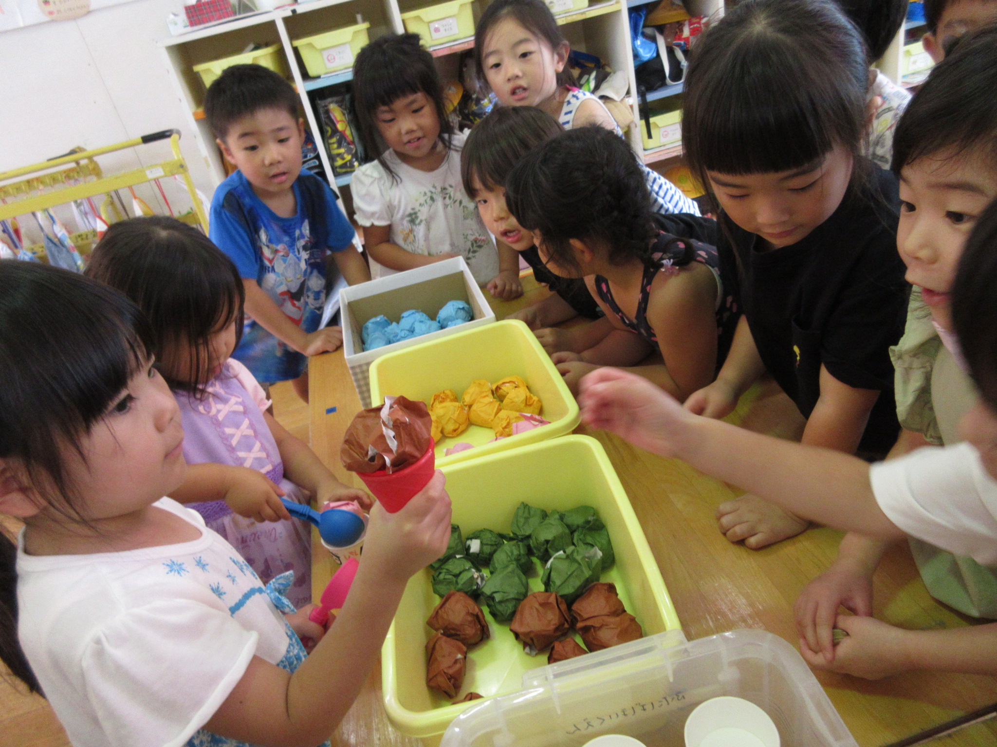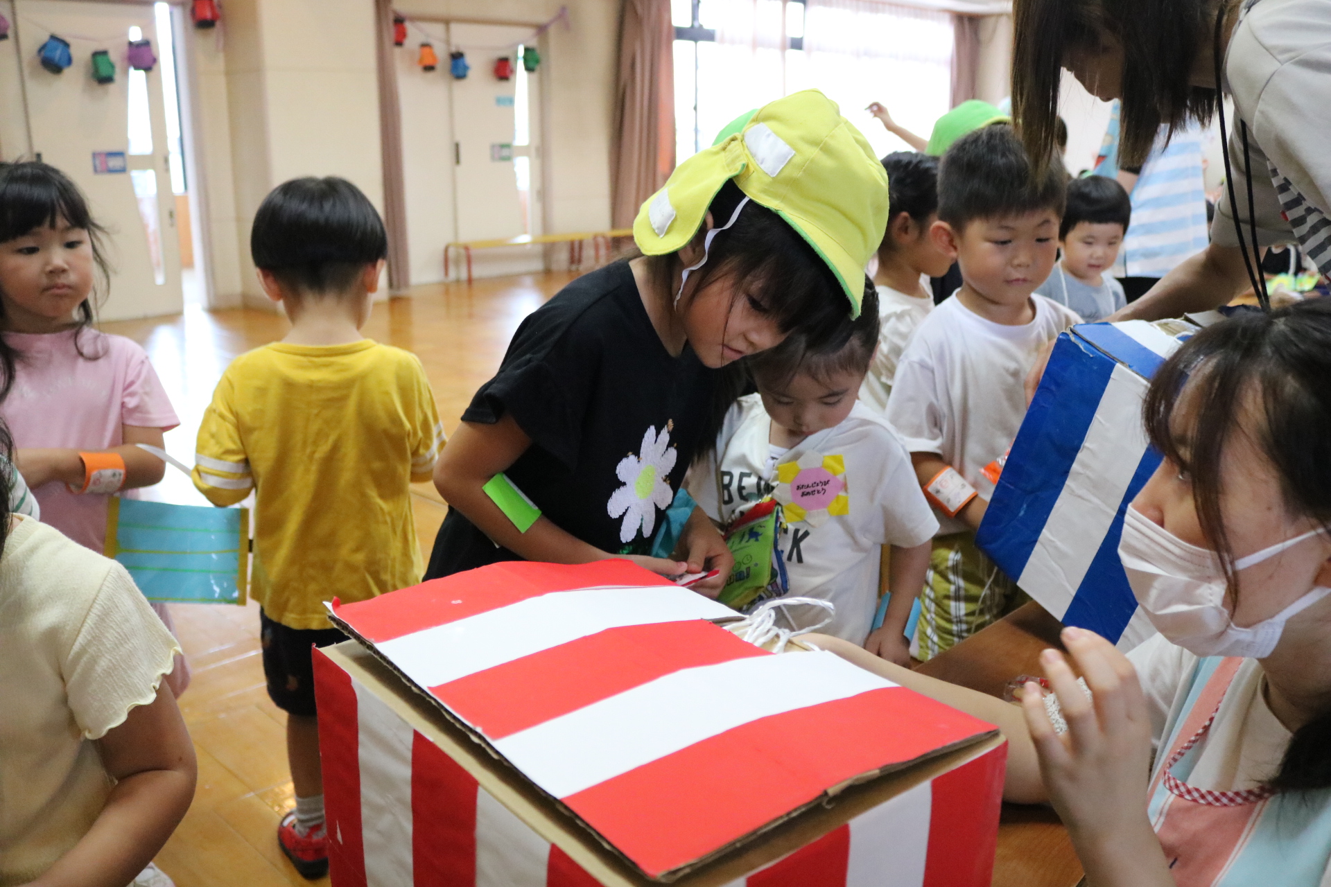 夏祭りに行ったゲームをもう一度みんなで楽しみました😊今回は縦割りで、異年齢児と関わりながら楽しみました!