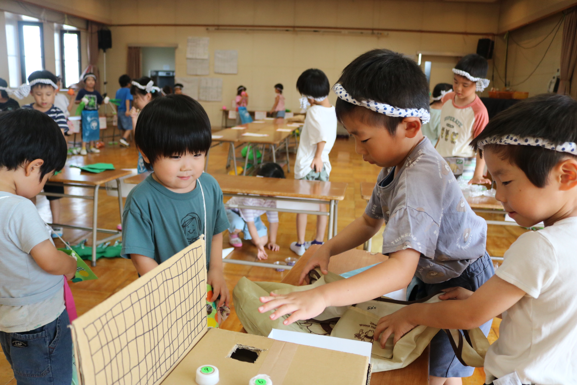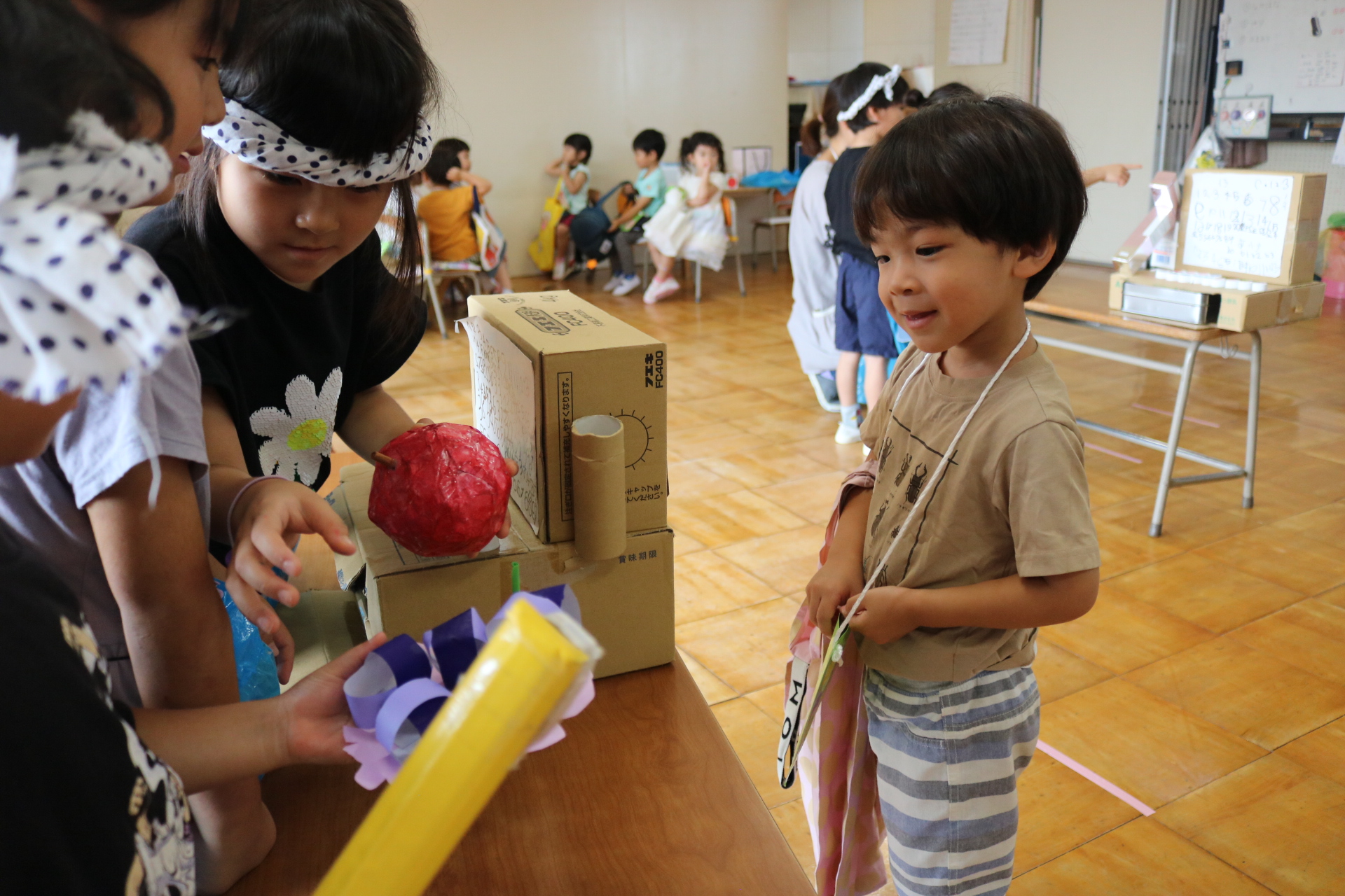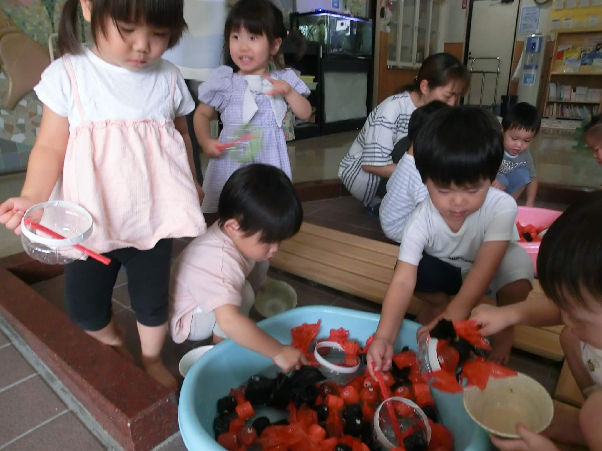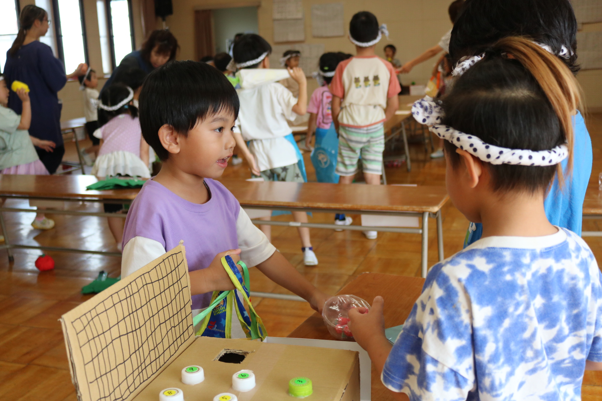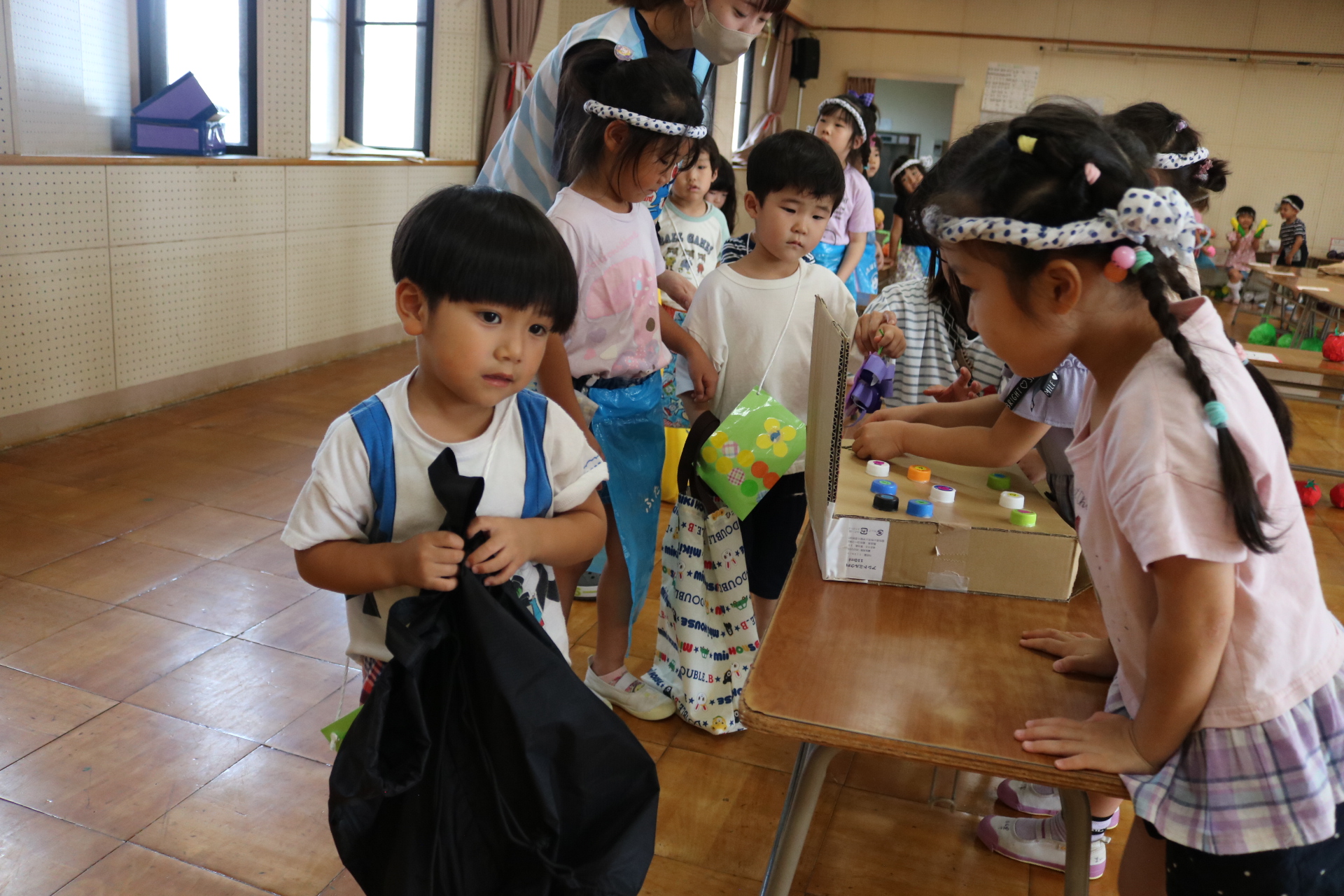 夏祭りに行ったゲームをもう一度みんなで楽しみました😊今回は縦割りで、異年齢児と関わりながら楽しみました!