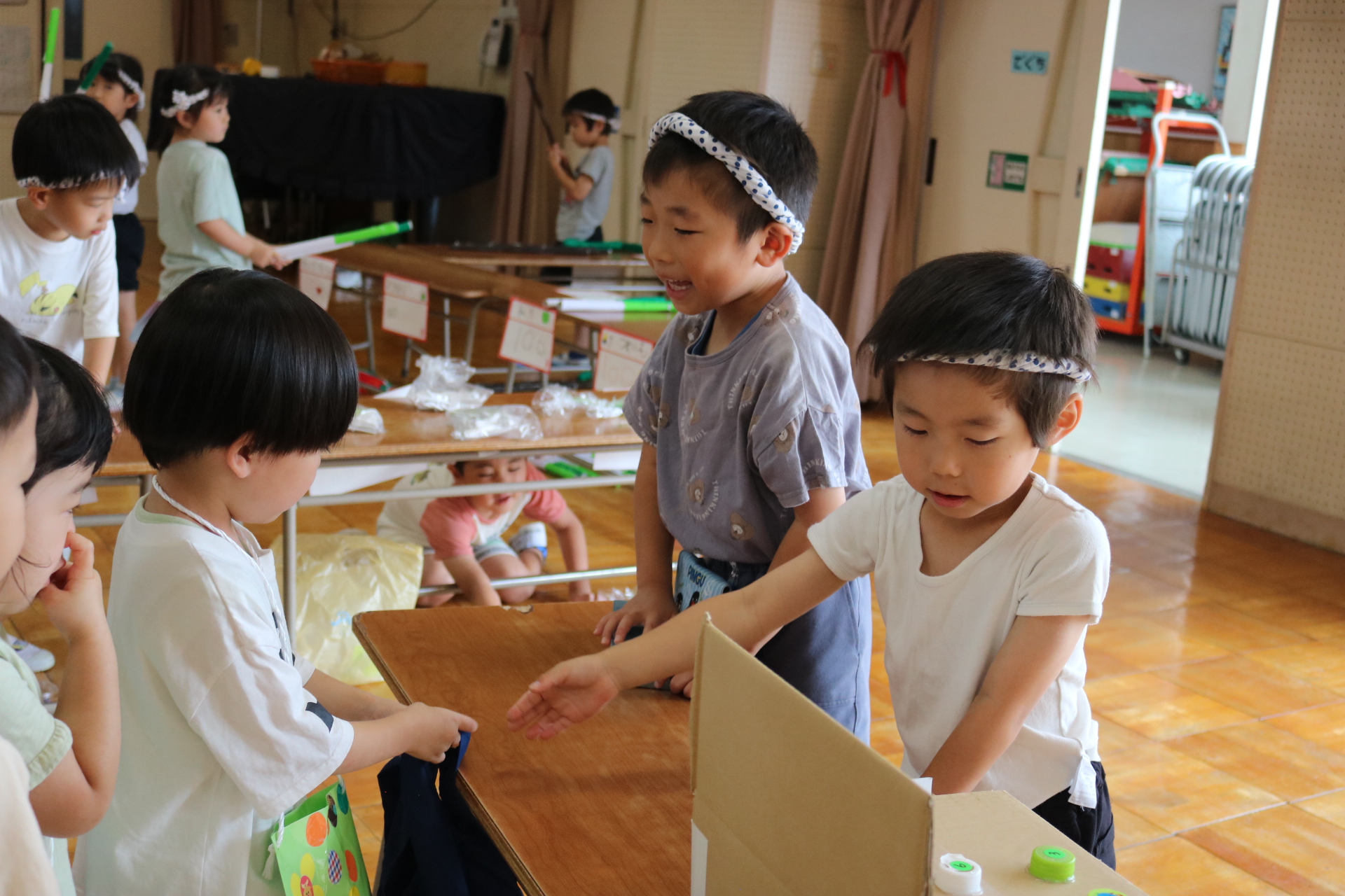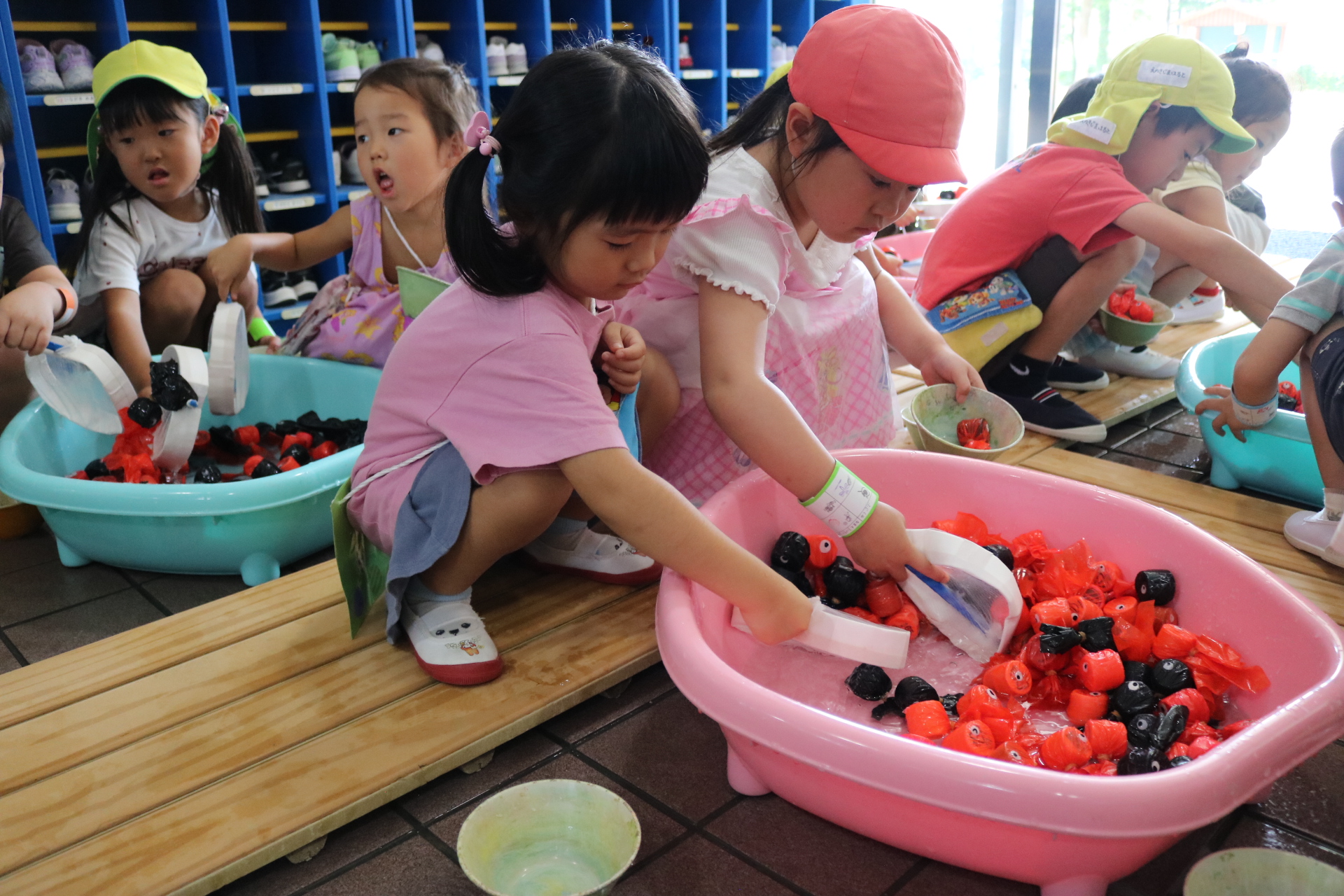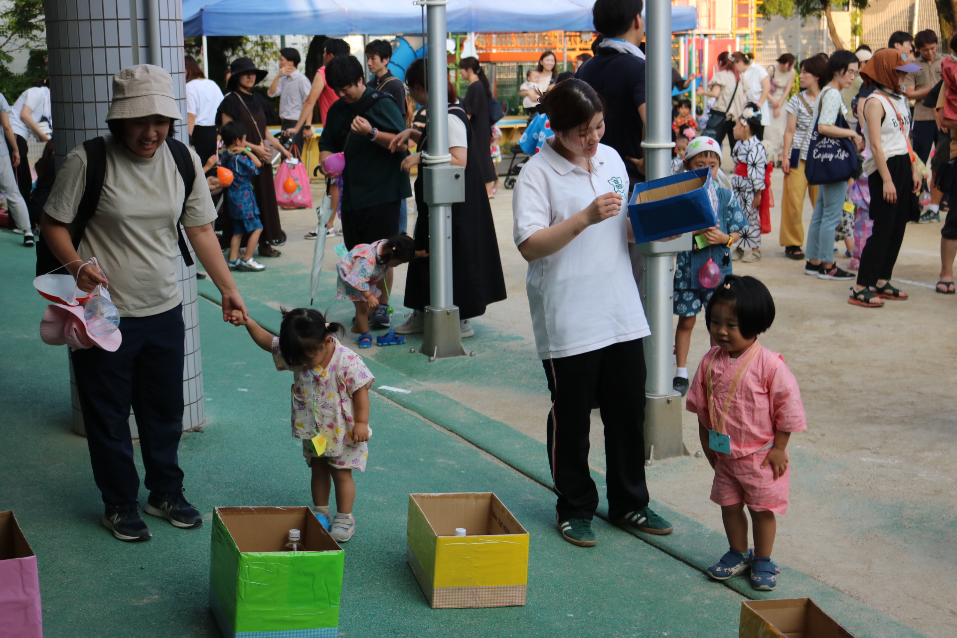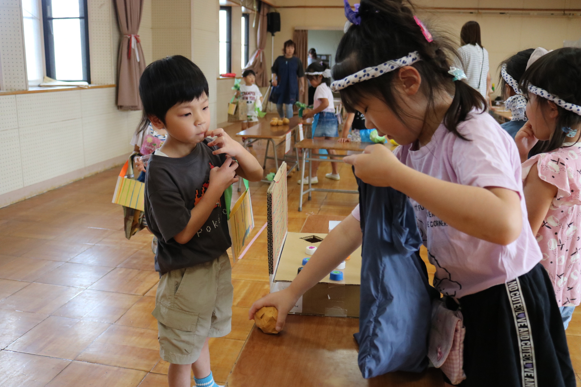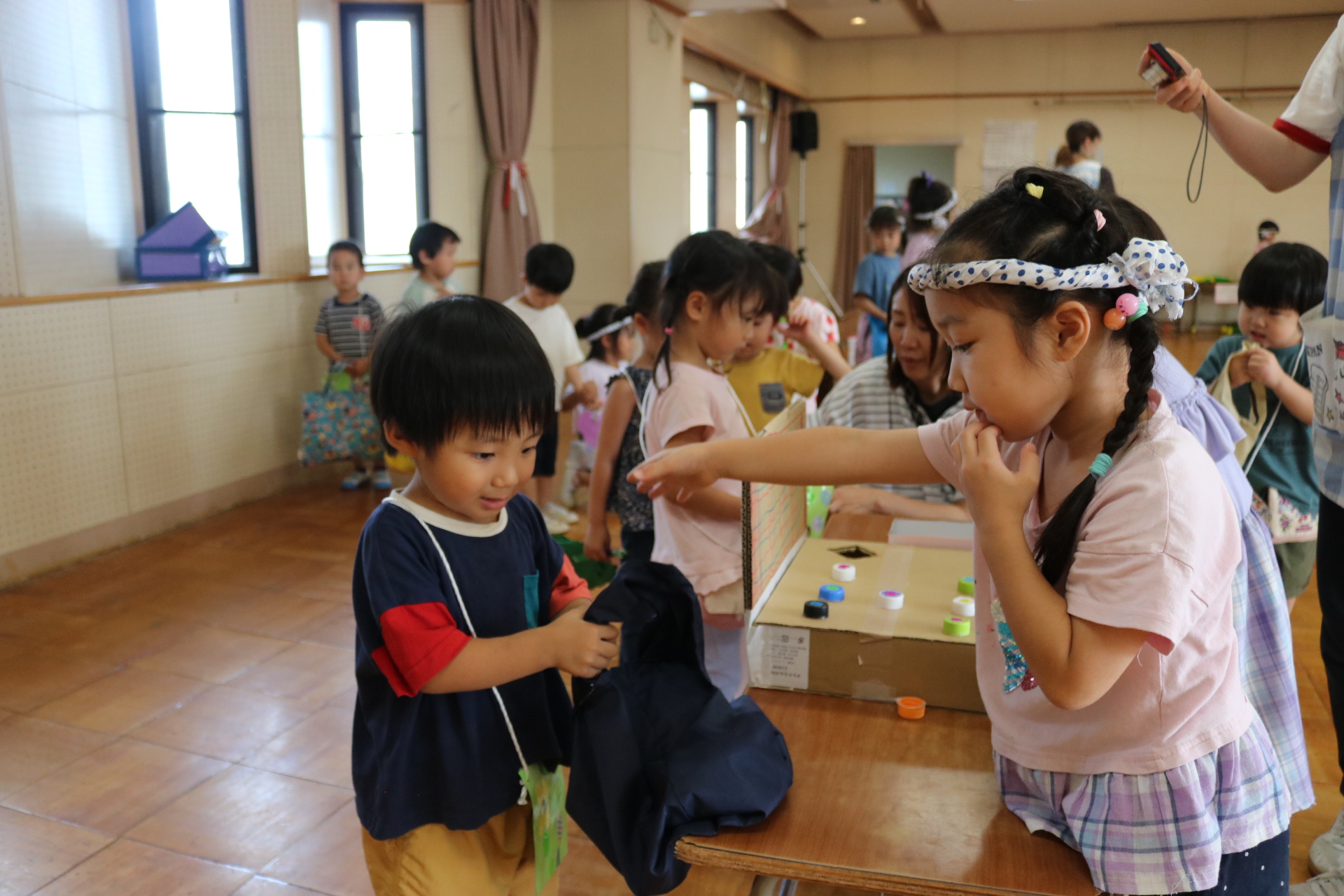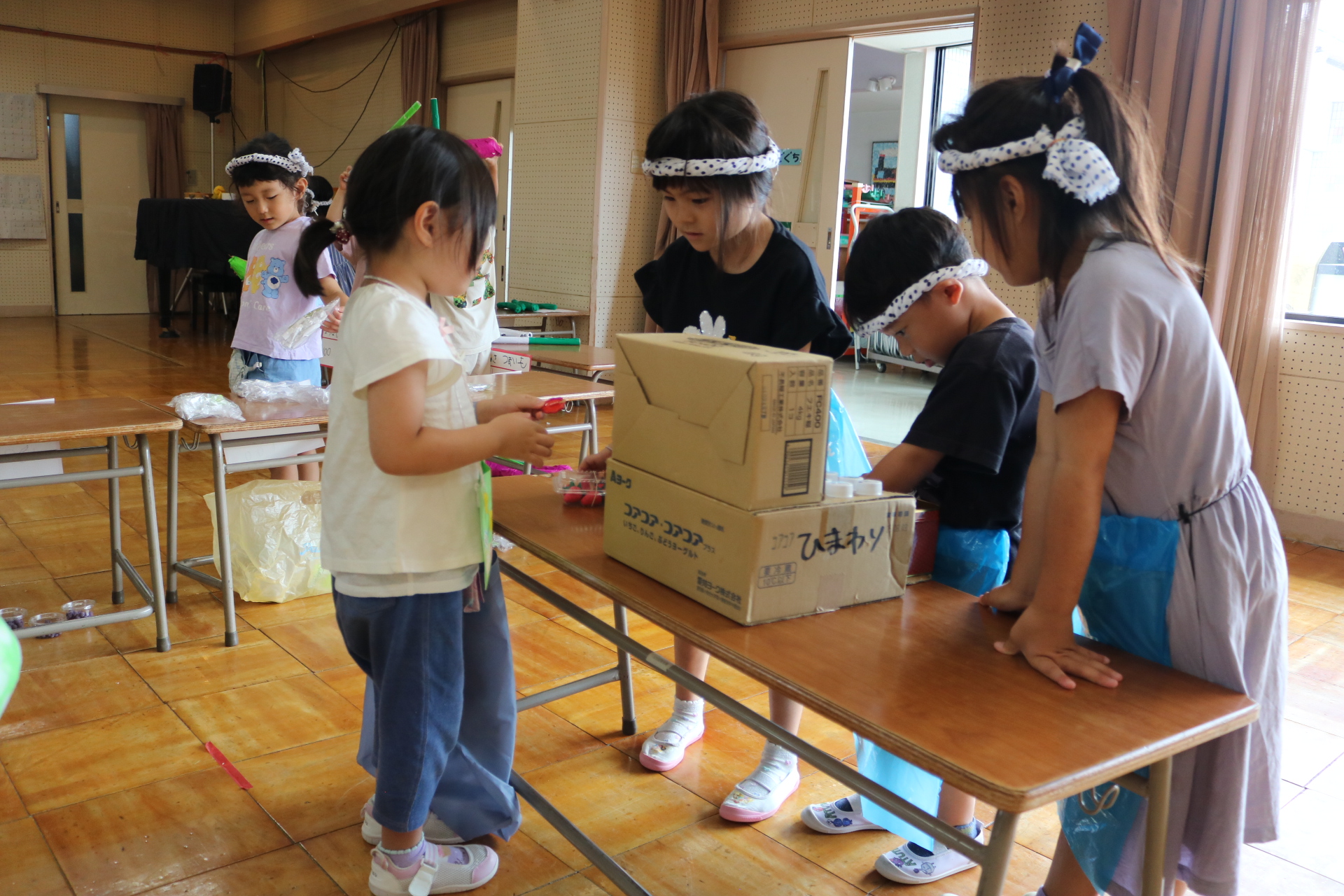 夏祭りに行ったゲームをもう一度みんなで楽しみました😊今回は縦割りで、異年齢児と関わりながら楽しみました!