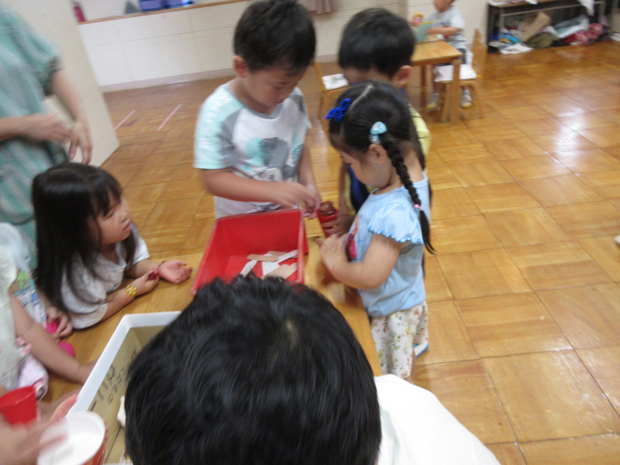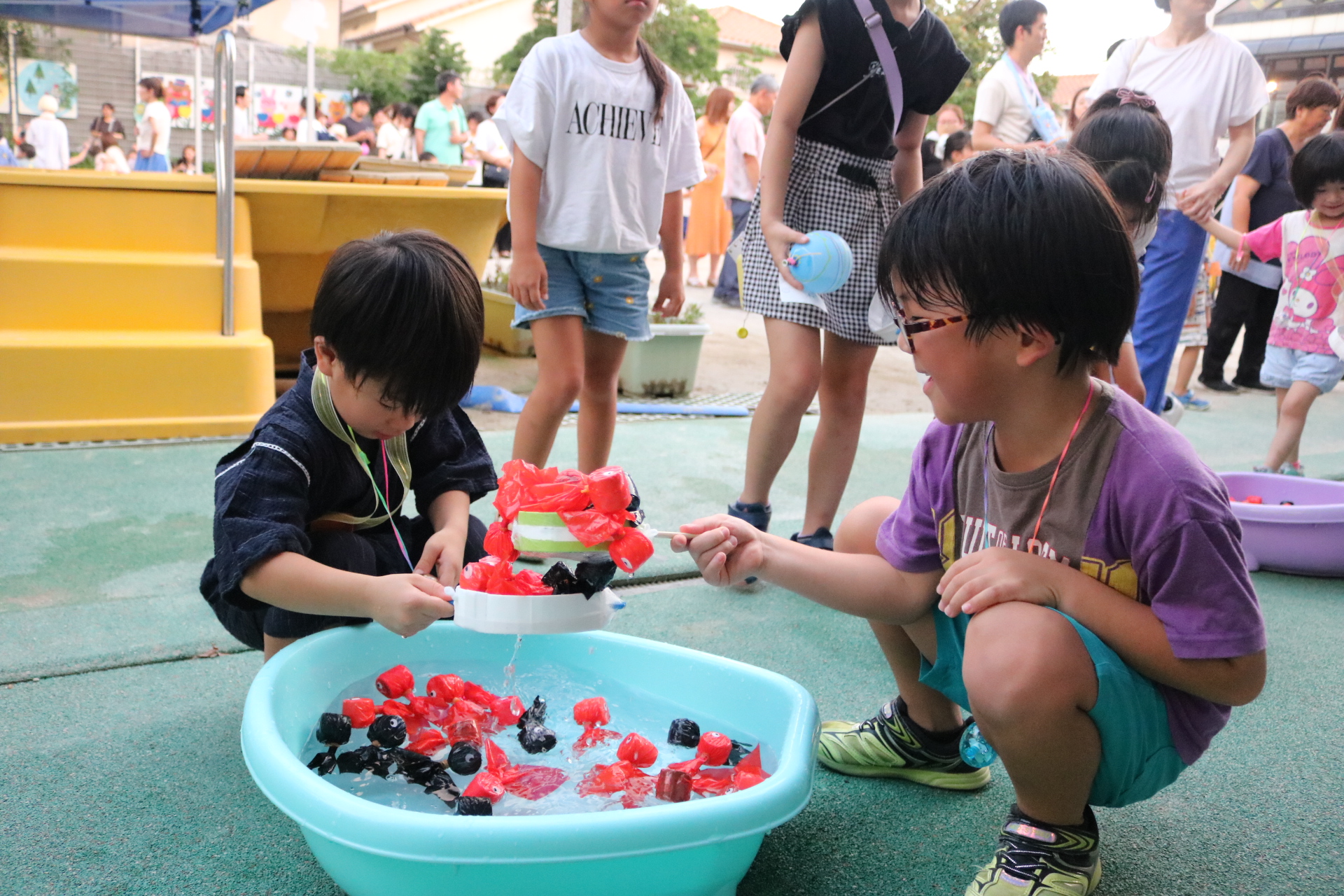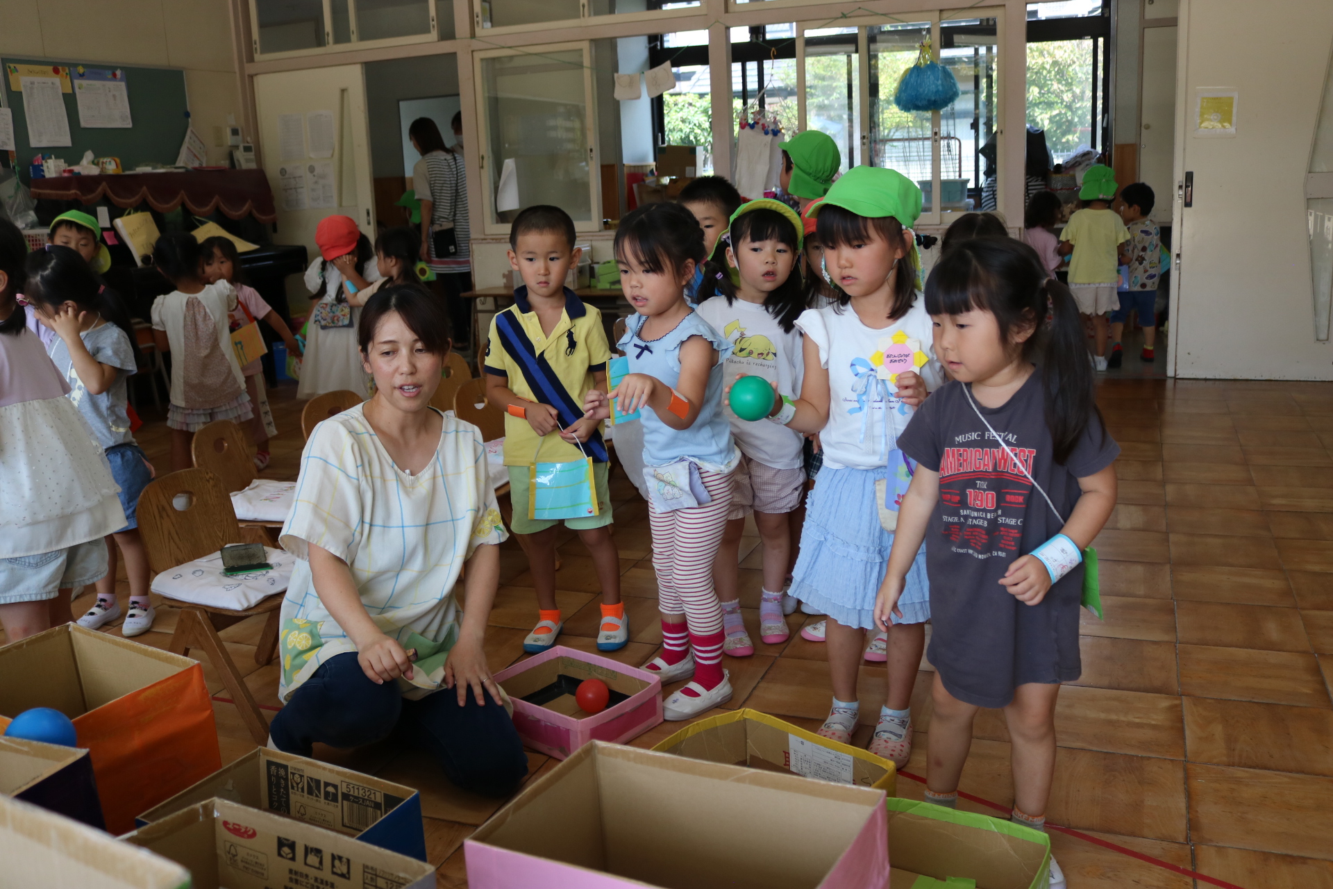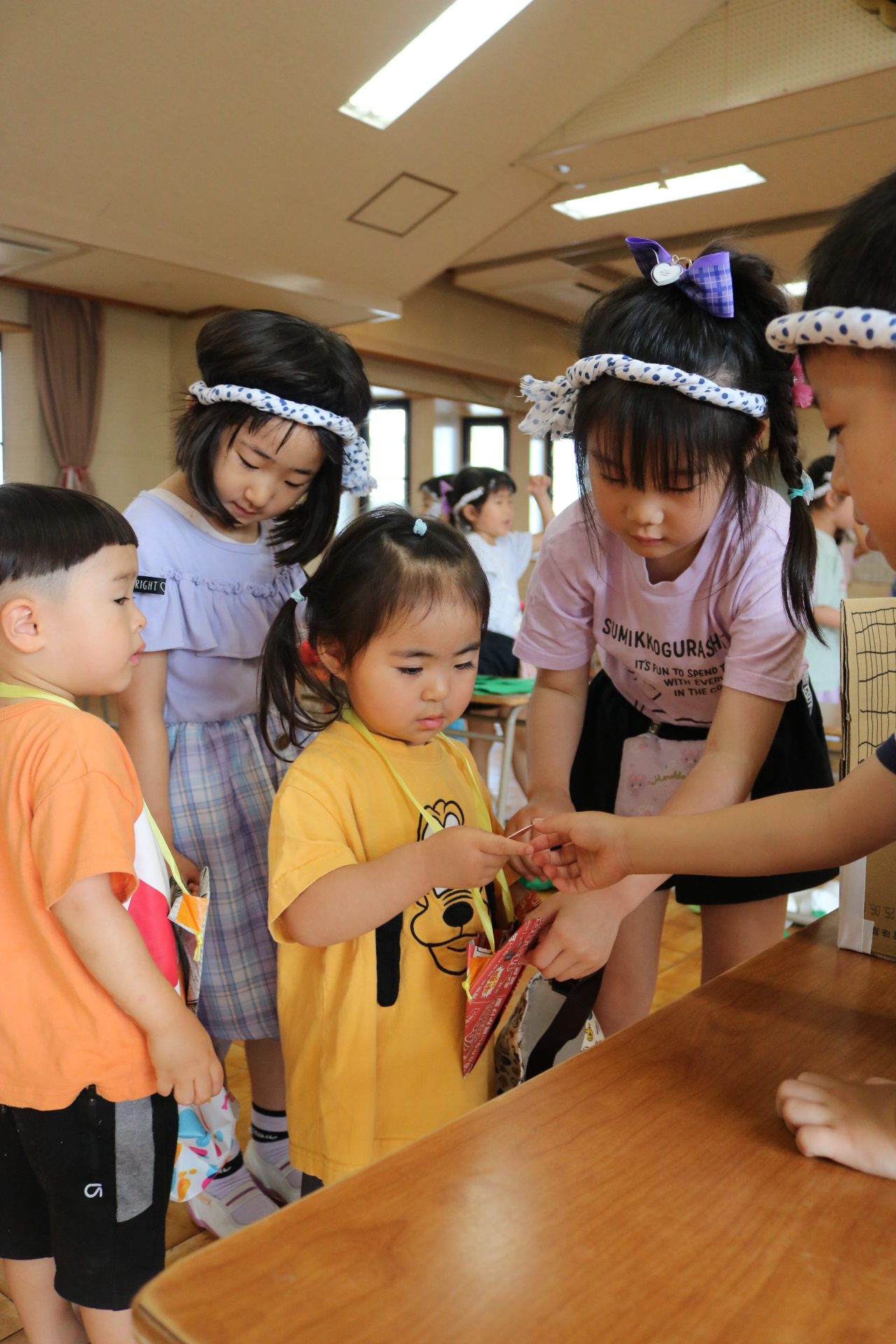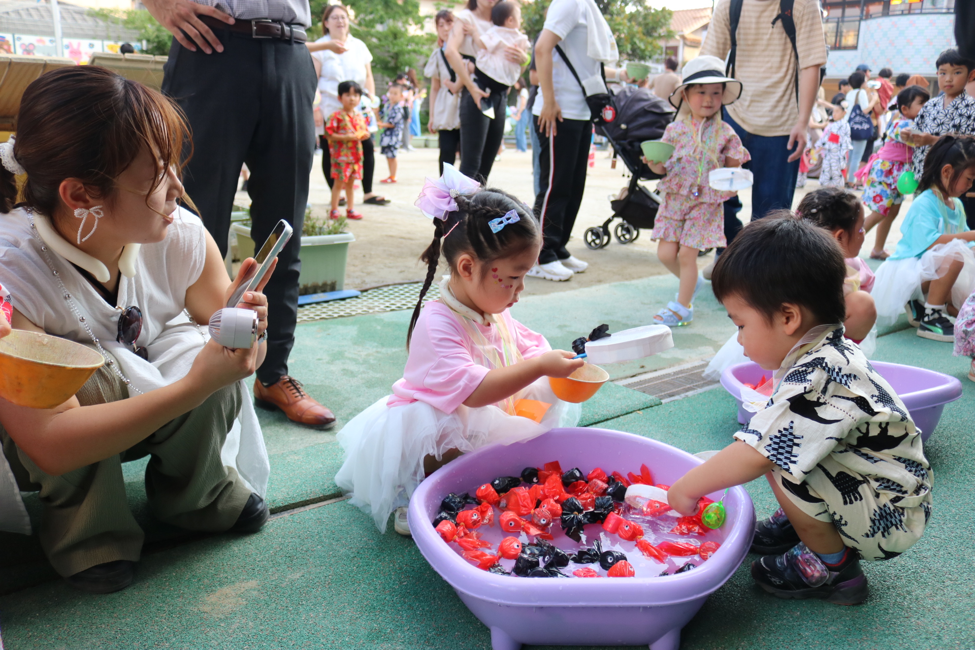 夏祭りに行ったゲームをもう一度みんなで楽しみました😊今回は縦割りで、異年齢児と関わりながら楽しみました!