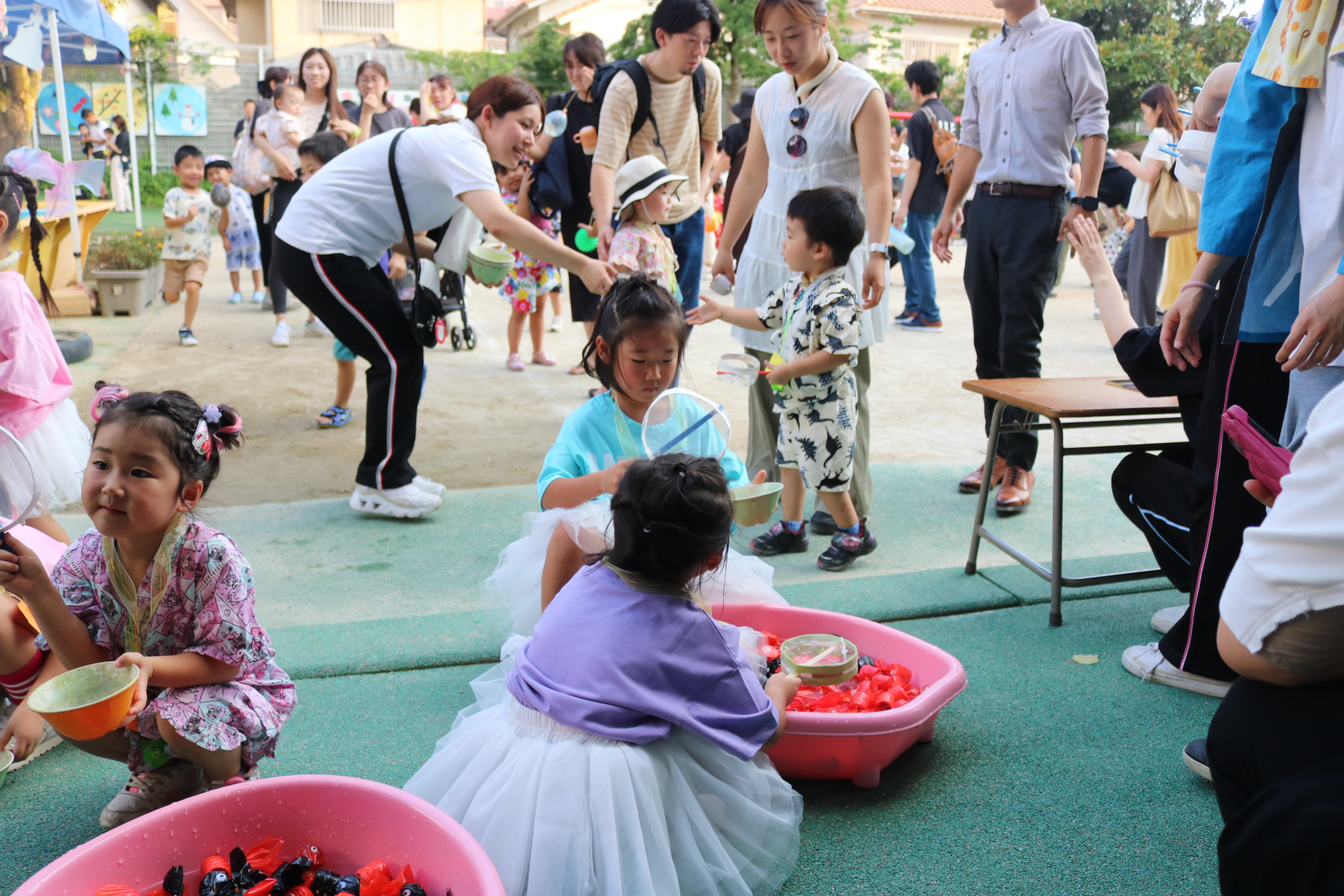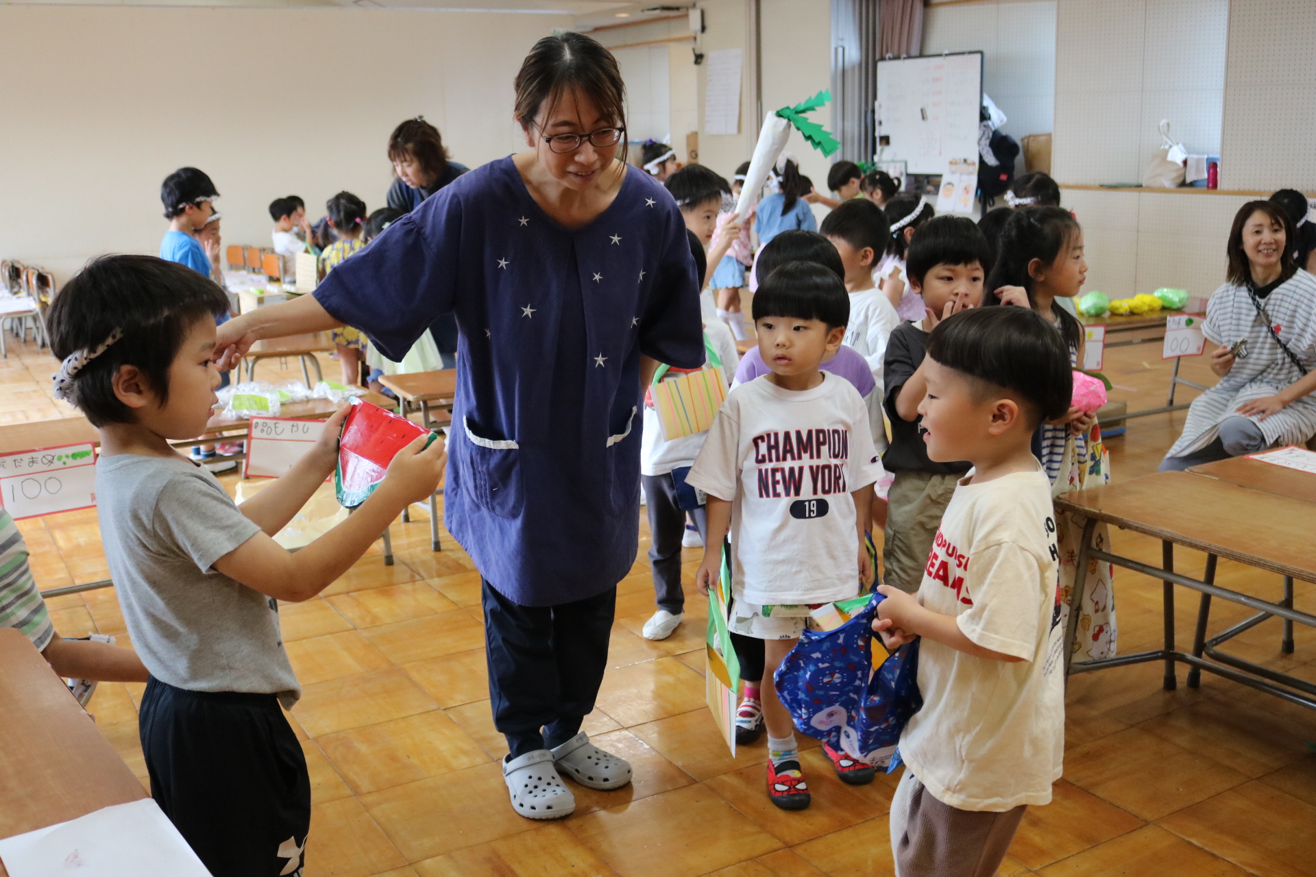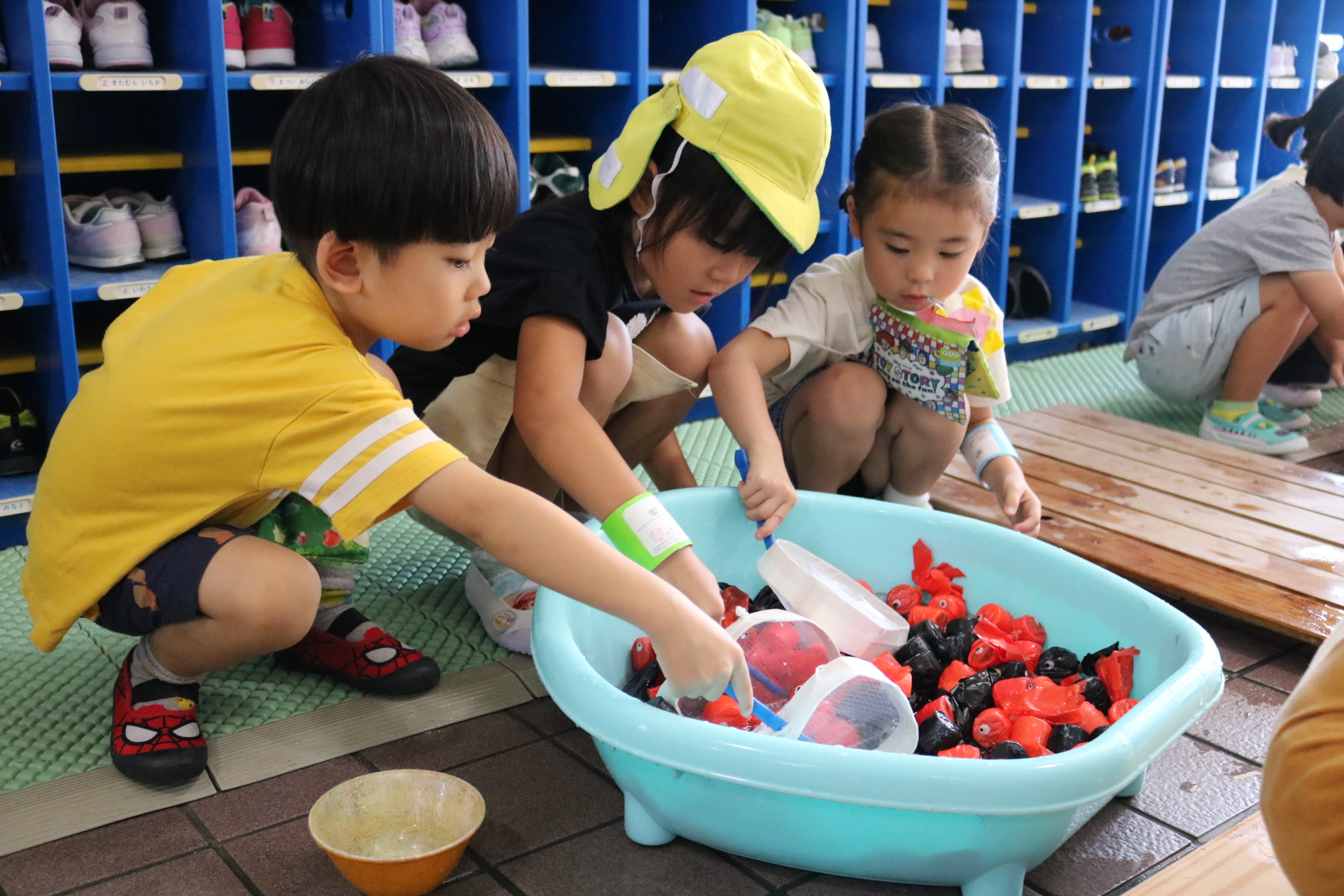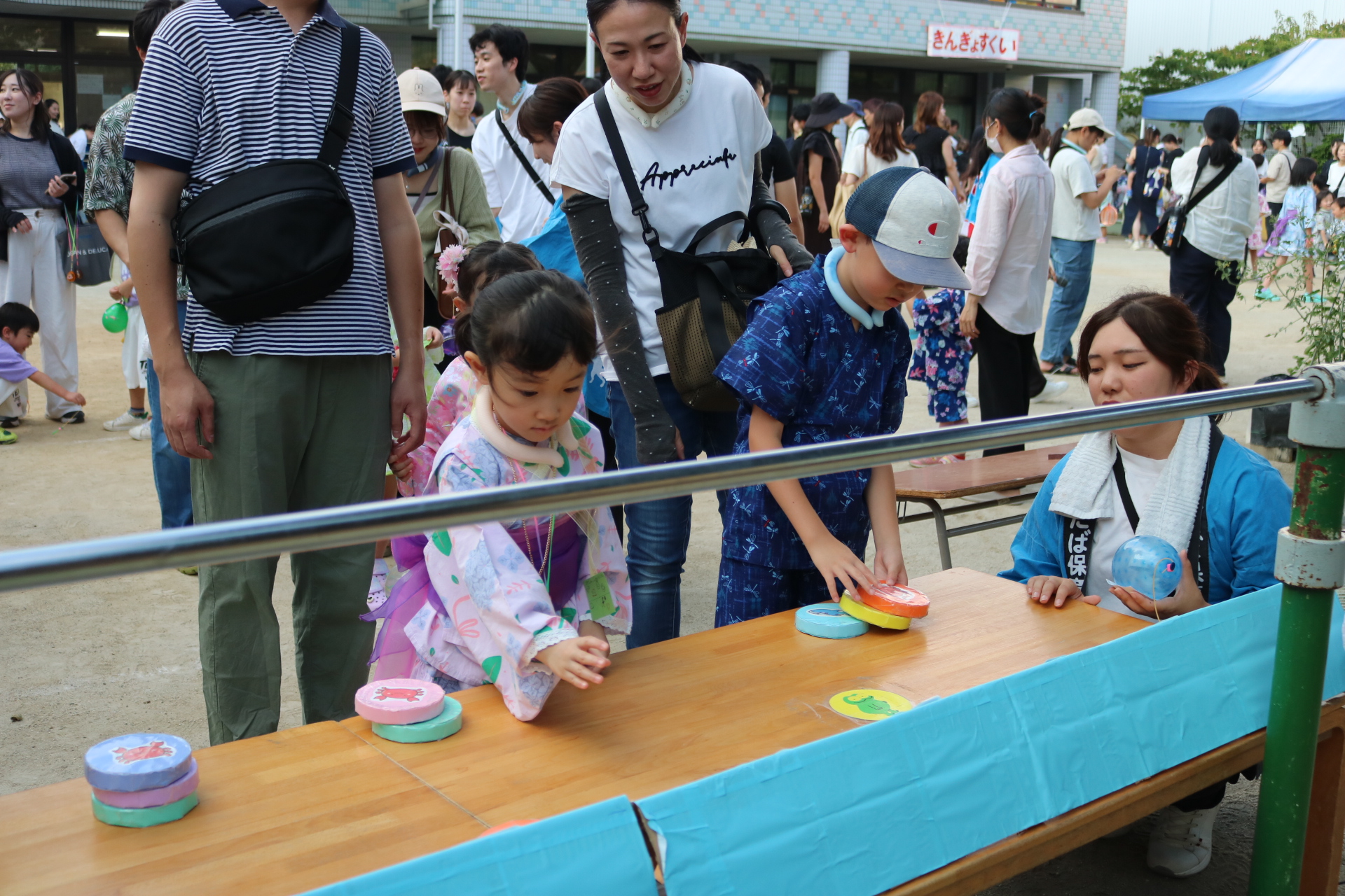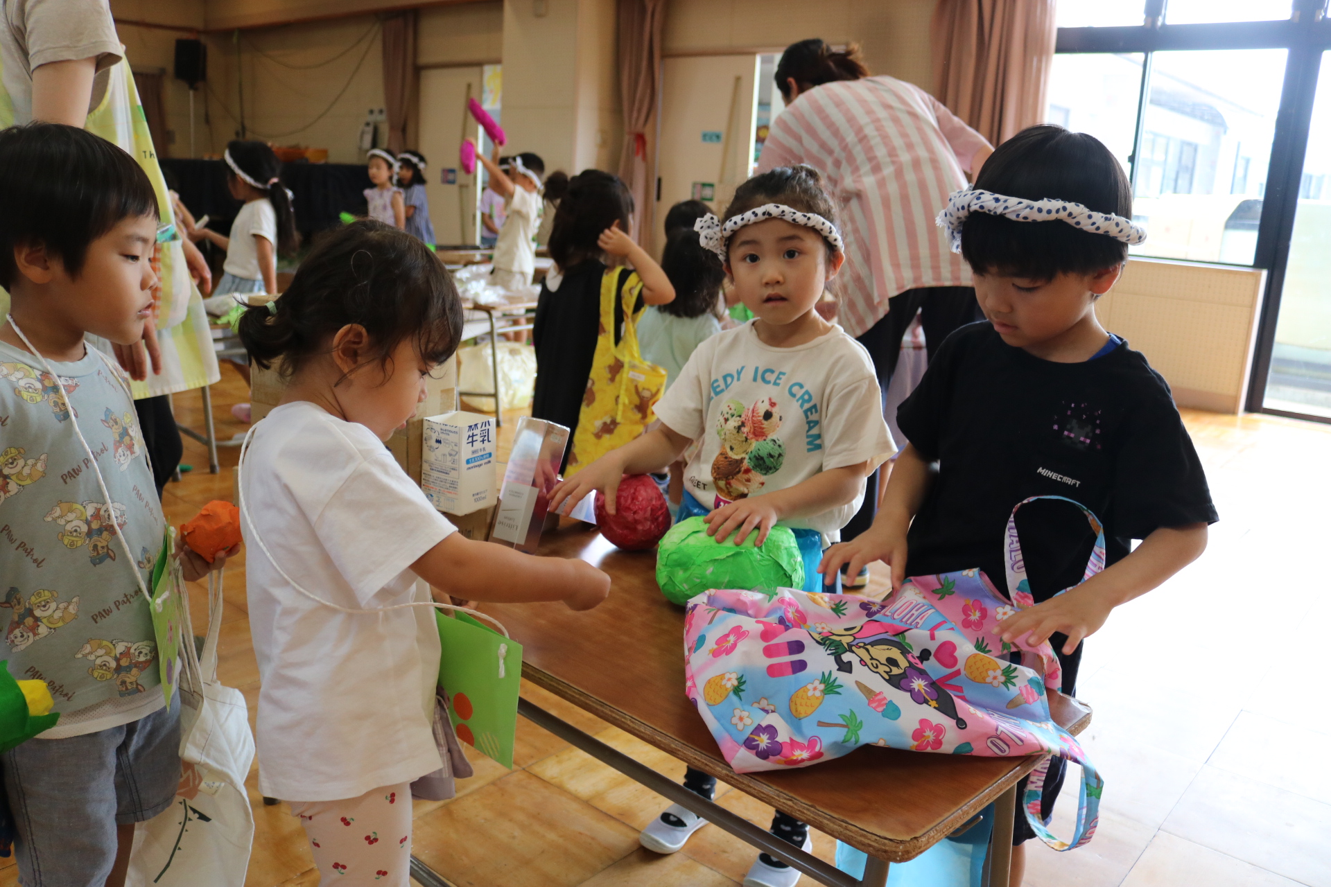 夏祭りに行ったゲームをもう一度みんなで楽しみました😊今回は縦割りで、異年齢児と関わりながら楽しみました!