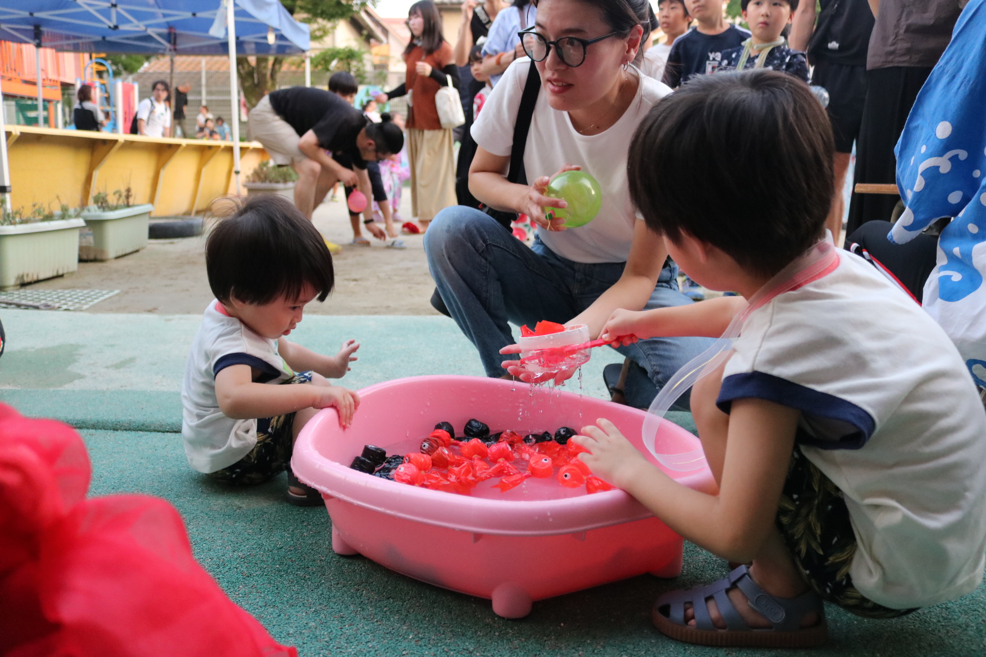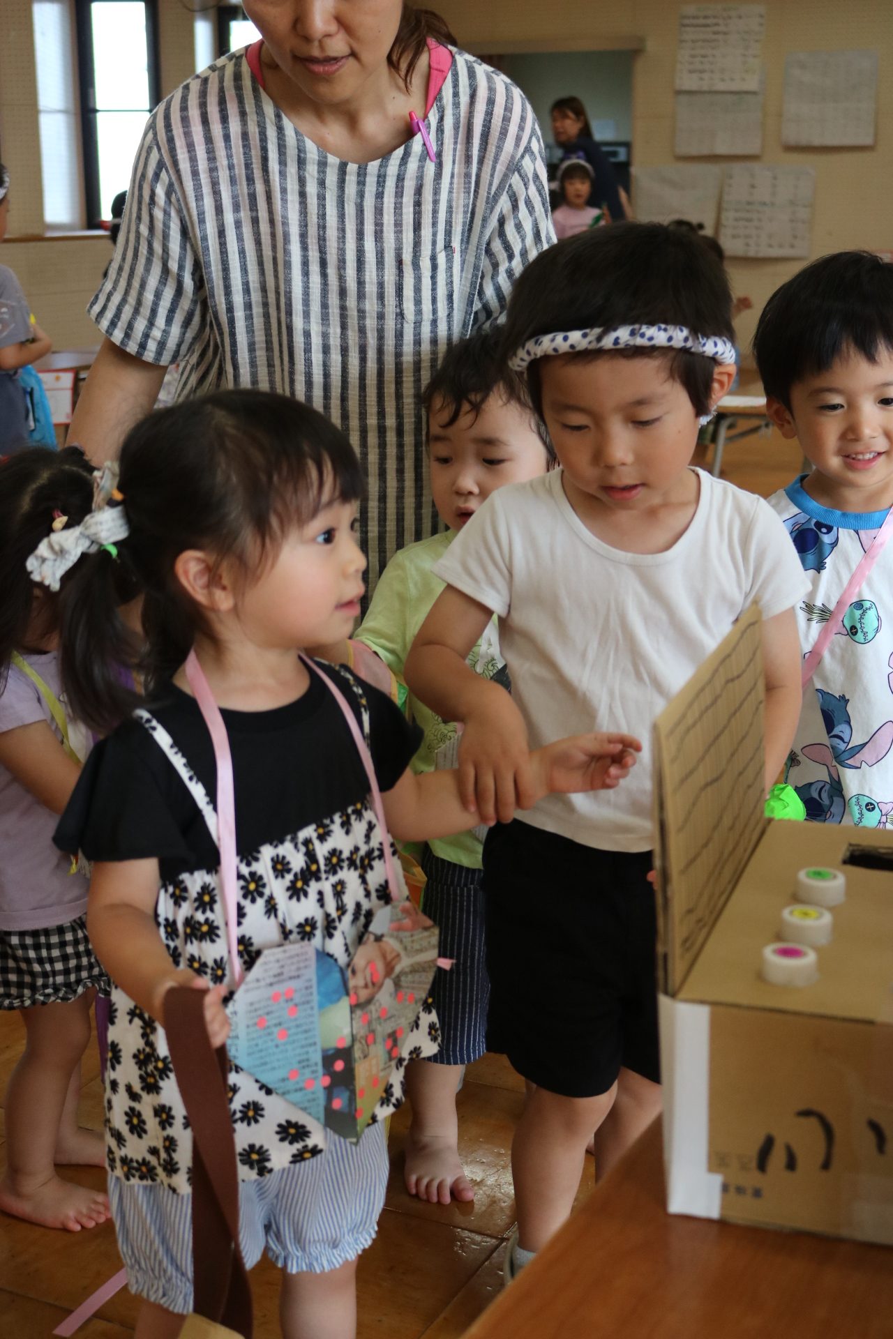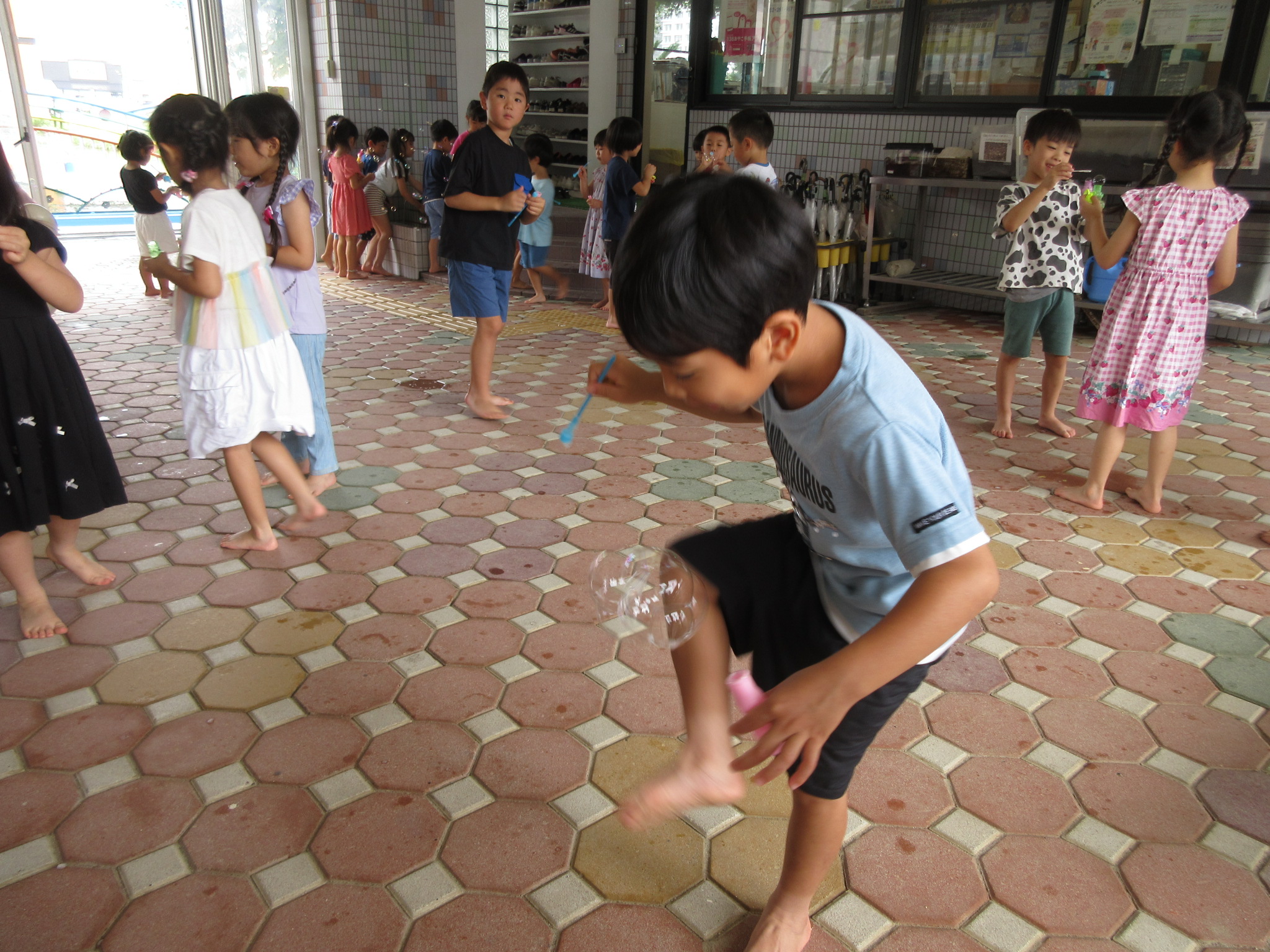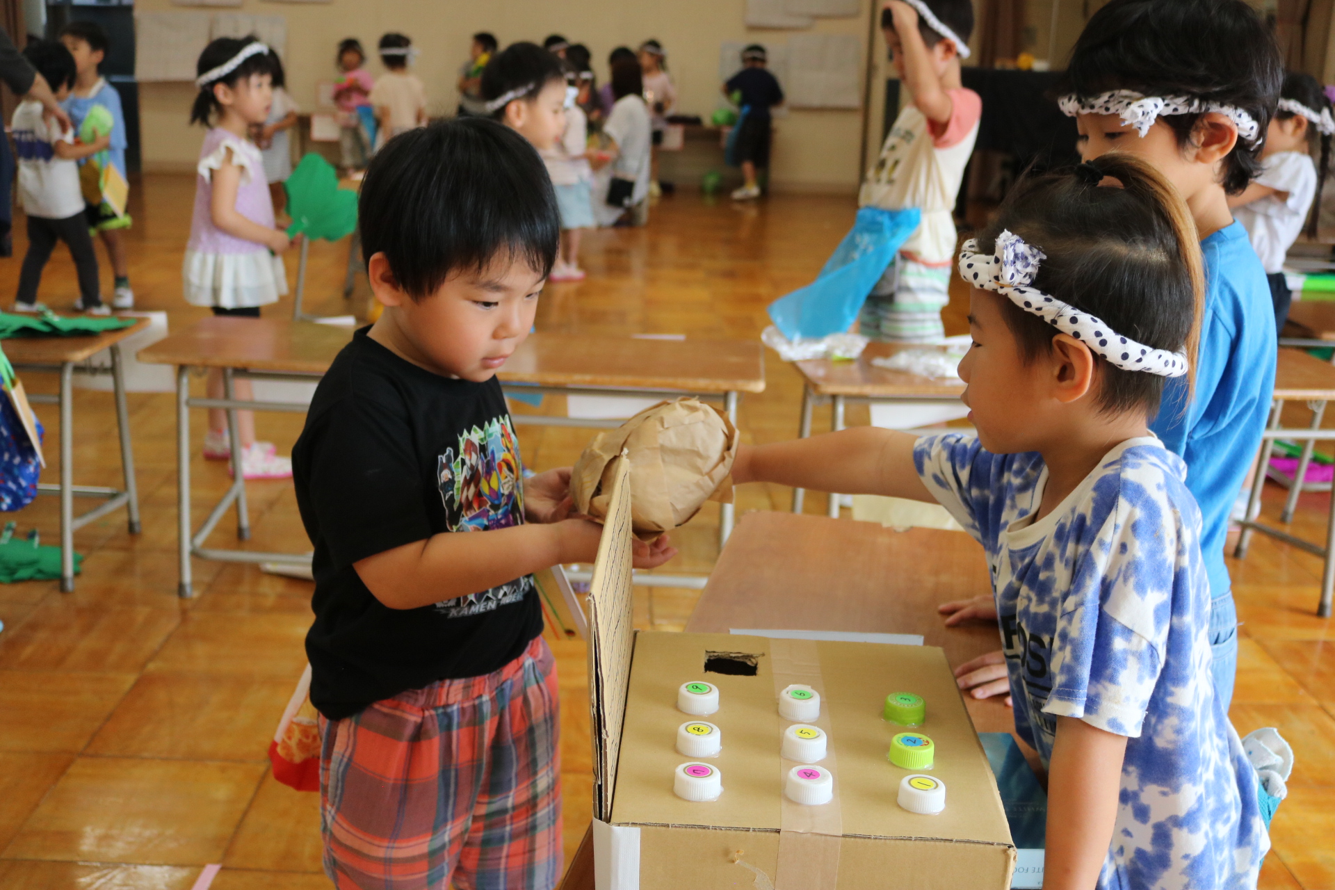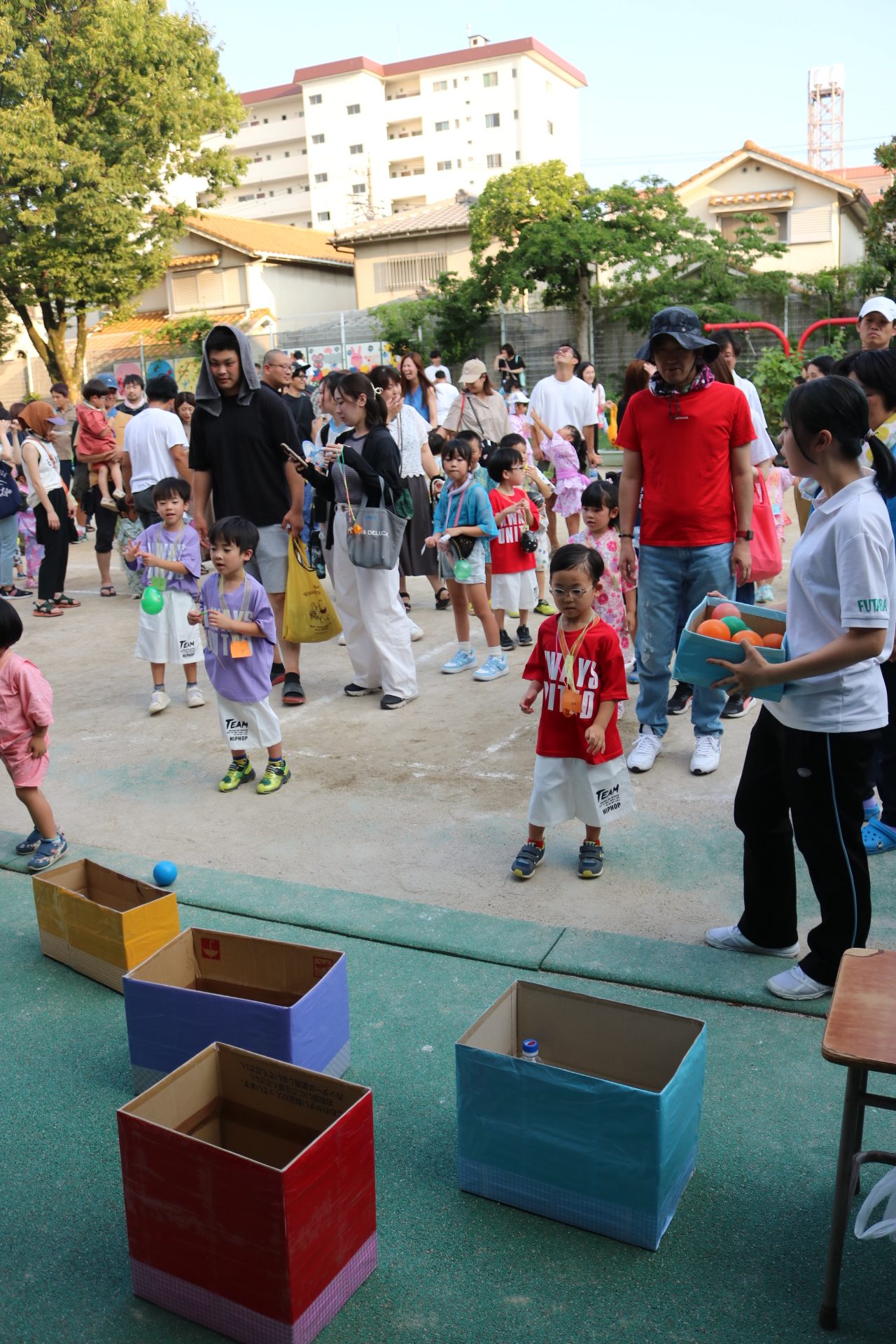 夏祭りに行ったゲームをもう一度みんなで楽しみました😊今回は縦割りで、異年齢児と関わりながら楽しみました!