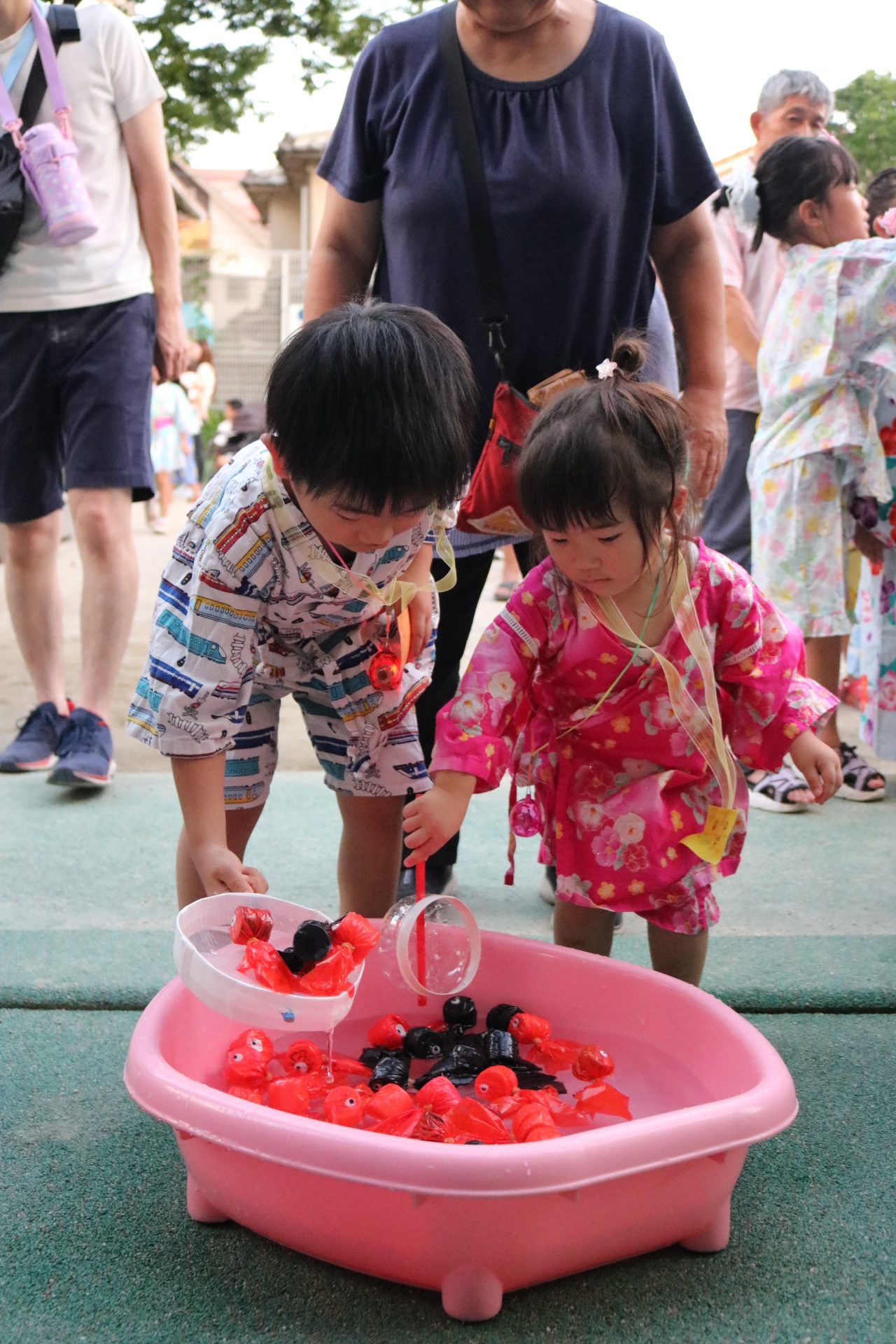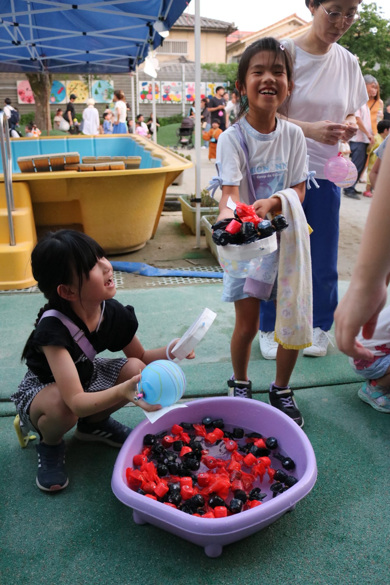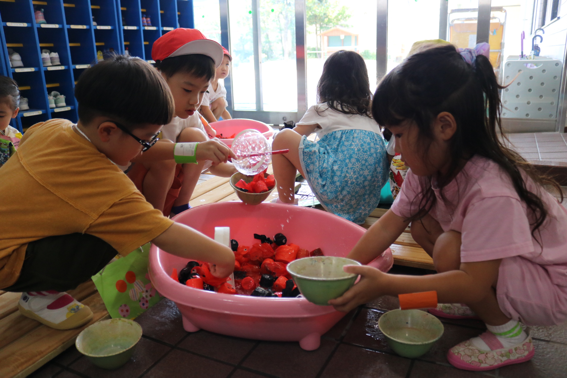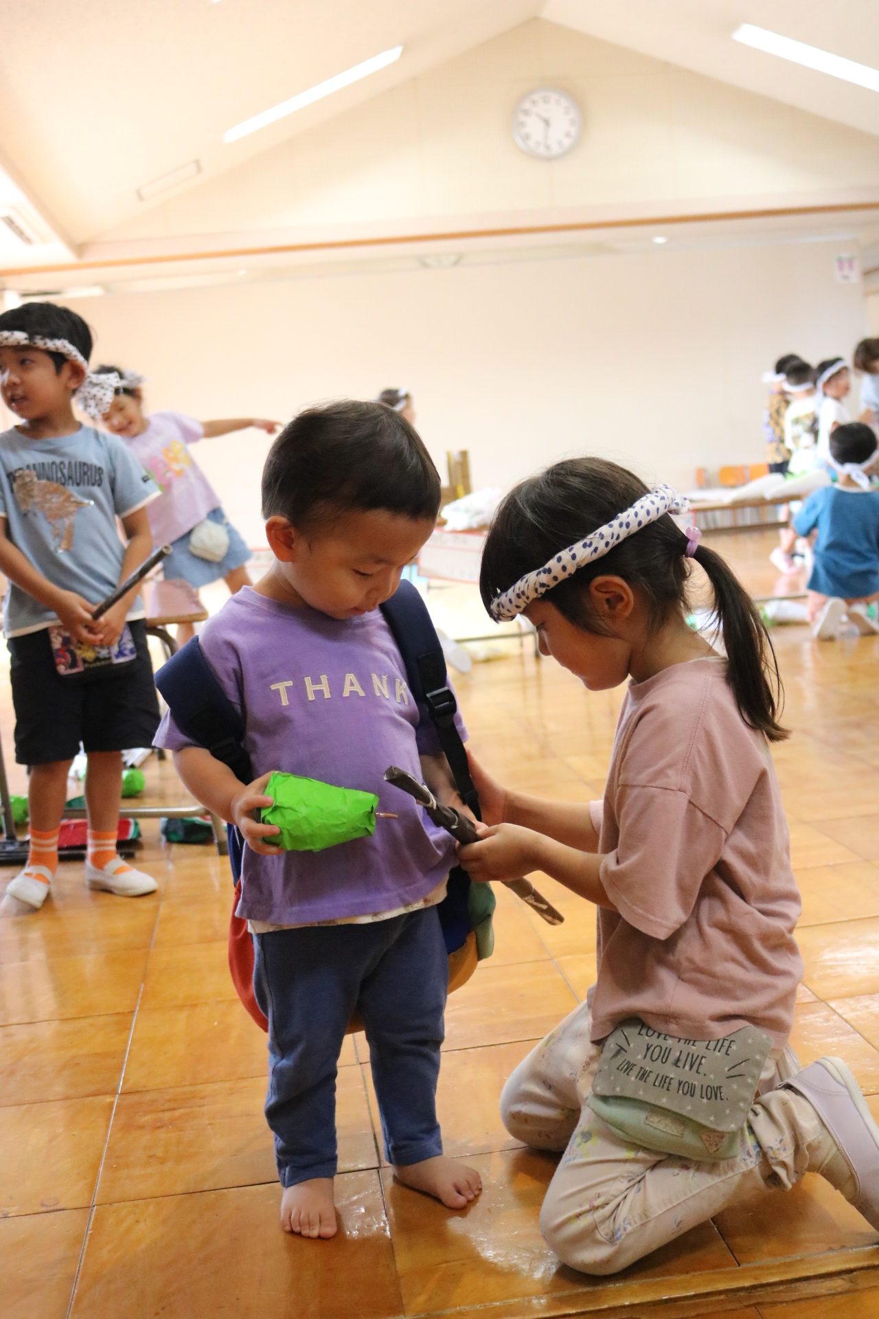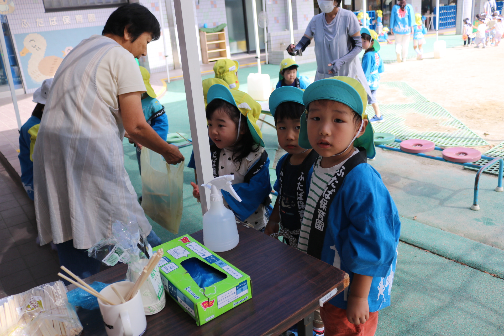 夏祭りに行ったゲームをもう一度みんなで楽しみました😊今回は縦割りで、異年齢児と関わりながら楽しみました!