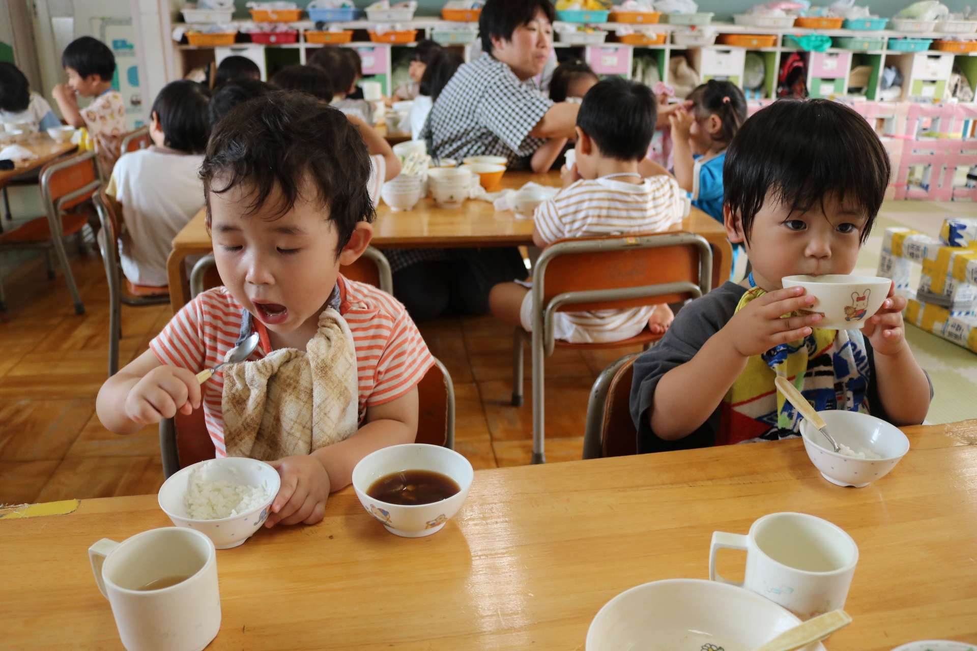先生と一緒に生活習慣を覚えたり・・・いろんな遊びを楽しんだり・・・