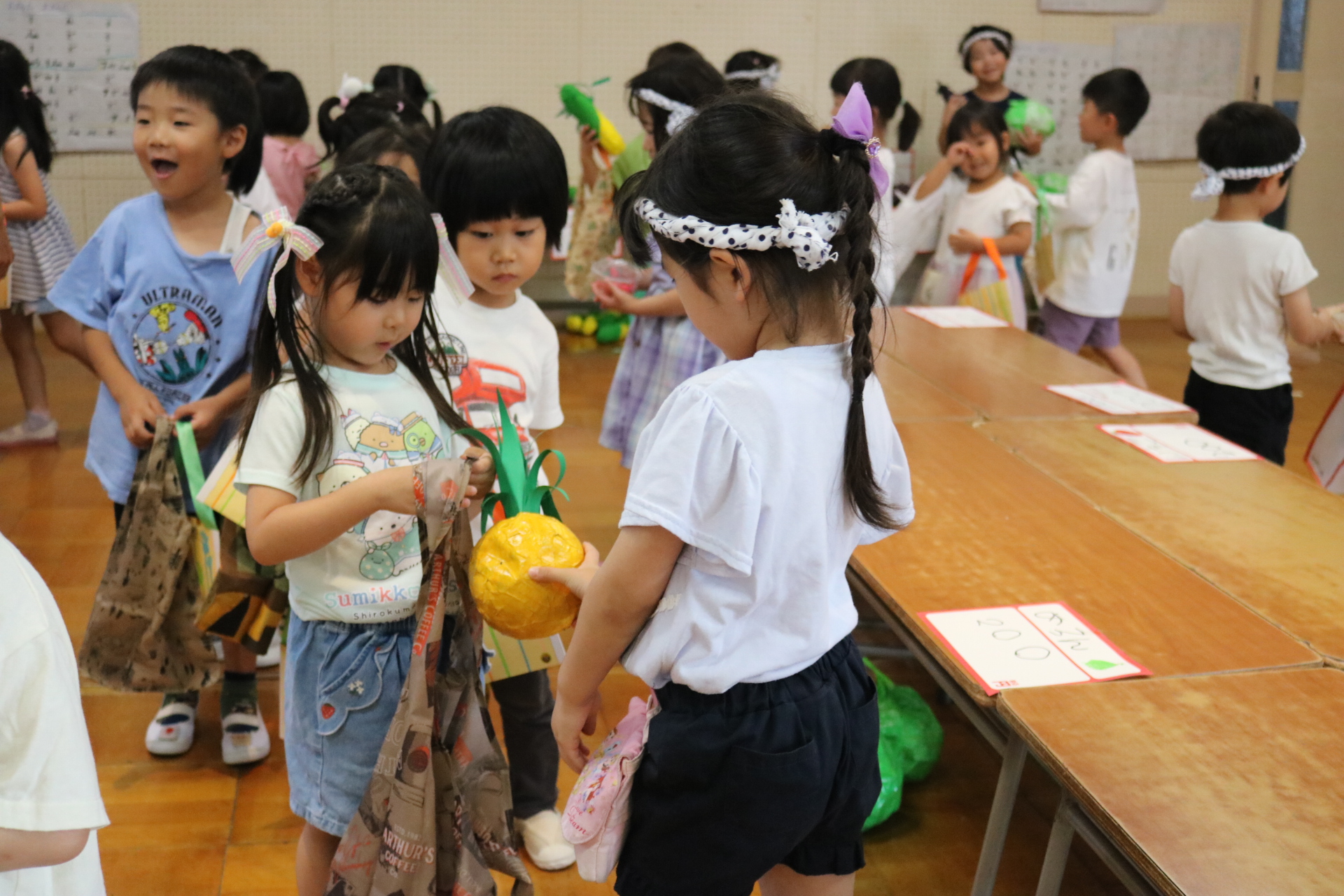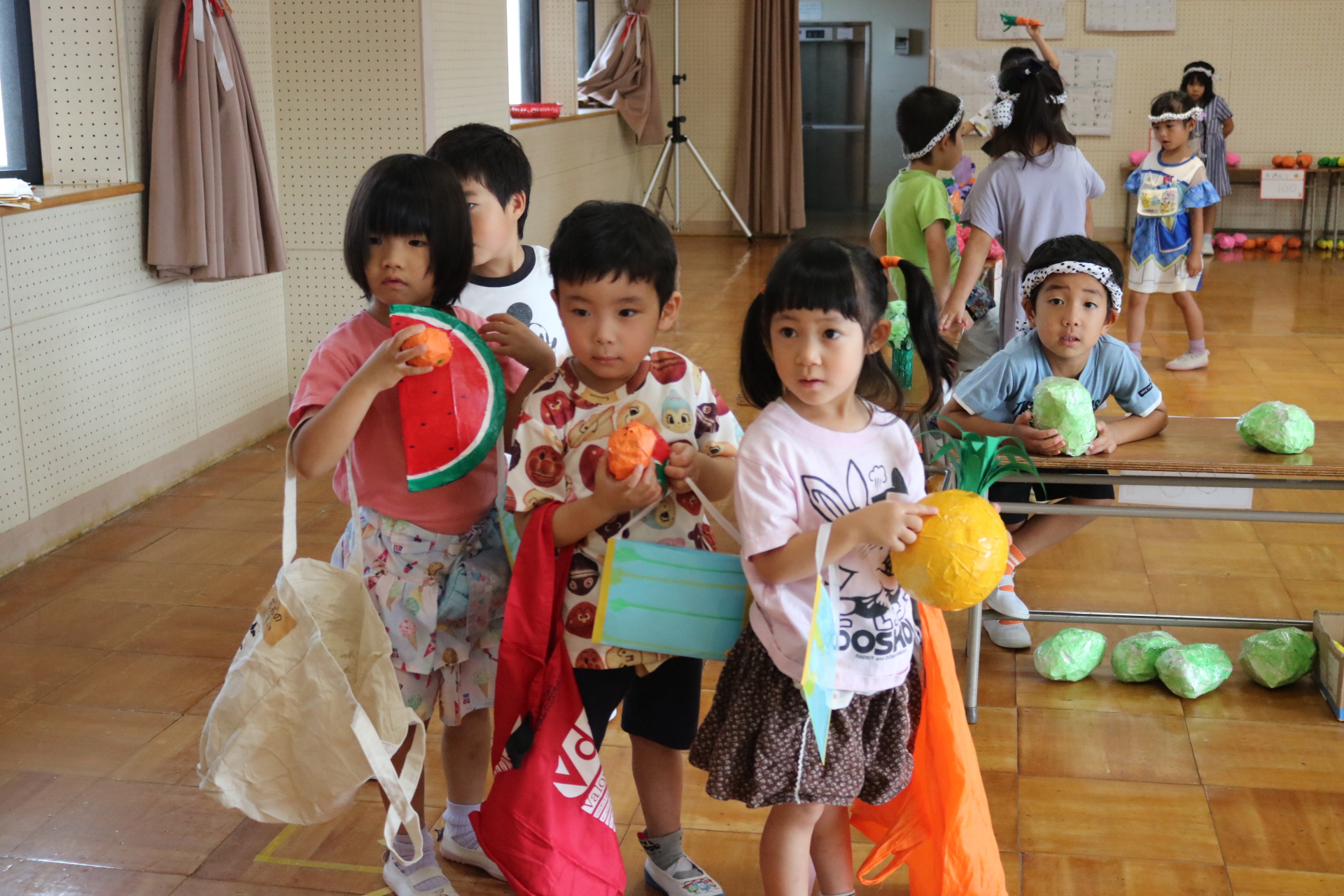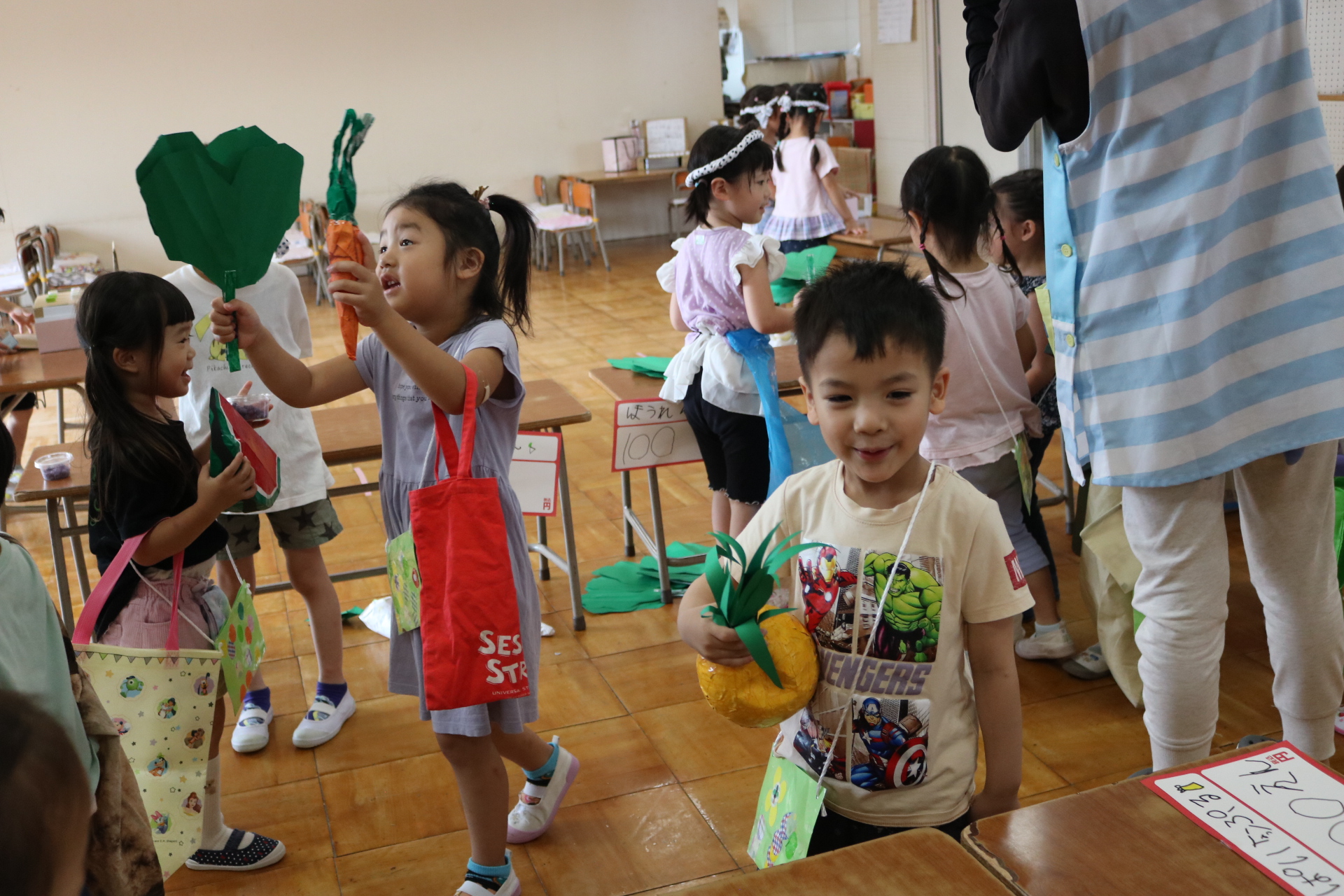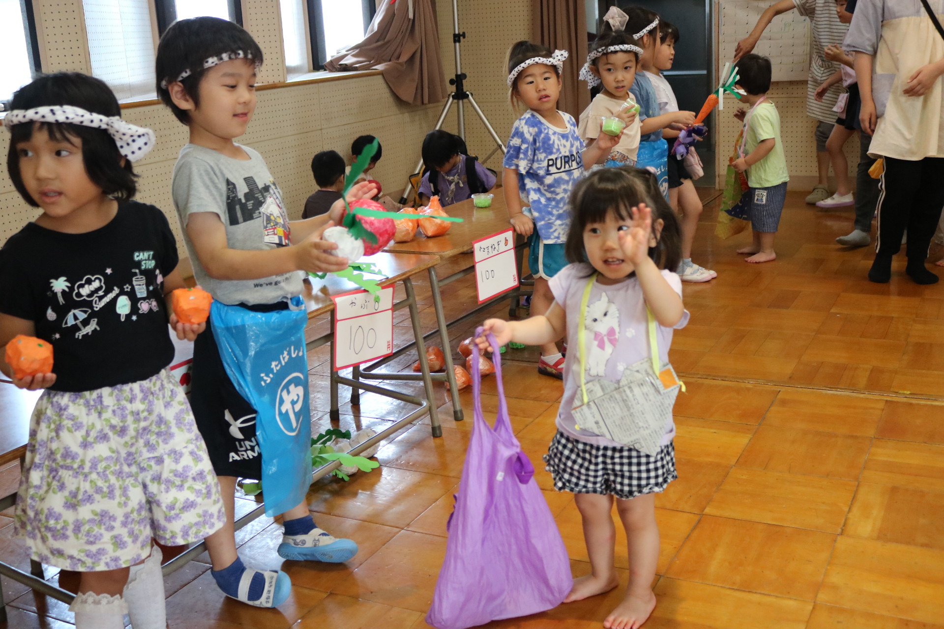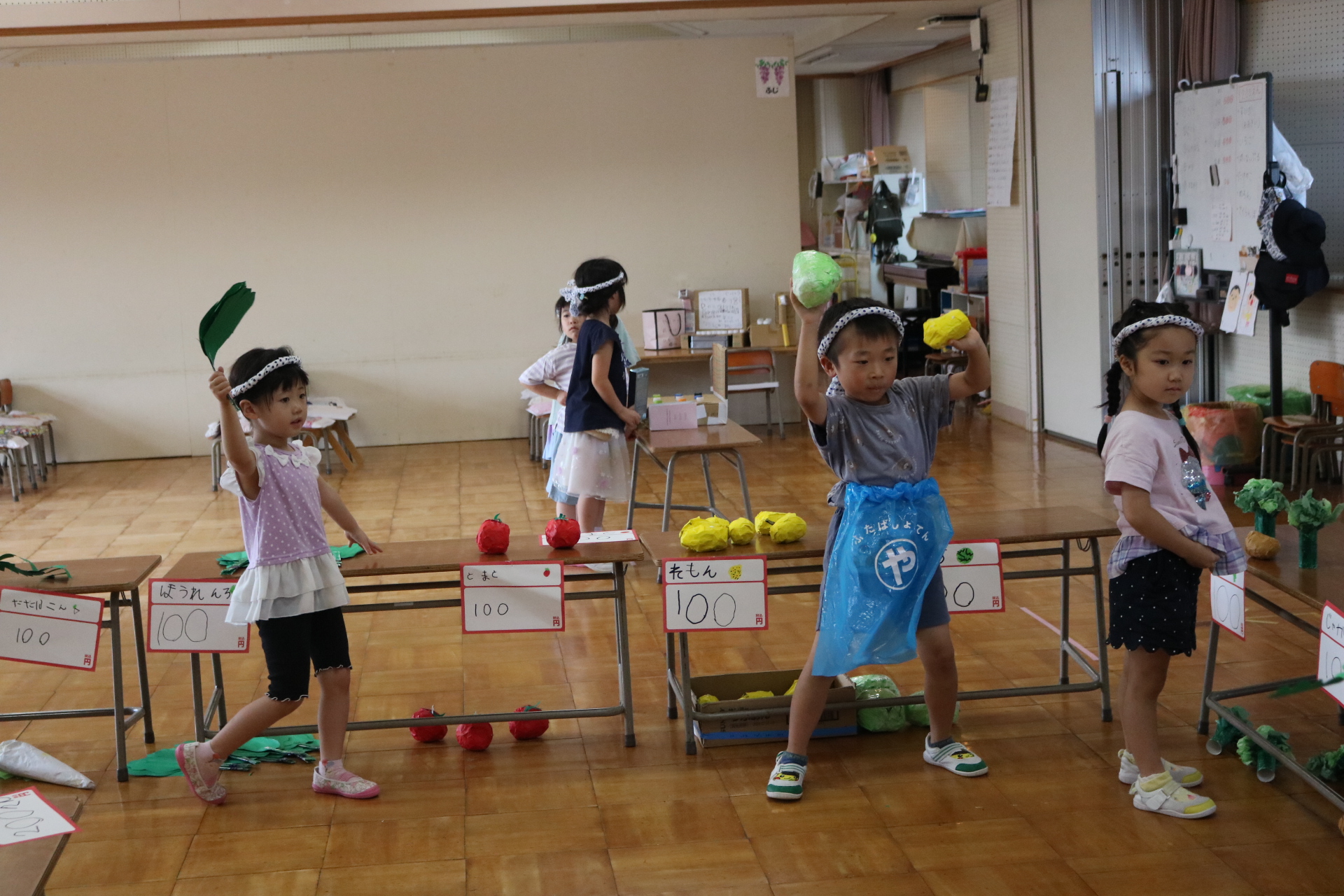 今日は年長さんがお店屋さんになりきって八百屋さんごっこをして遊びました。みんな大好きな野菜や果物は買えたかな?😊