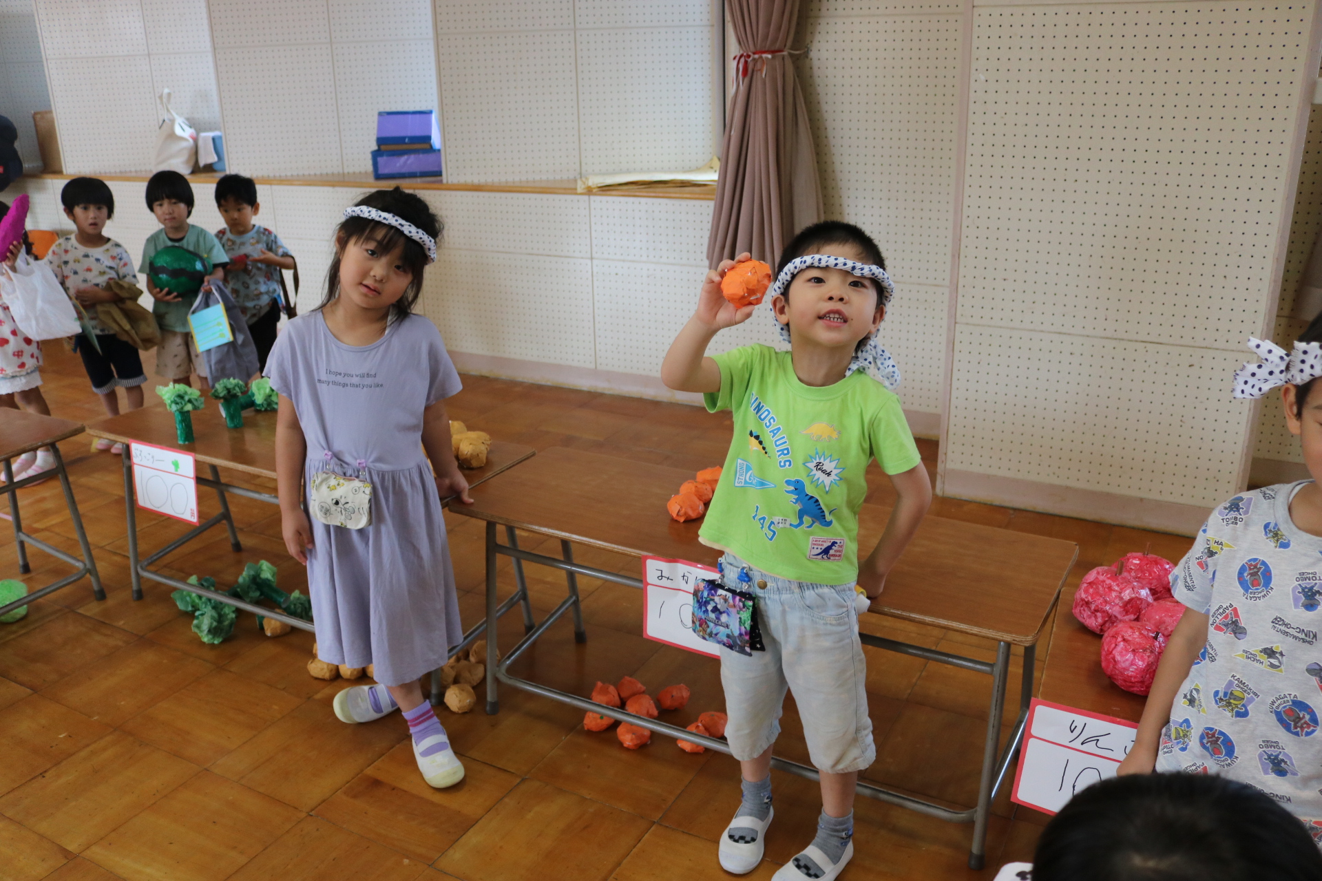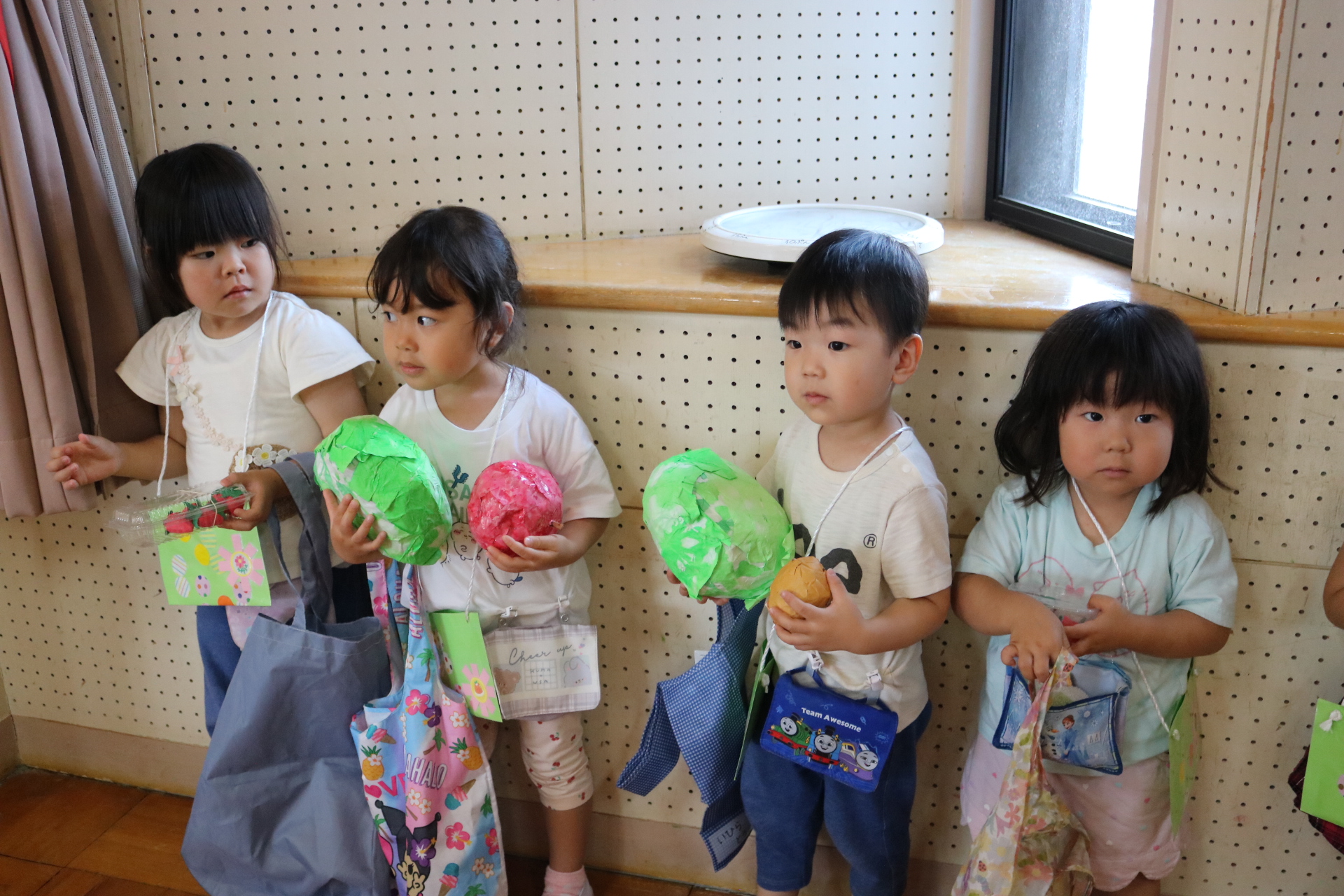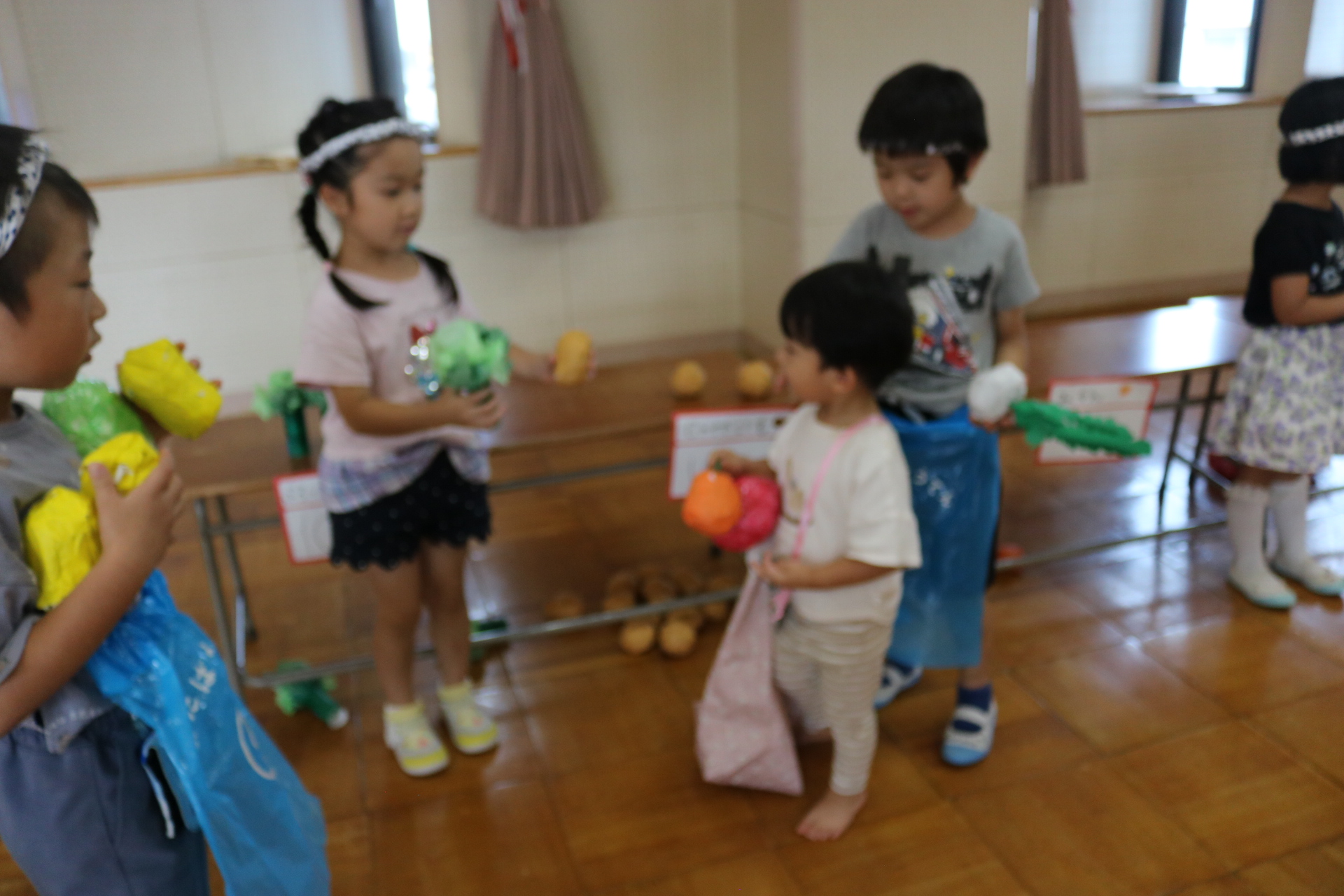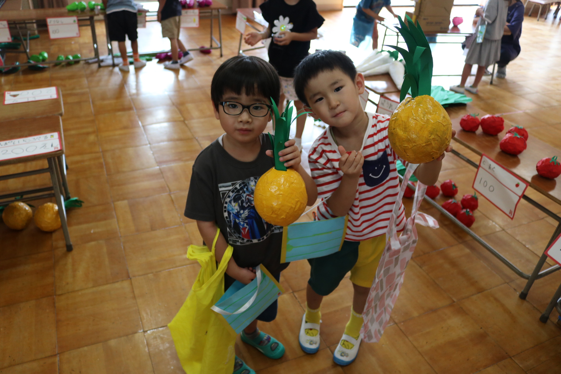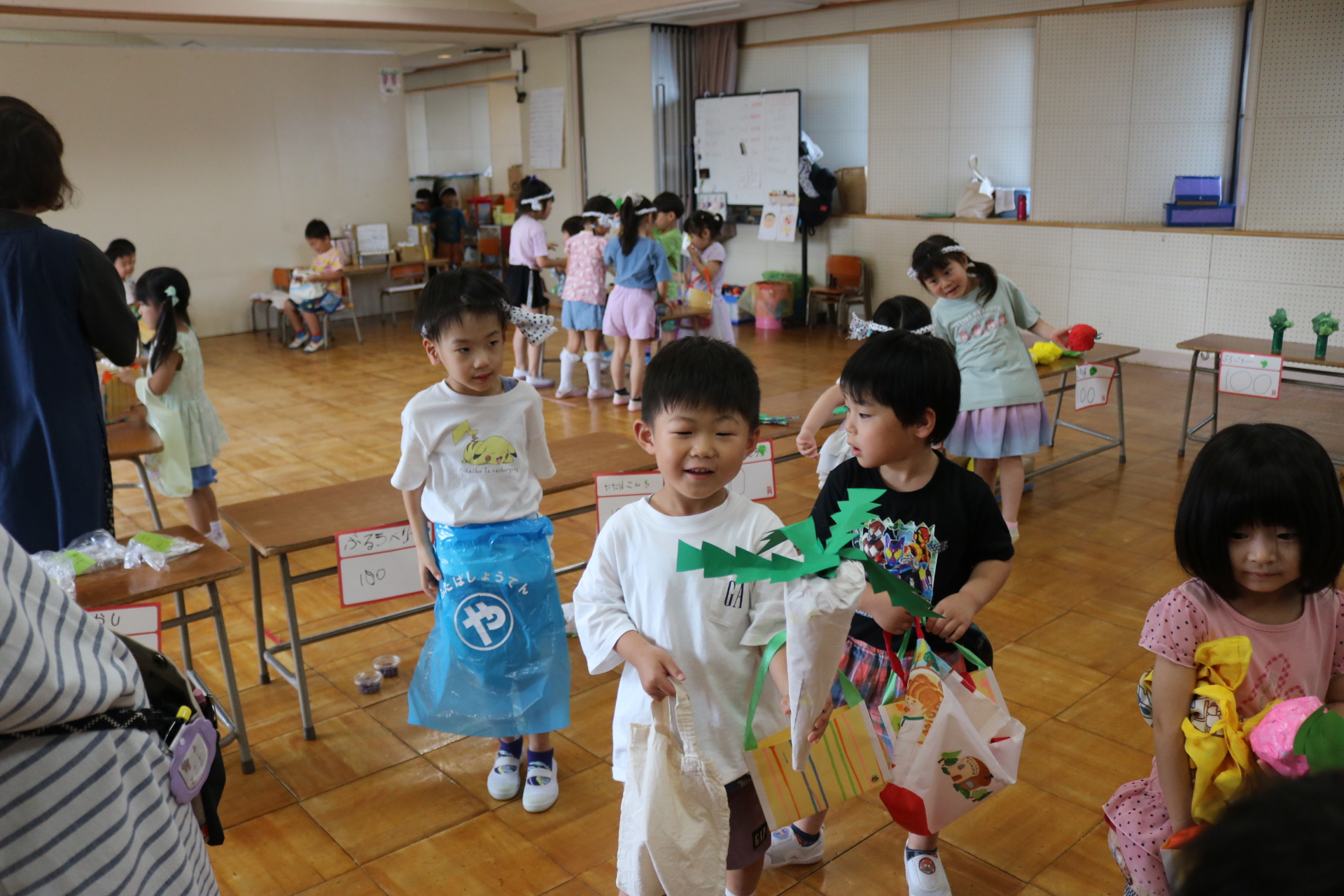今日は年長さんがお店屋さんになりきって八百屋さんごっこをして遊びました。みんな大好きな野菜や果物は買えたかな?😊