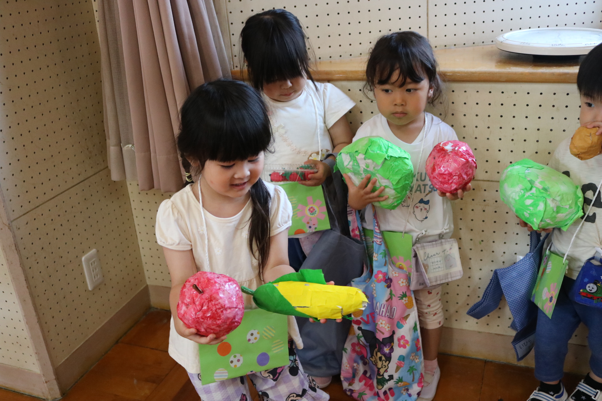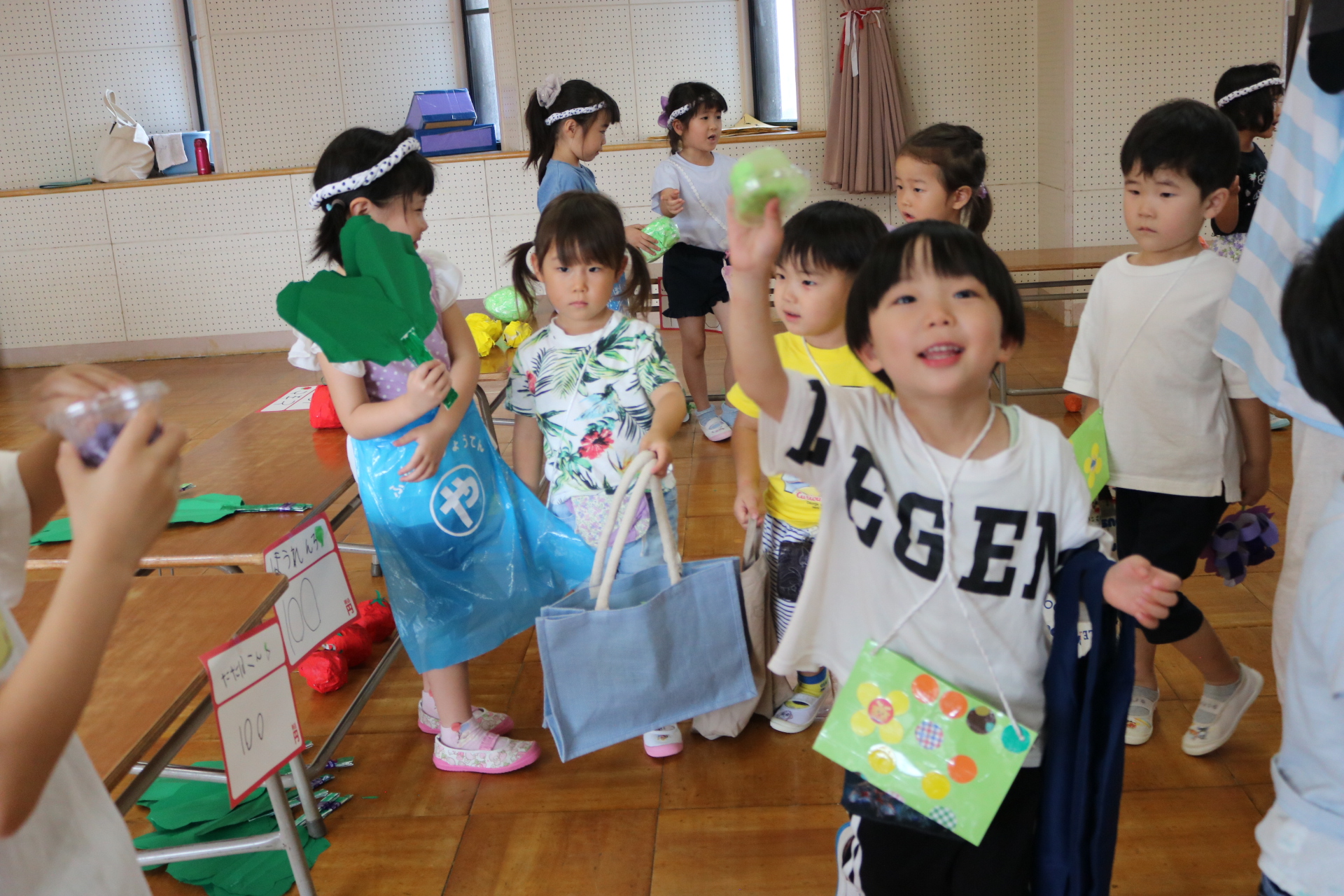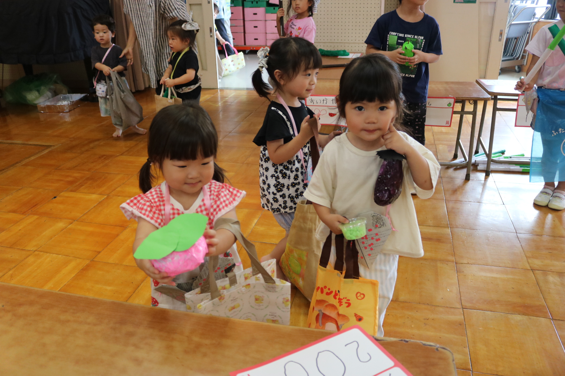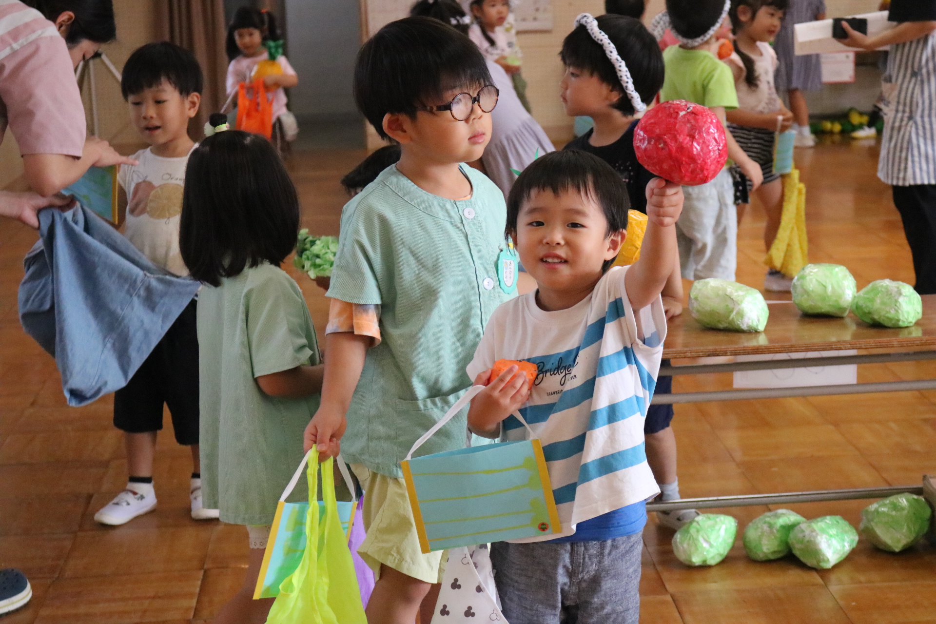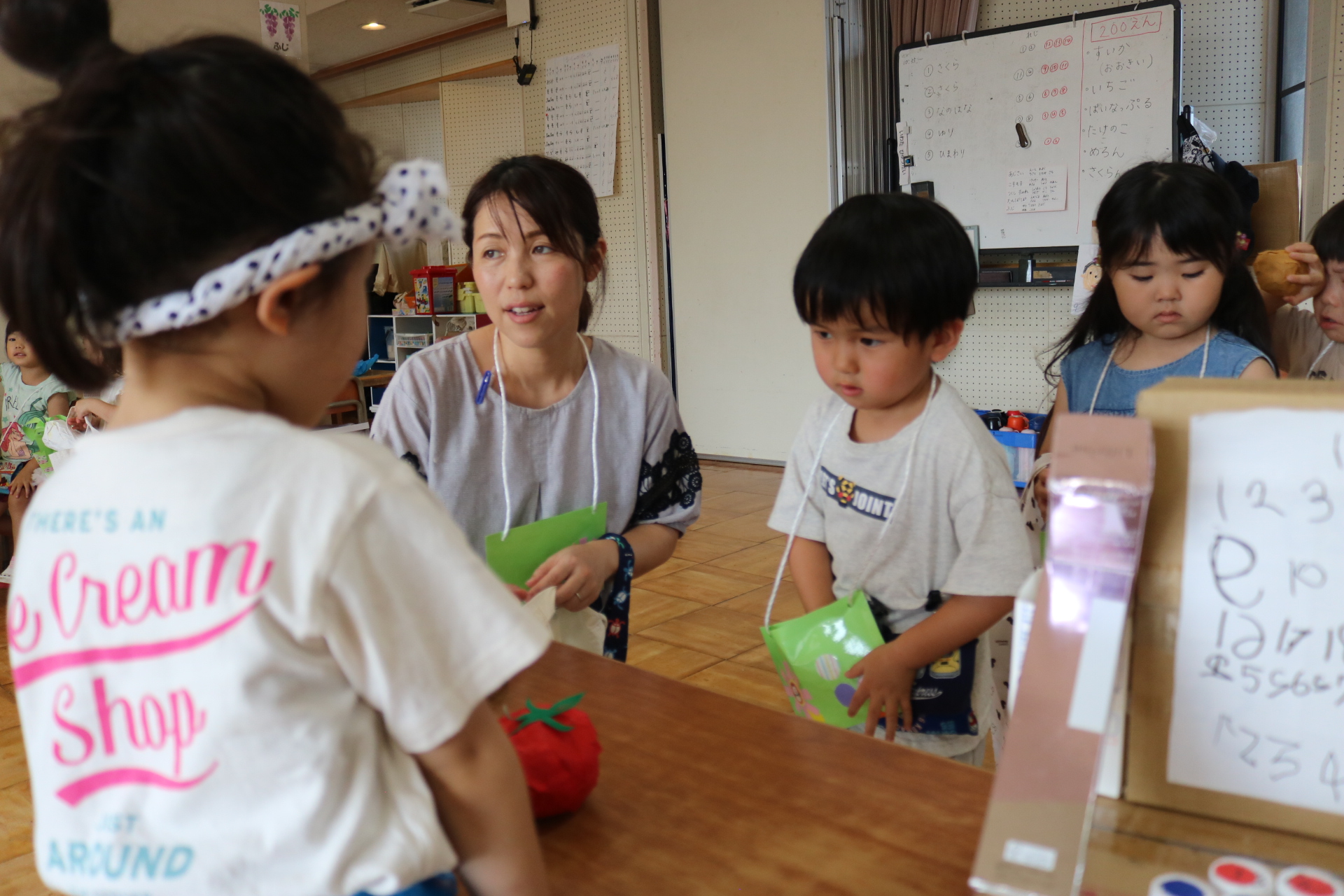 今日は年長さんがお店屋さんになりきって八百屋さんごっこをして遊びました。みんな大好きな野菜や果物は買えたかな?😊