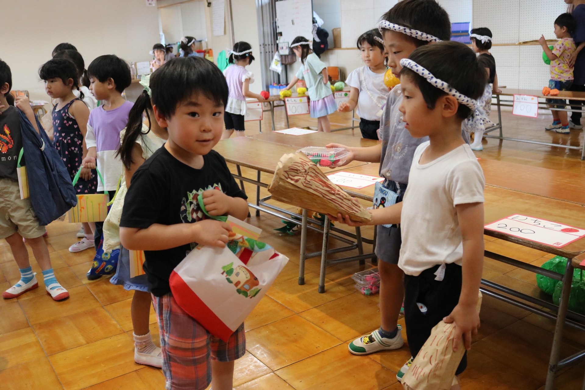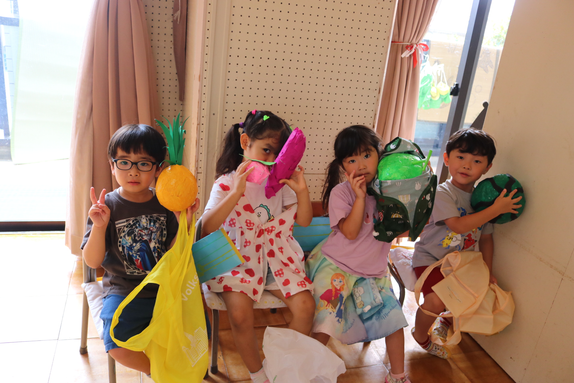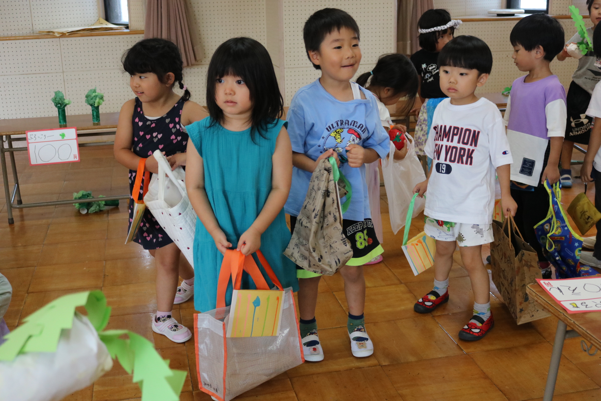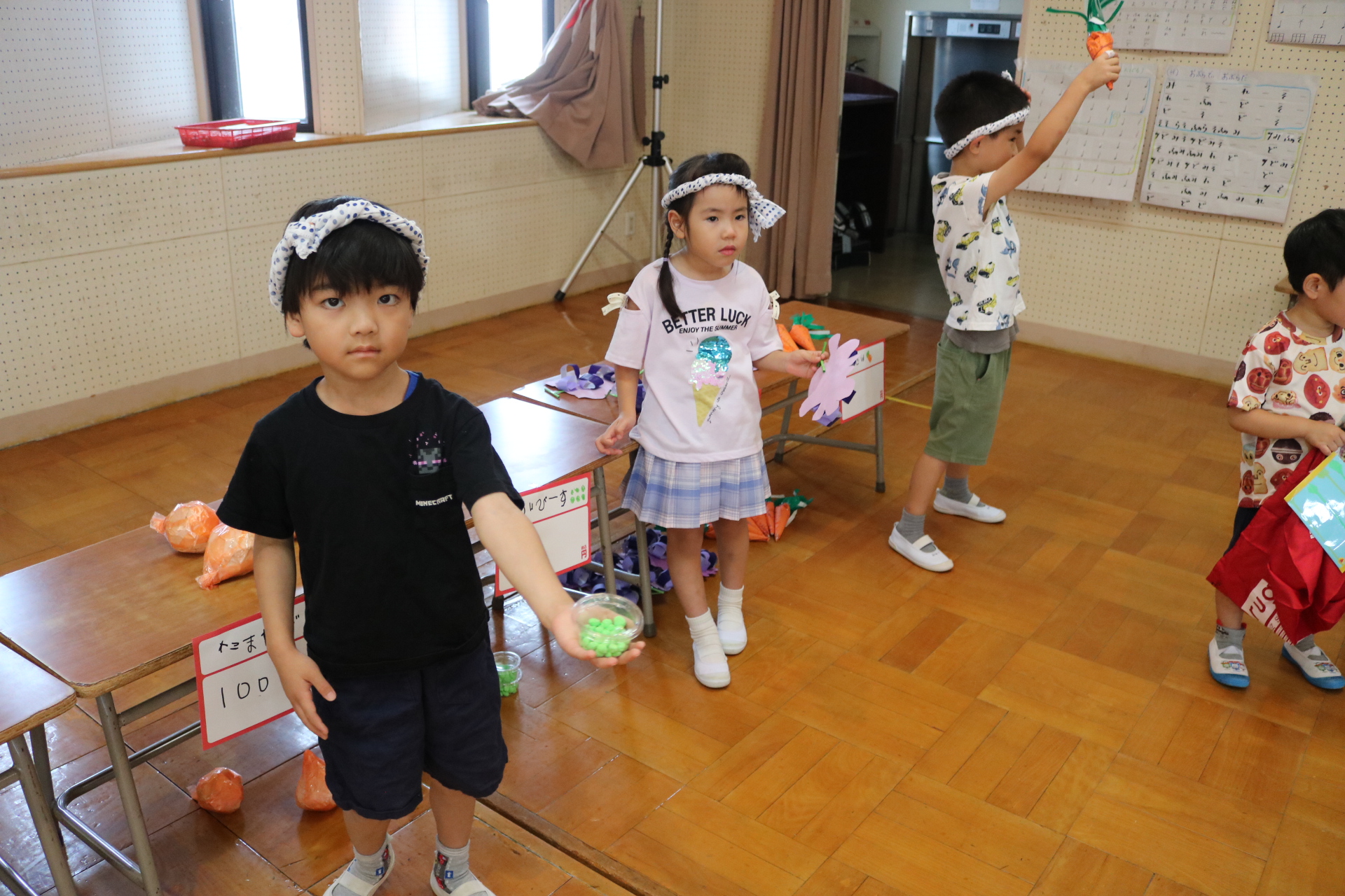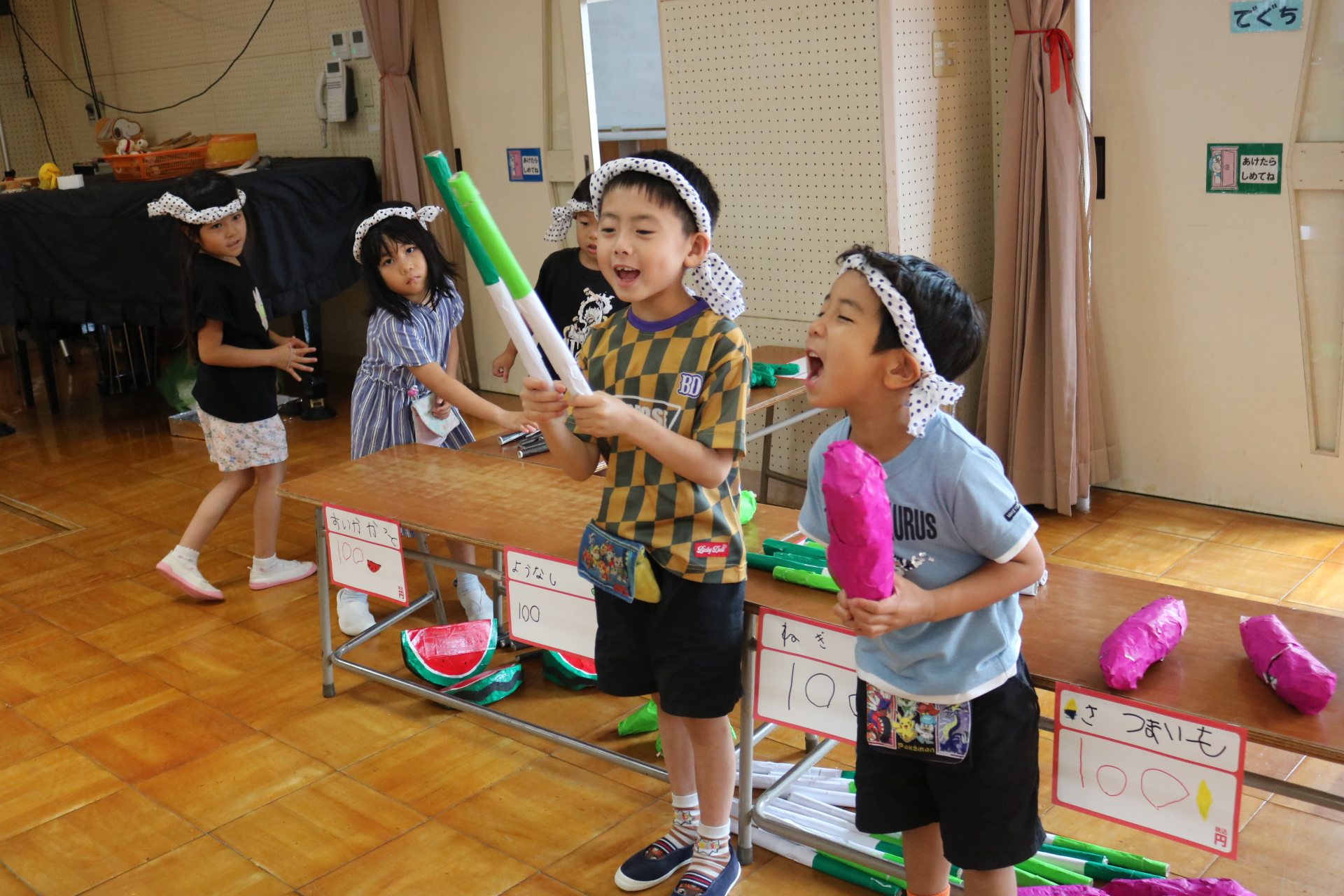 今日は年長さんがお店屋さんになりきって八百屋さんごっこをして遊びました。みんな大好きな野菜や果物は買えたかな?😊