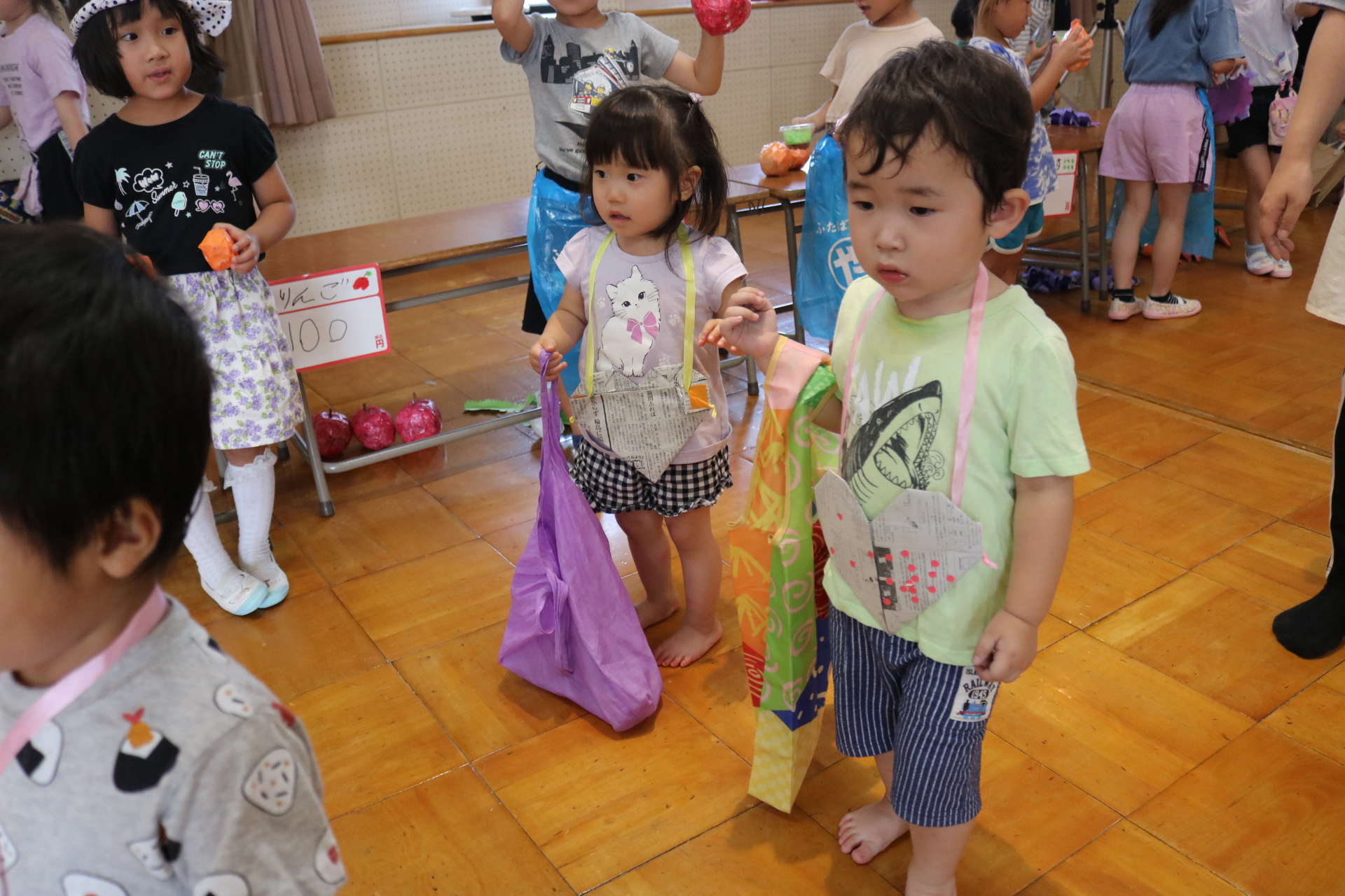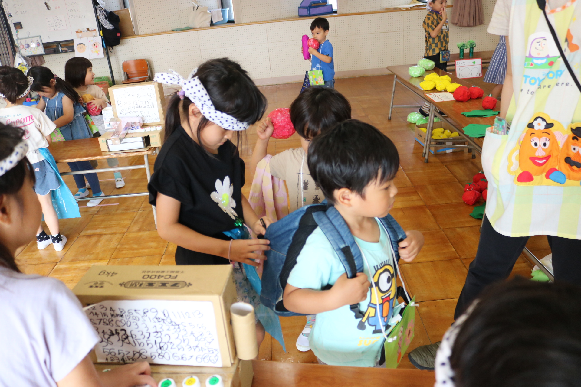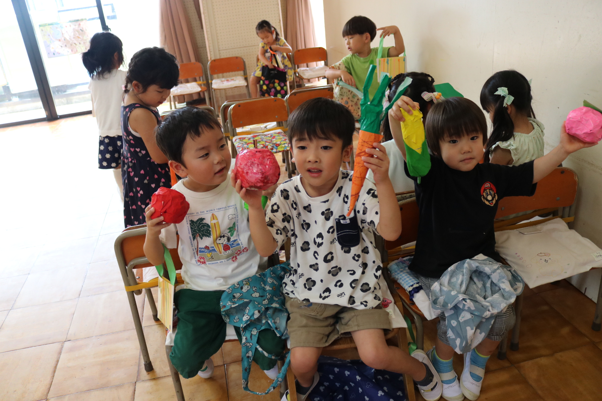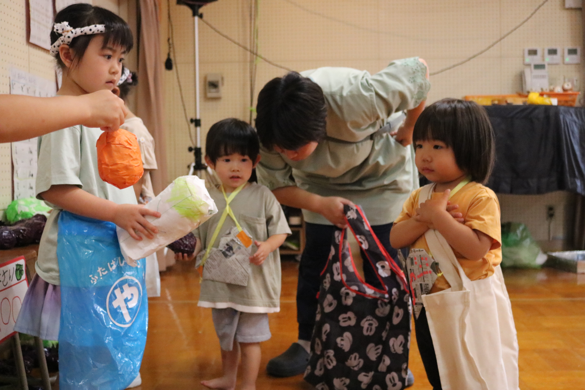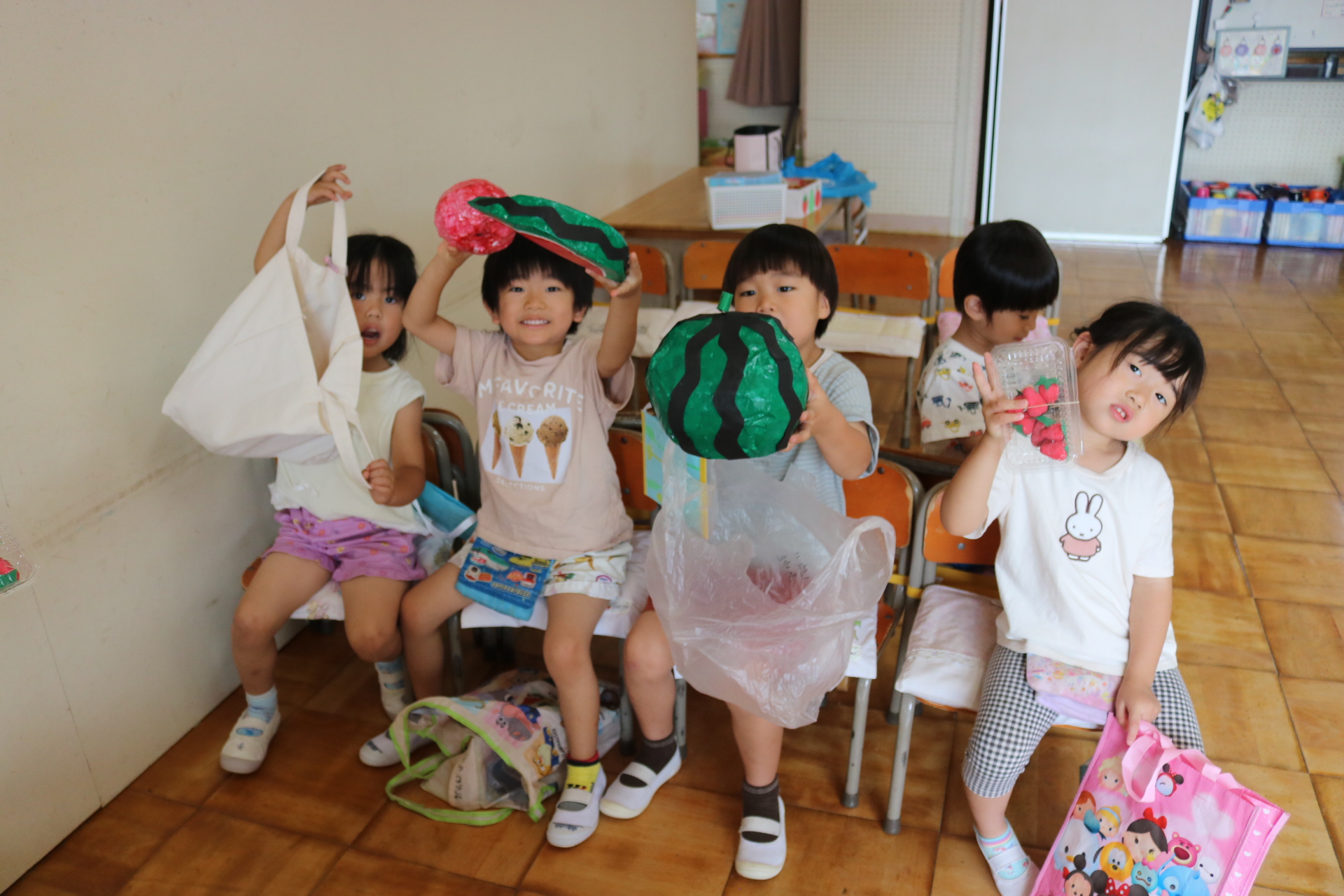 今日は年長さんがお店屋さんになりきって八百屋さんごっこをして遊びました。みんな大好きな野菜や果物は買えたかな?😊