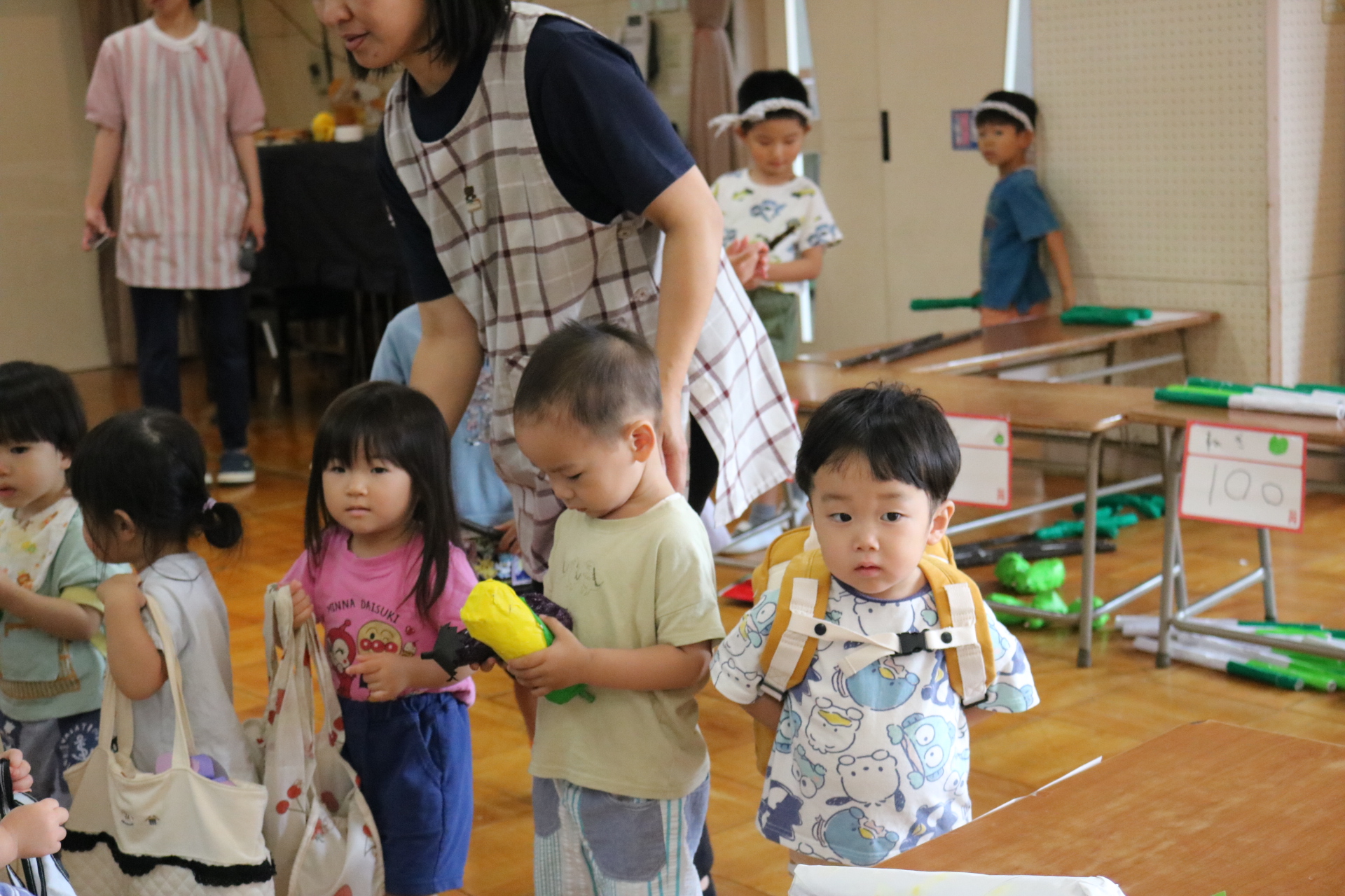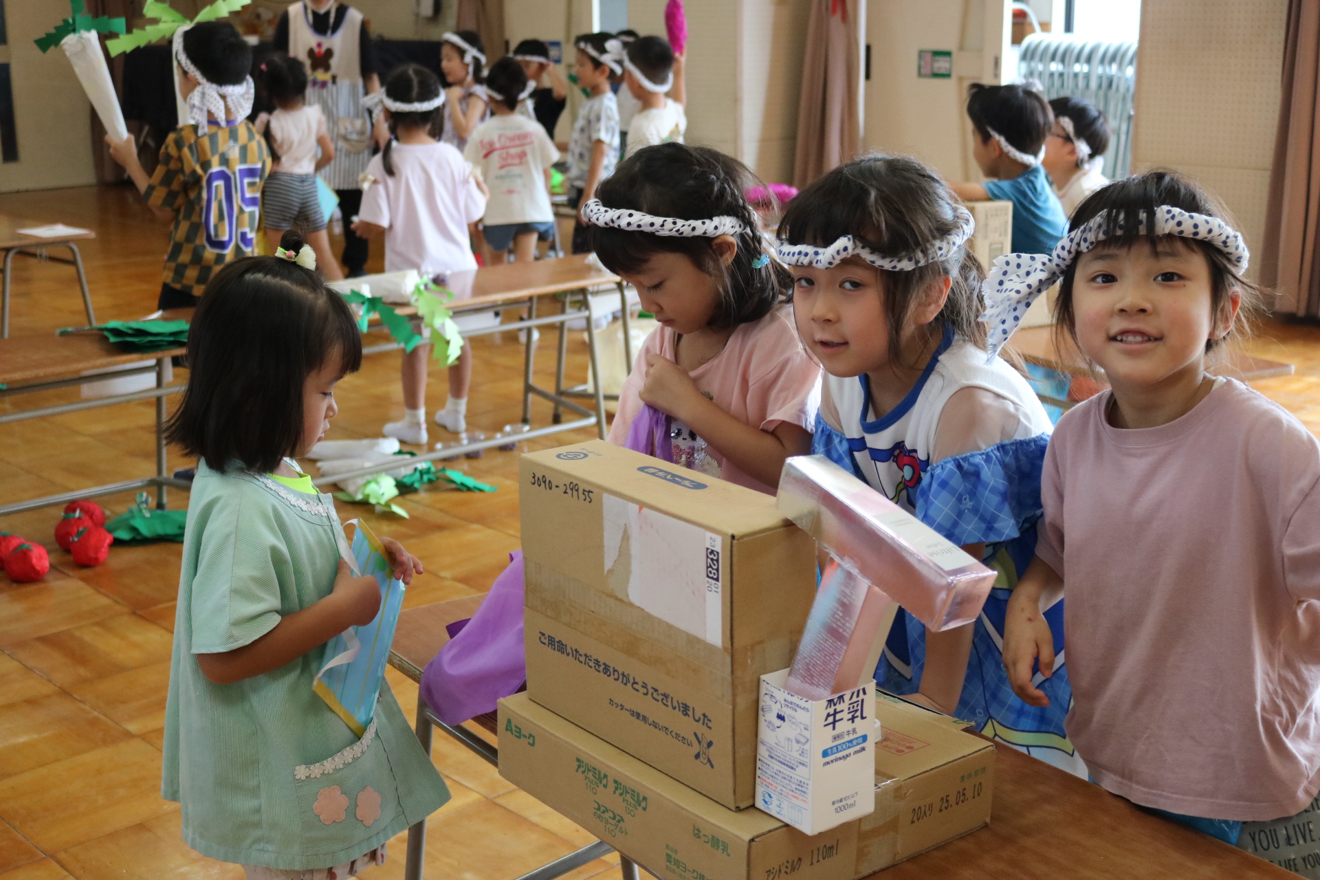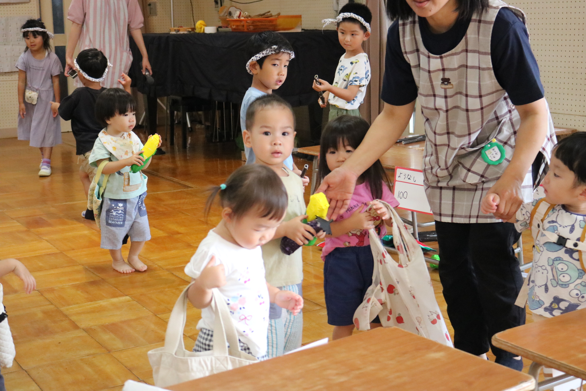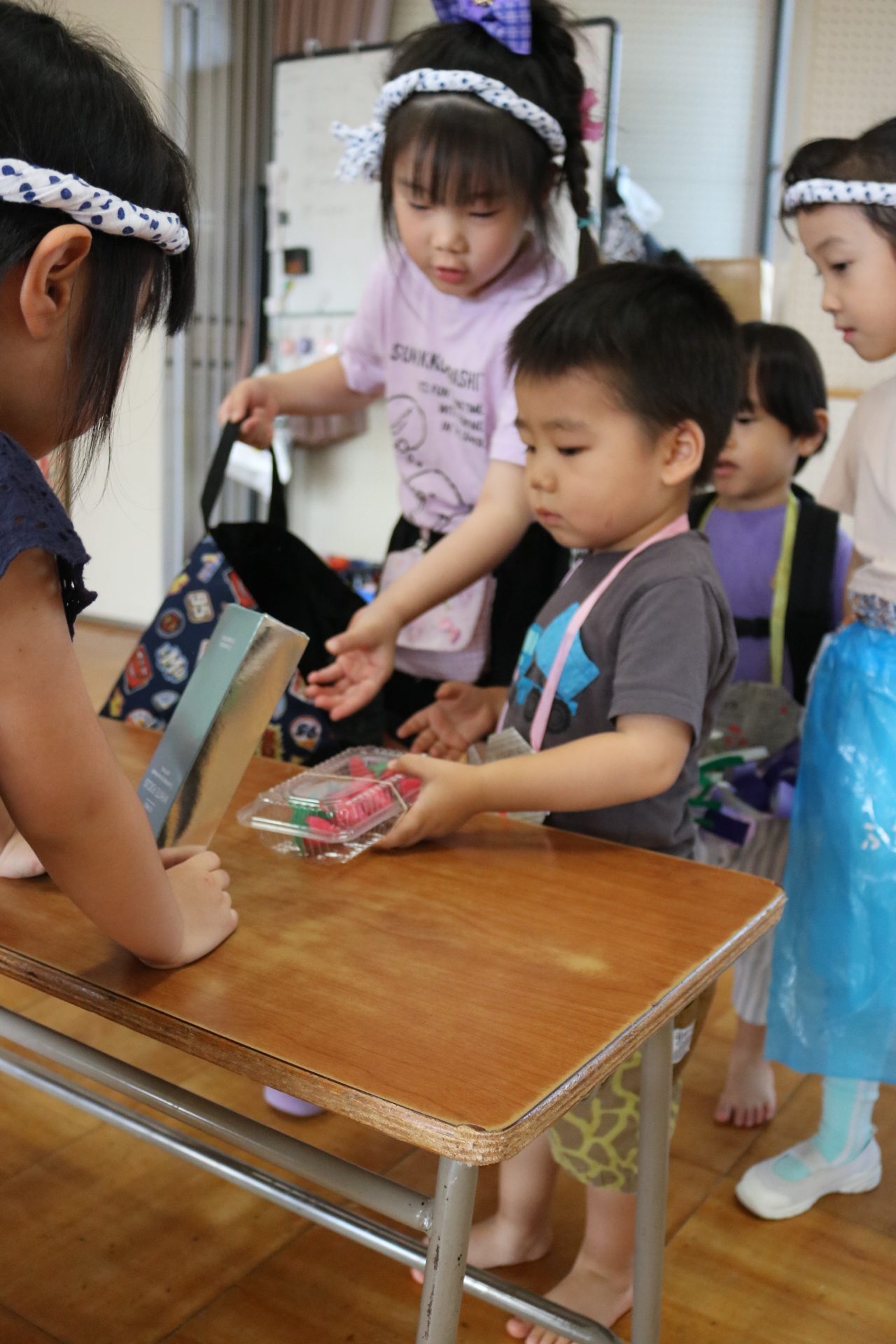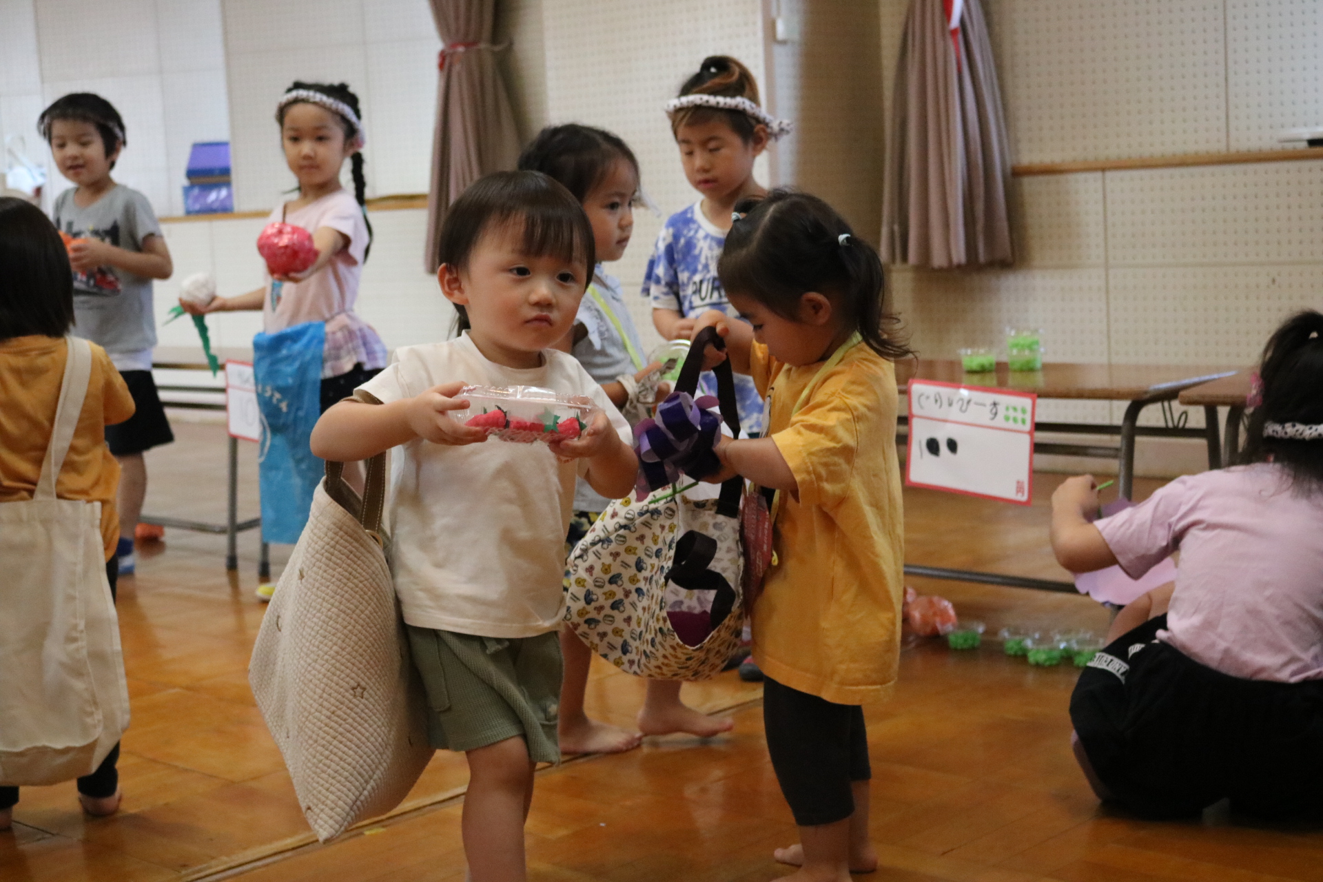 今日は年長さんがお店屋さんになりきって八百屋さんごっこをして遊びました。みんな大好きな野菜や果物は買えたかな?😊