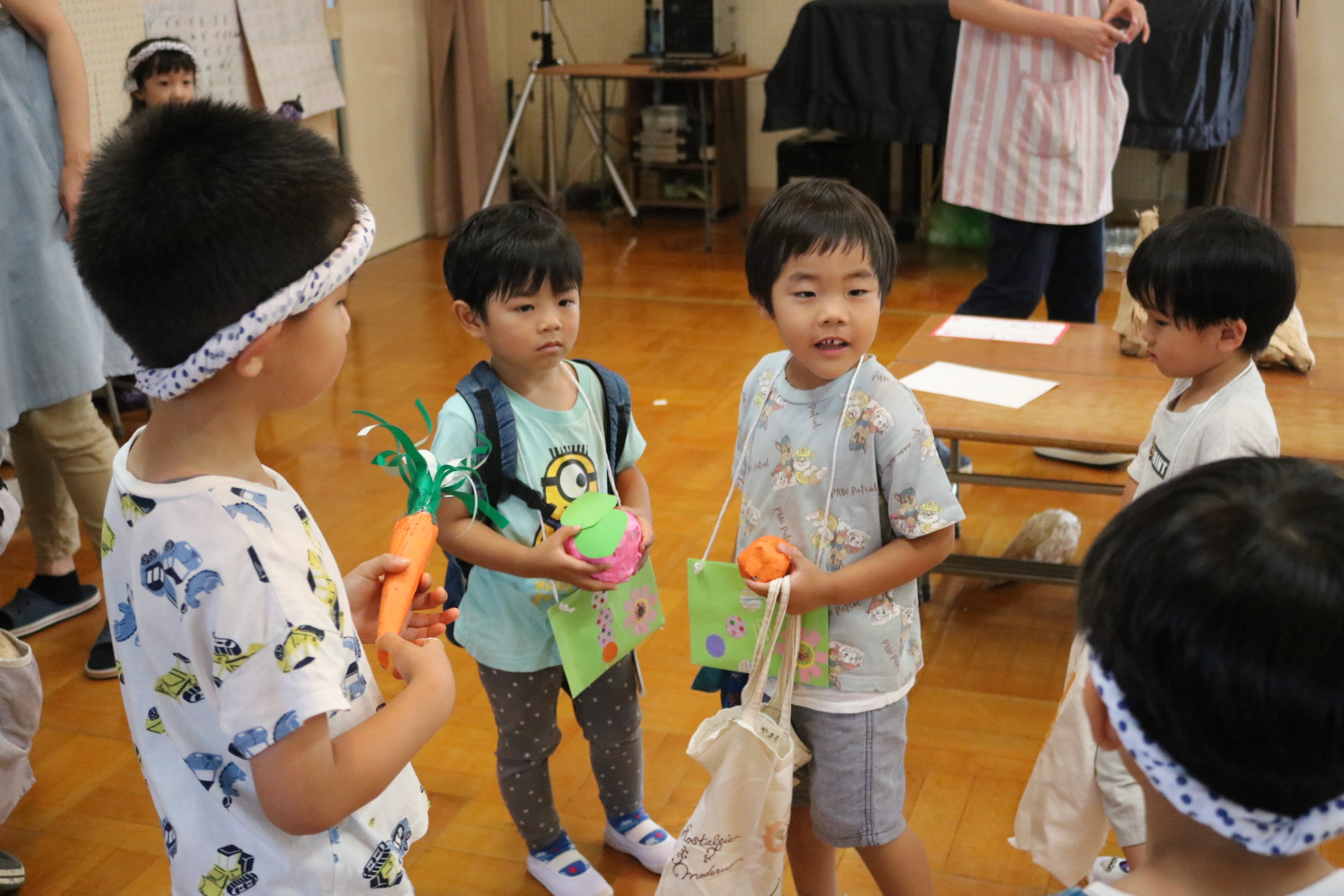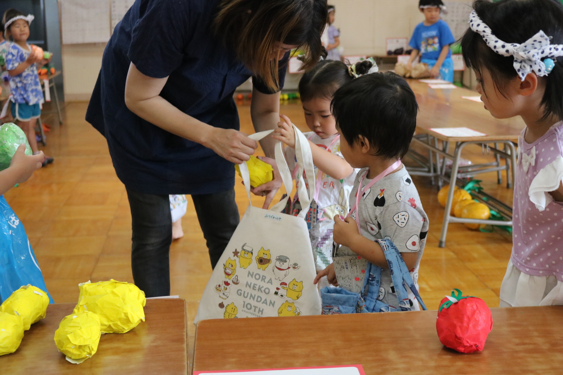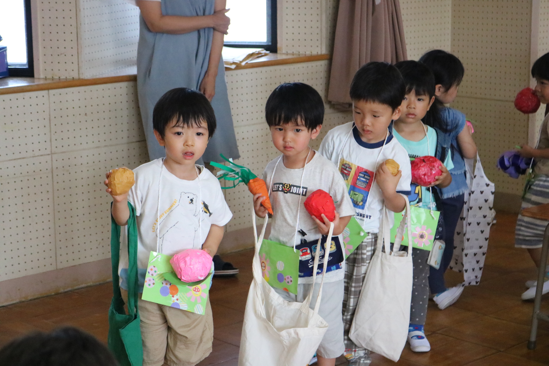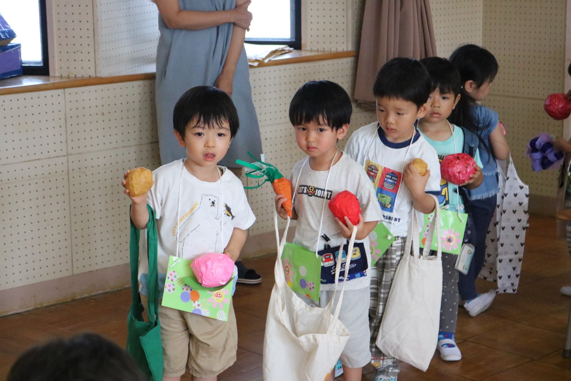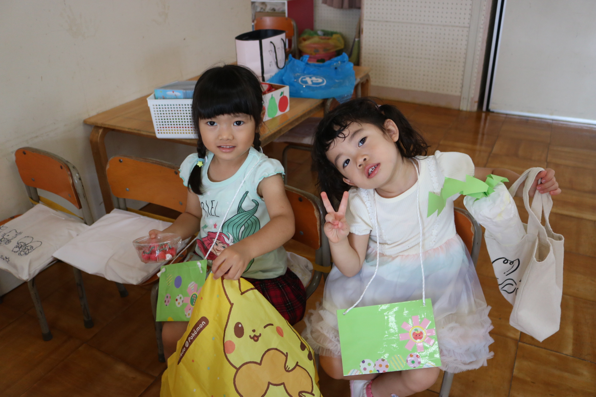 今日は年長さんがお店屋さんになりきって八百屋さんごっこをして遊びました。みんな大好きな野菜や果物は買えたかな?😊