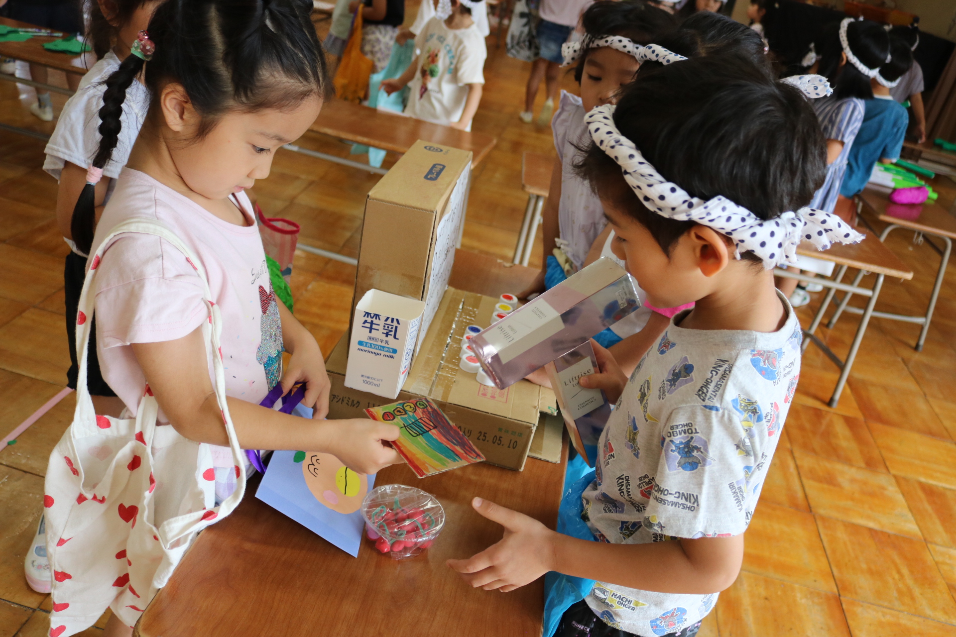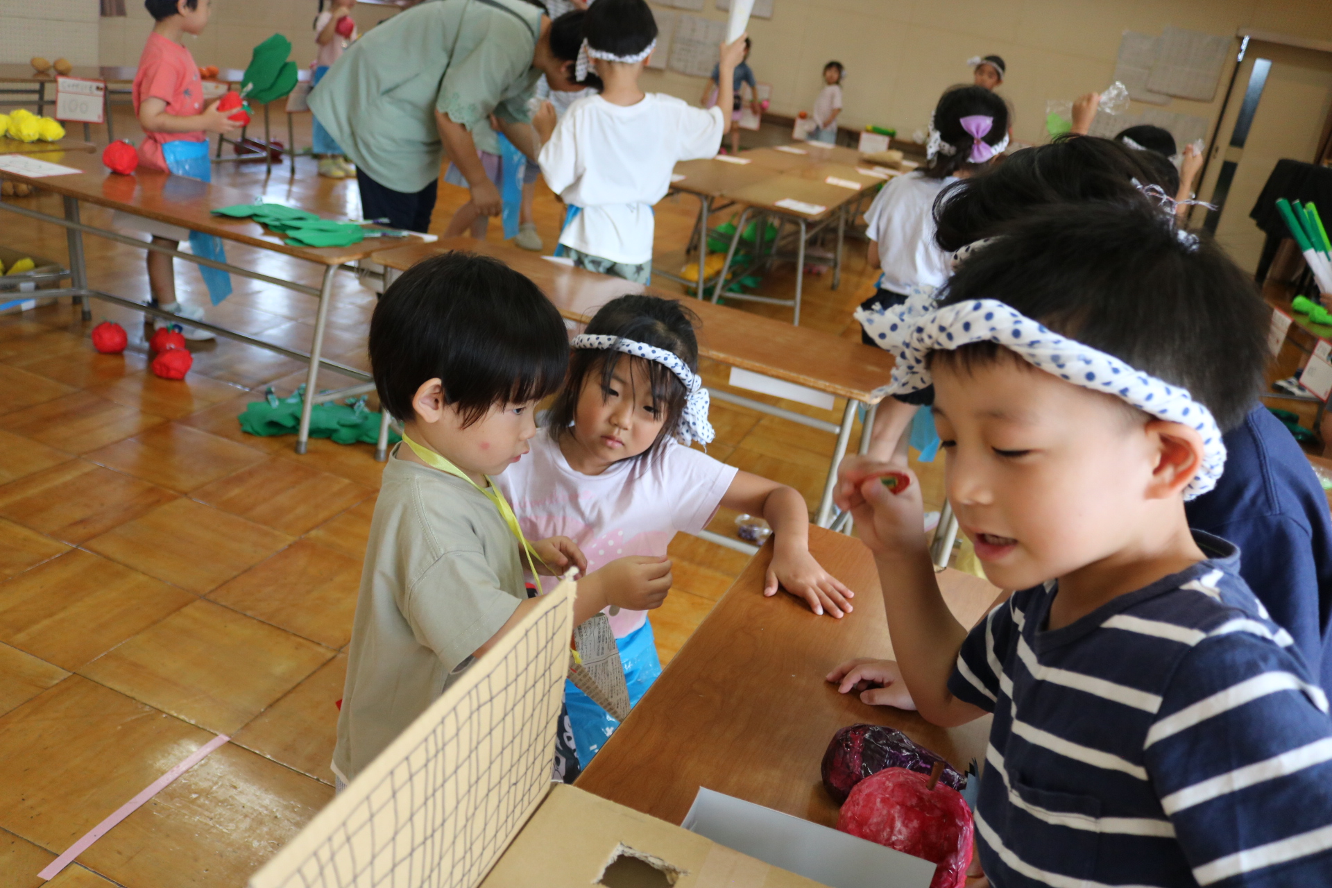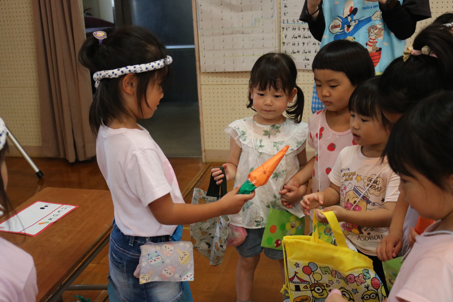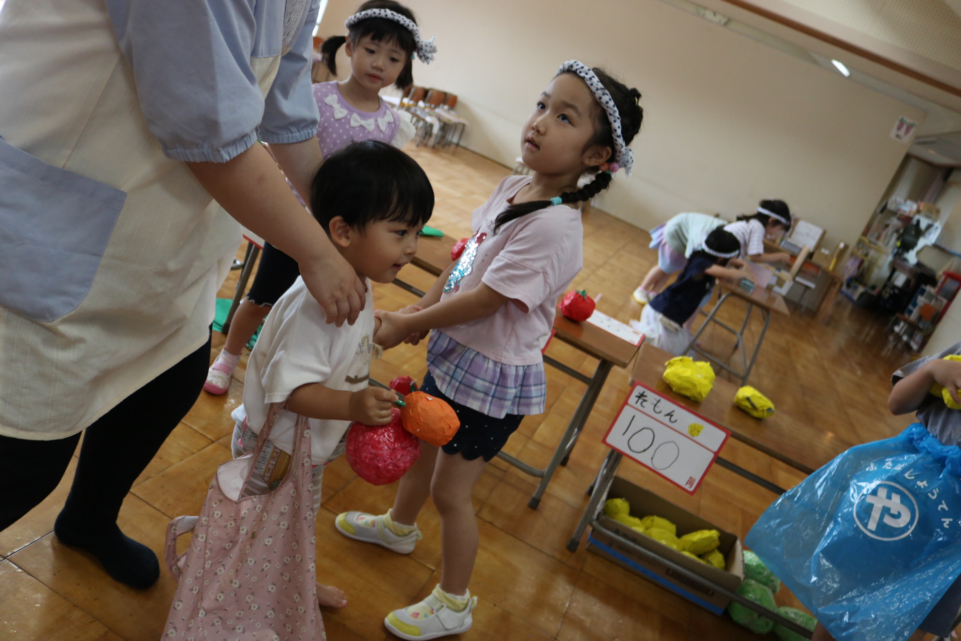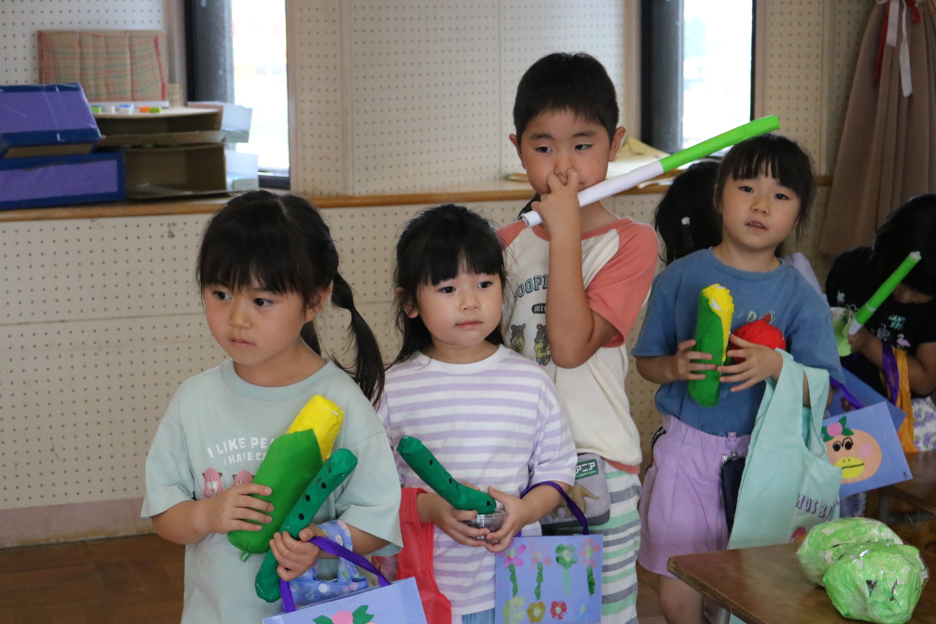今日は年長さんがお店屋さんになりきって八百屋さんごっこをして遊びました。みんな大好きな野菜や果物は買えたかな?😊