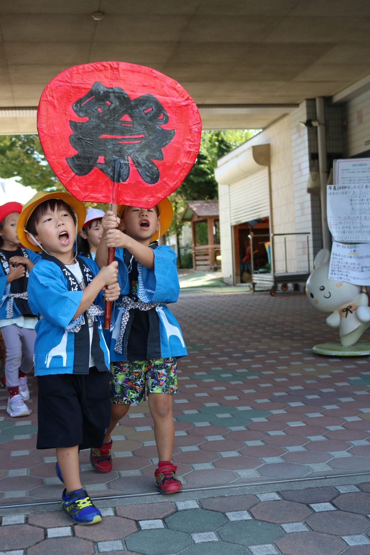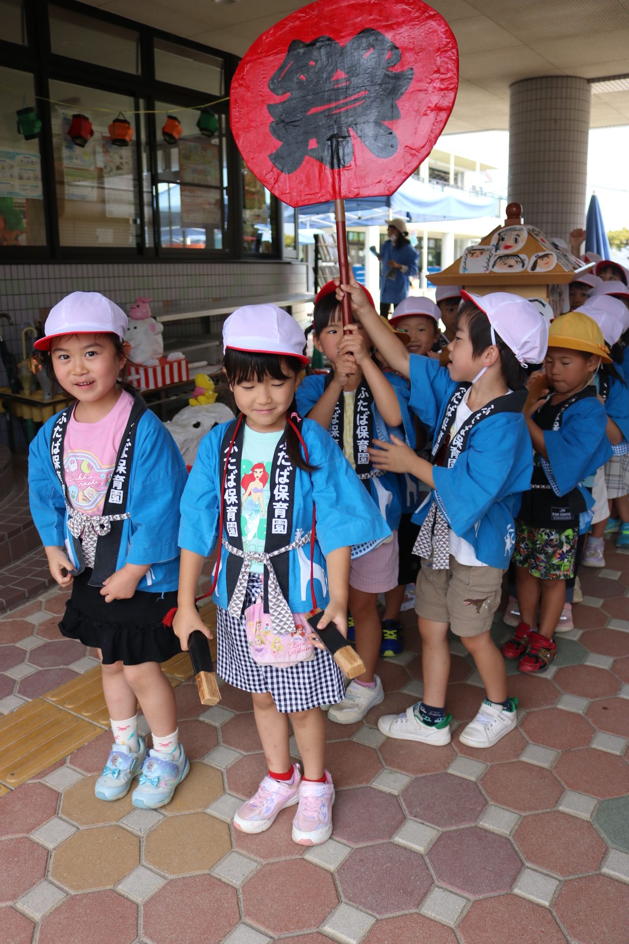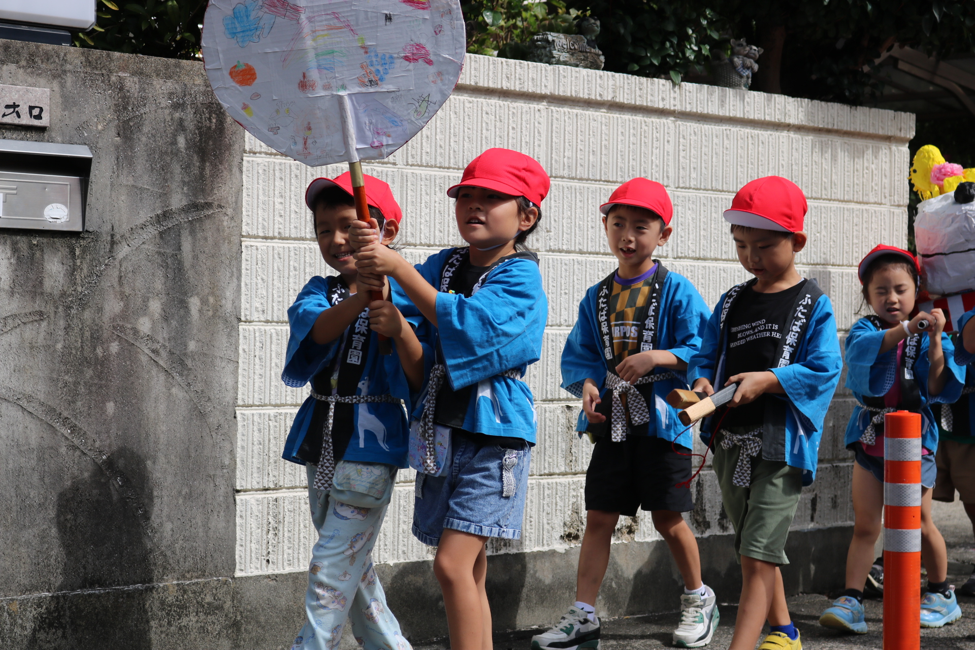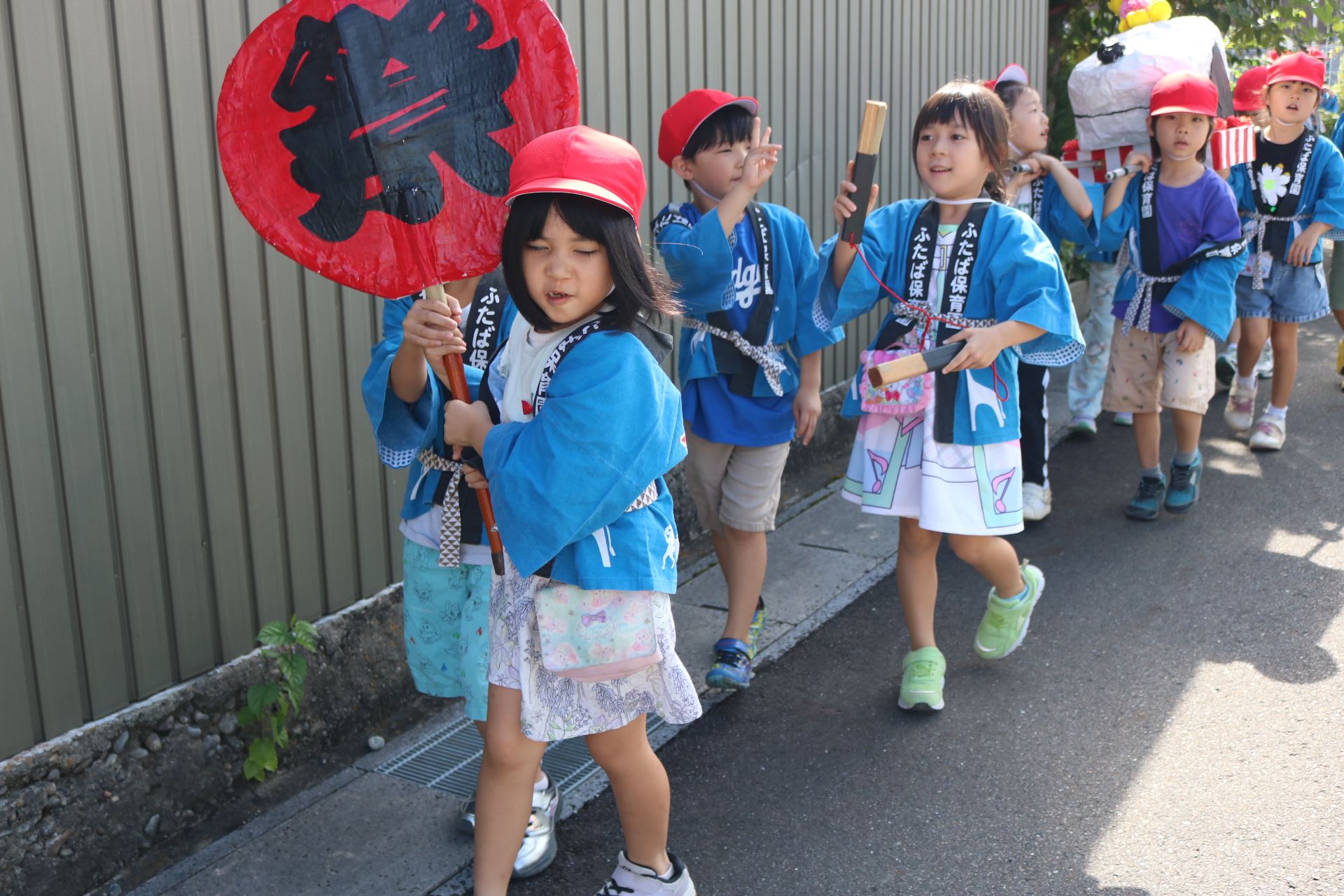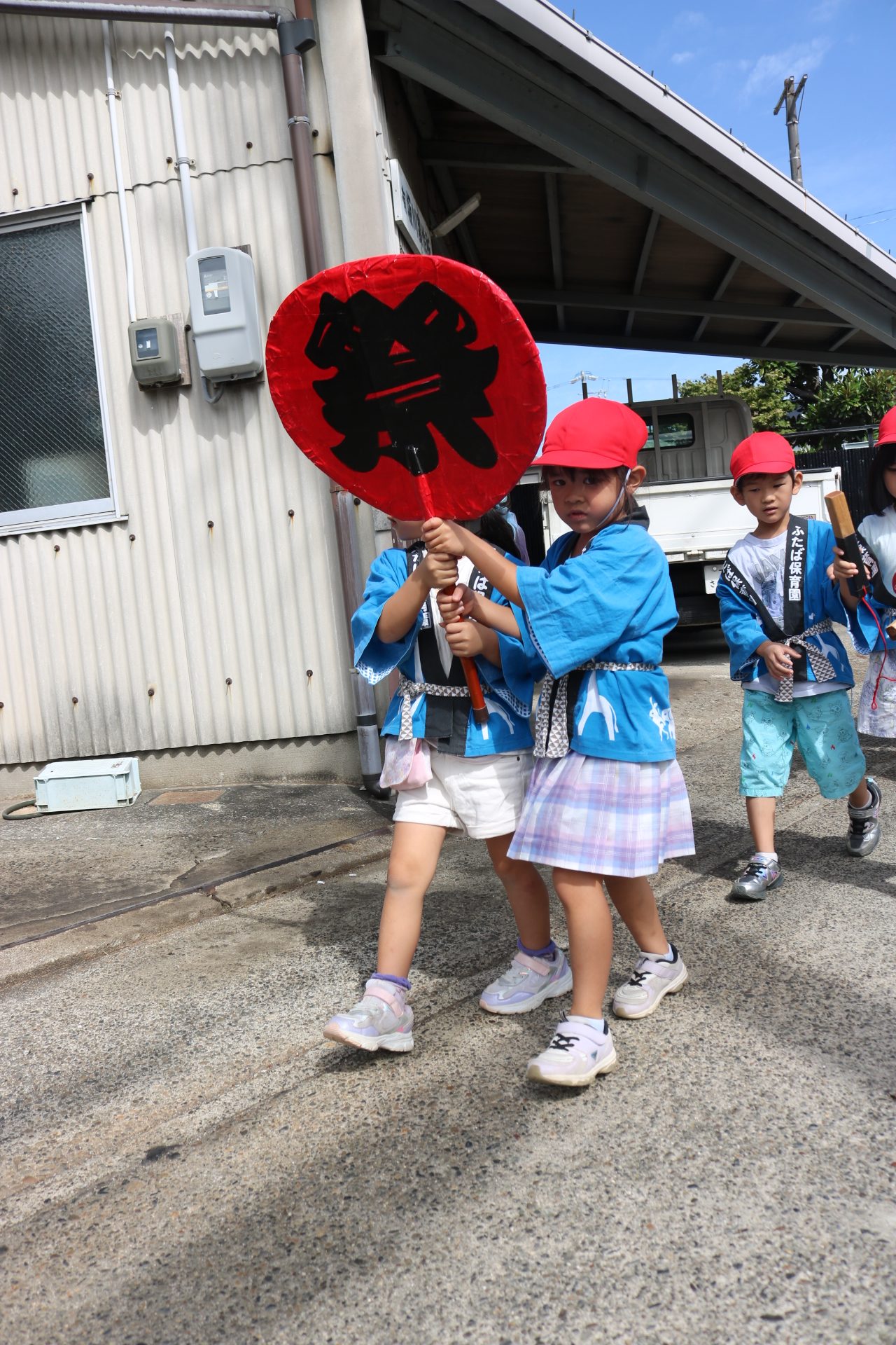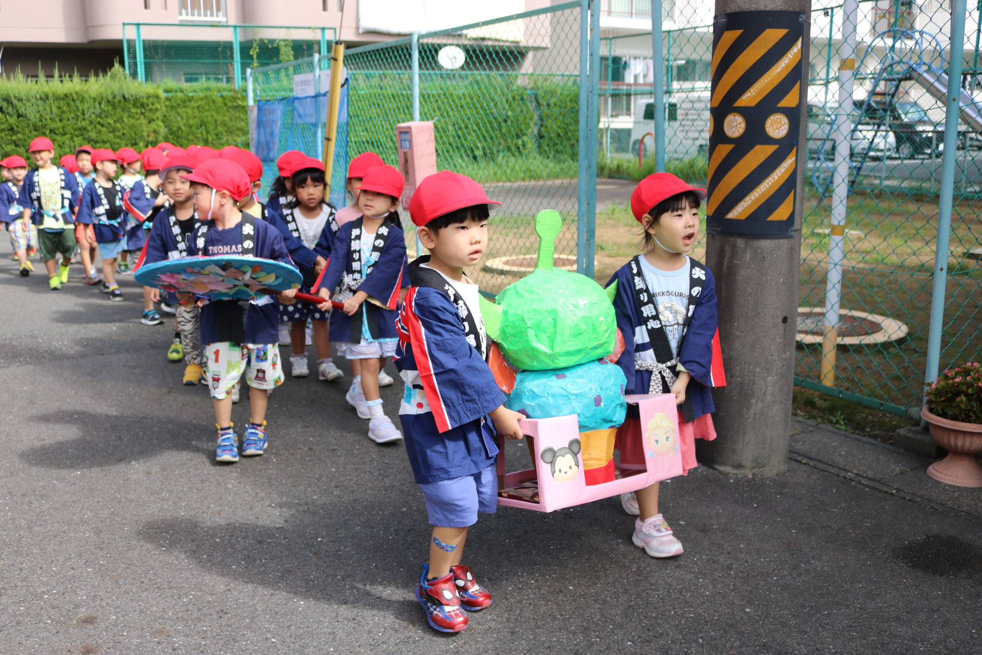 お祭りごっこを楽しんだ子どもたち。お神輿を担いで、近所を歩いてまわりましたよ😊