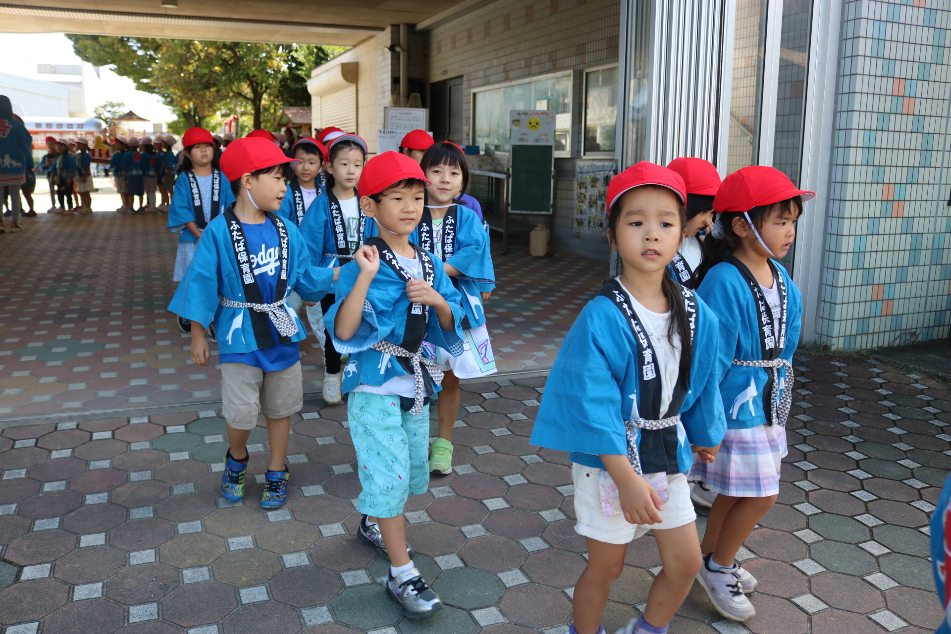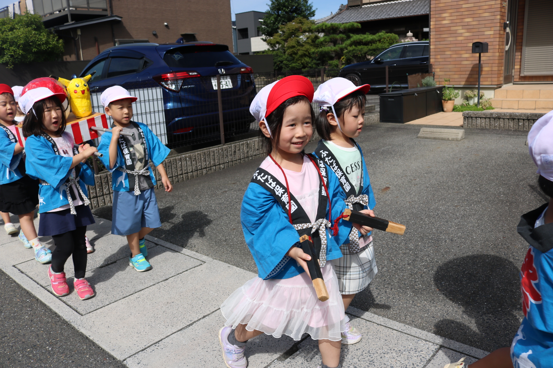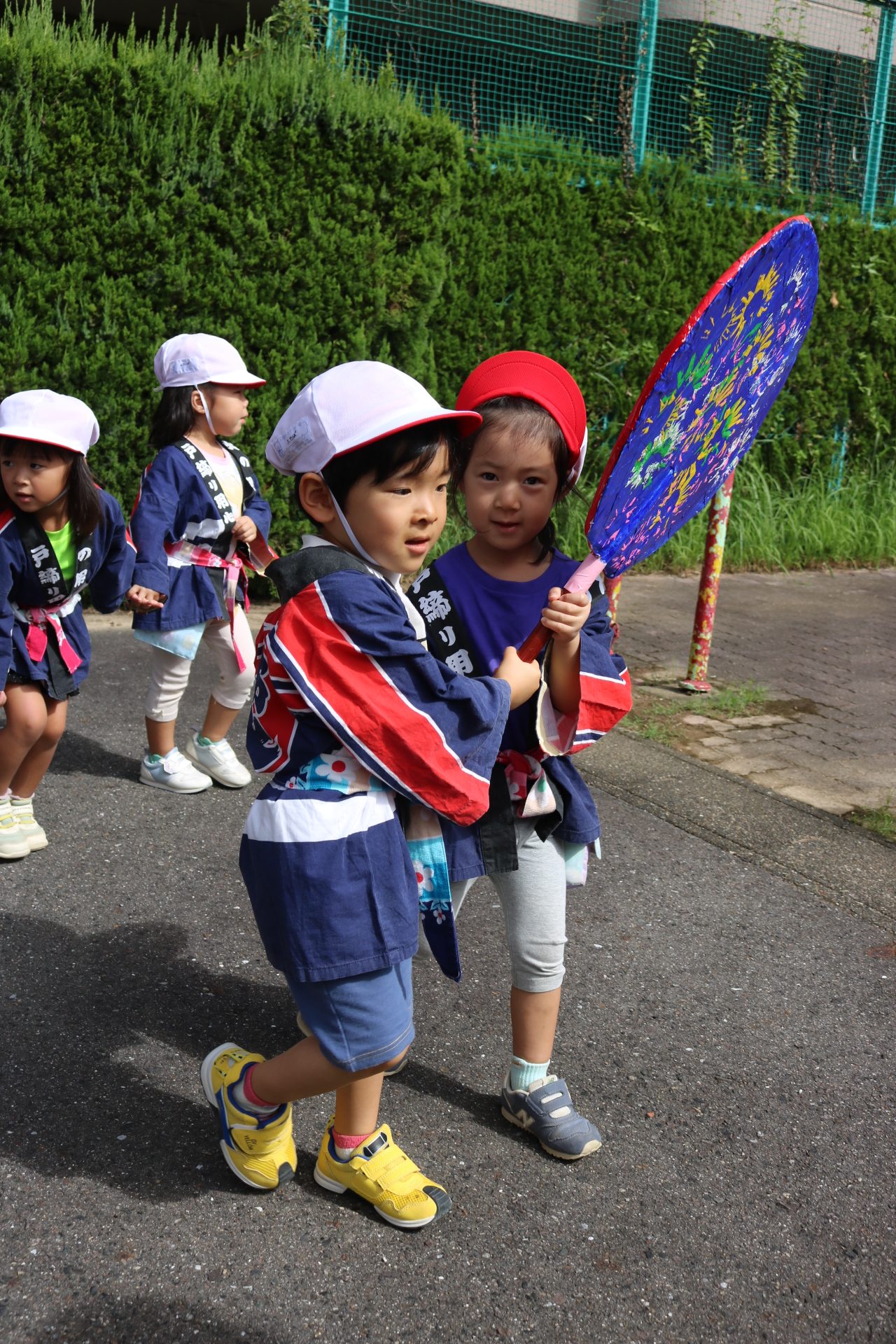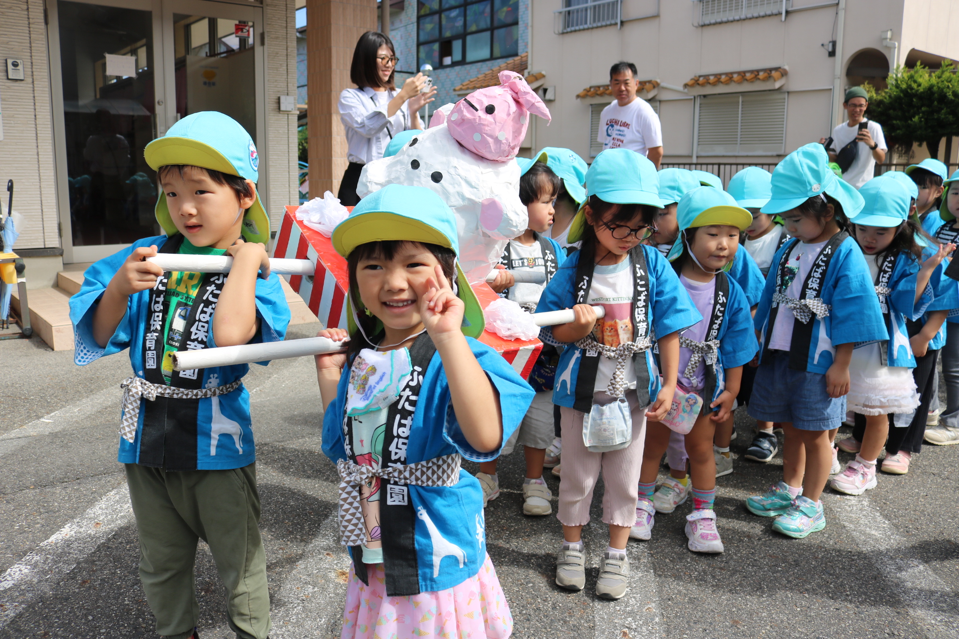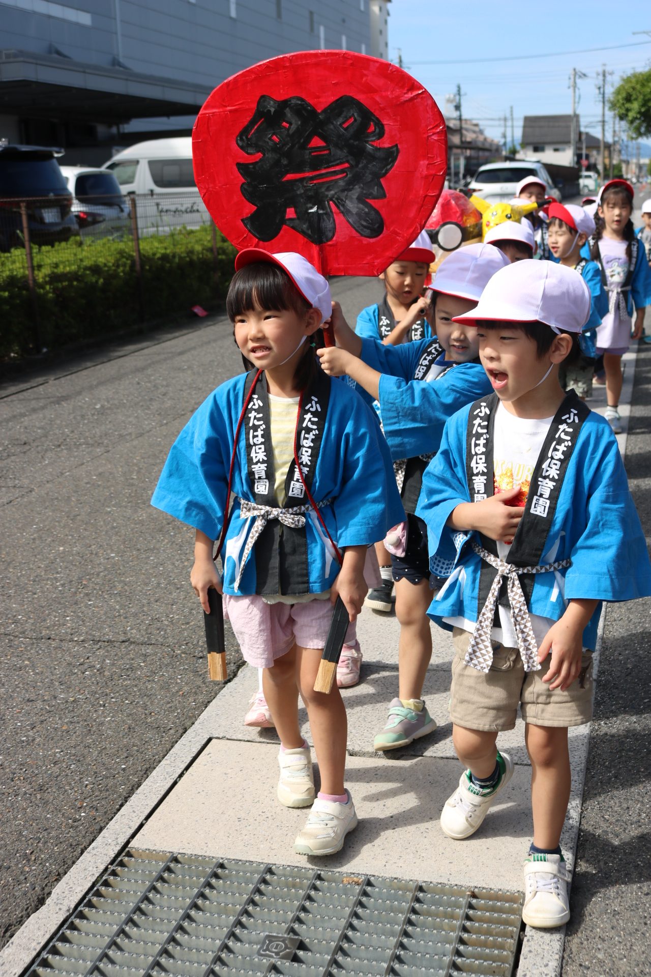 お祭りごっこを楽しんだ子どもたち。お神輿を担いで、近所を歩いてまわりましたよ😊