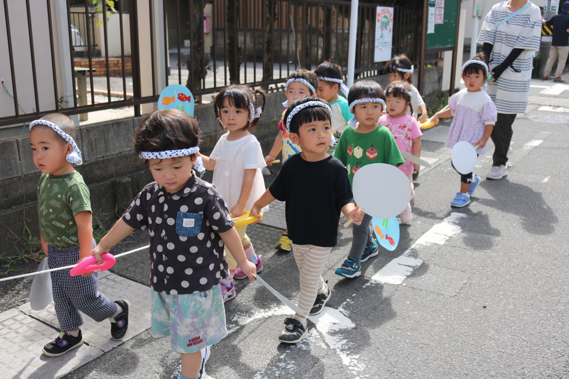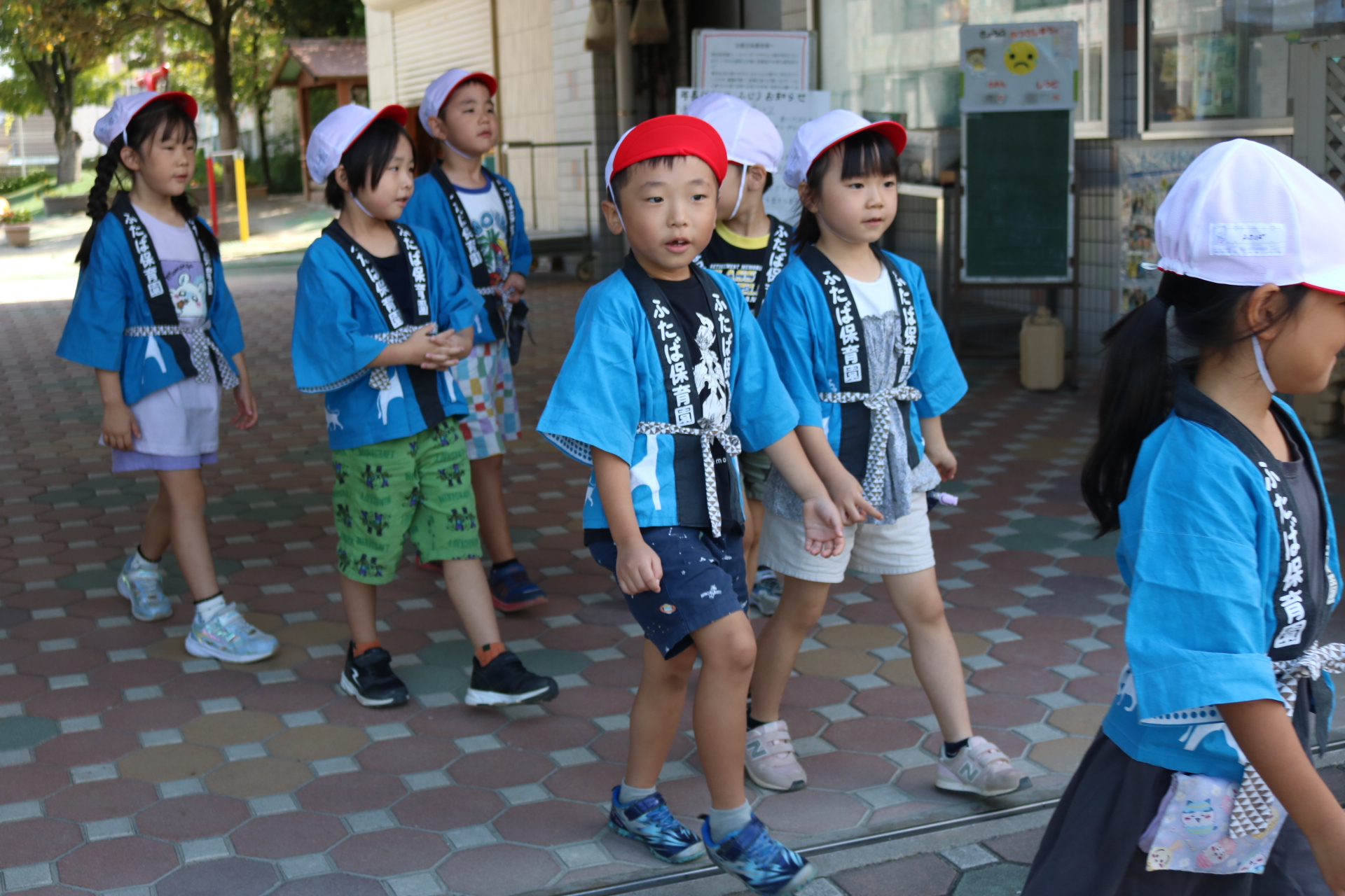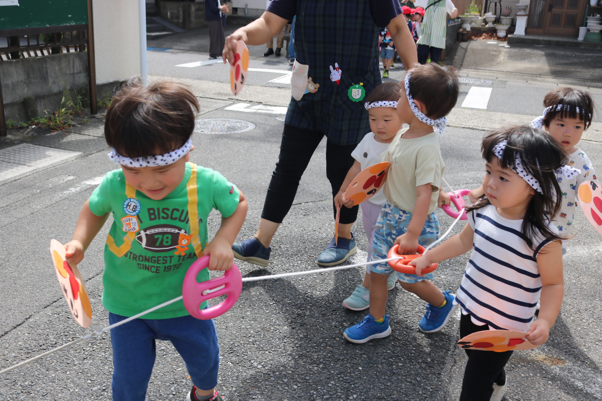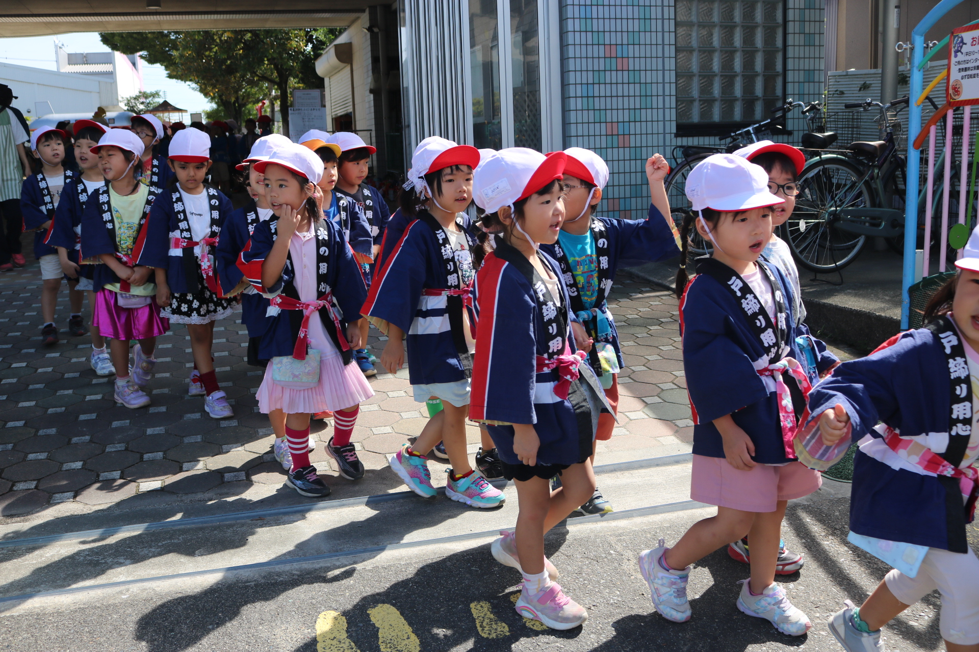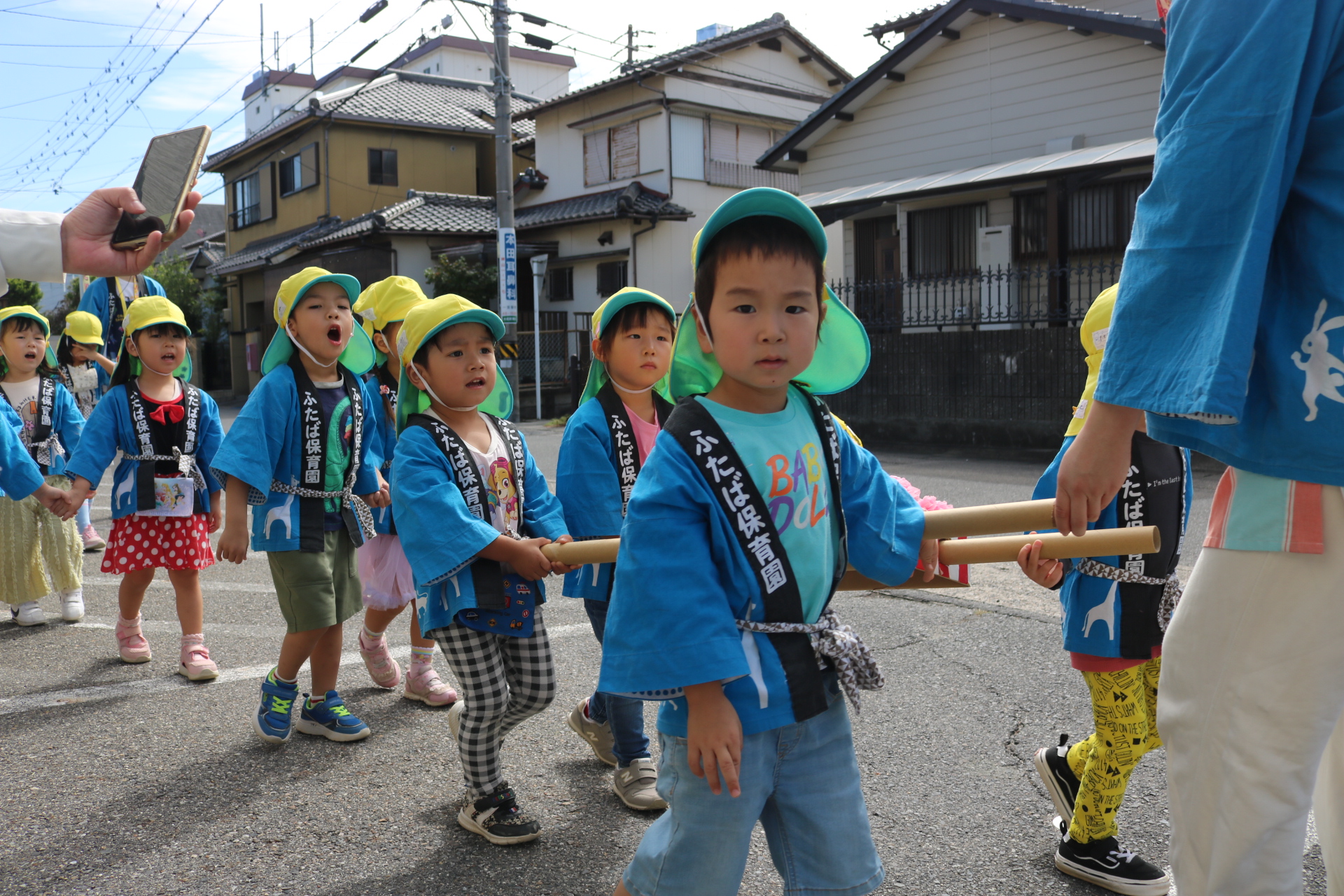 お祭りごっこを楽しんだ子どもたち。お神輿を担いで、近所を歩いてまわりましたよ😊
