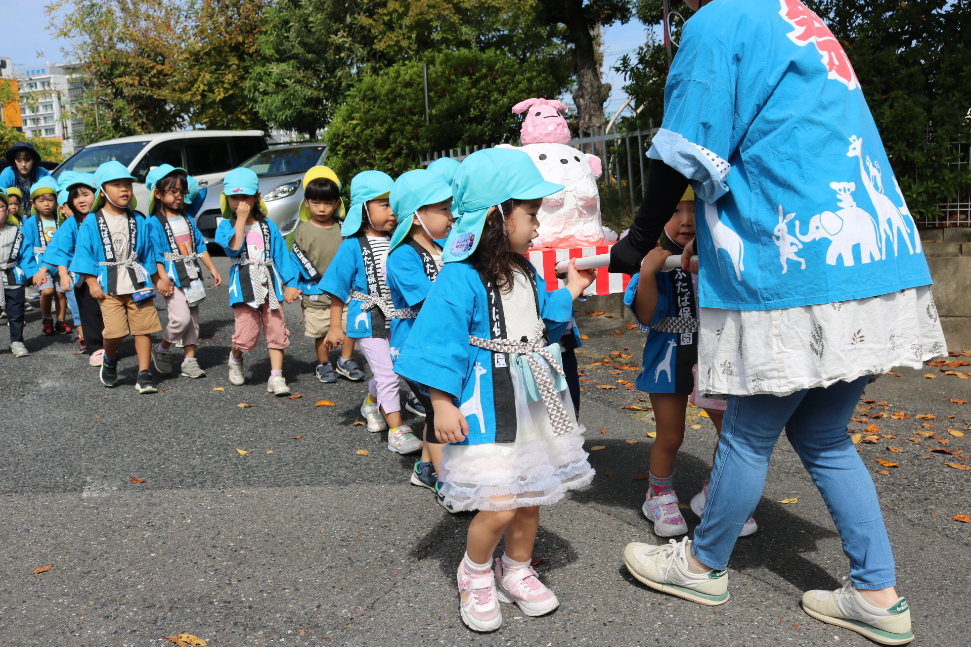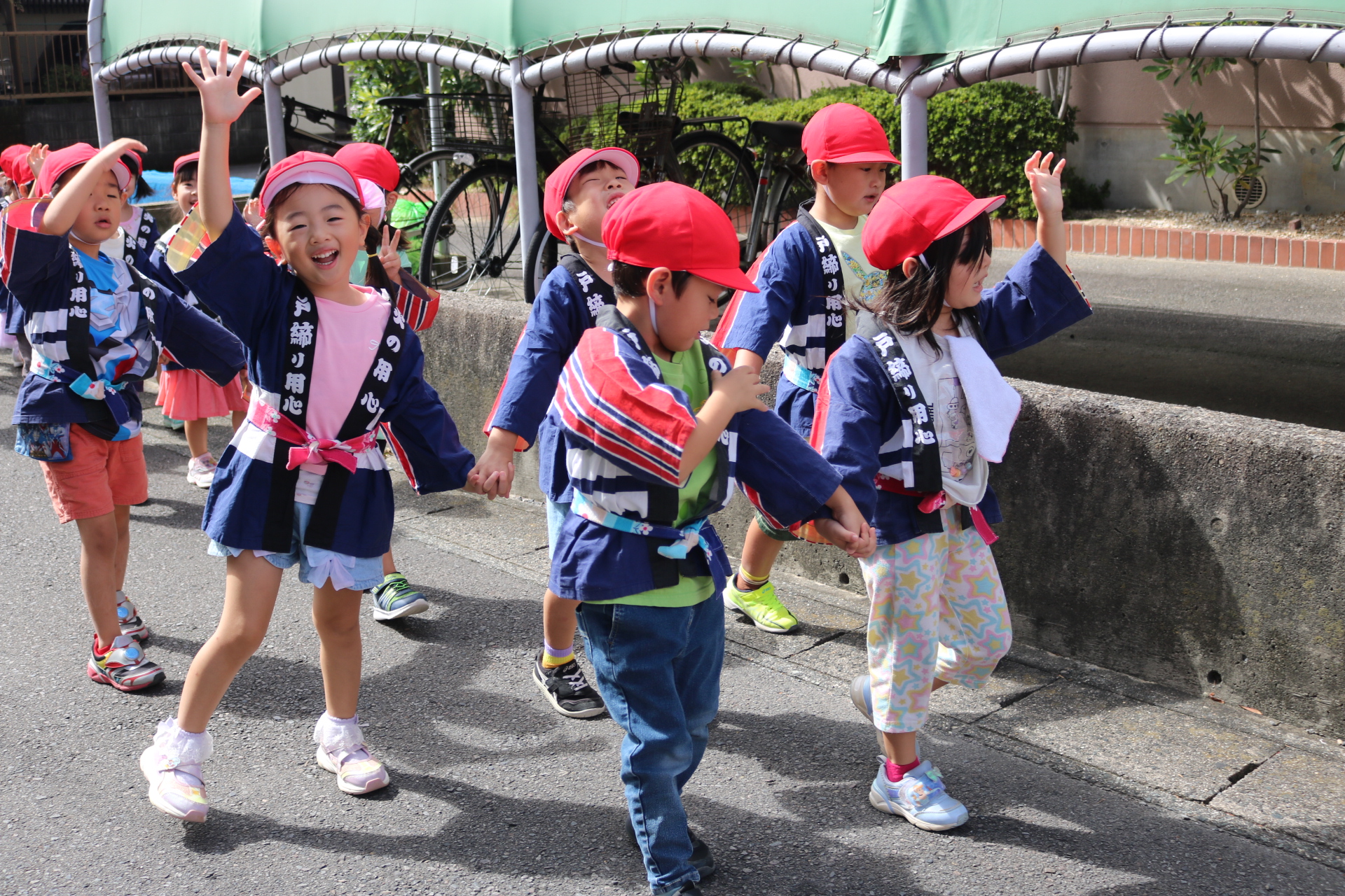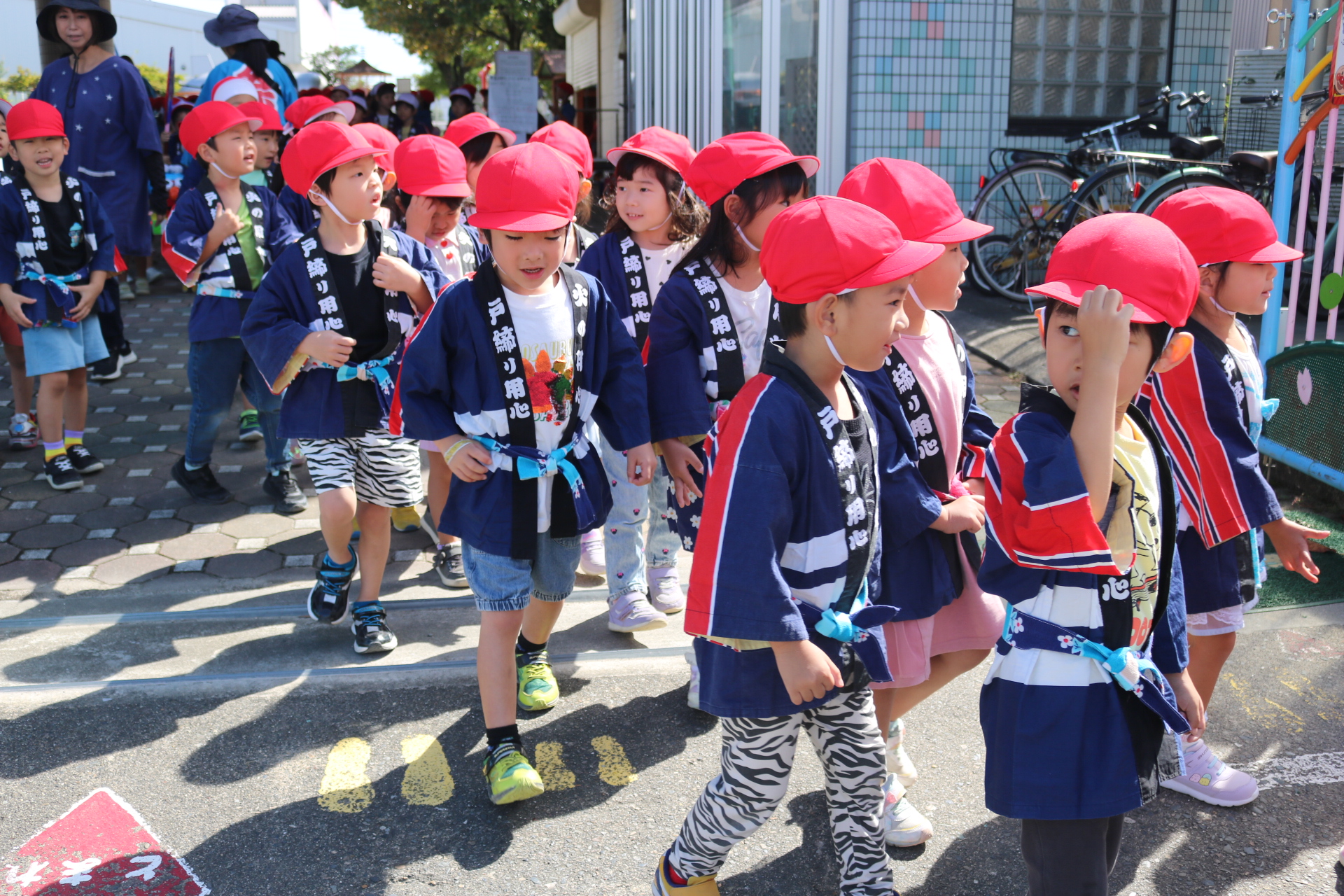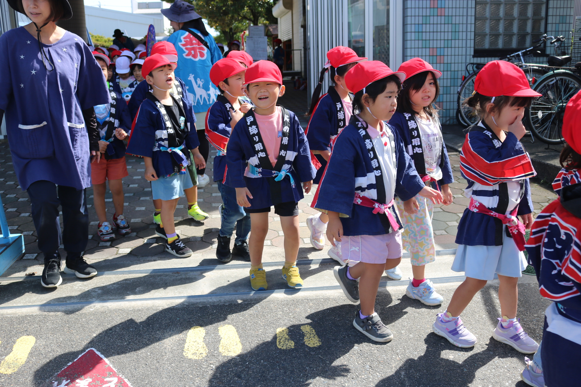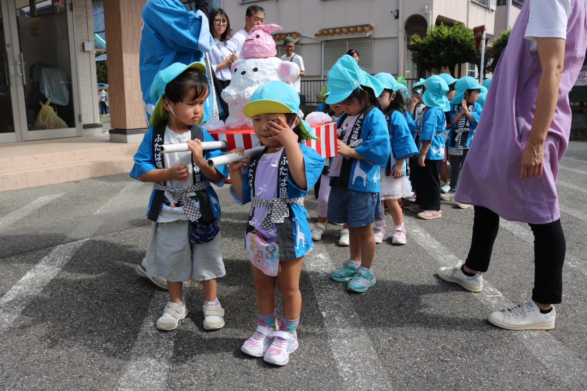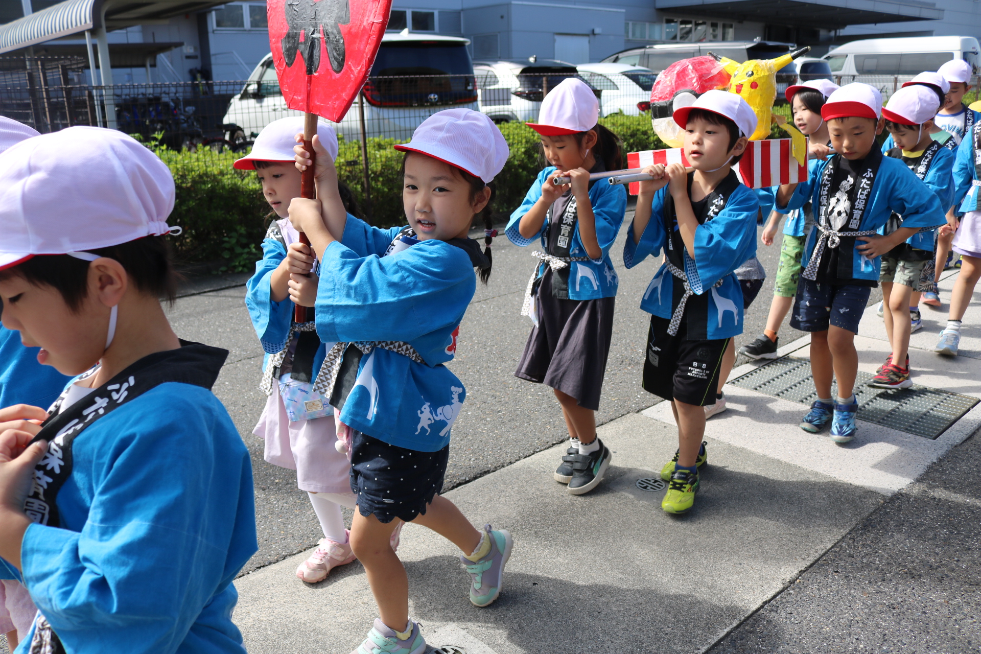 お祭りごっこを楽しんだ子どもたち。お神輿を担いで、近所を歩いてまわりましたよ😊