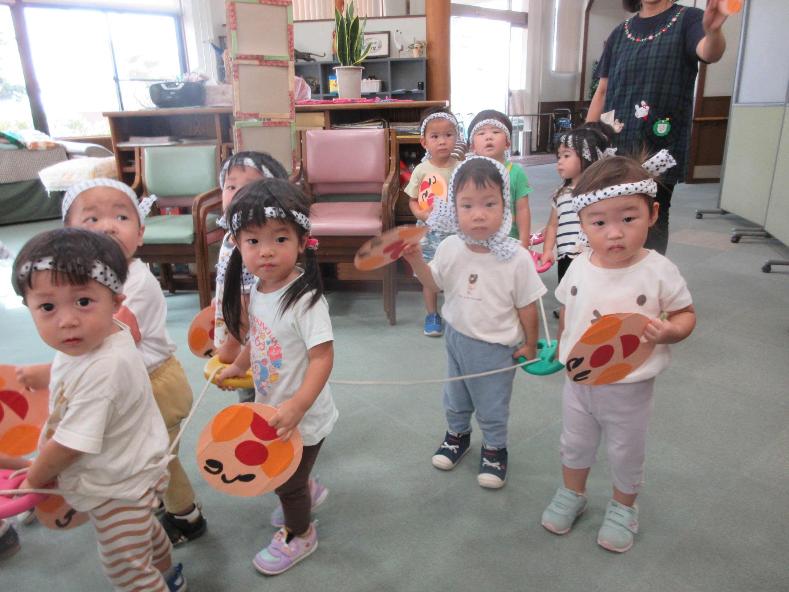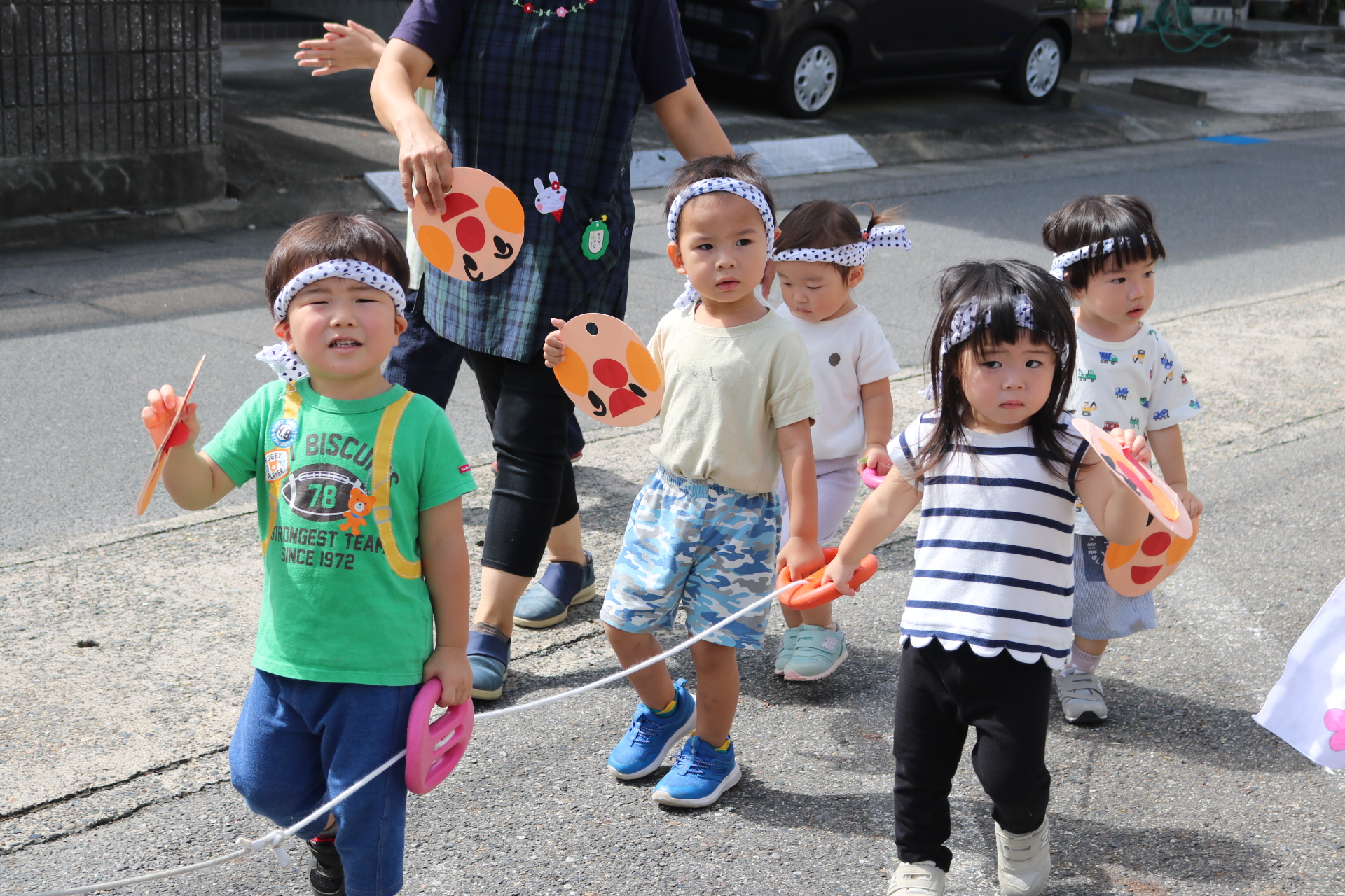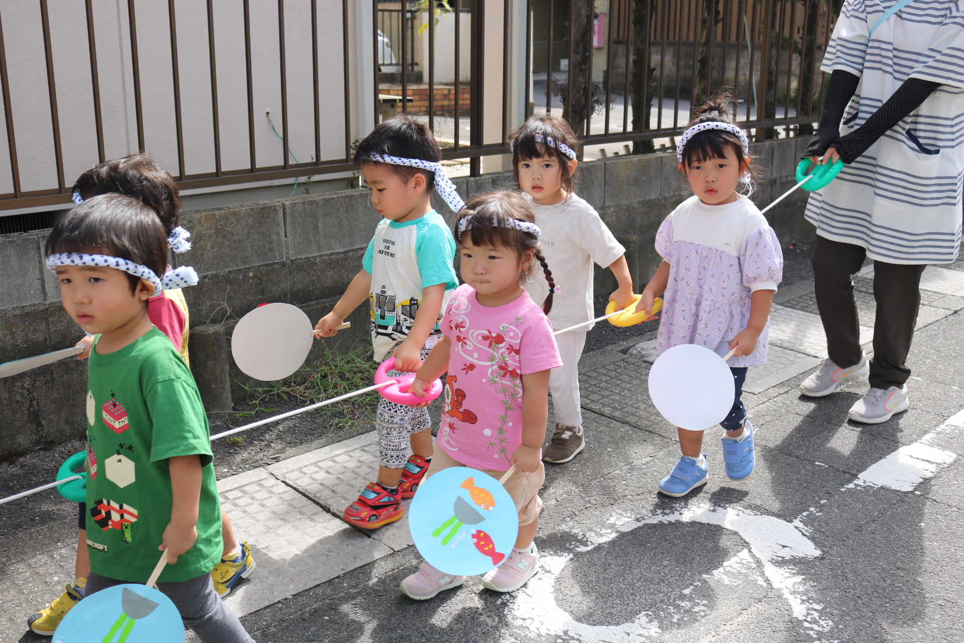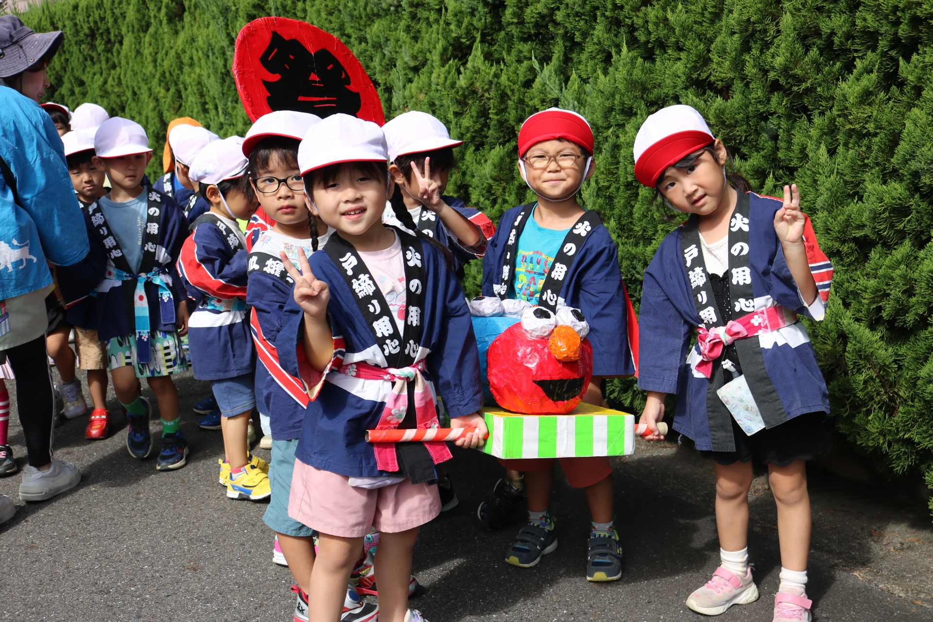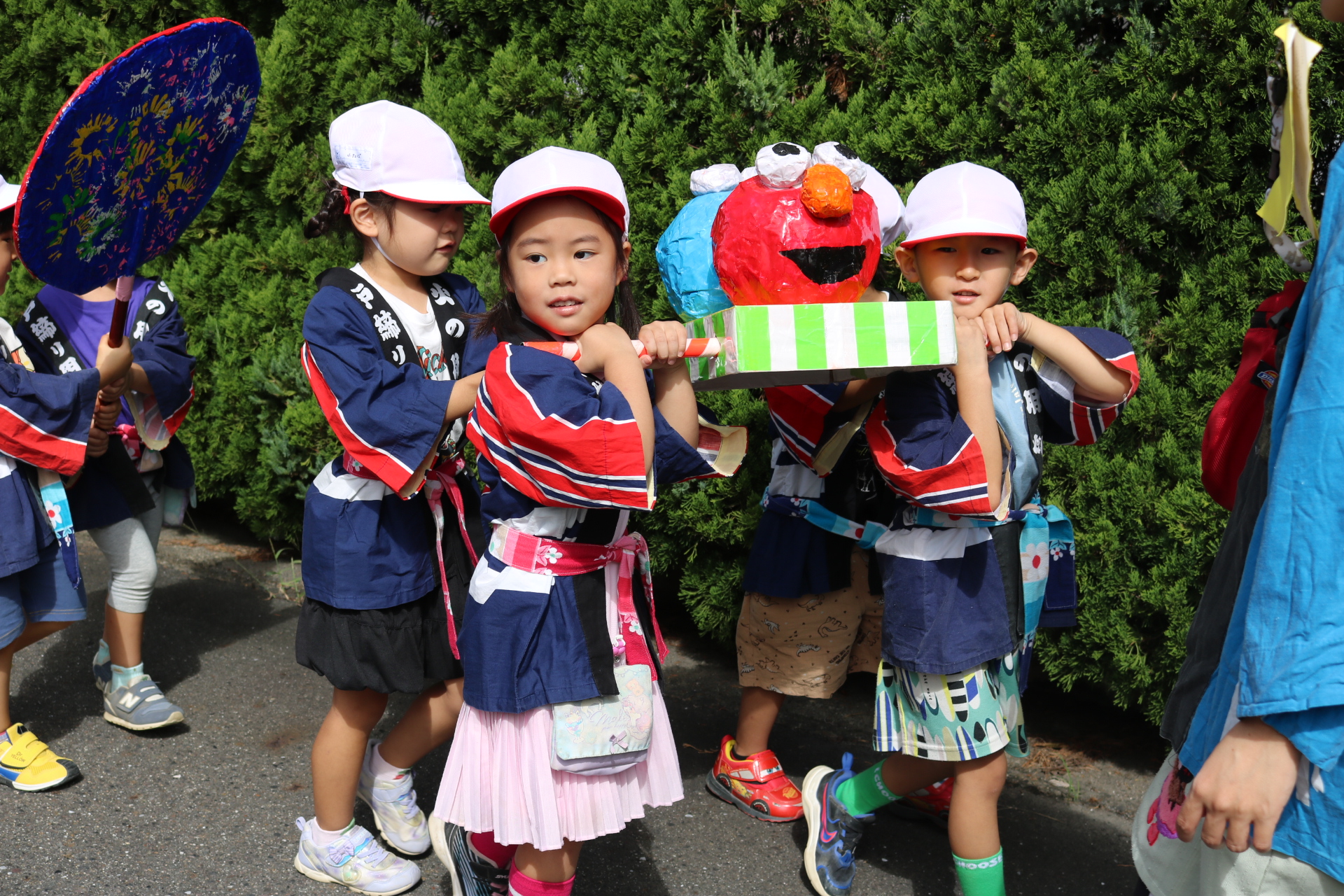 お祭りごっこを楽しんだ子どもたち。お神輿を担いで、近所を歩いてまわりましたよ😊