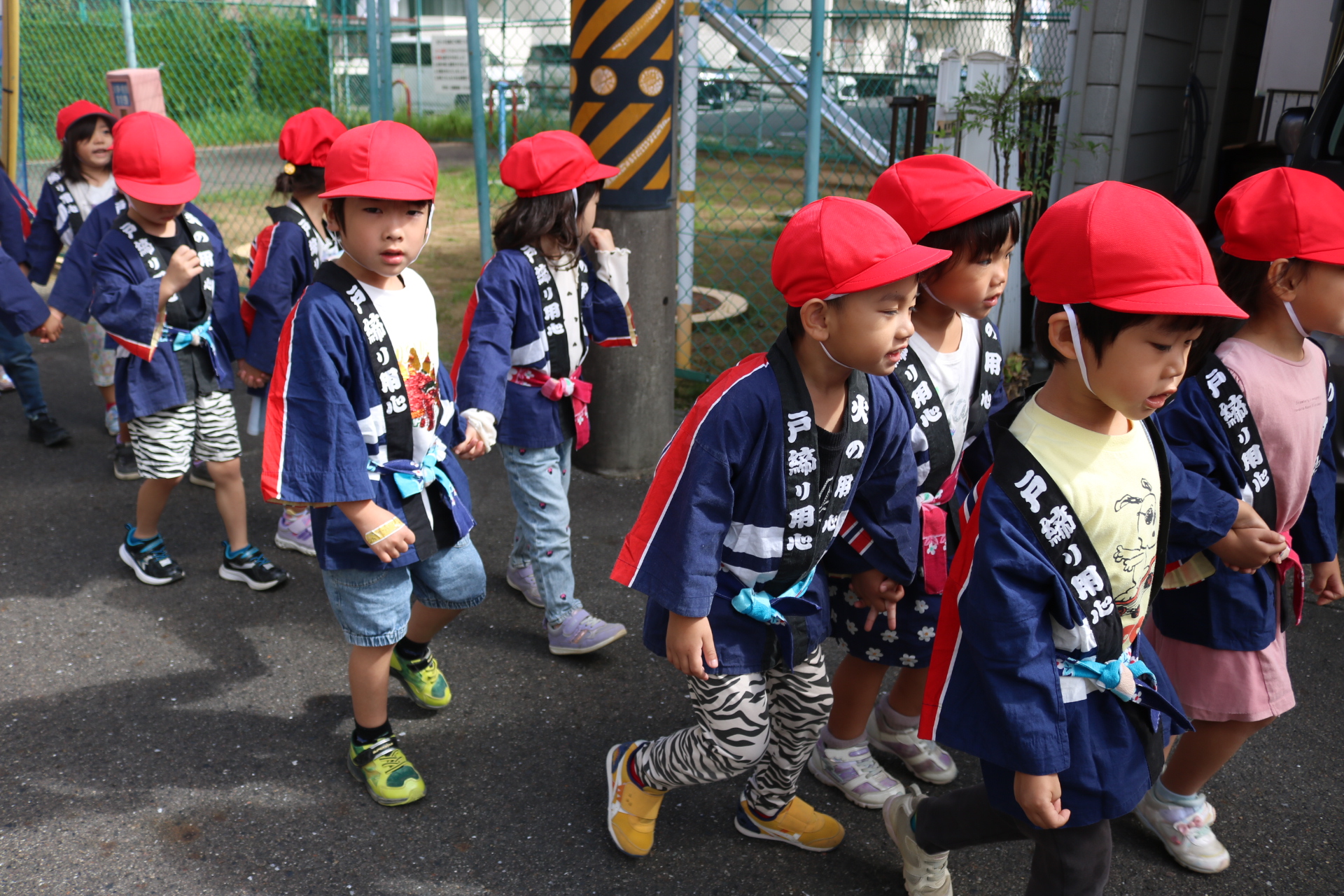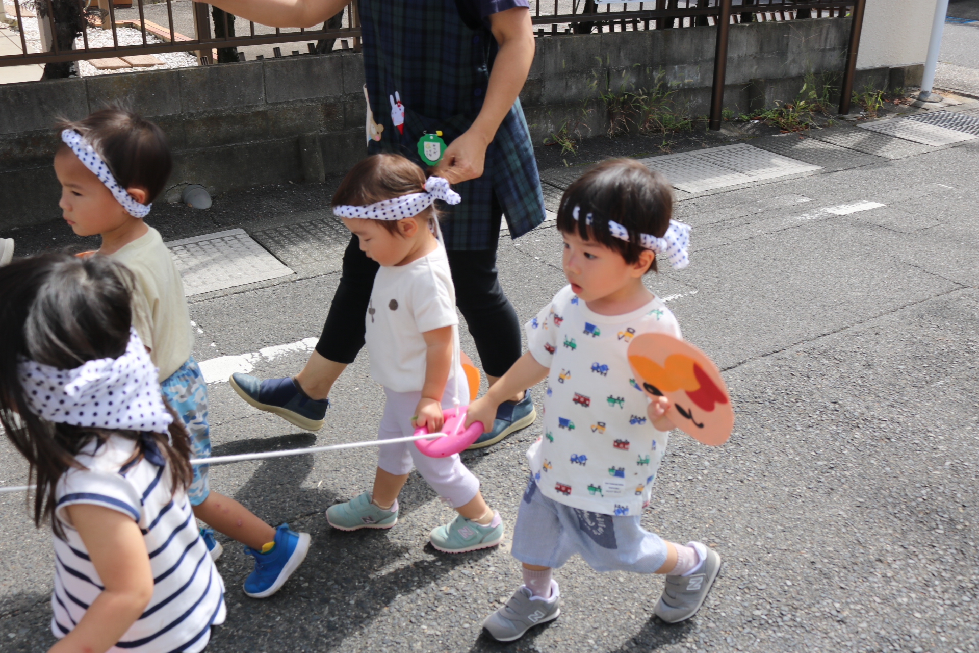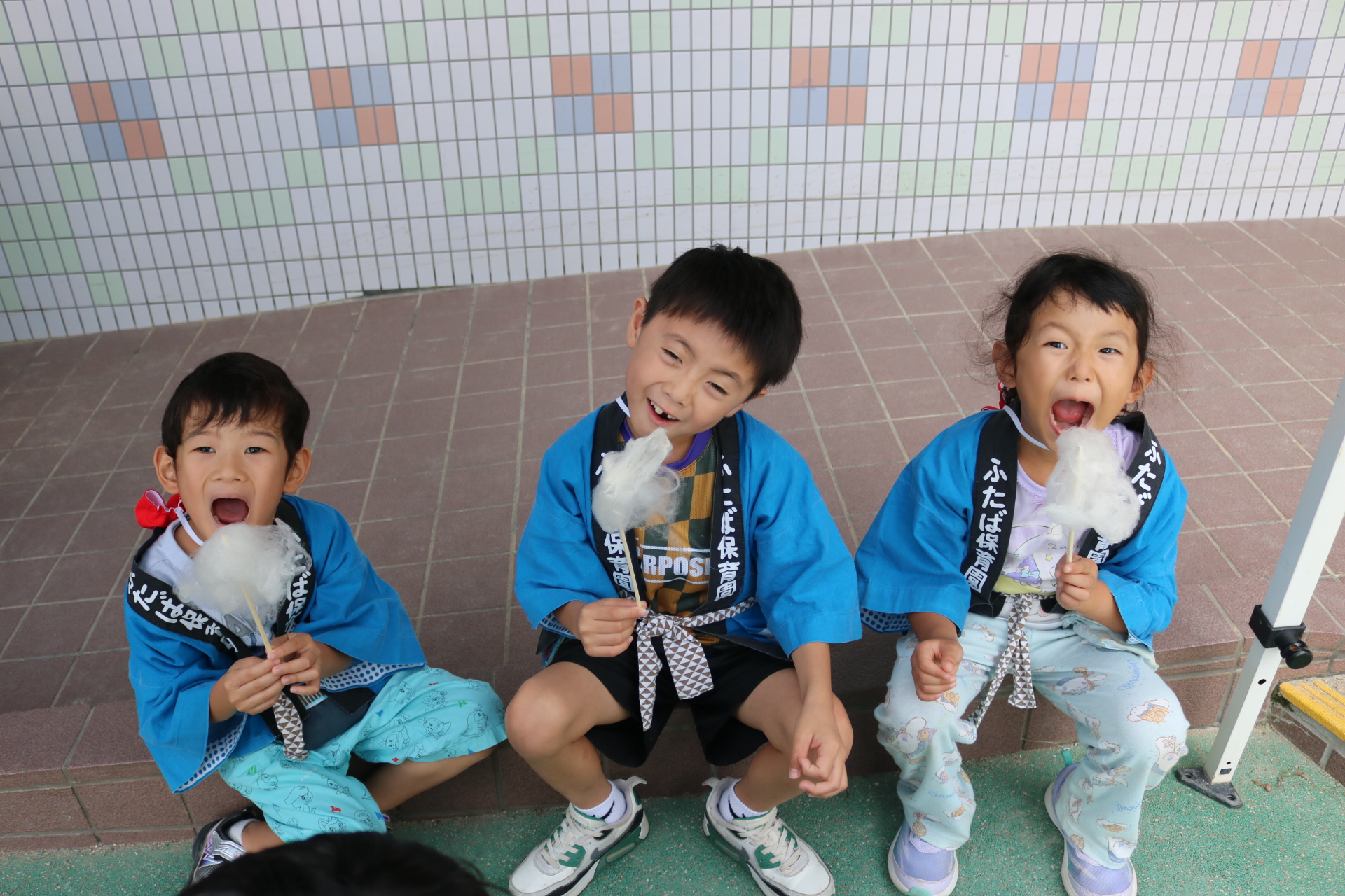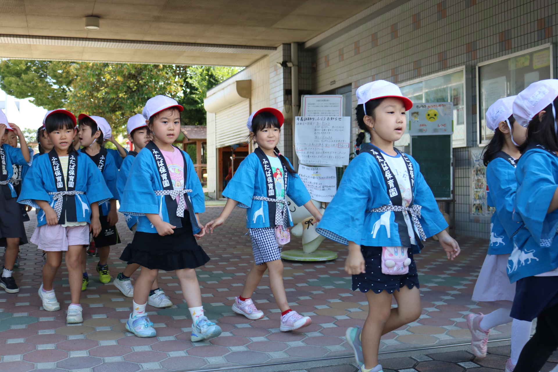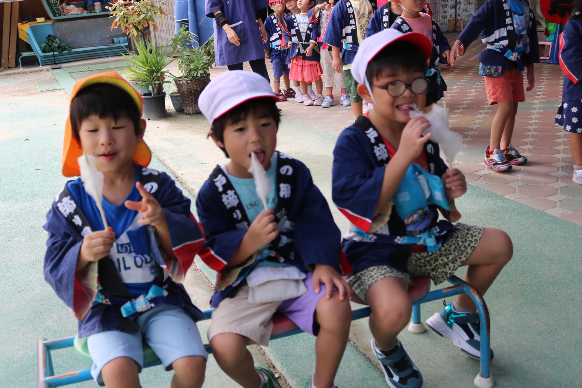 お祭りごっこを楽しんだ子どもたち。お神輿を担いで、近所を歩いてまわりましたよ😊