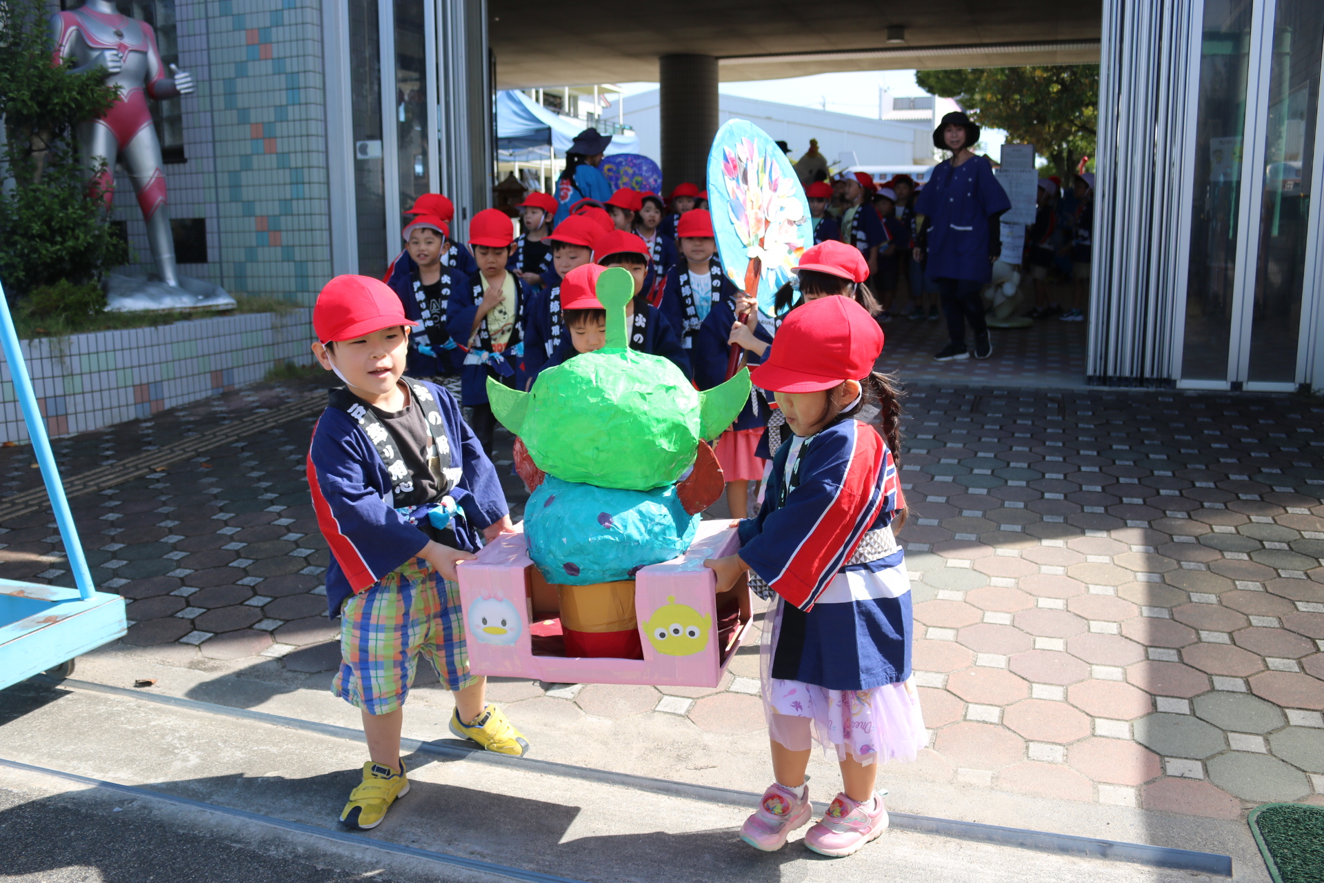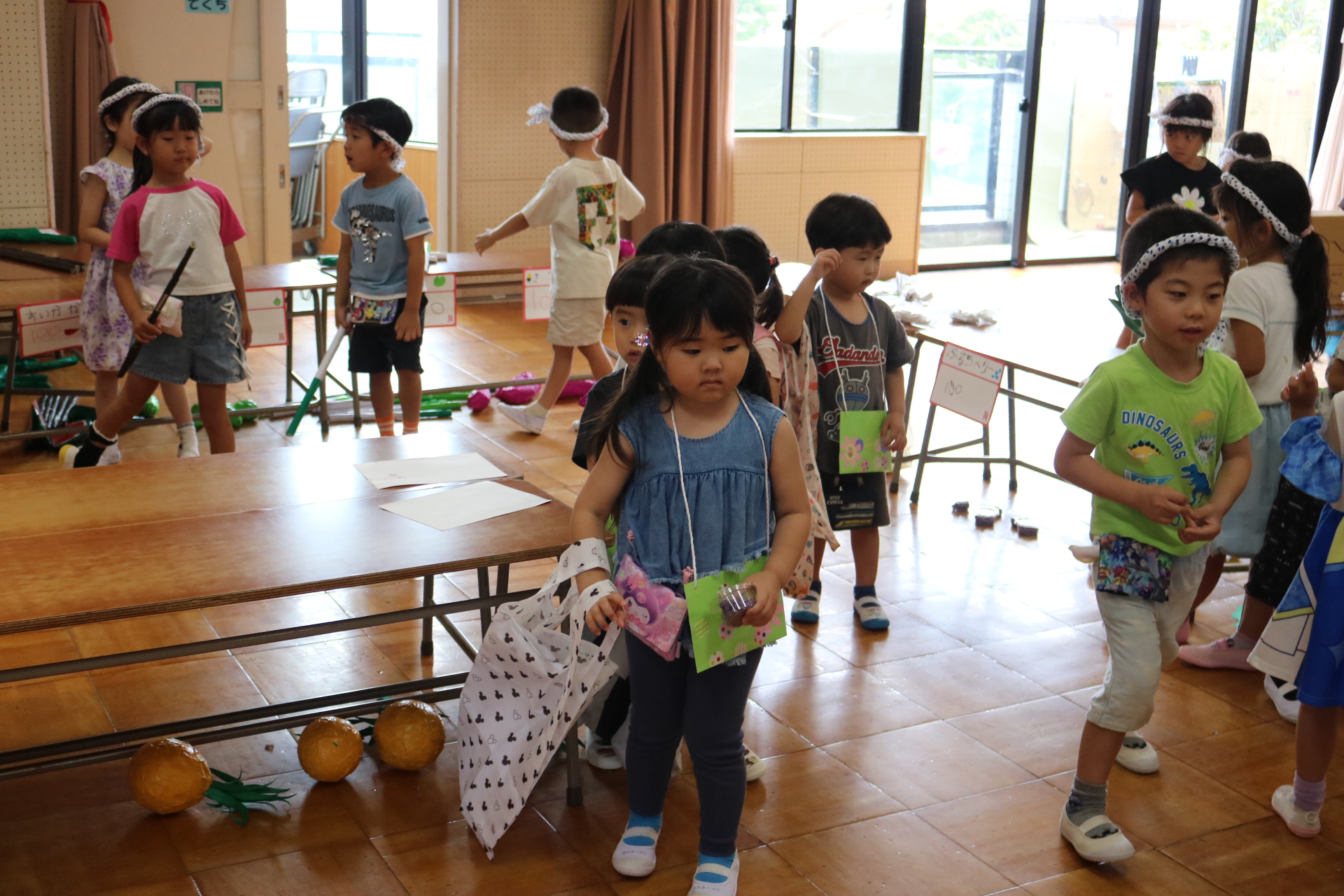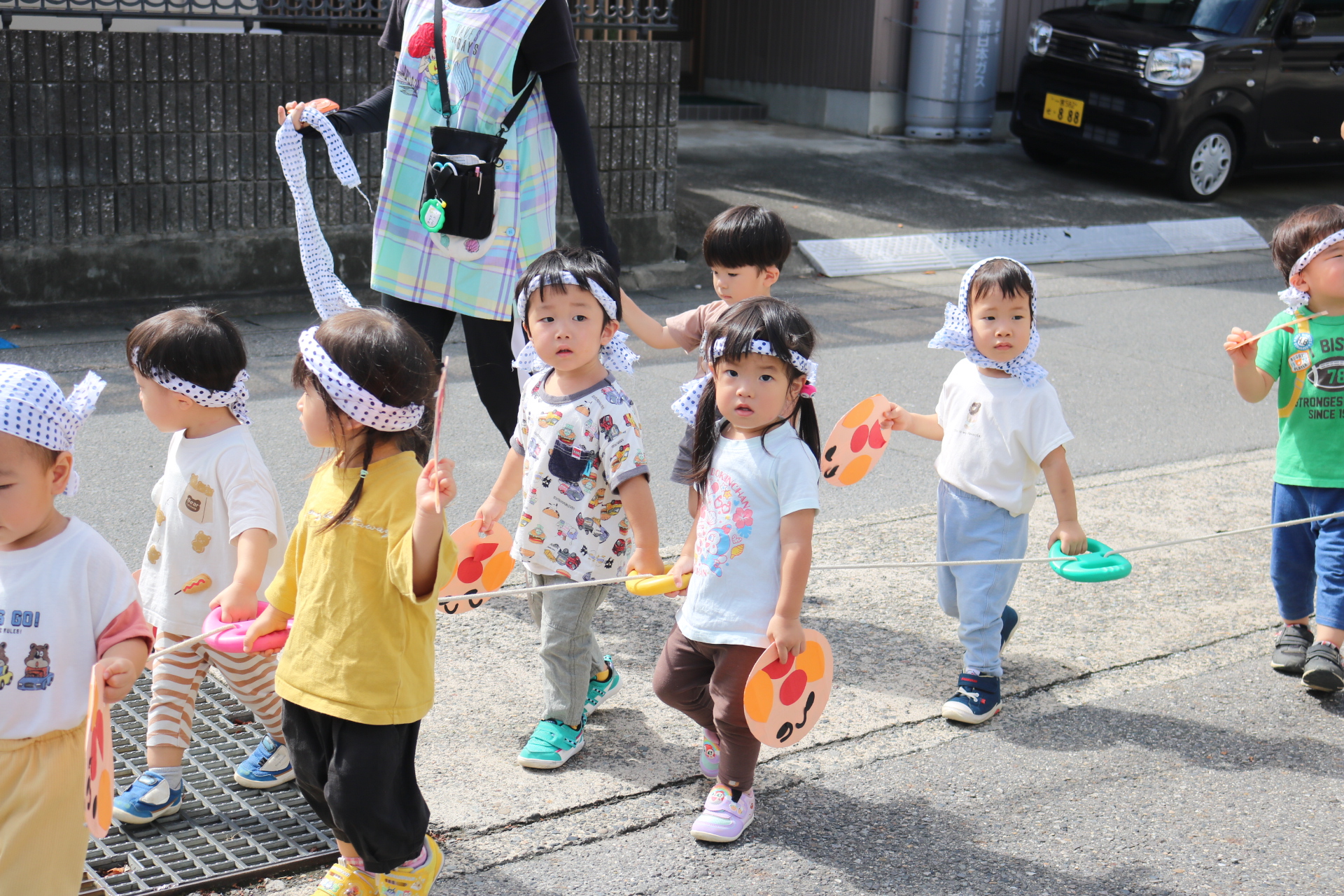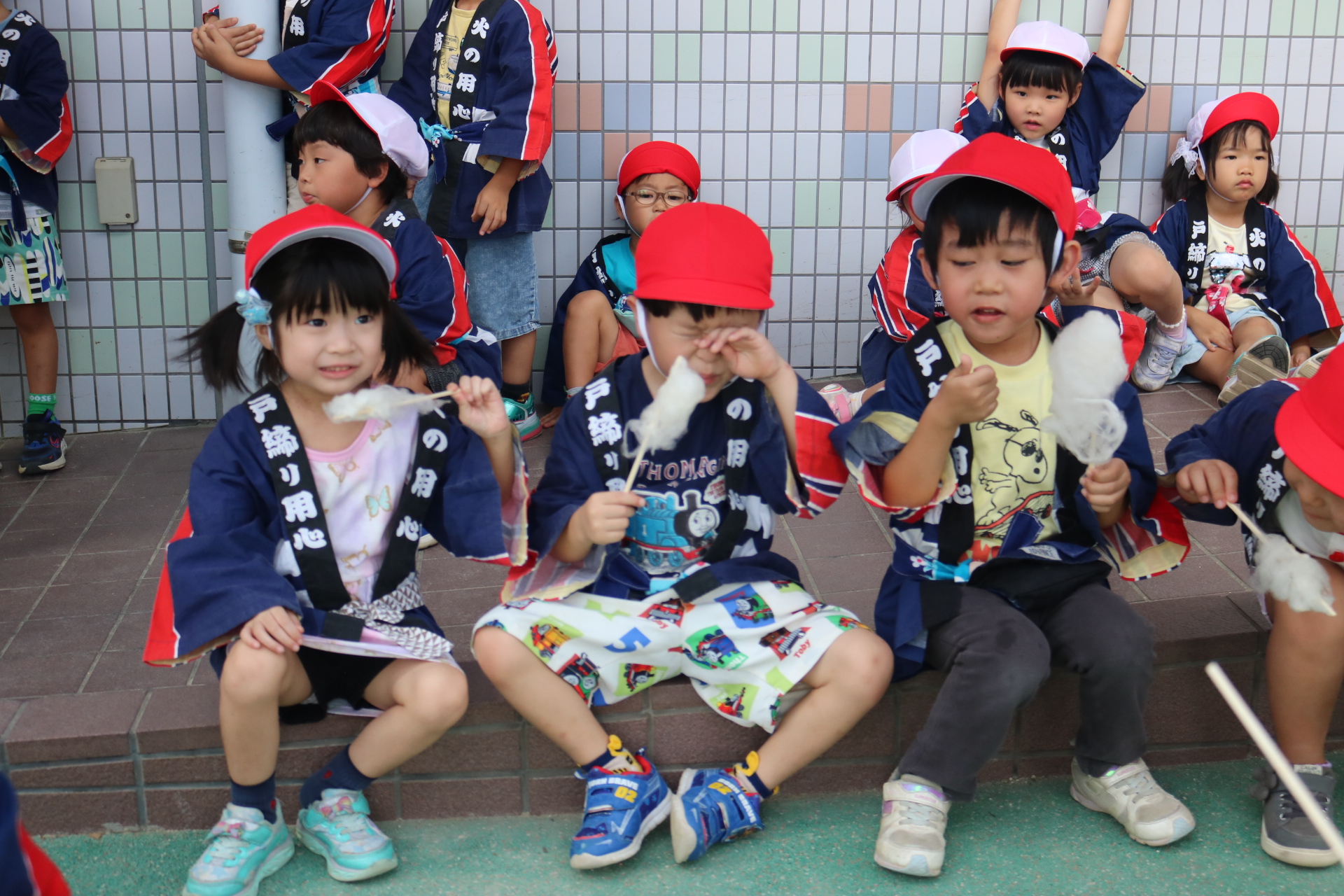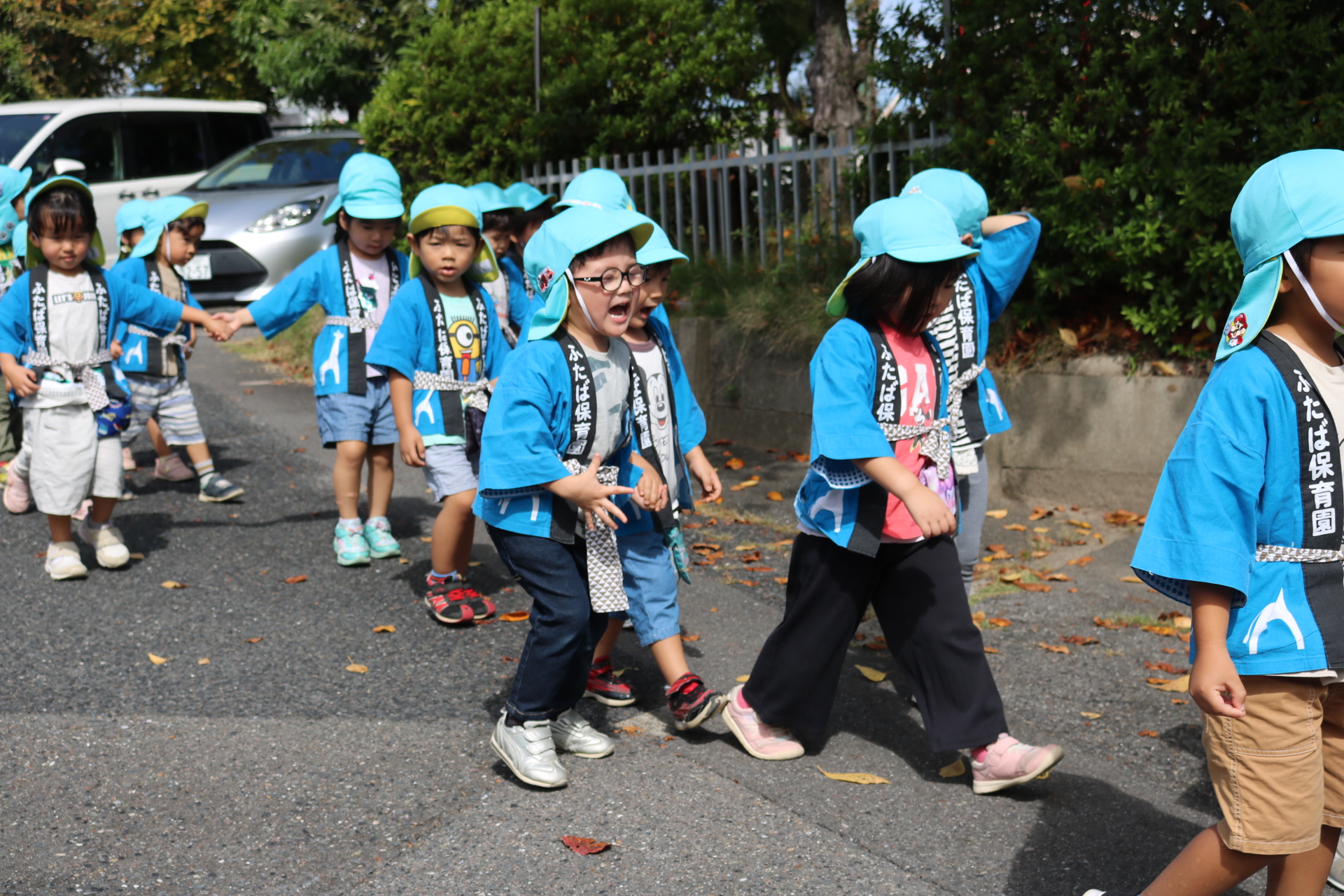 お祭りごっこを楽しんだ子どもたち。お神輿を担いで、近所を歩いてまわりましたよ😊