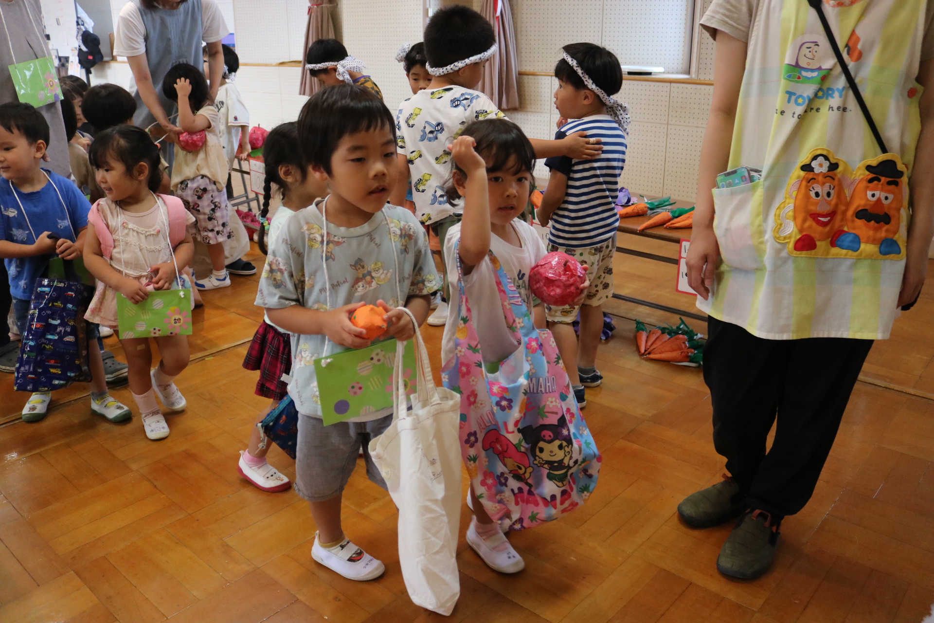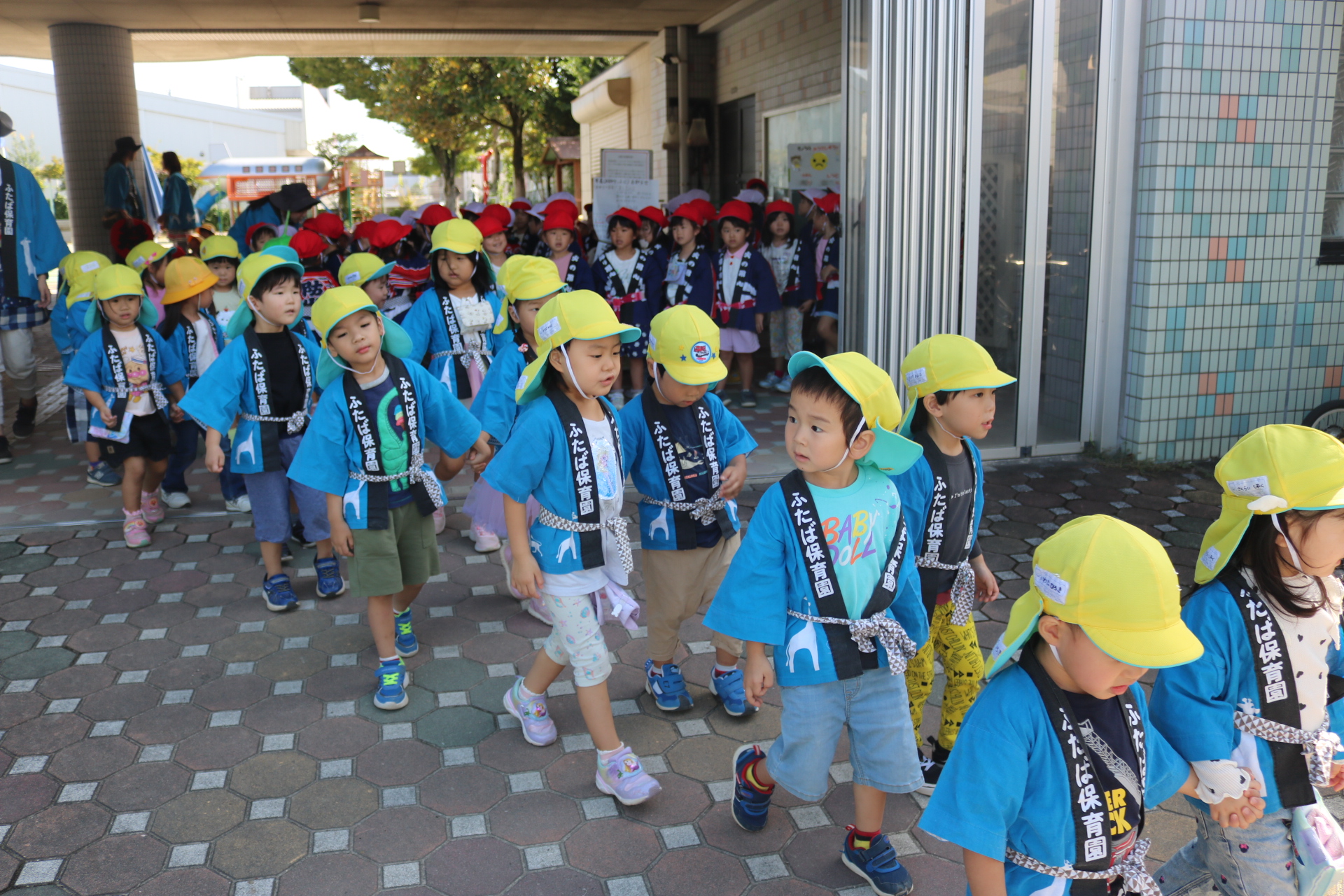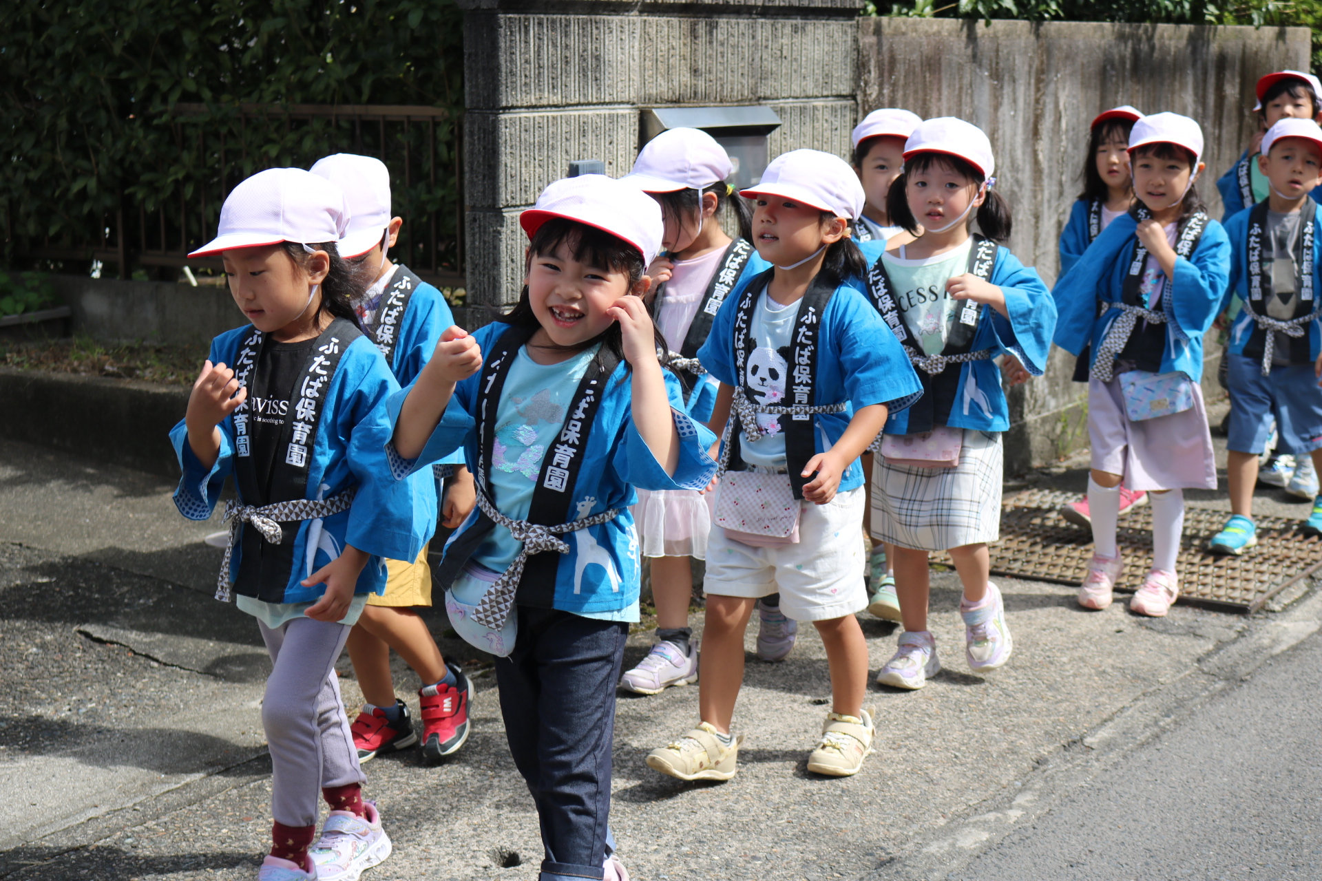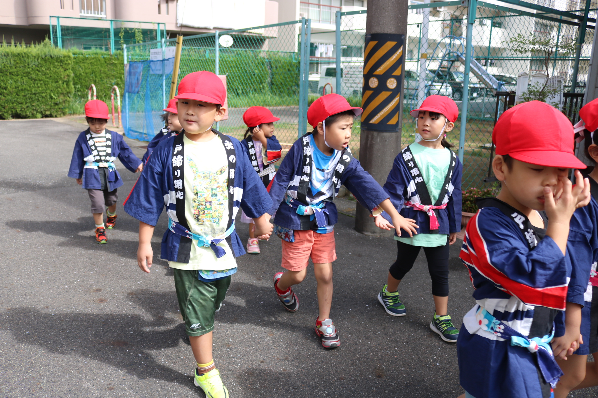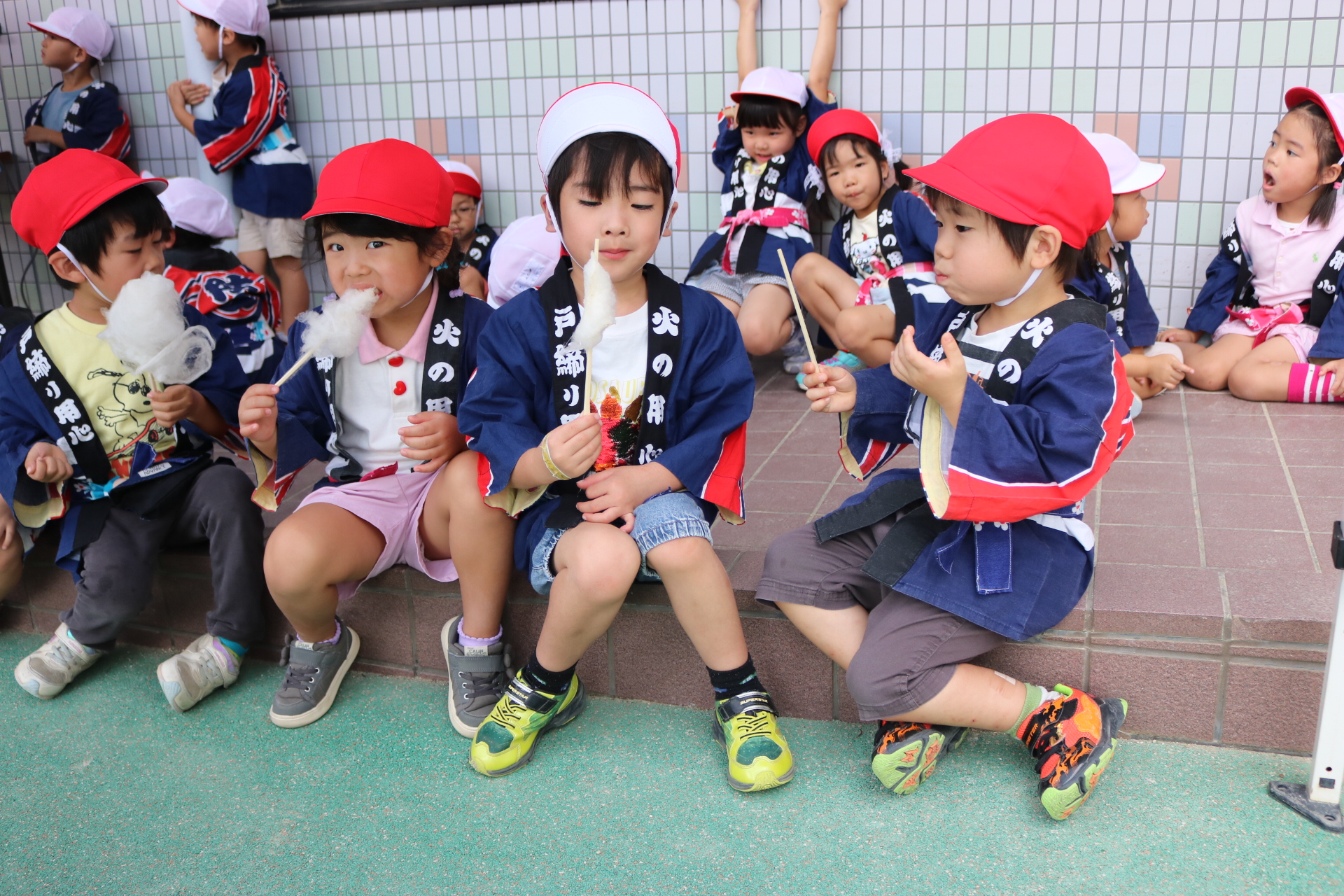 お祭りごっこを楽しんだ子どもたち。お神輿を担いで、近所を歩いてまわりましたよ😊