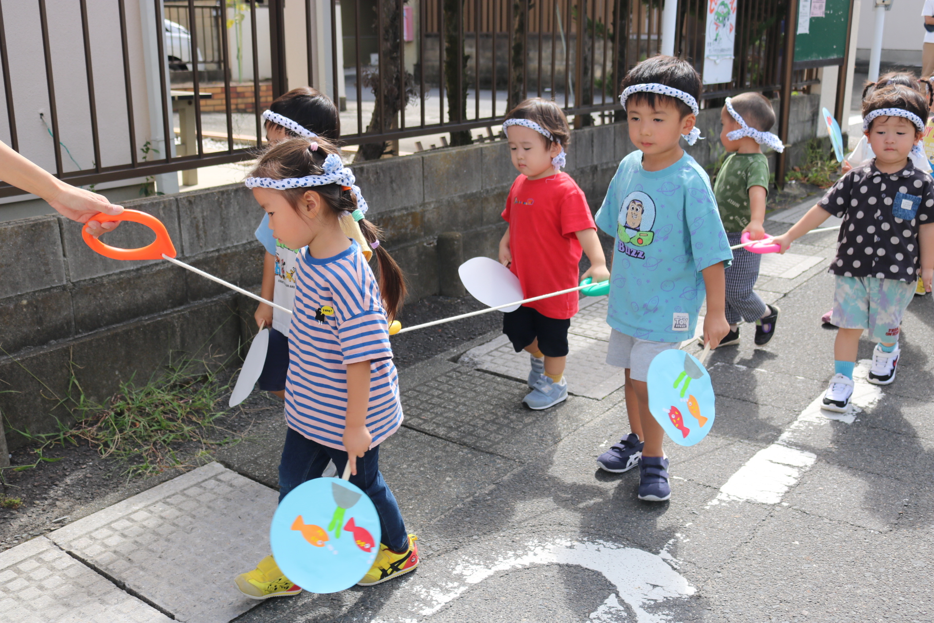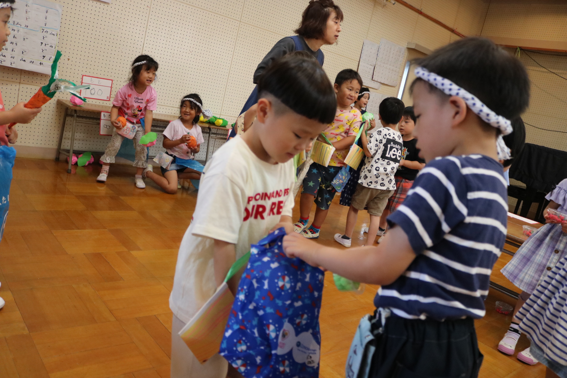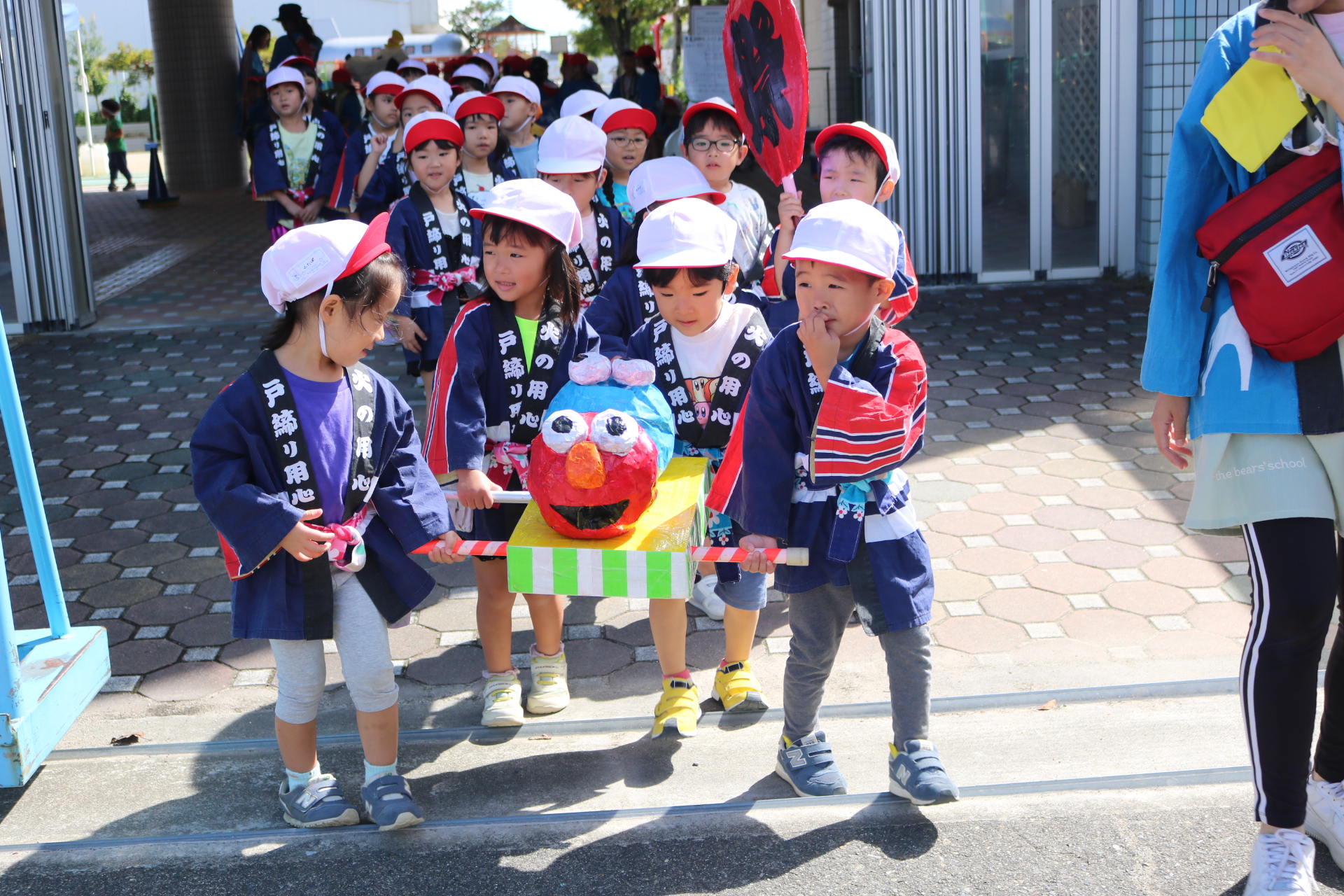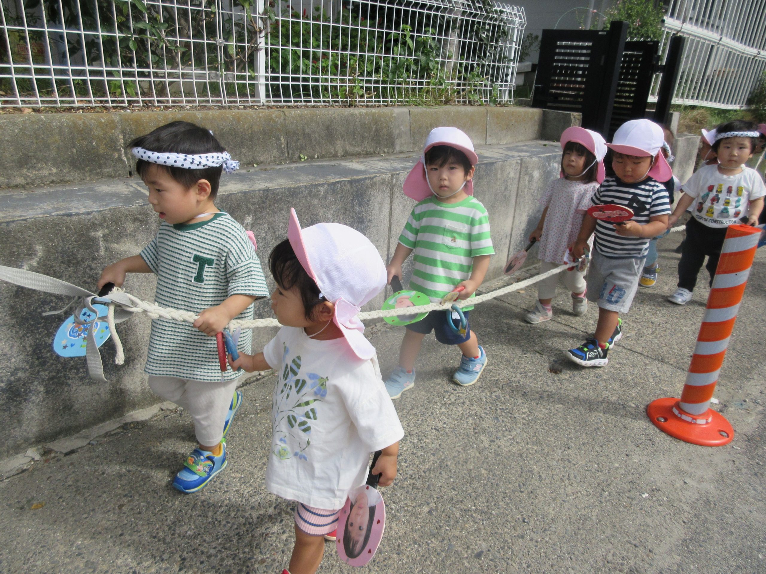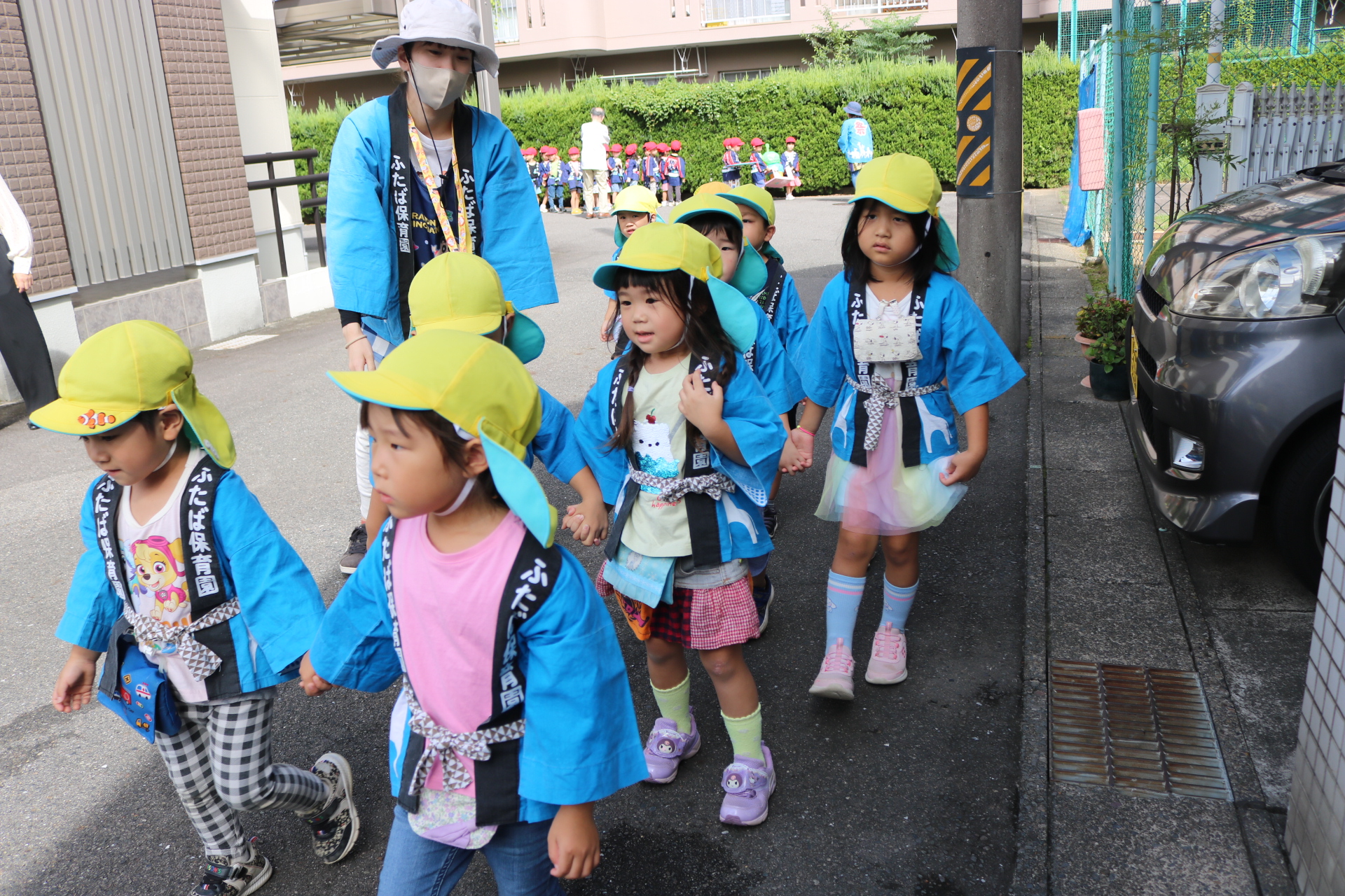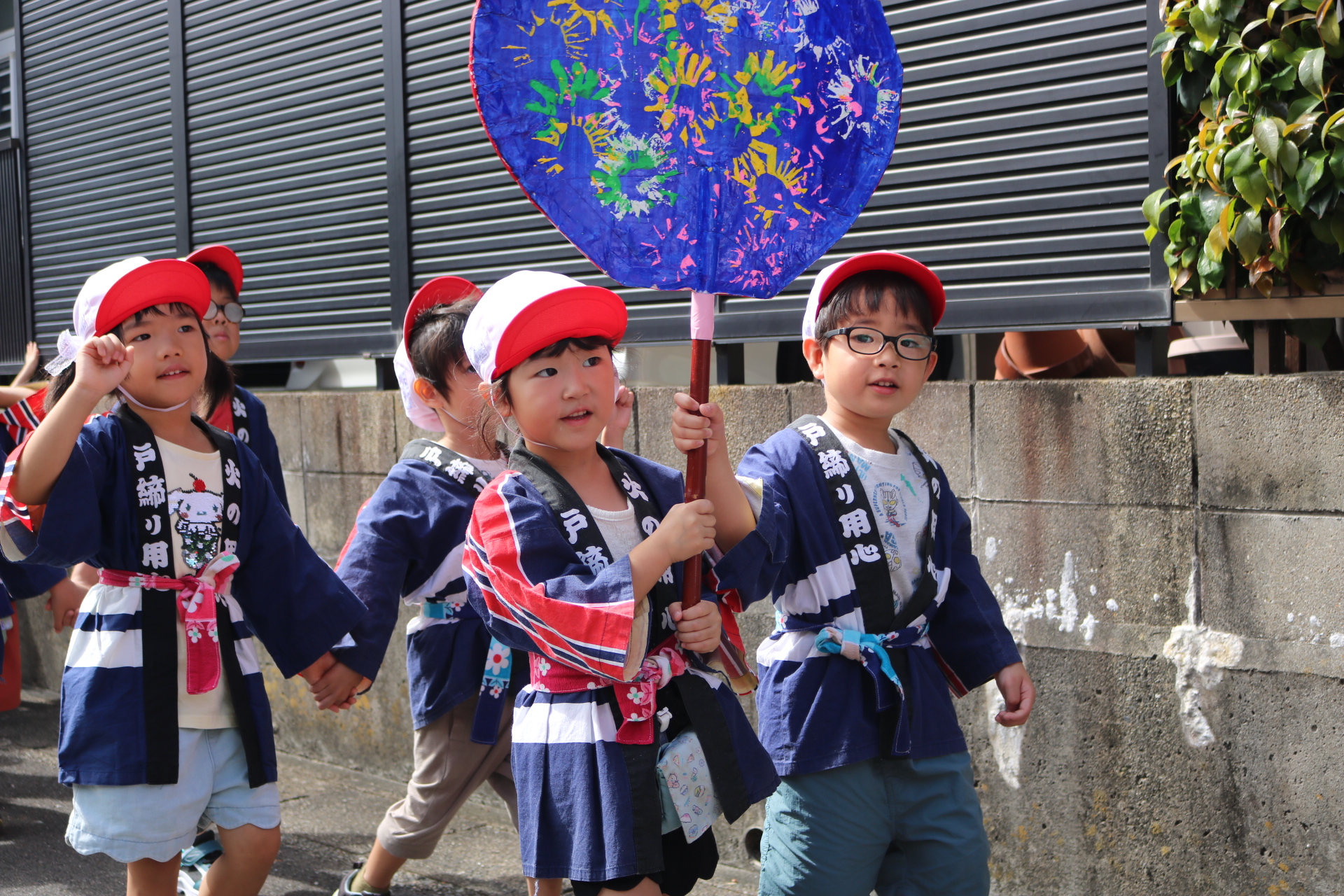 お祭りごっこを楽しんだ子どもたち。お神輿を担いで、近所を歩いてまわりましたよ😊