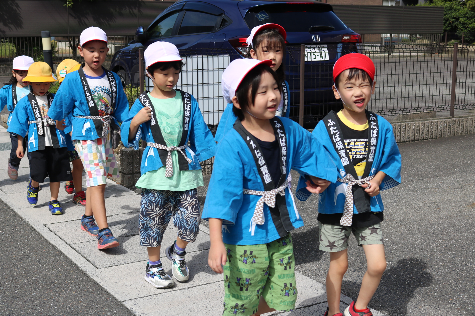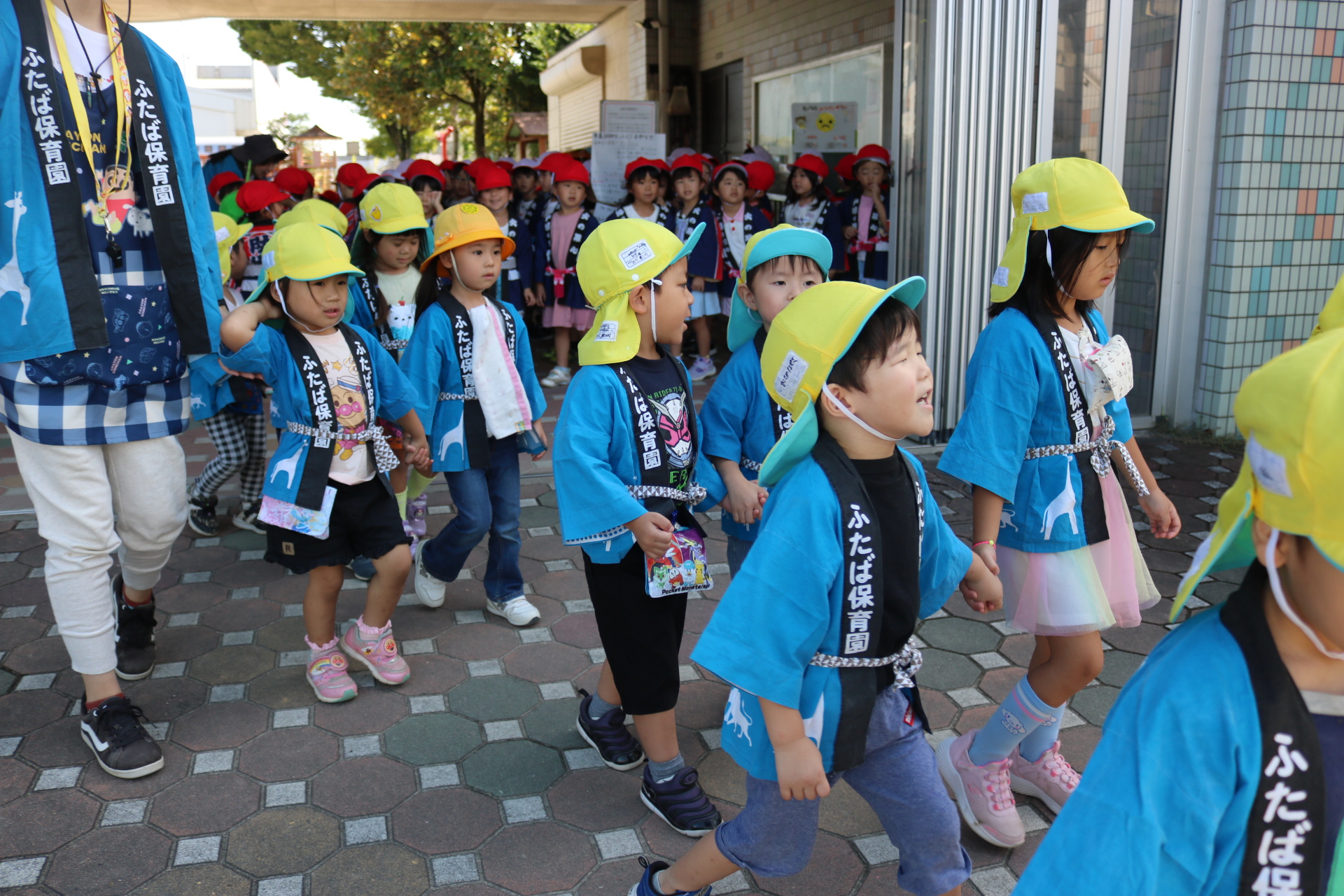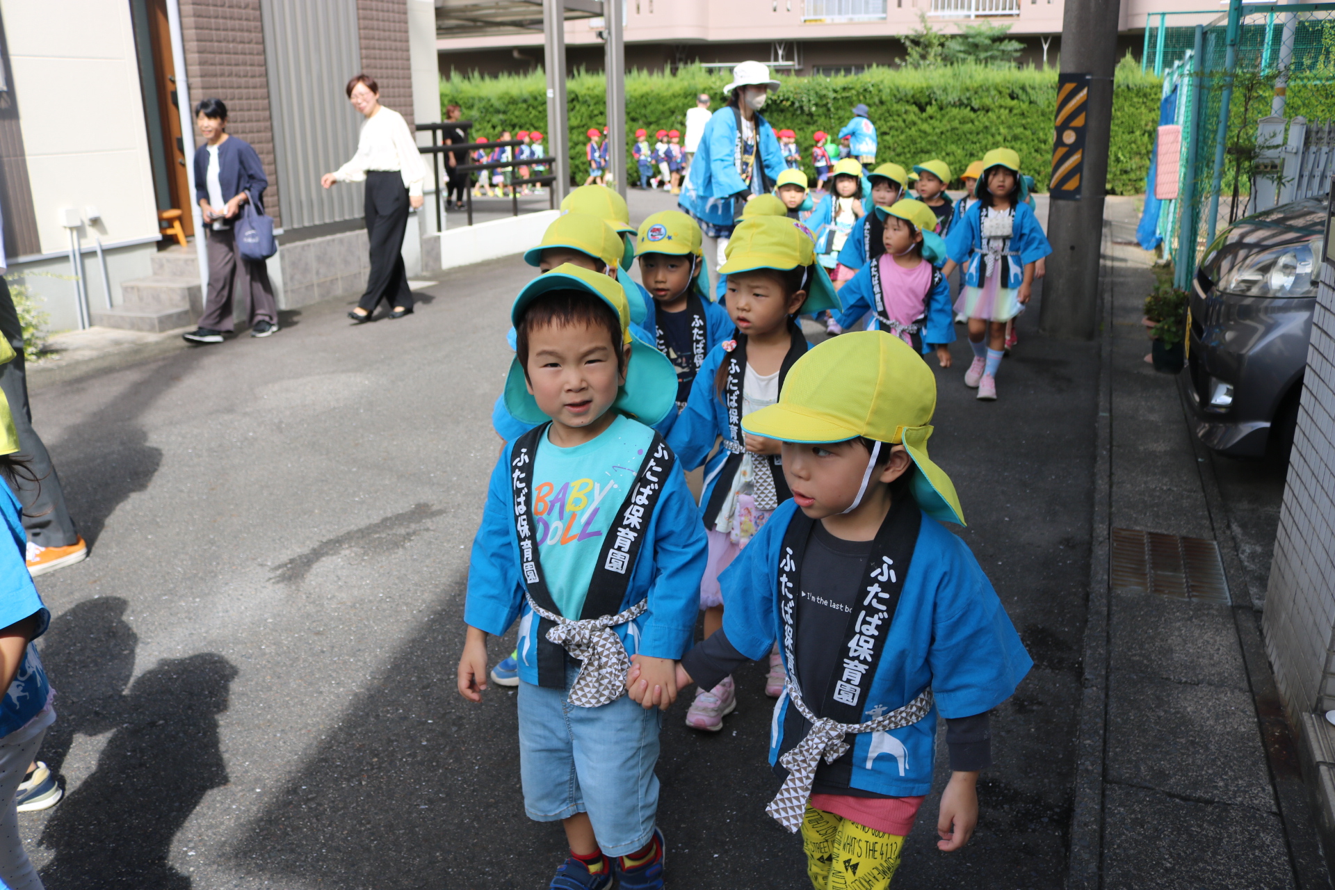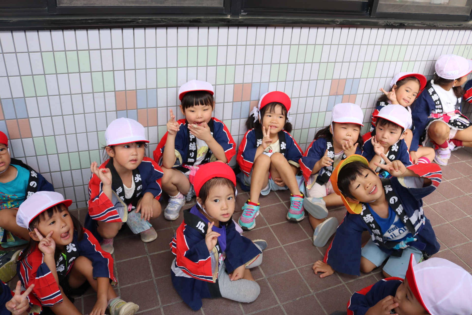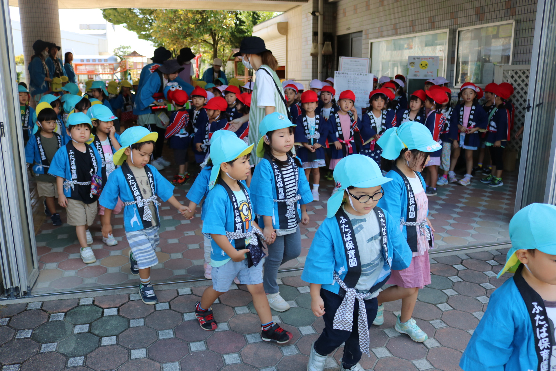 お祭りごっこを楽しんだ子どもたち。お神輿を担いで、近所を歩いてまわりましたよ😊
