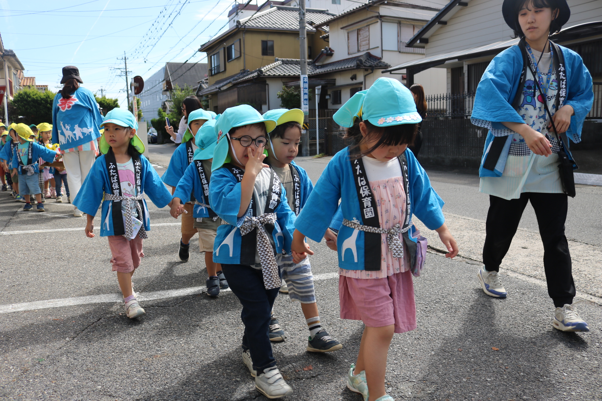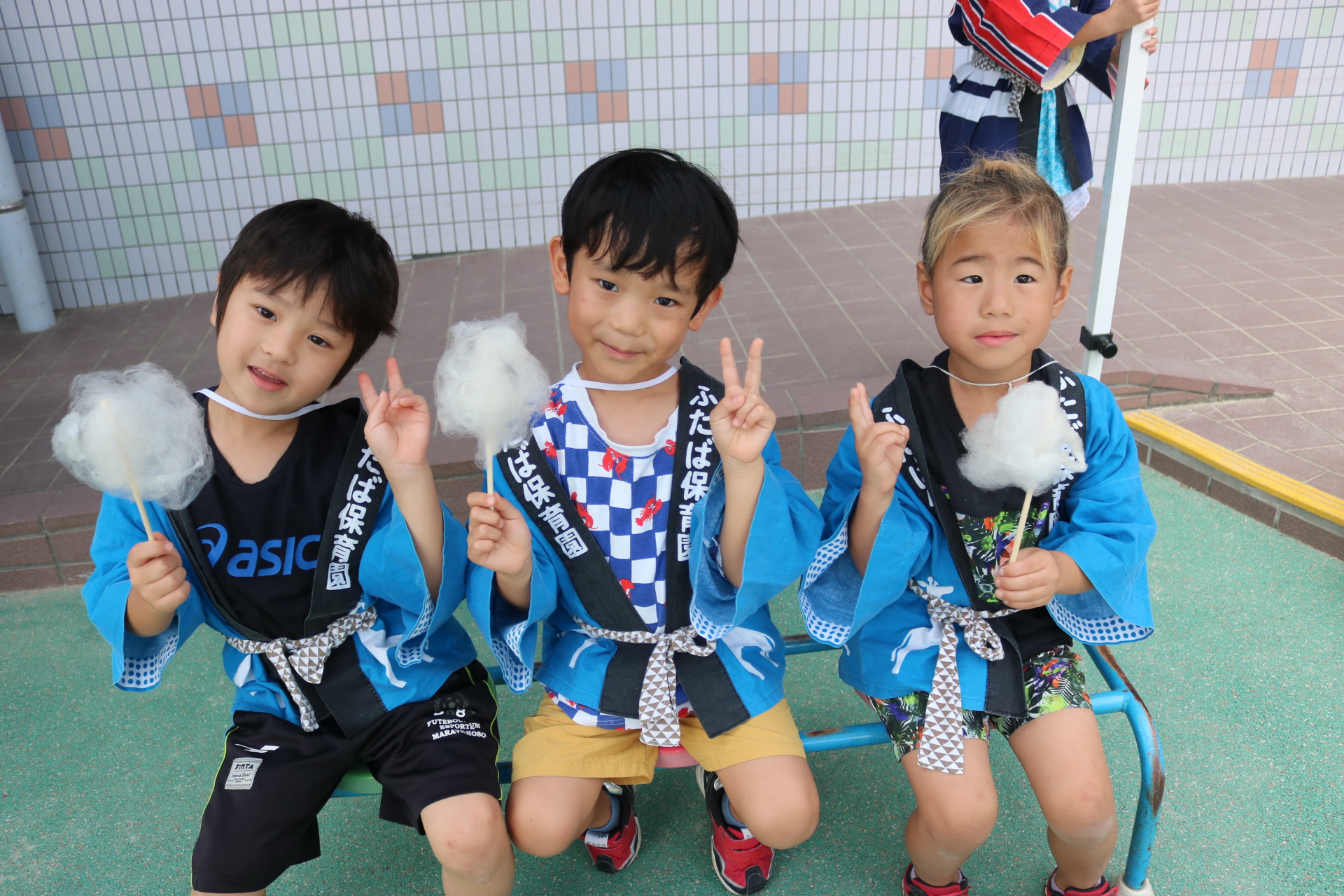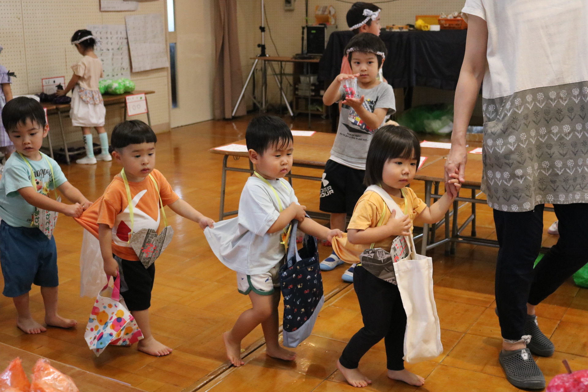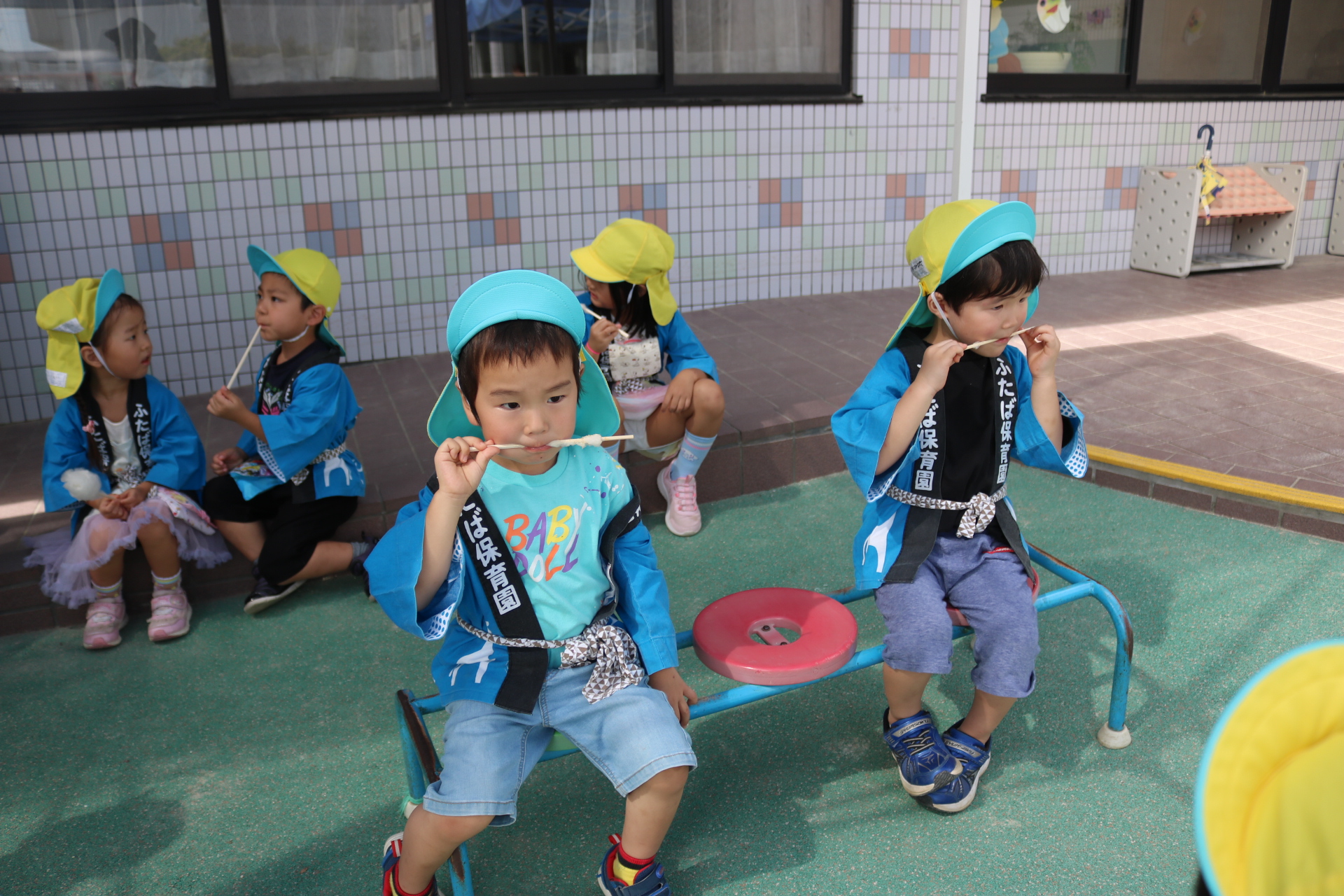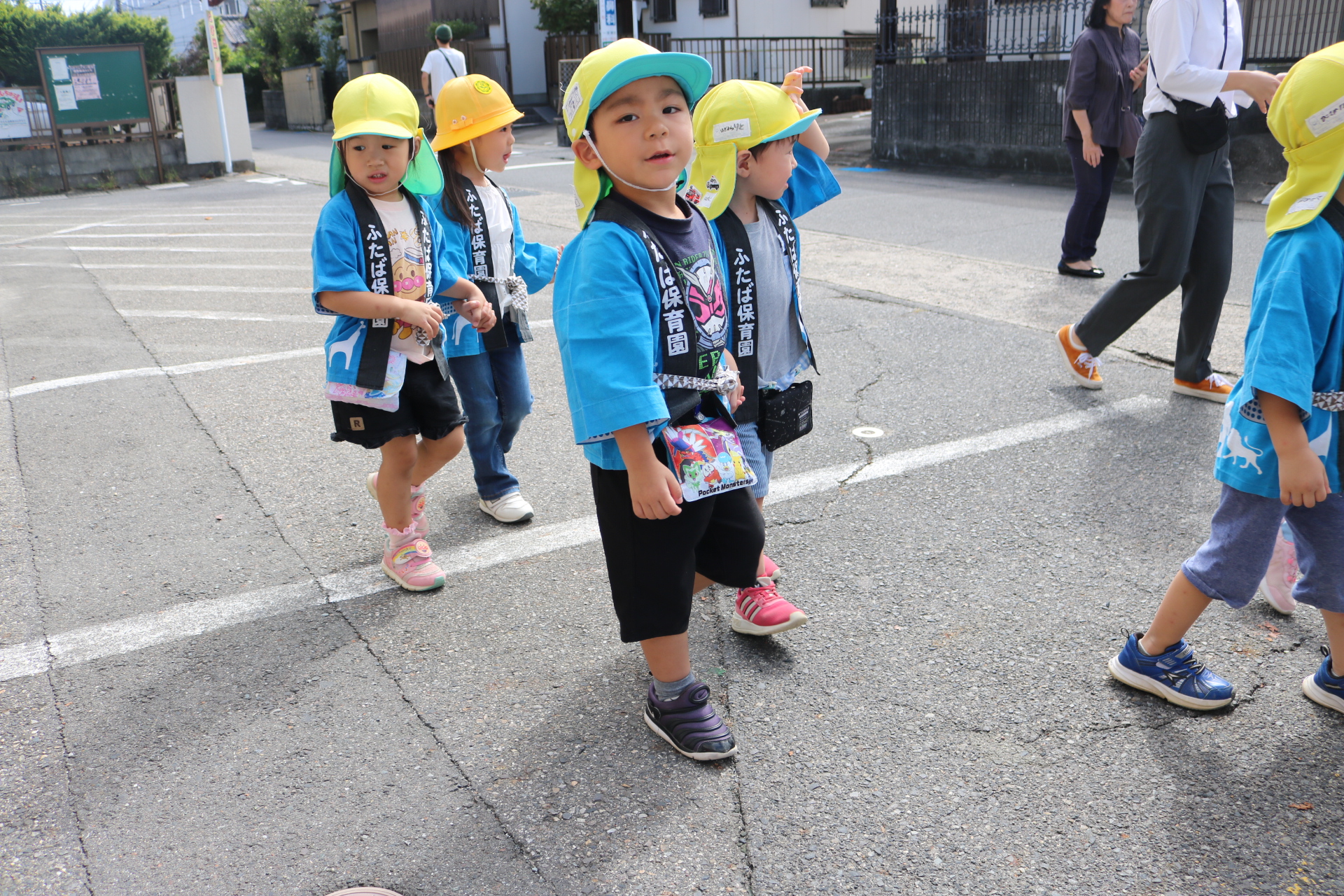お祭りごっこを楽しんだ子どもたち。お神輿を担いで、近所を歩いてまわりましたよ😊