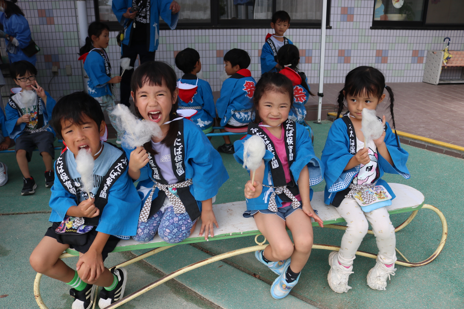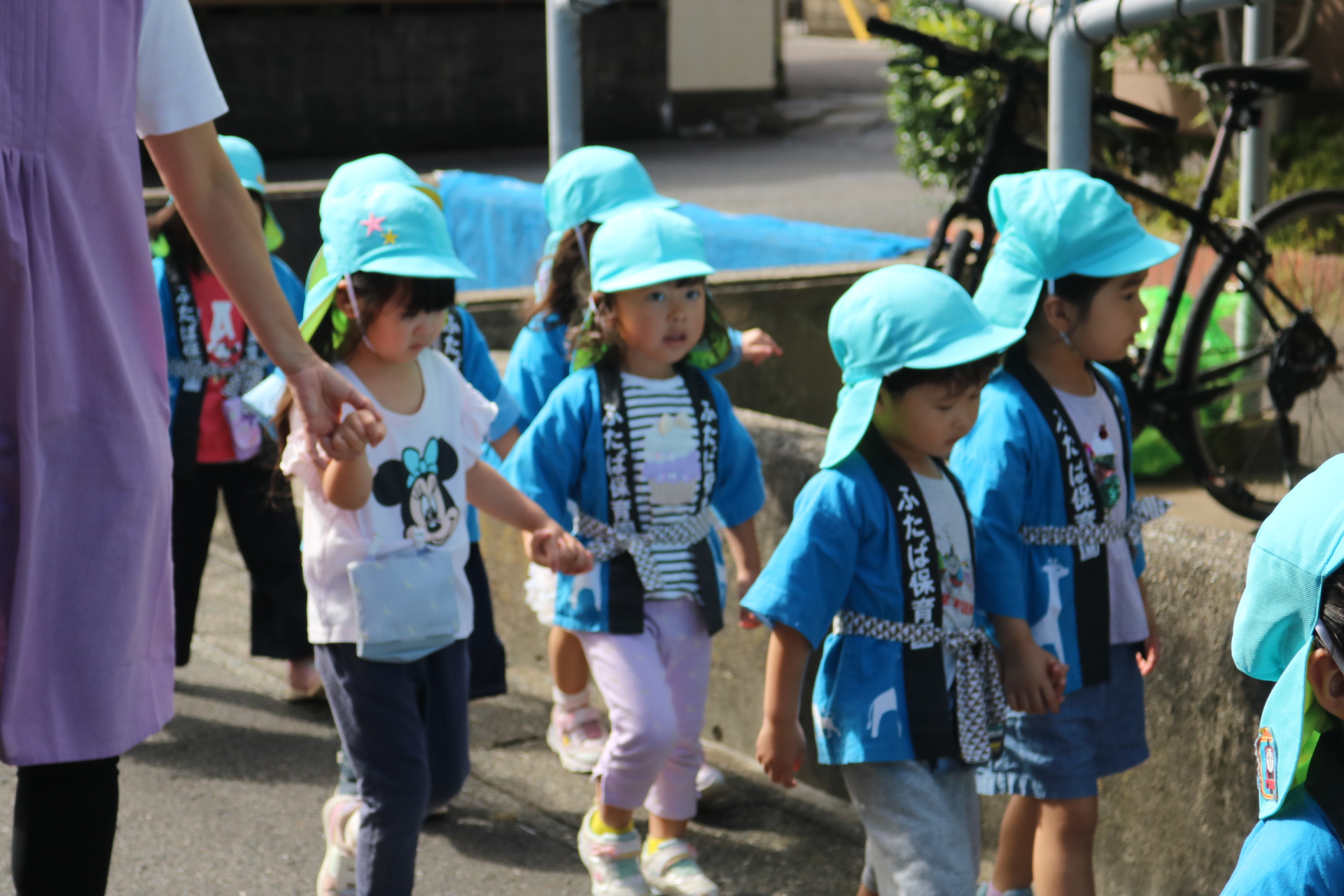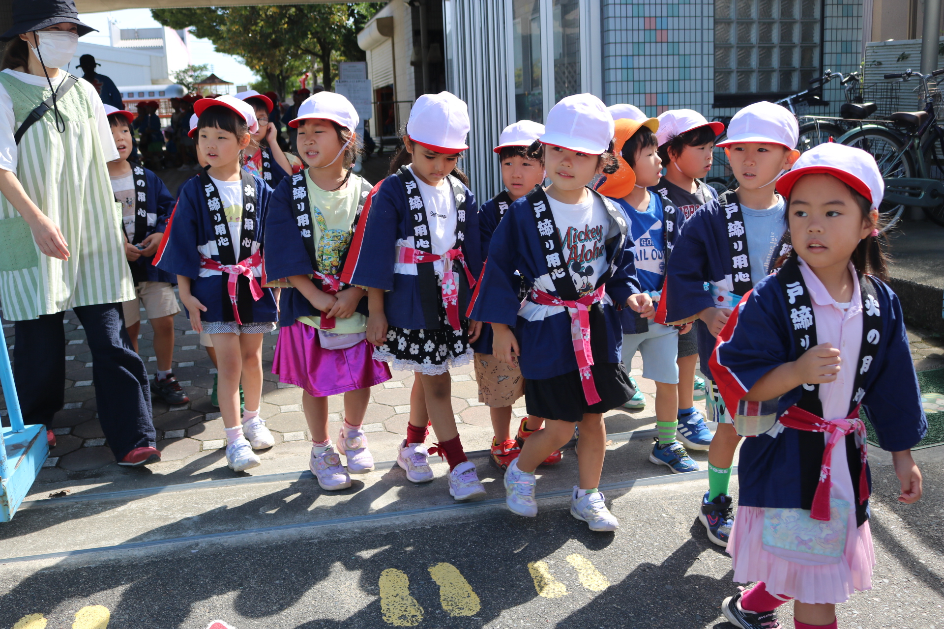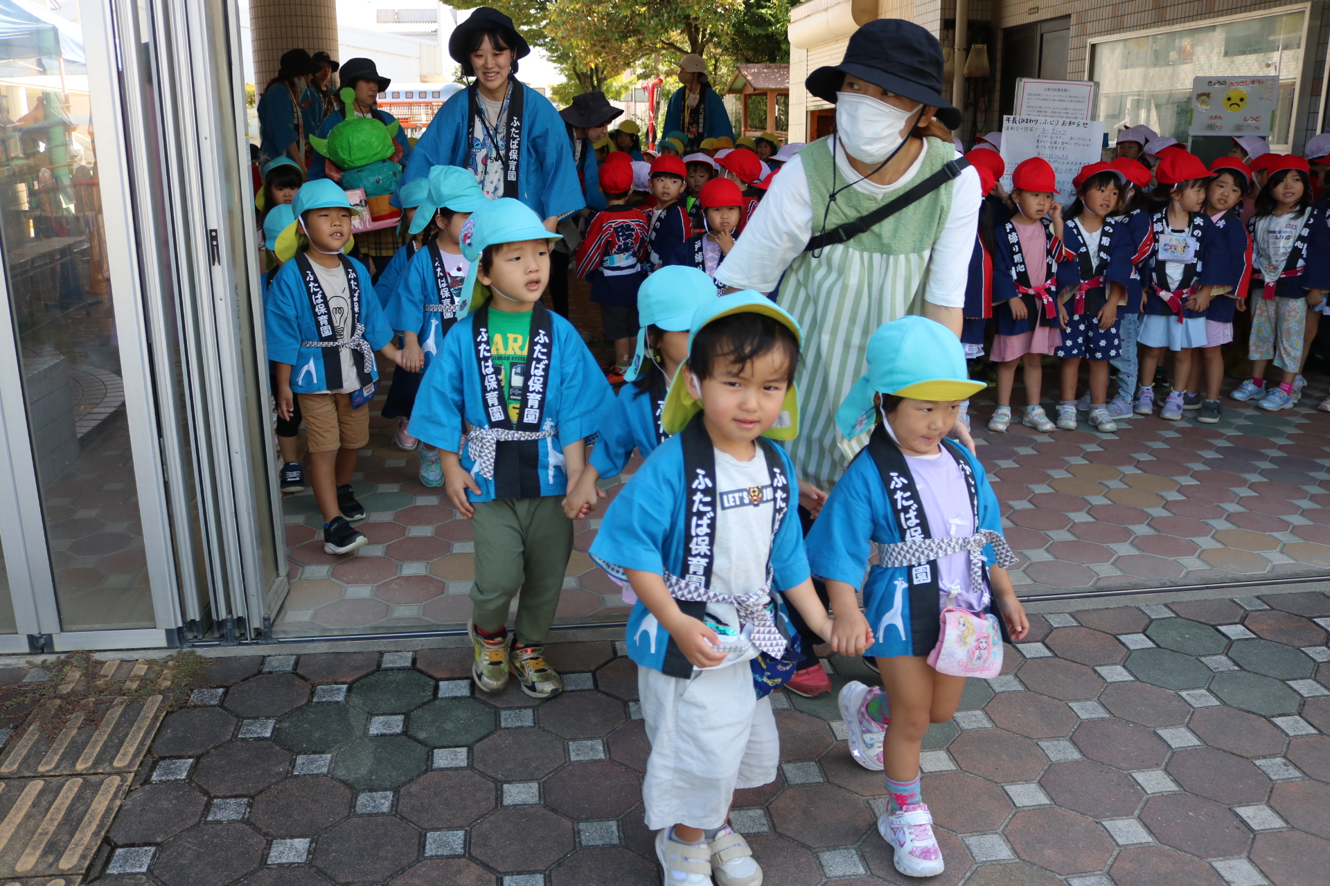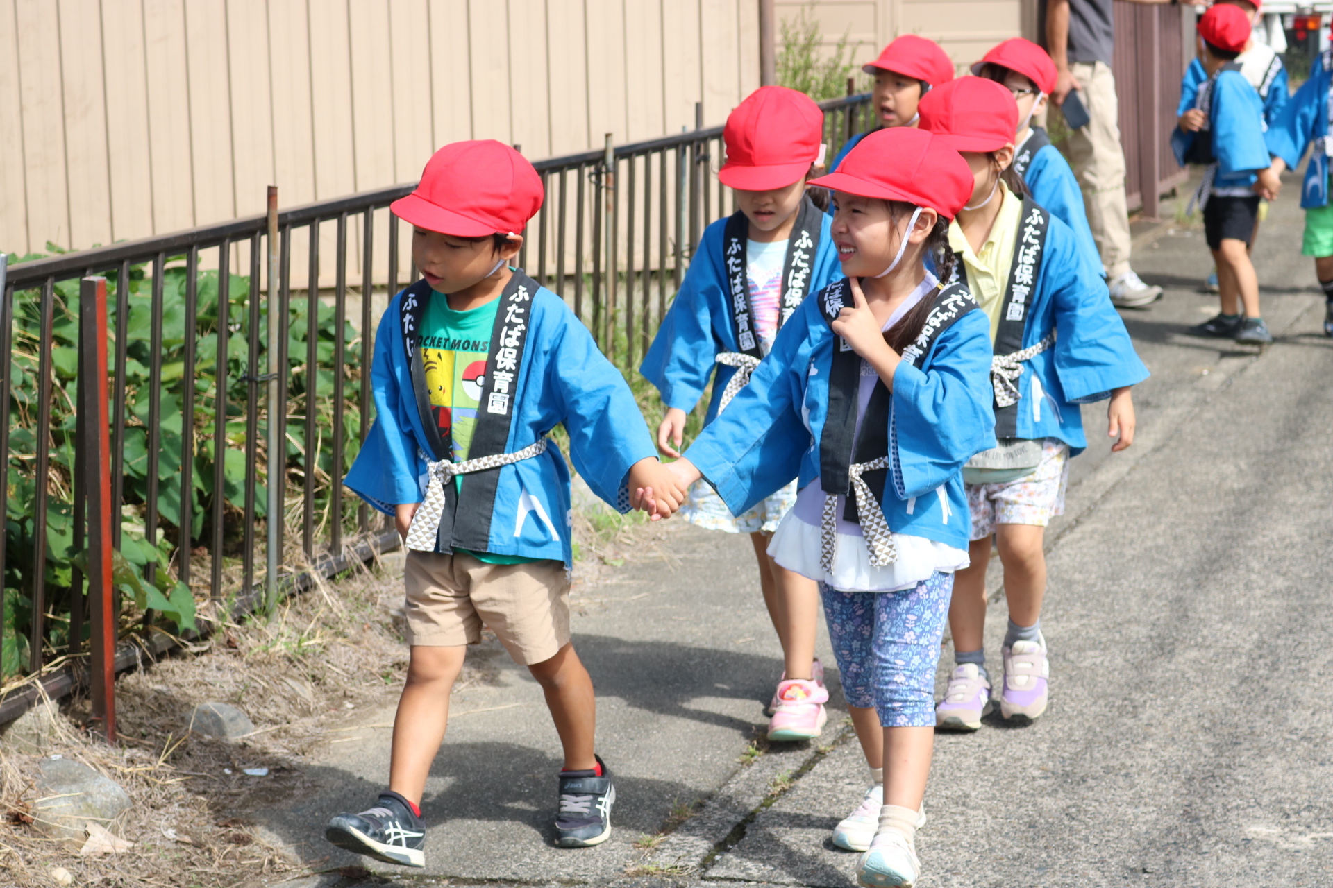 お祭りごっこを楽しんだ子どもたち。お神輿を担いで、近所を歩いてまわりましたよ😊