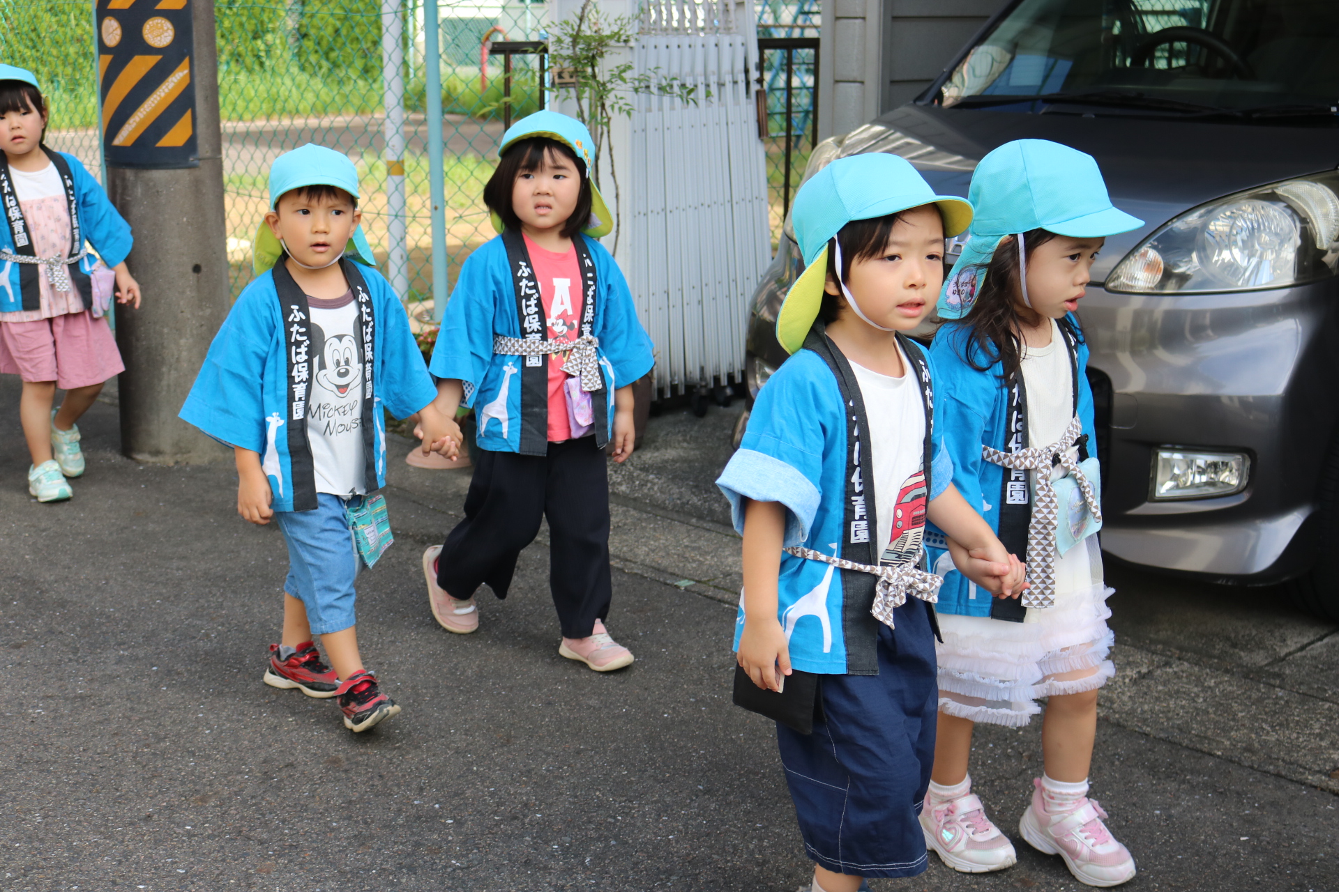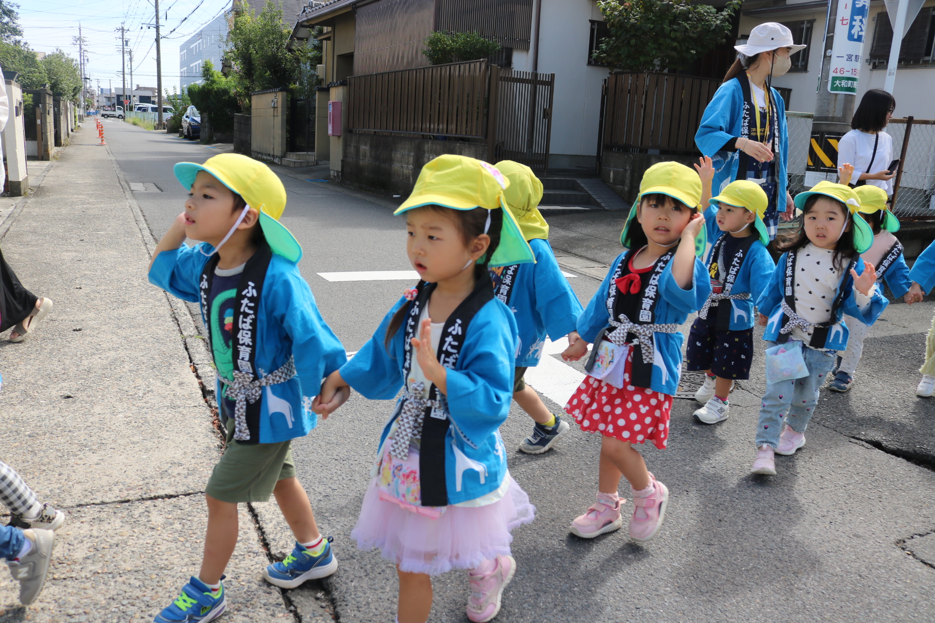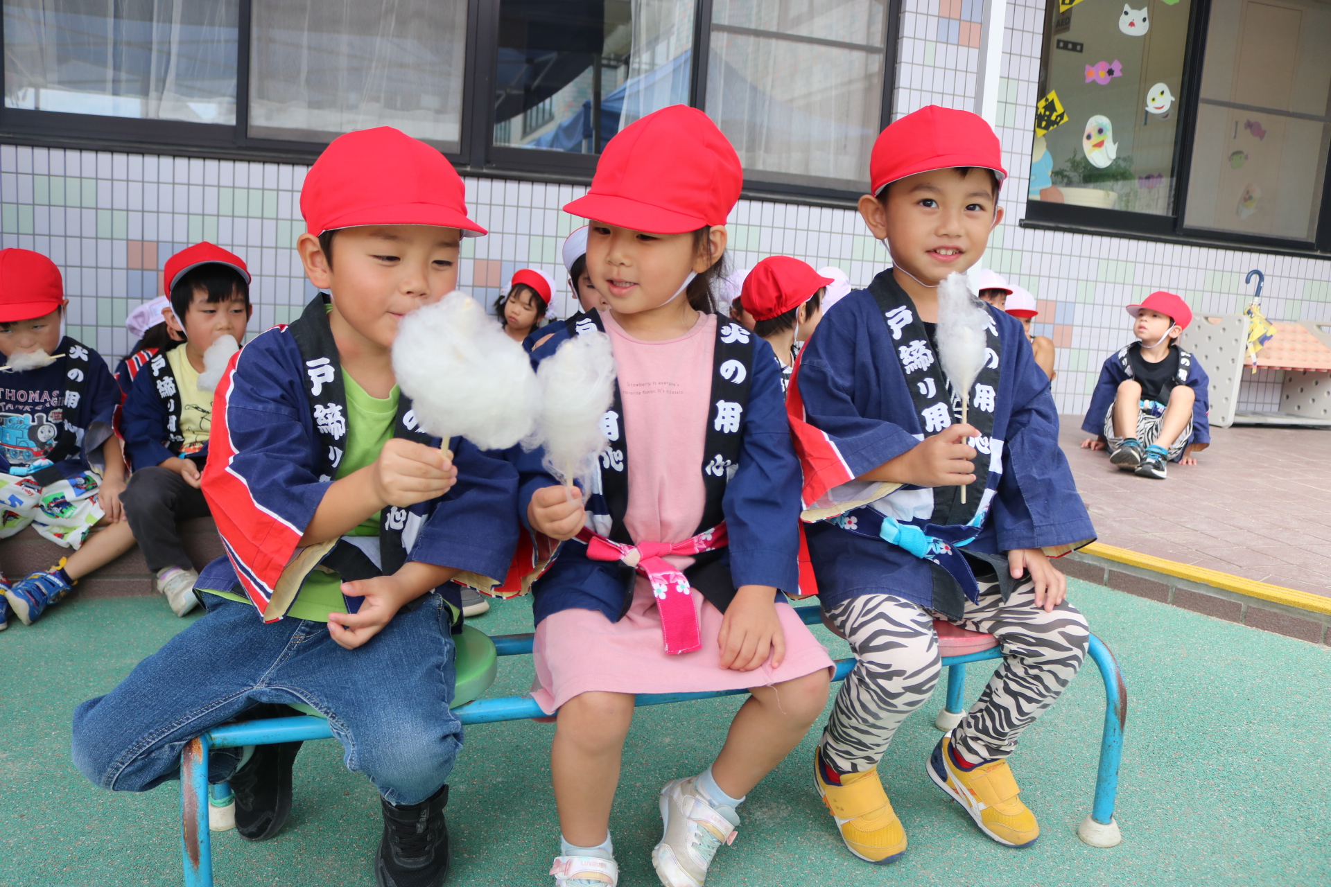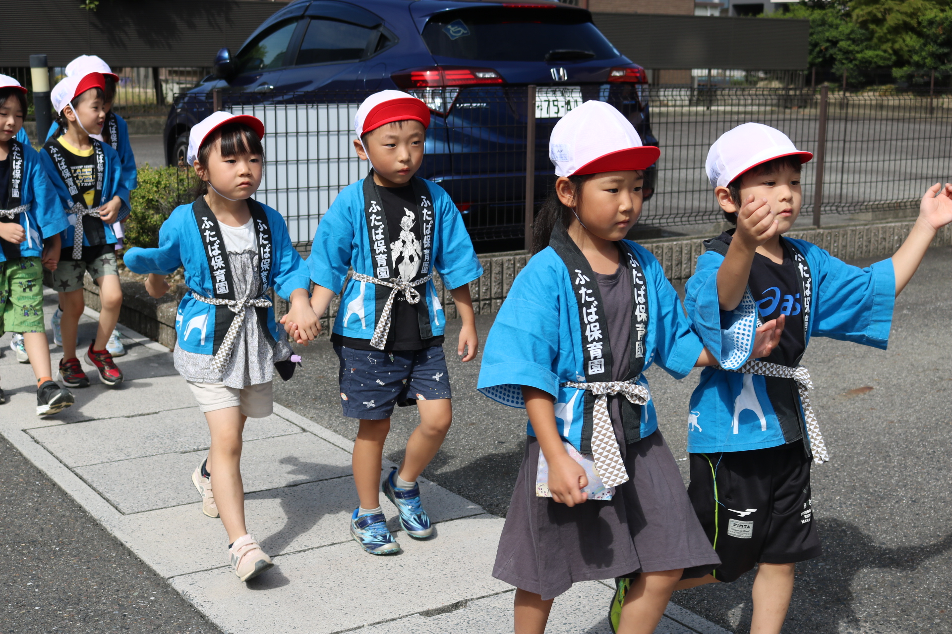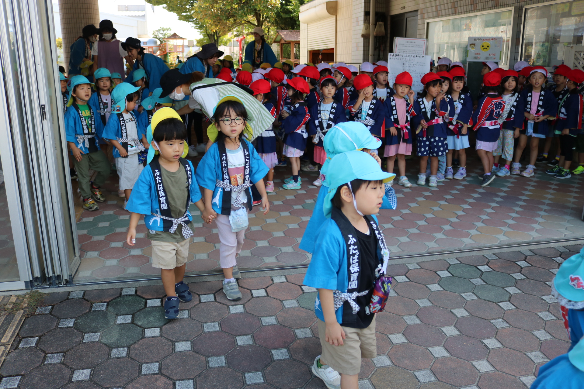 お祭りごっこを楽しんだ子どもたち。お神輿を担いで、近所を歩いてまわりましたよ😊