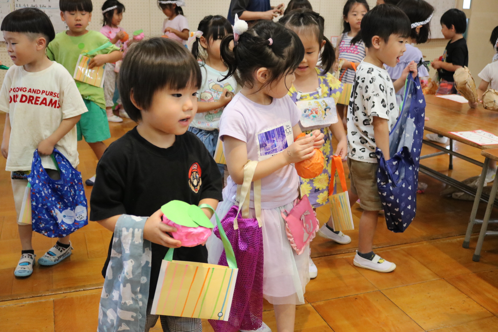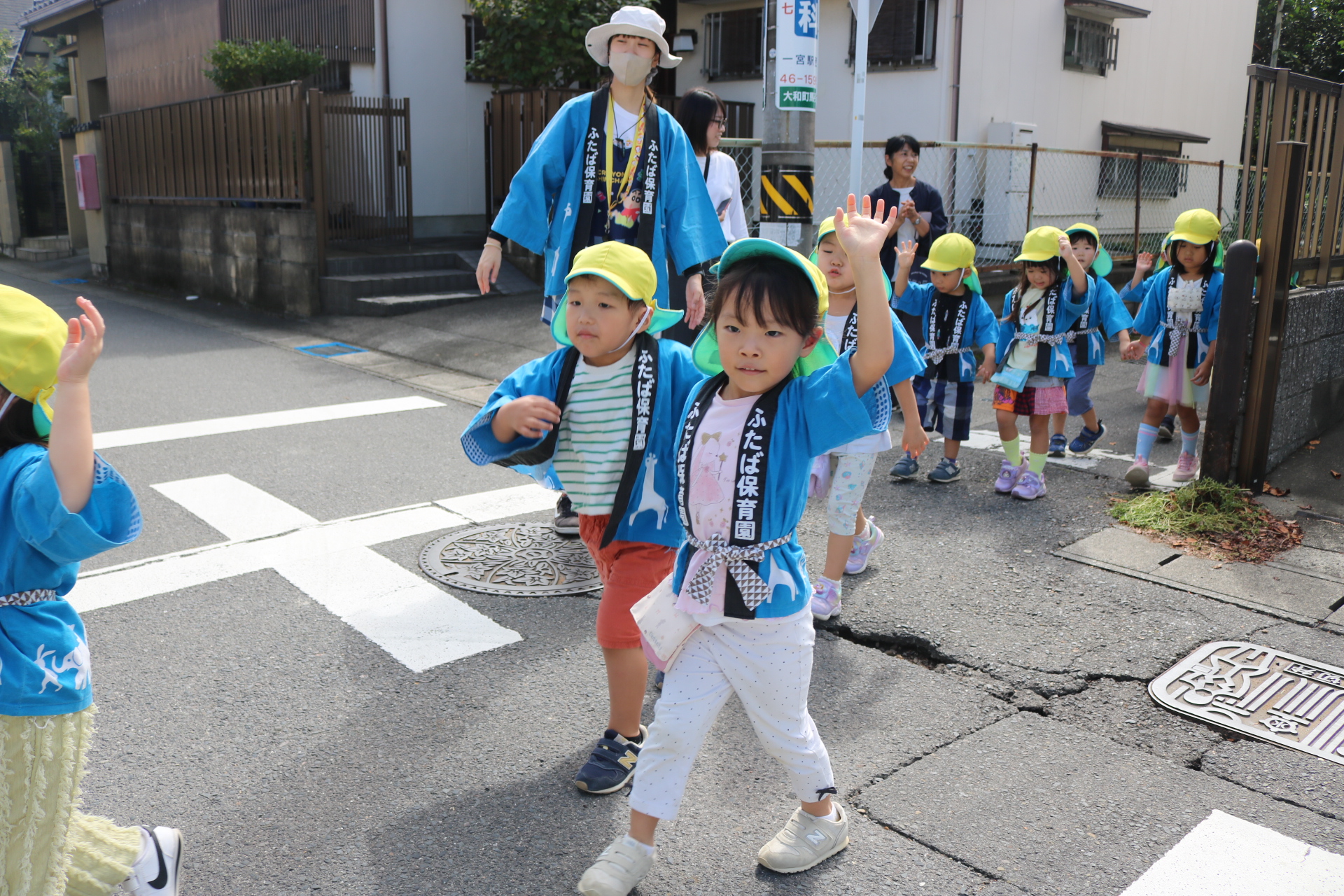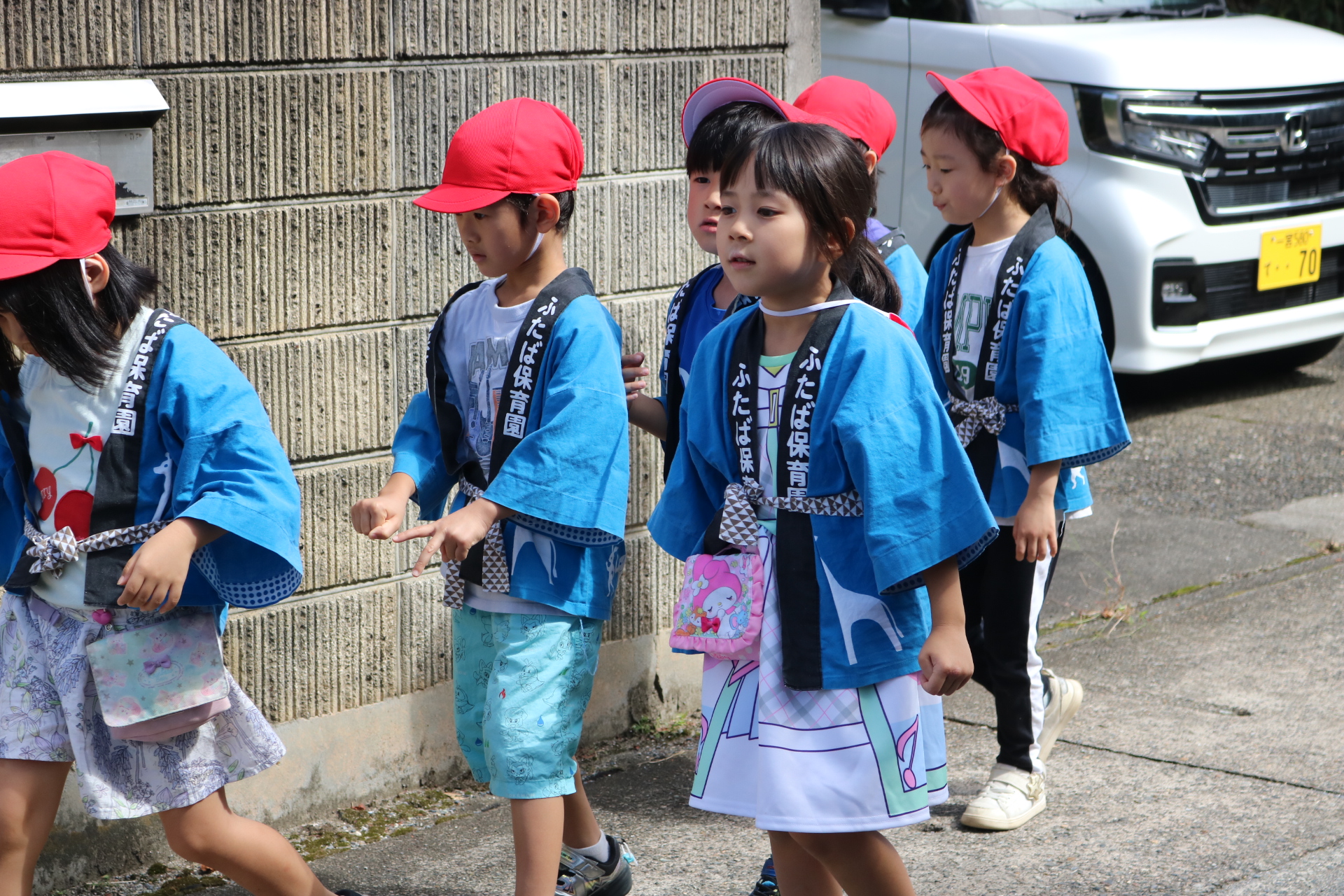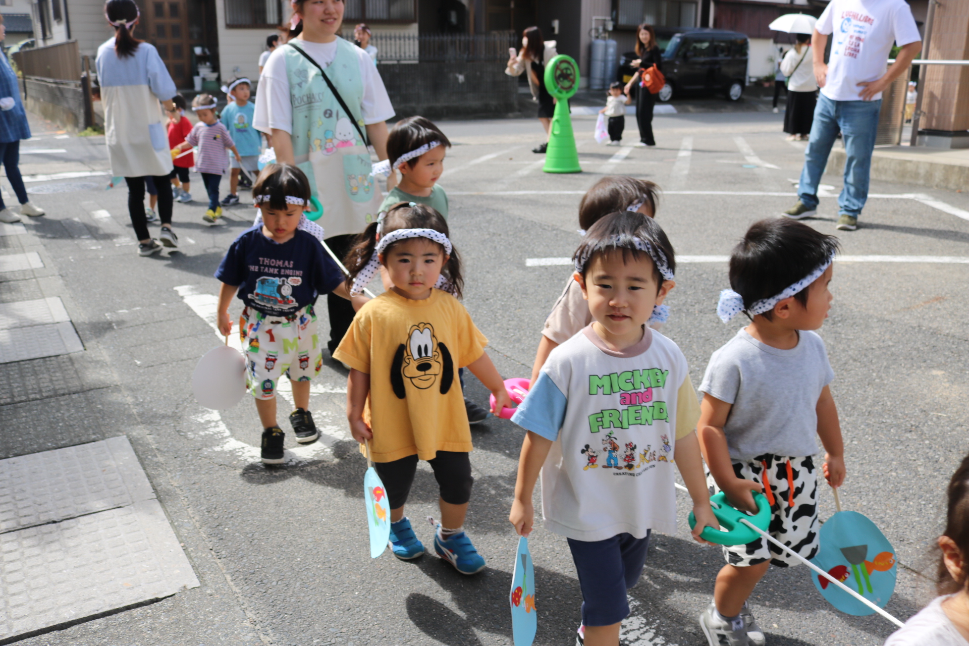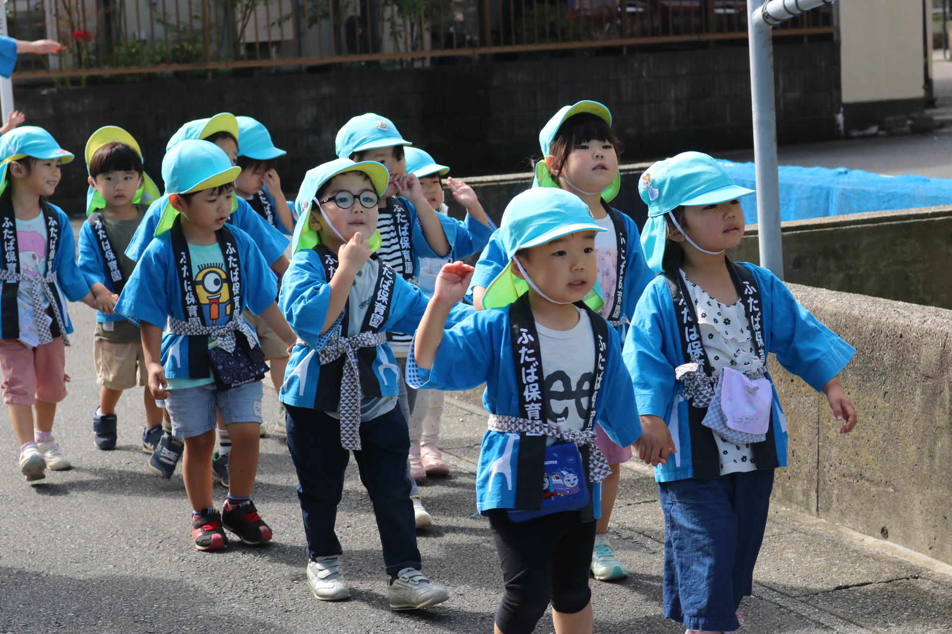 お祭りごっこを楽しんだ子どもたち。お神輿を担いで、近所を歩いてまわりましたよ😊
