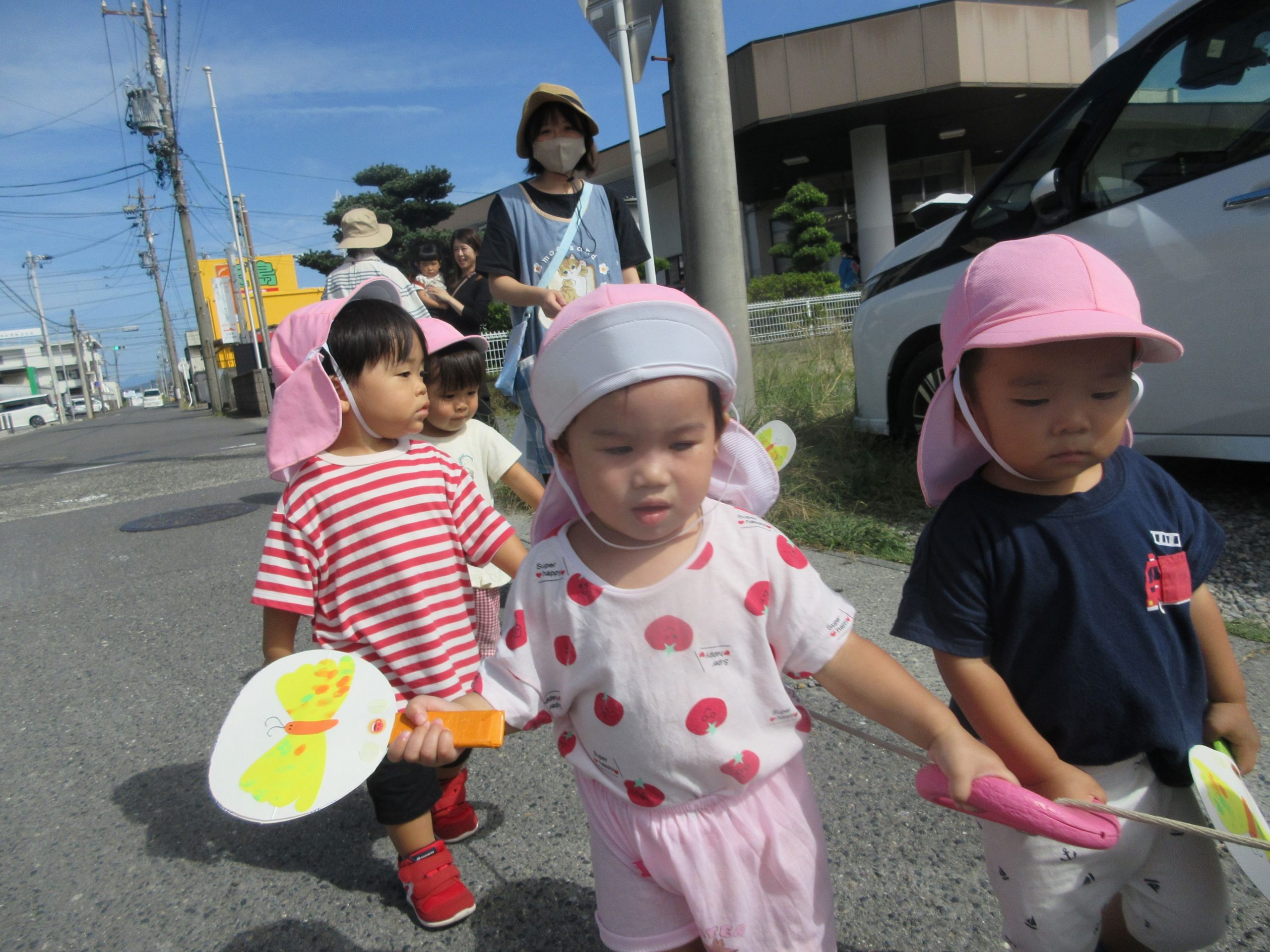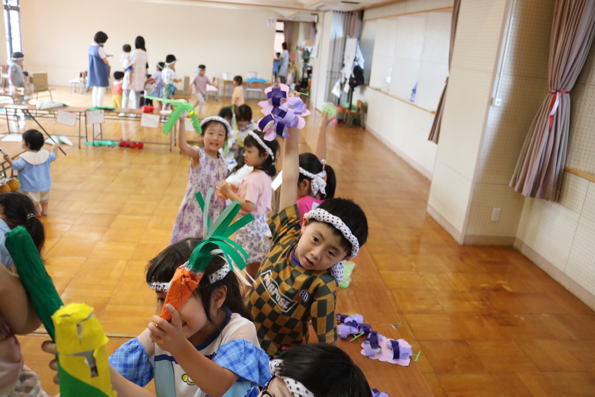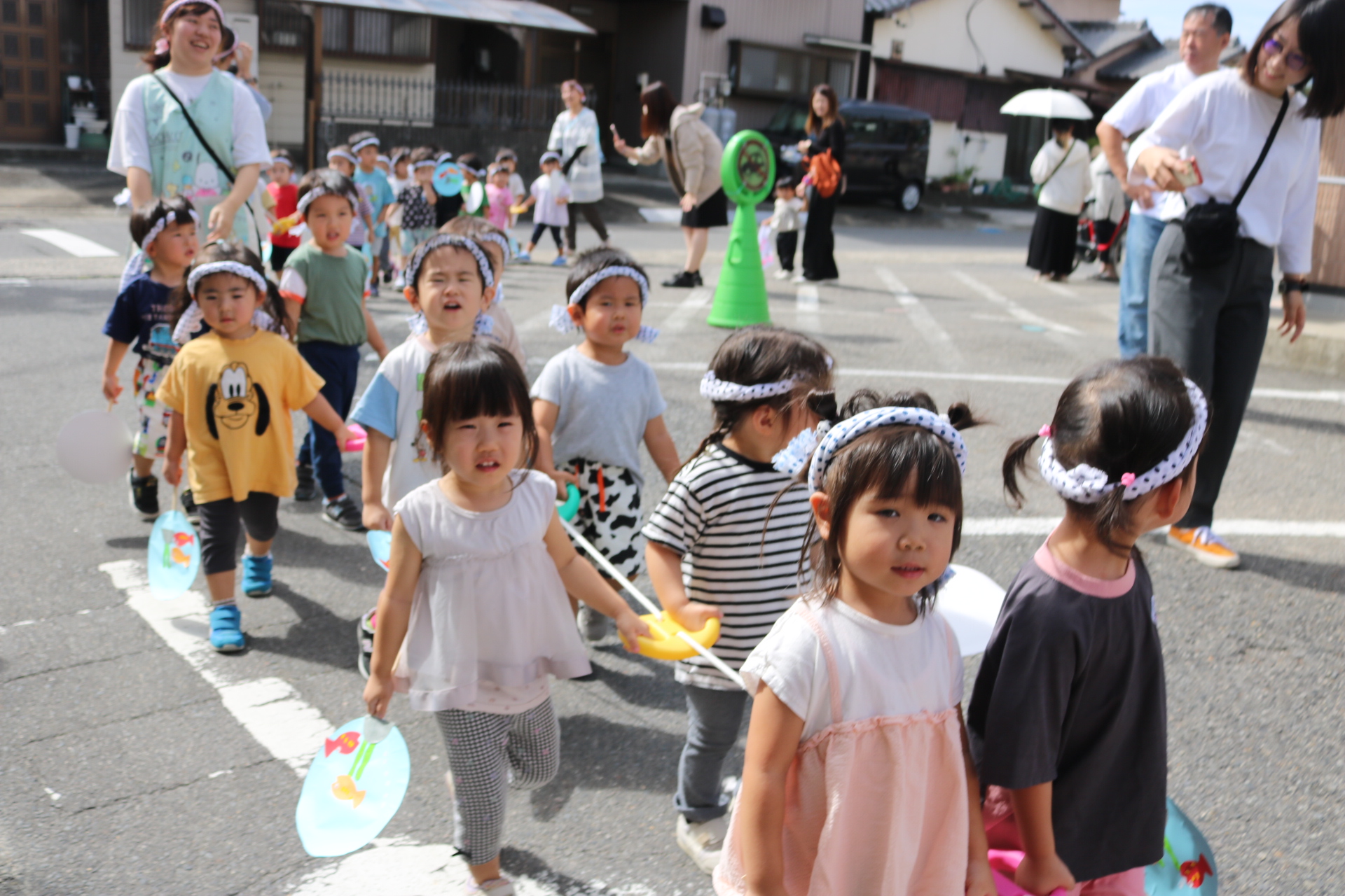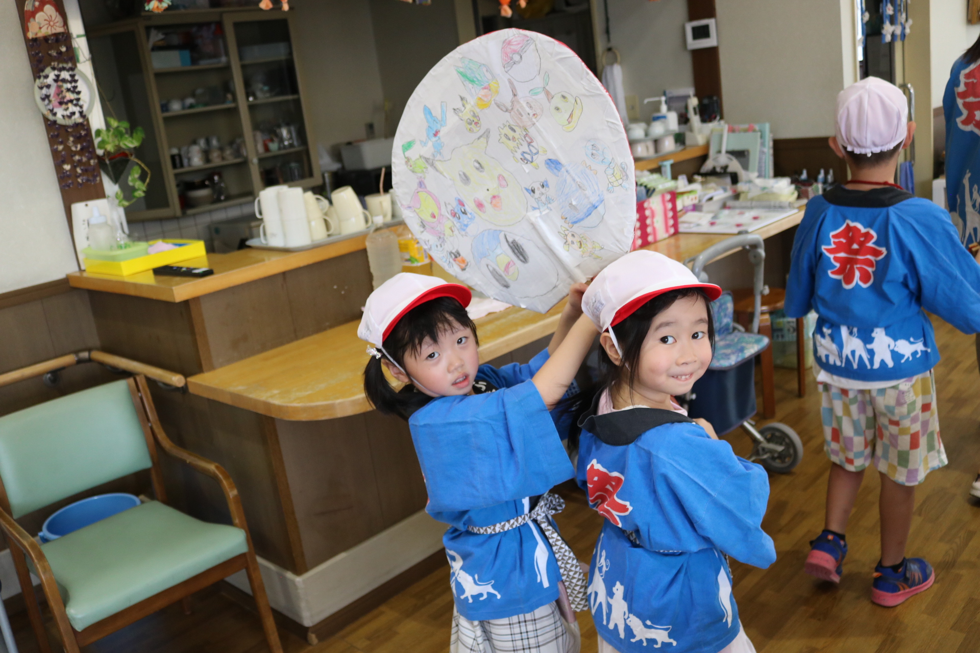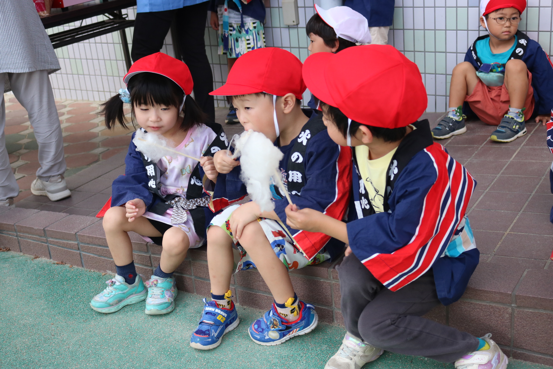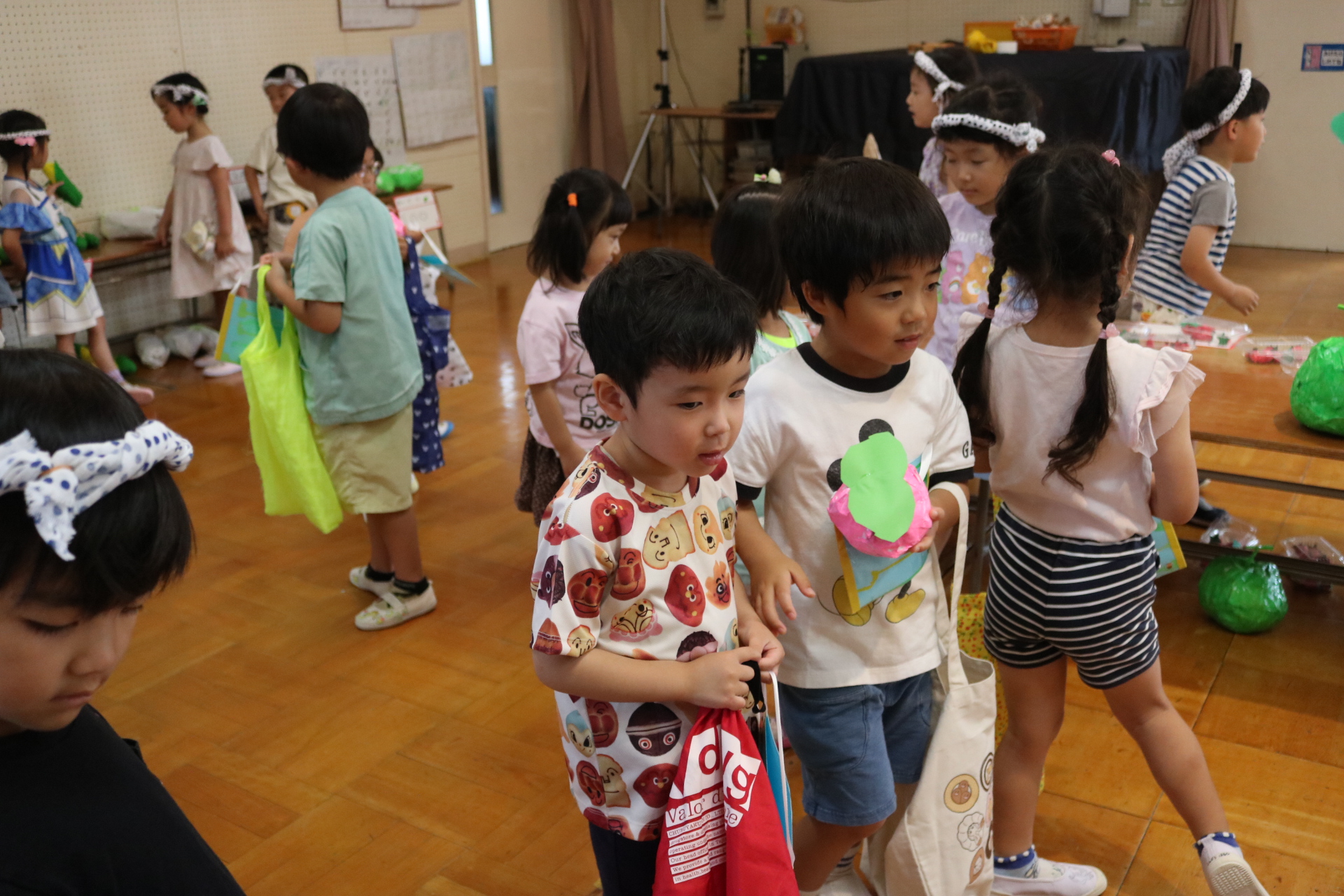 お祭りごっこを楽しんだ子どもたち。お神輿を担いで、近所を歩いてまわりましたよ😊