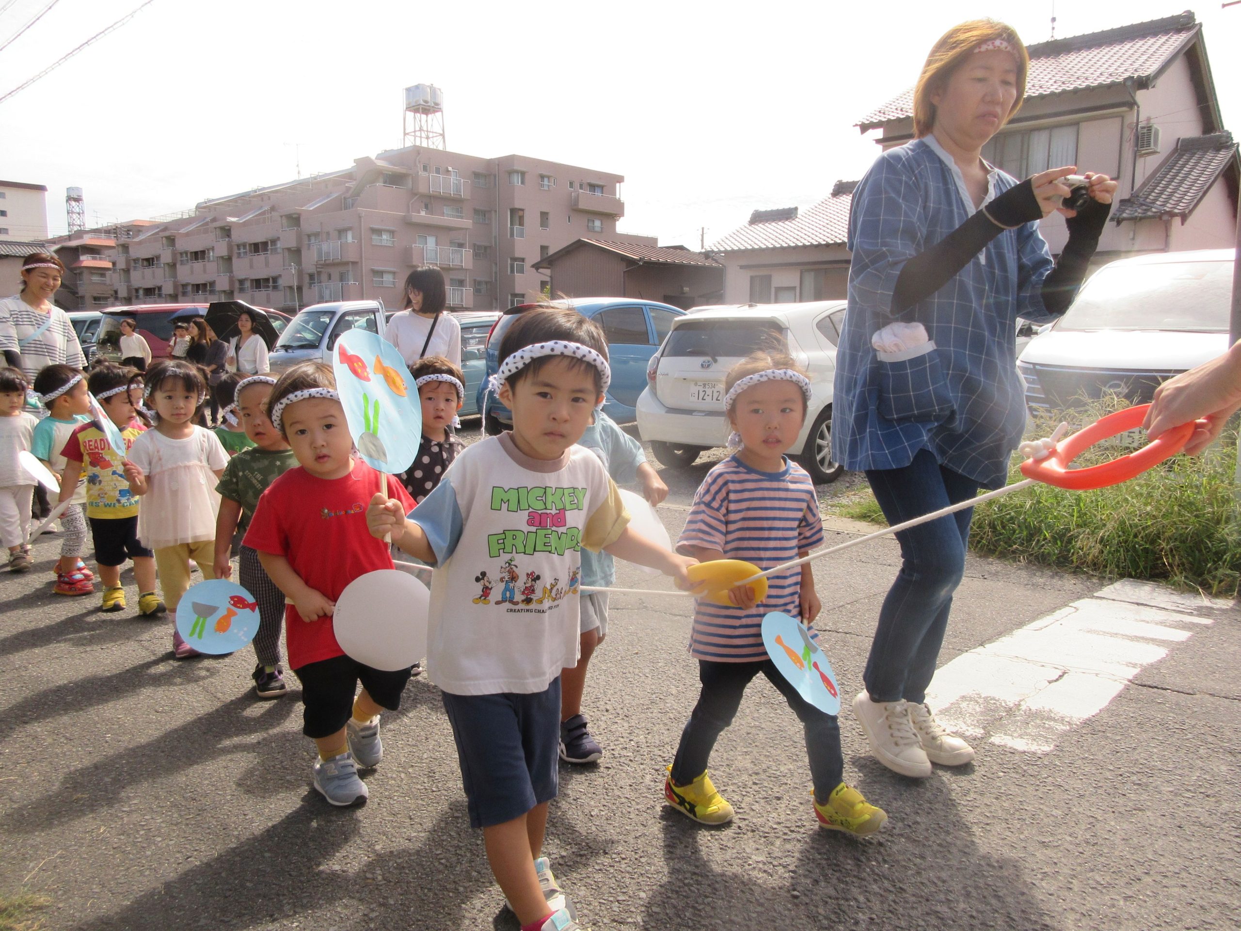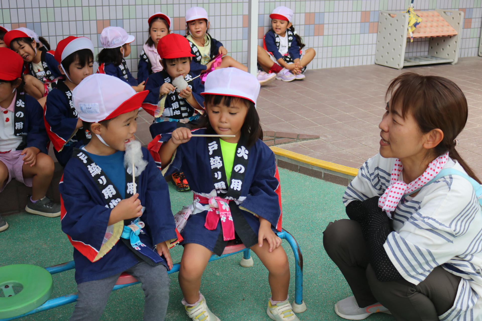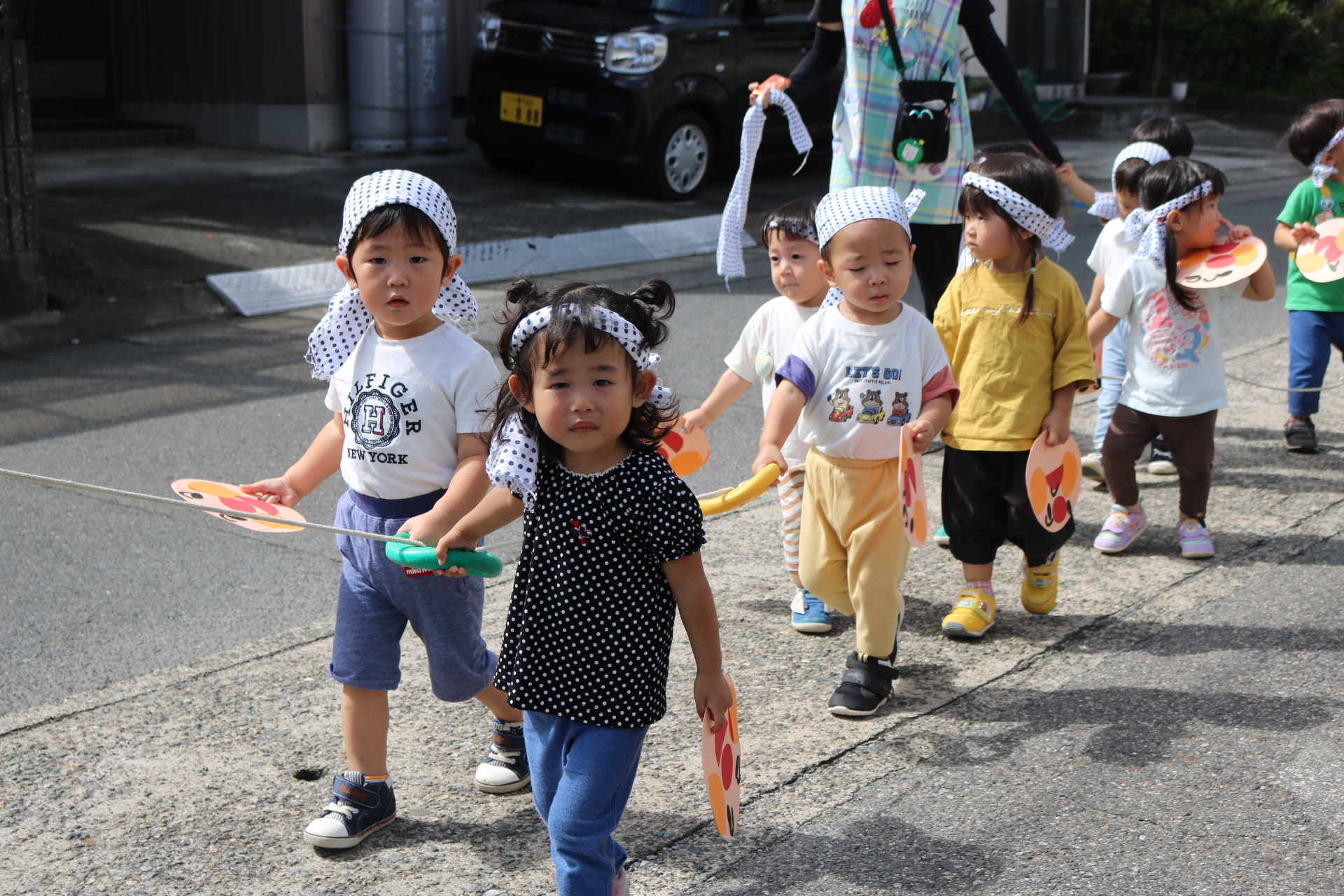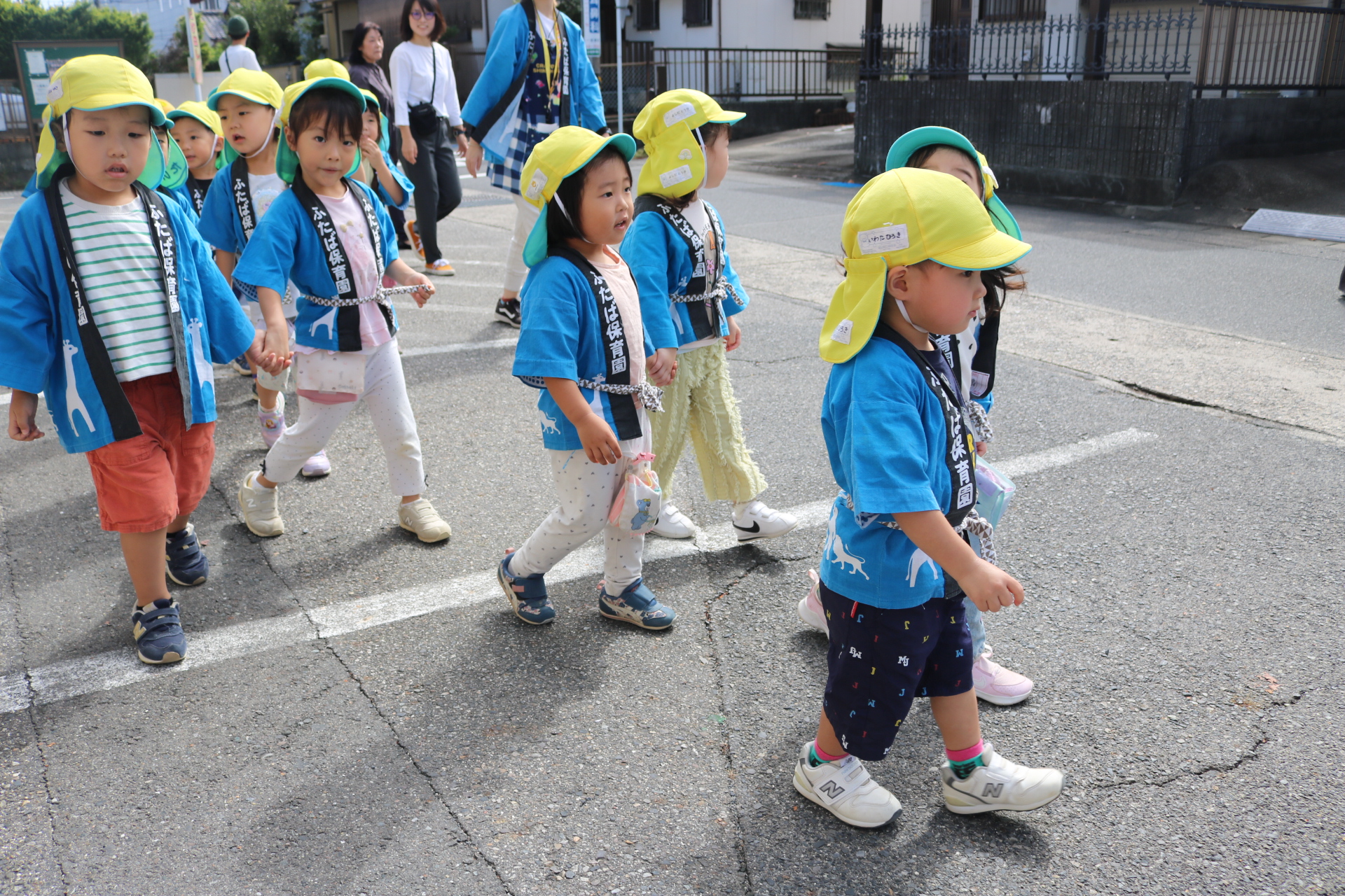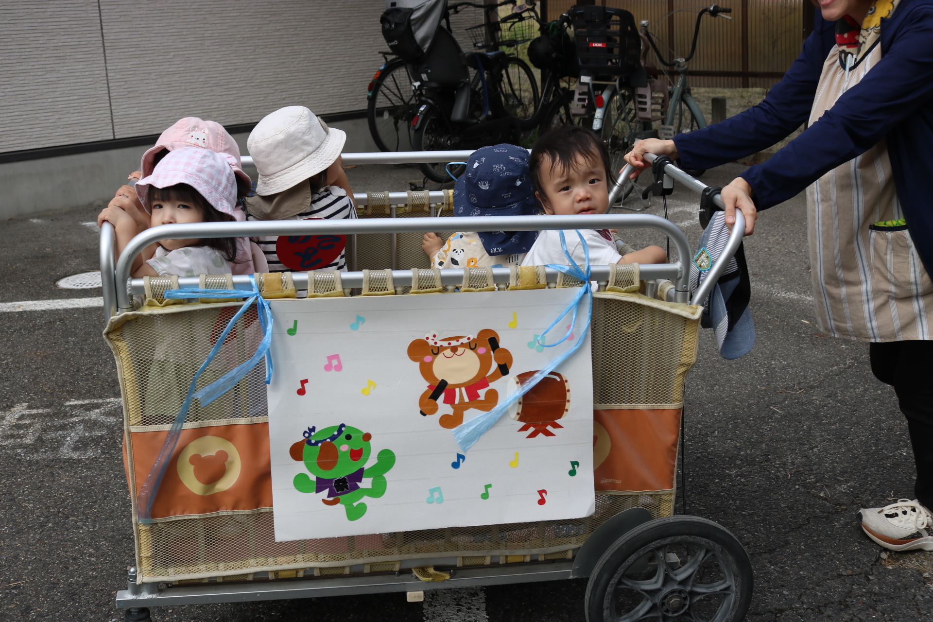 お祭りごっこを楽しんだ子どもたち。お神輿を担いで、近所を歩いてまわりましたよ😊