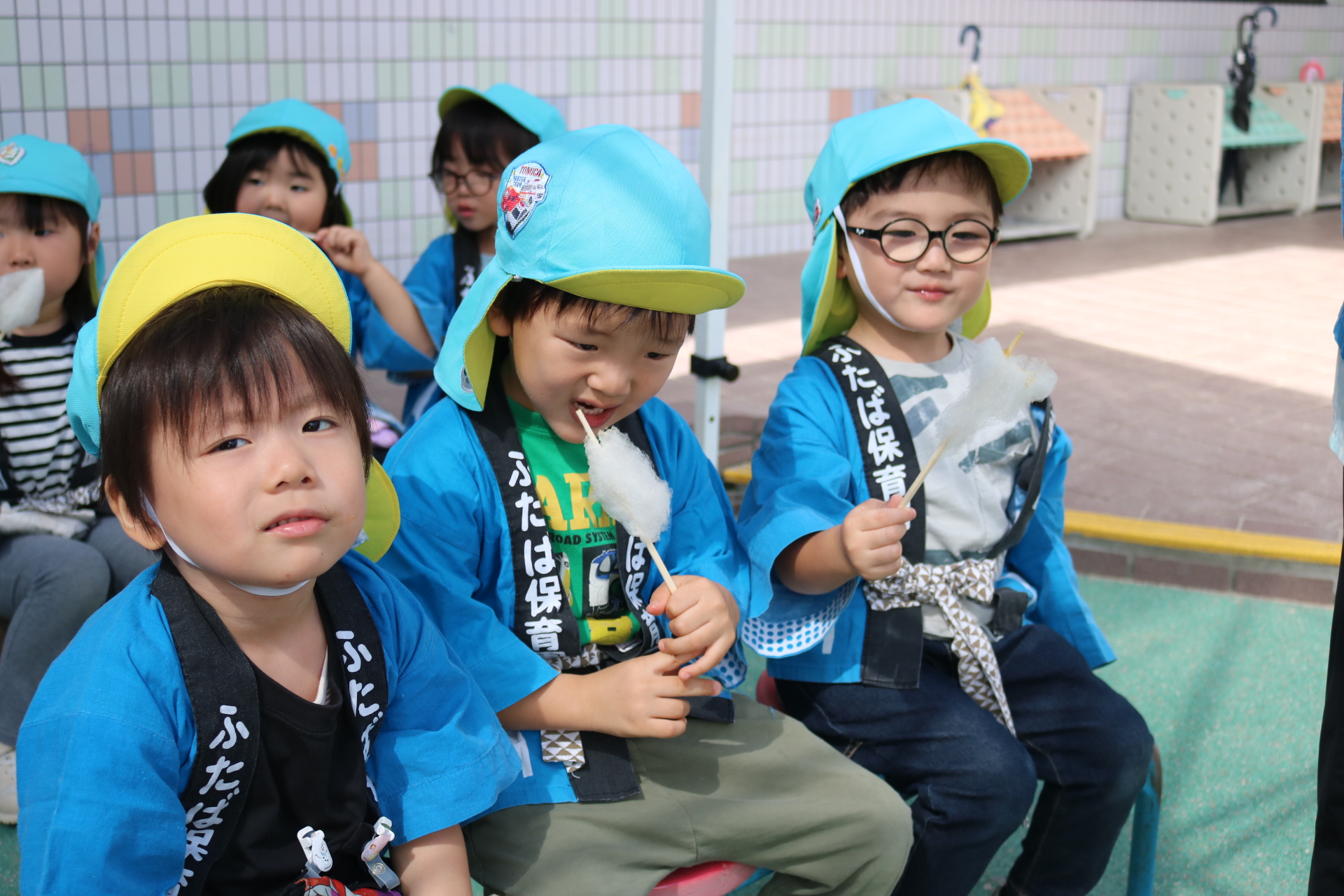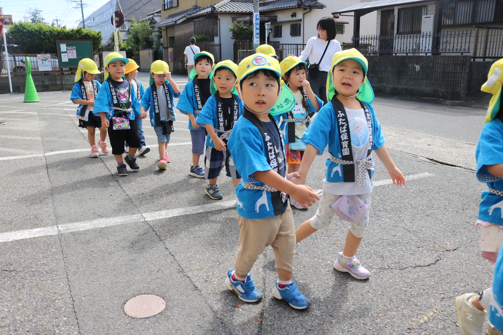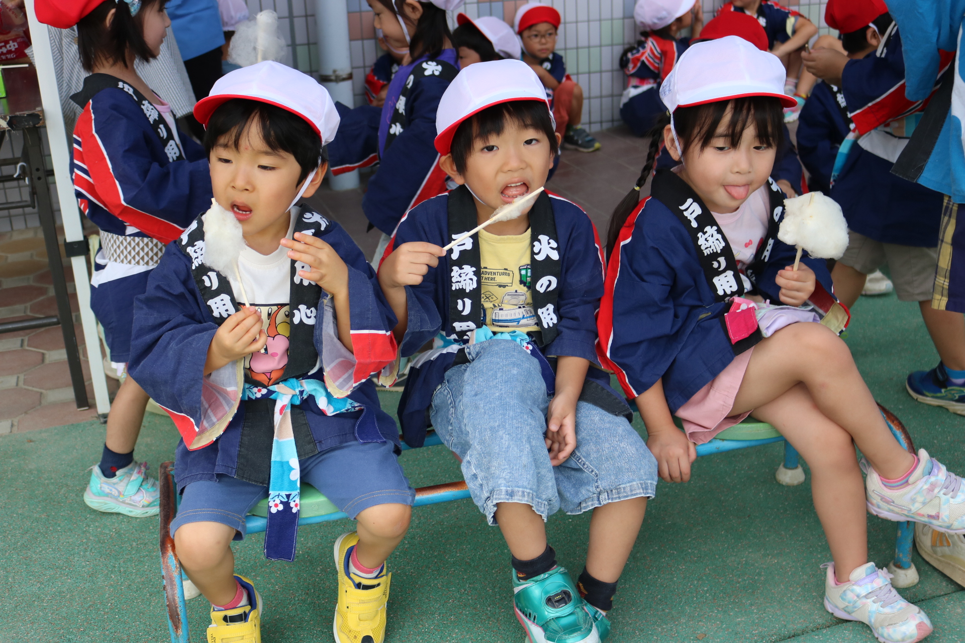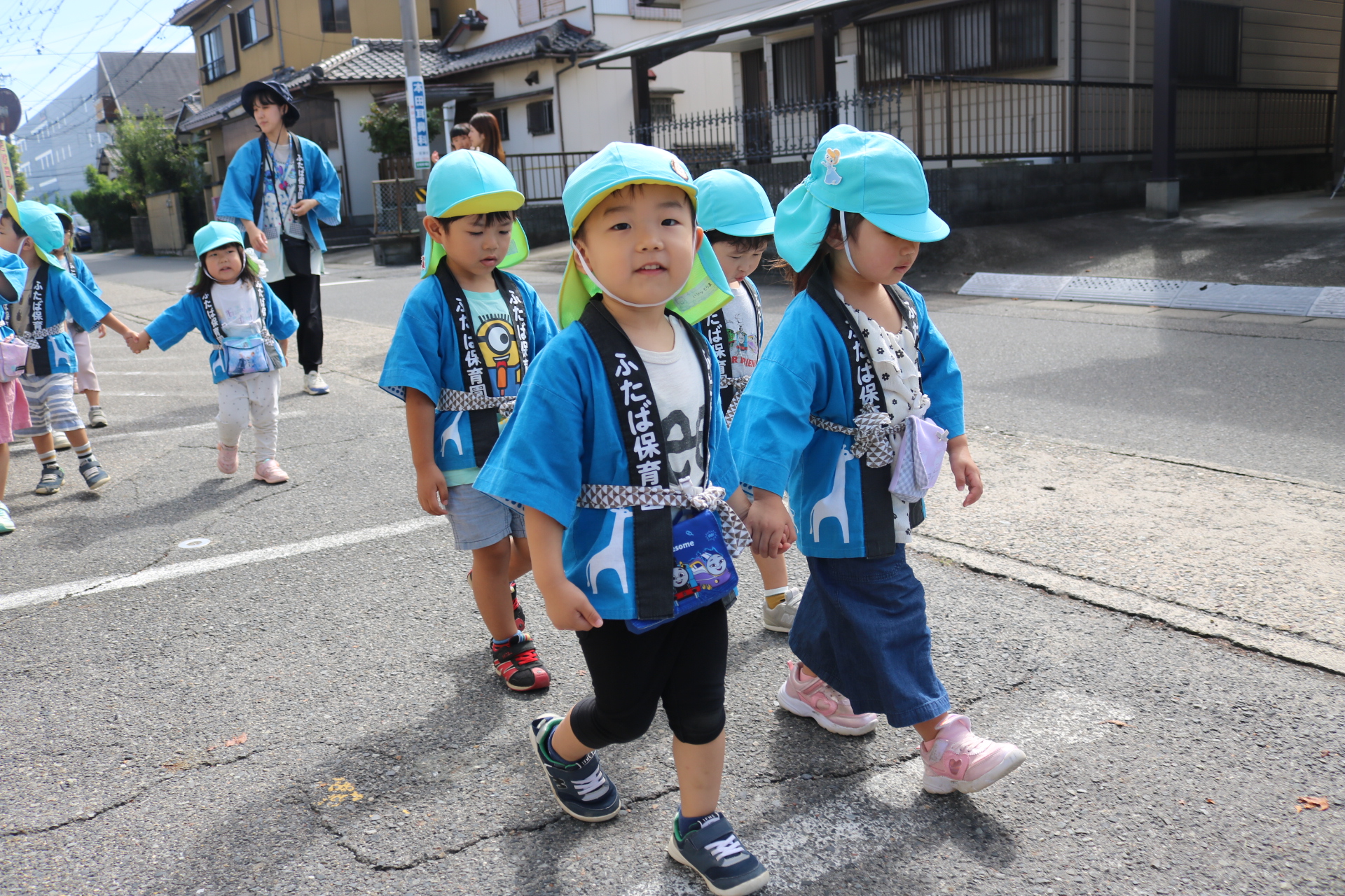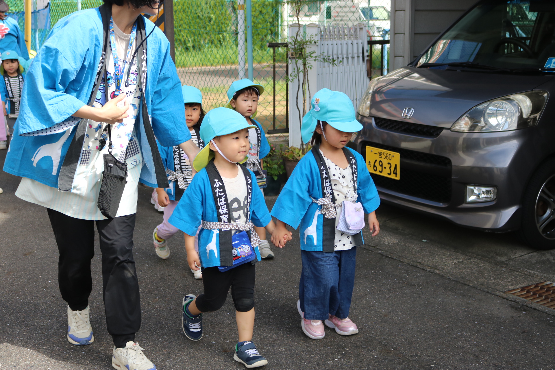 お祭りごっこを楽しんだ子どもたち。お神輿を担いで、近所を歩いてまわりましたよ😊